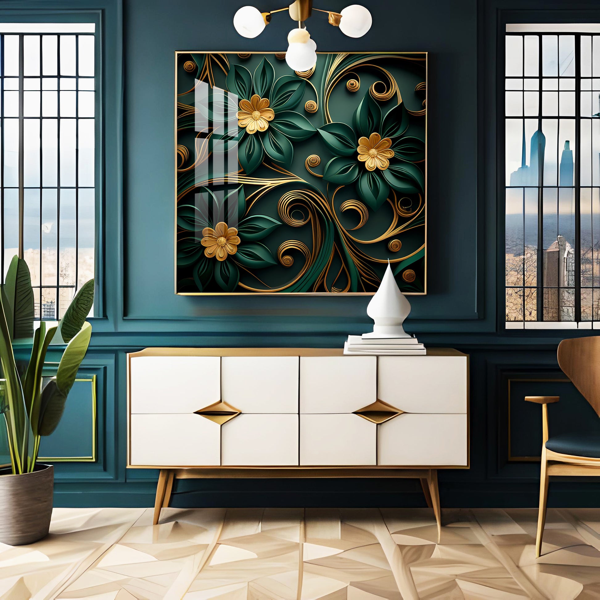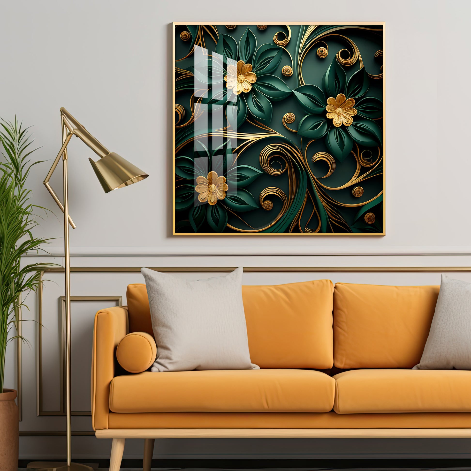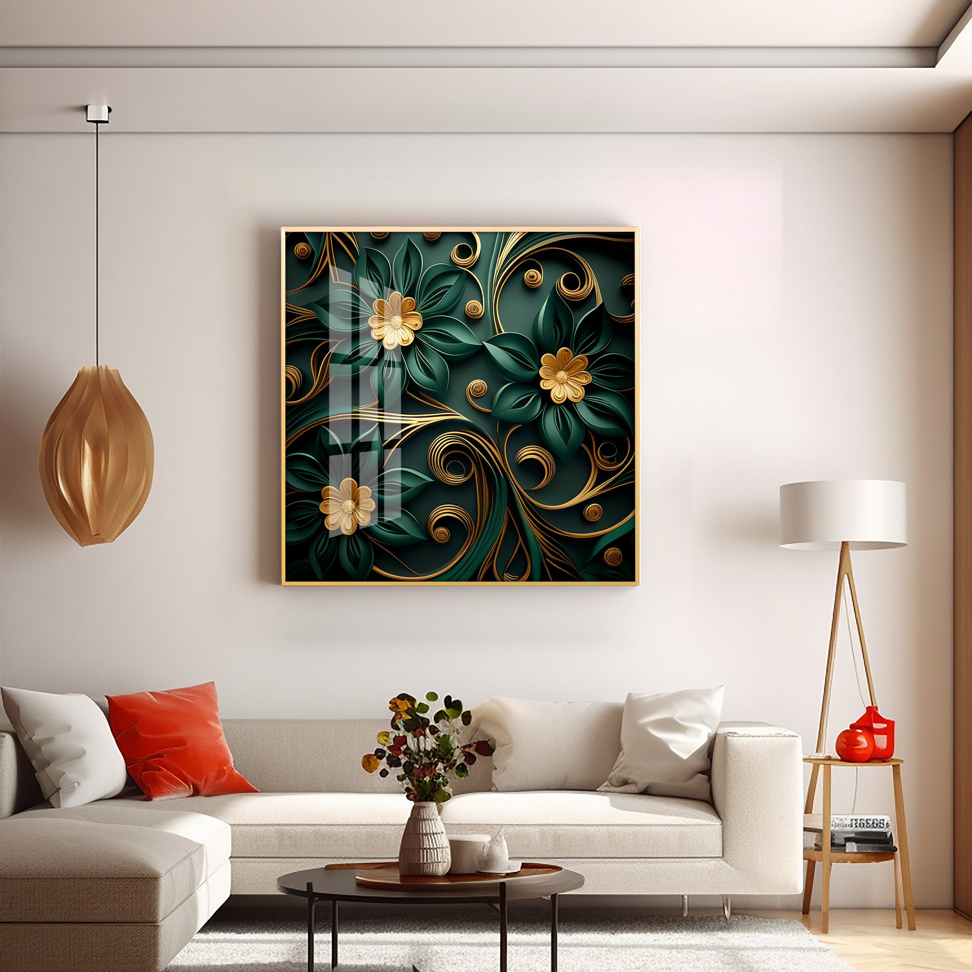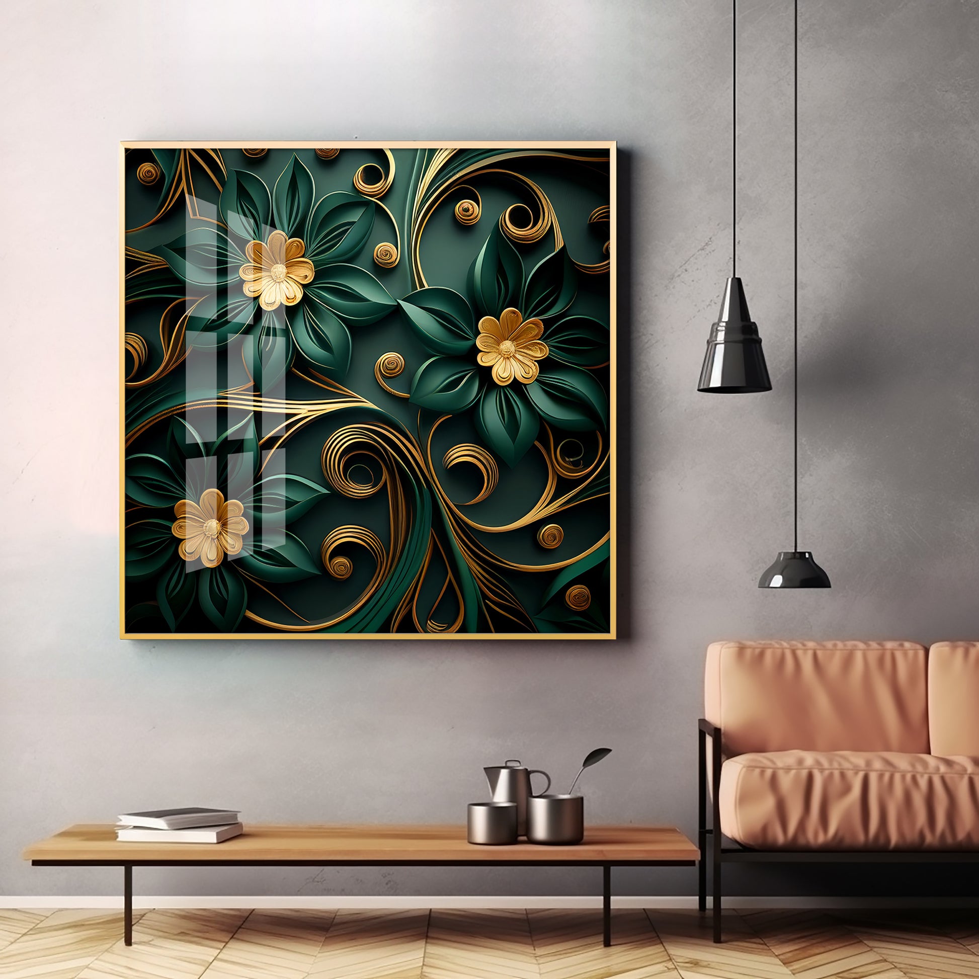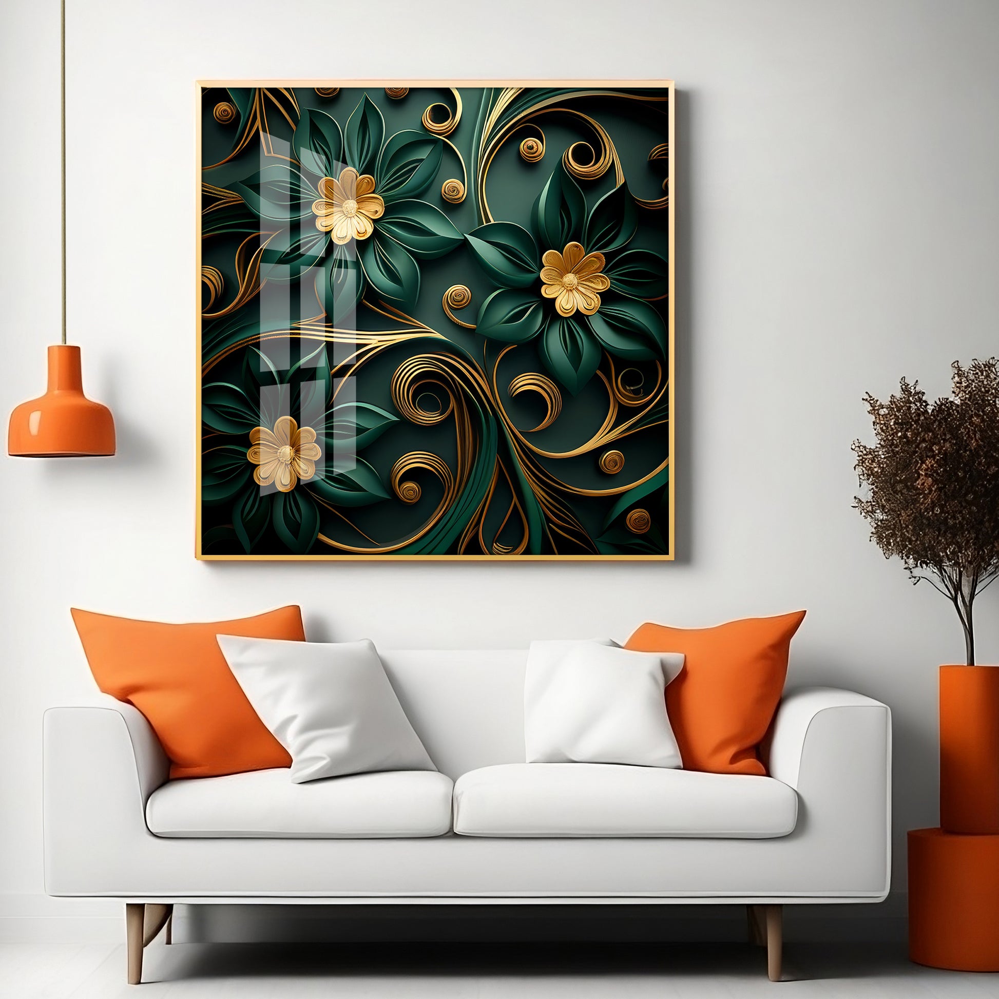 Emerald Garden Flower Glass Finish Square Wall Art