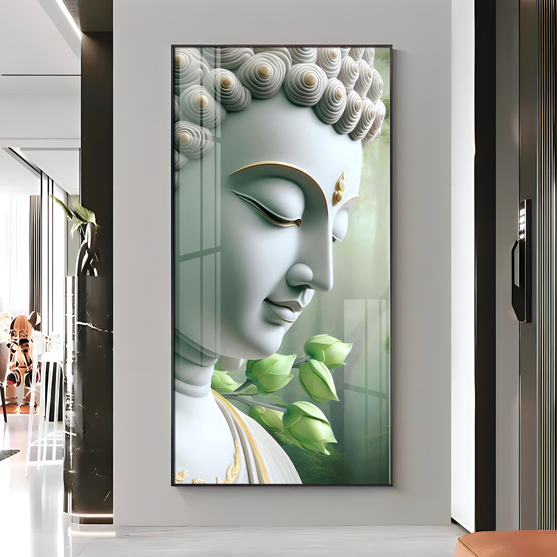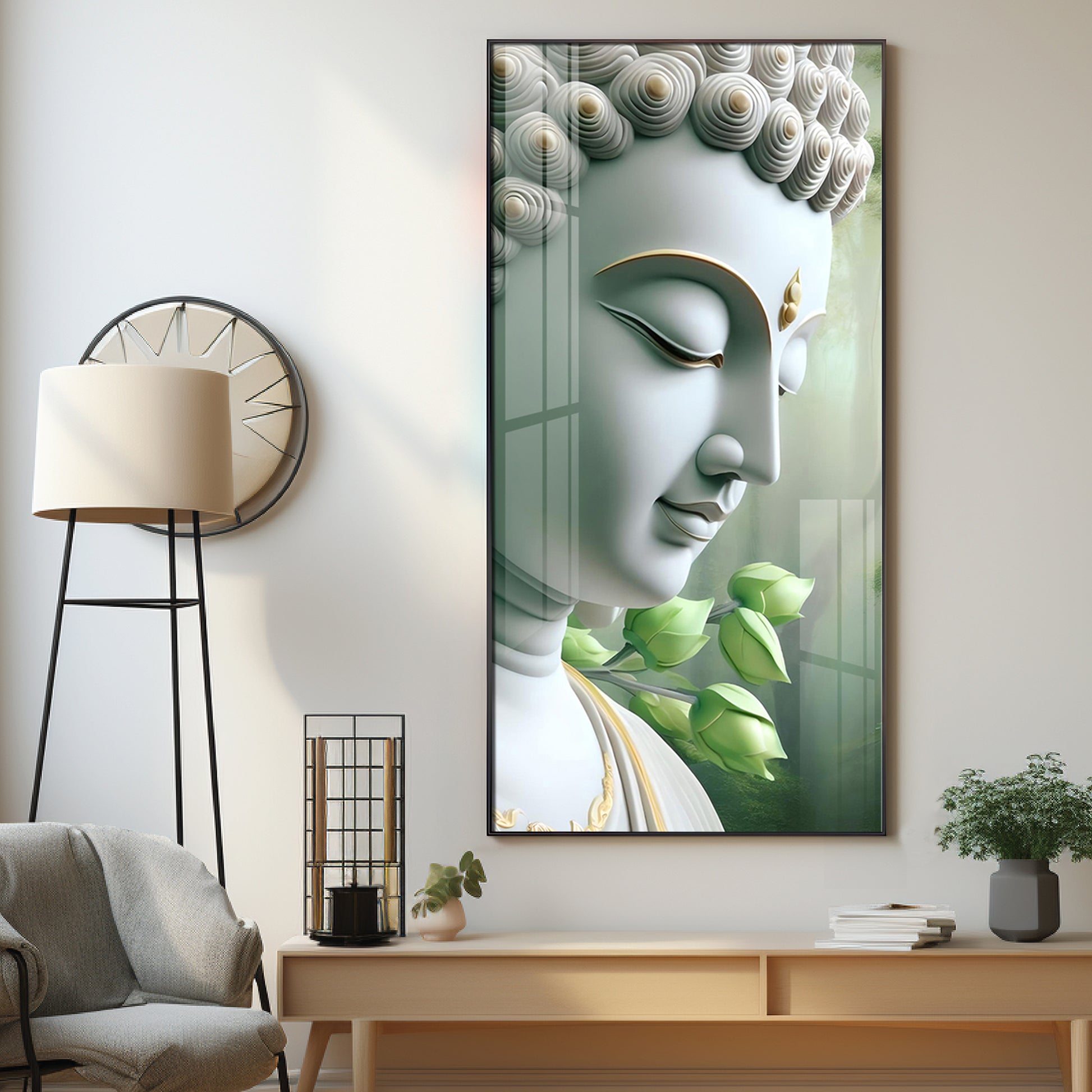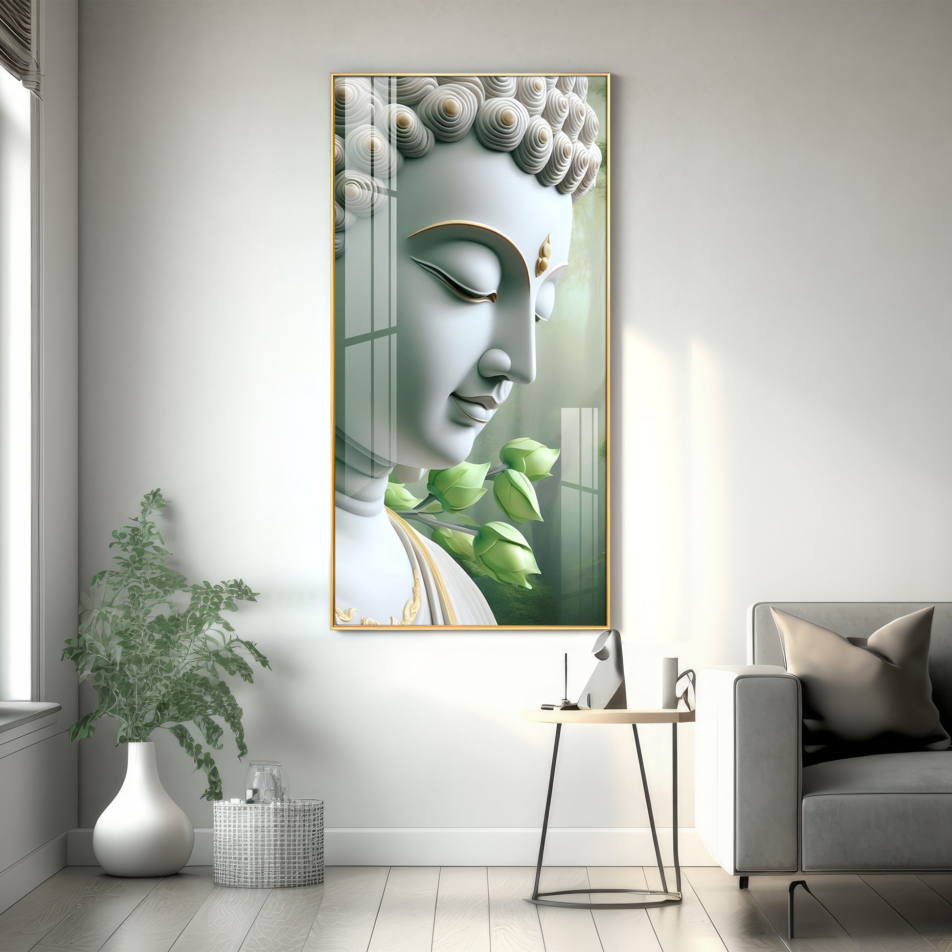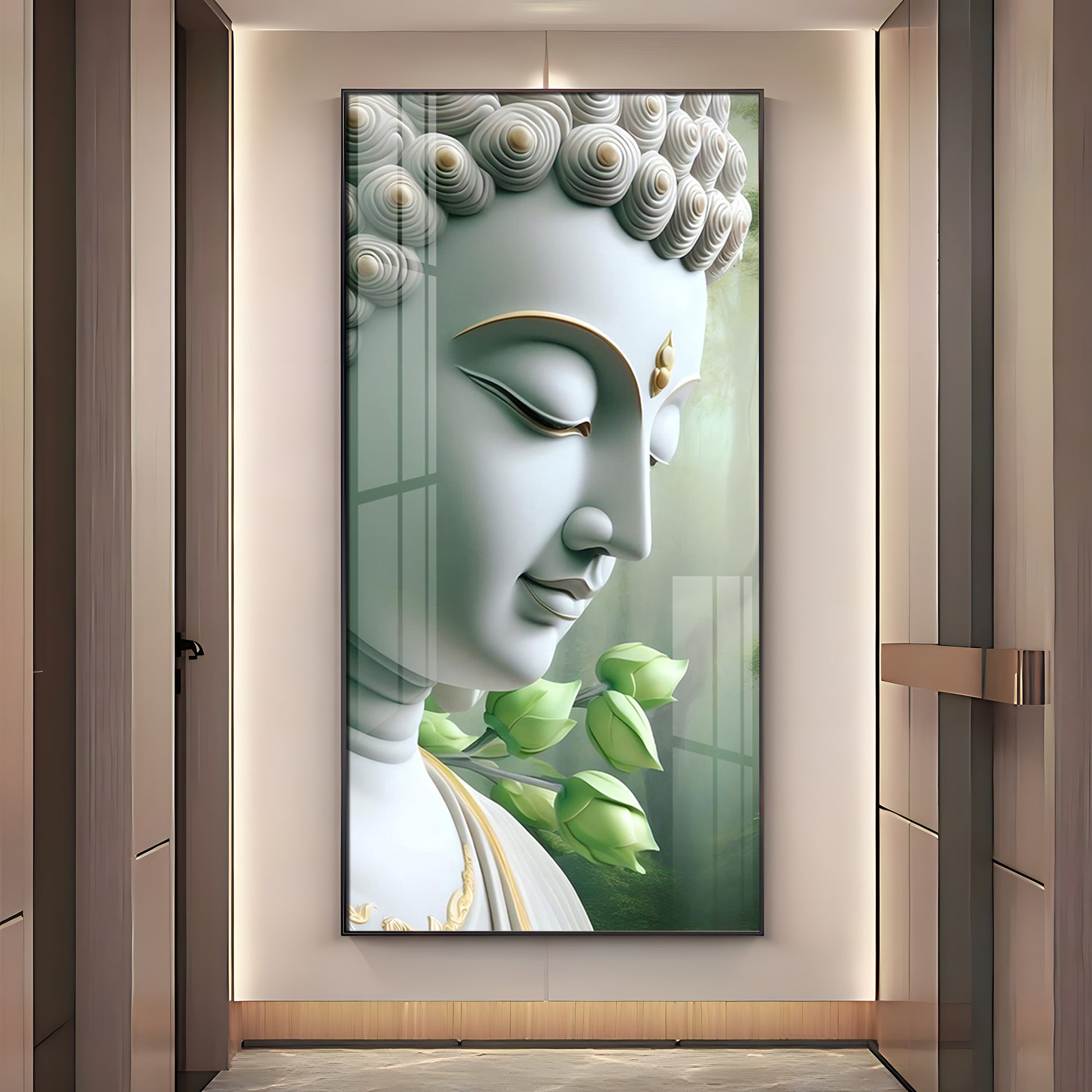 Enlightened Presence Glass Finish Vertical Wall Art
