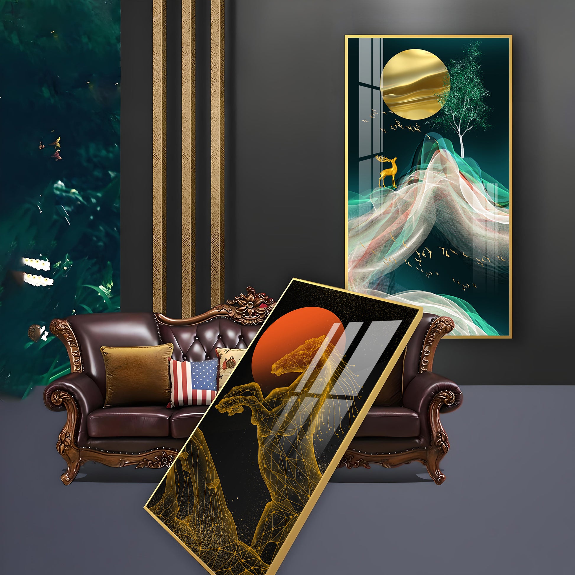 Our Framed glass finish wall art is easy to hang. The metal hooks are included in the box of your ordered wall art. You can simply mount it to the wall you want to place.