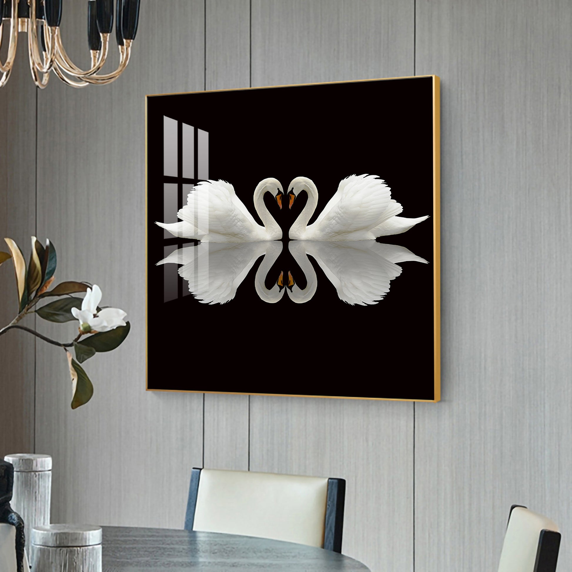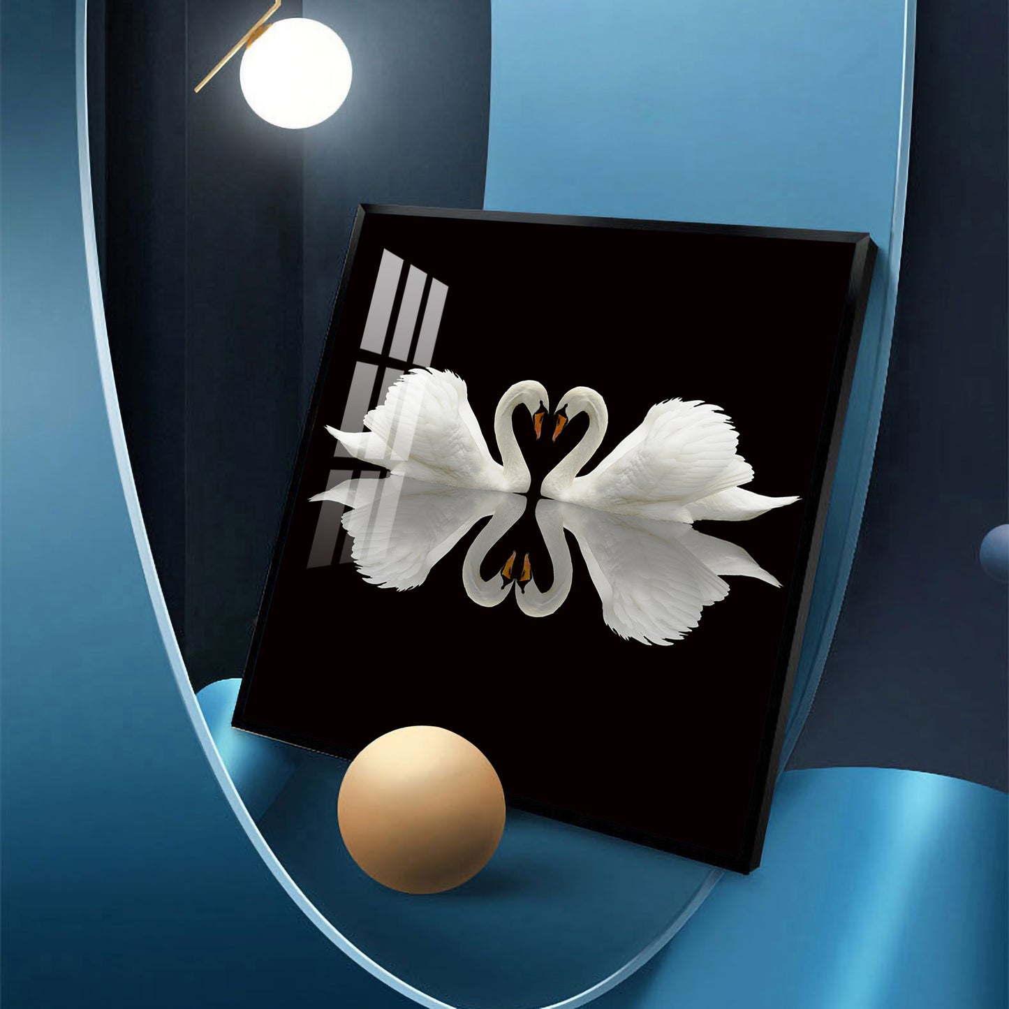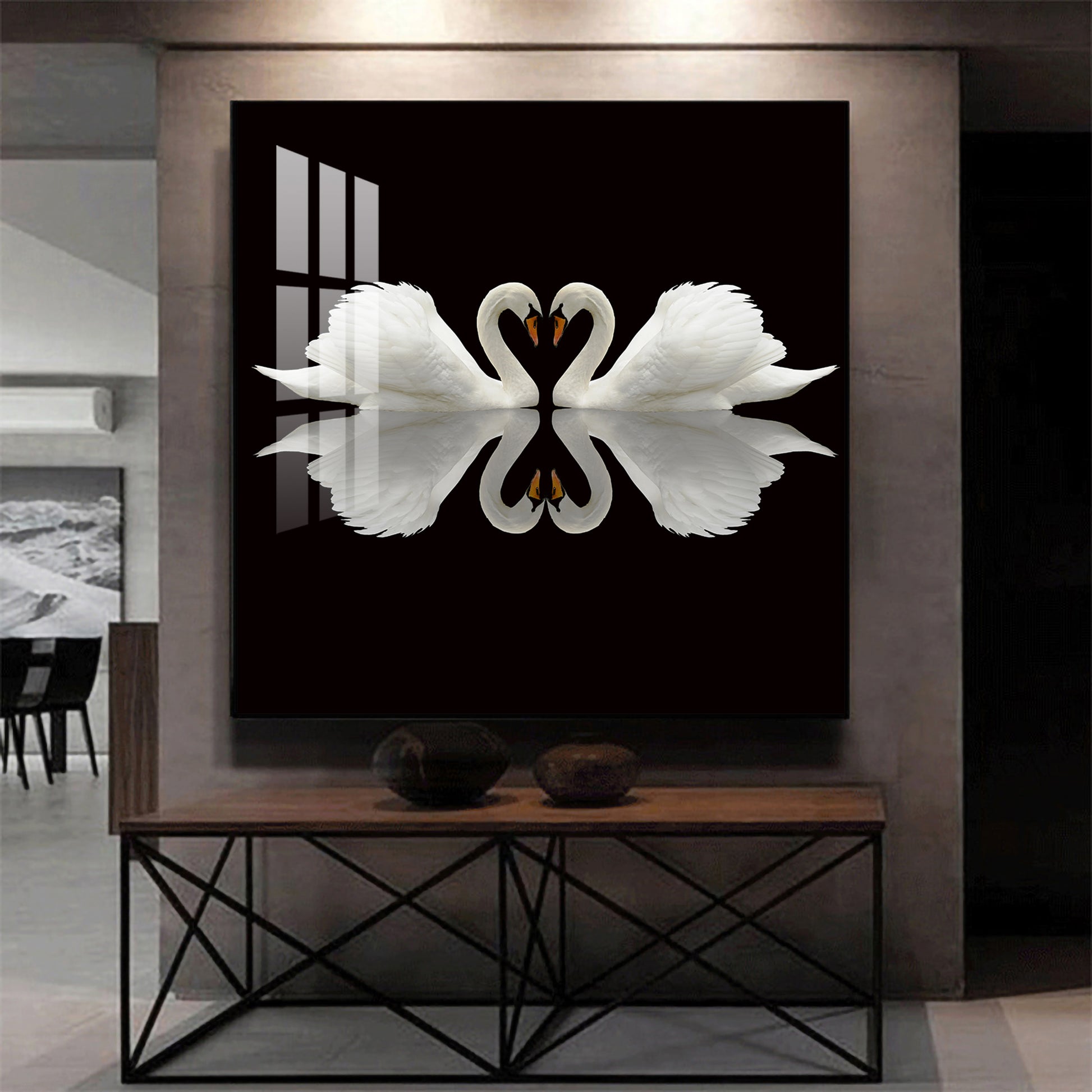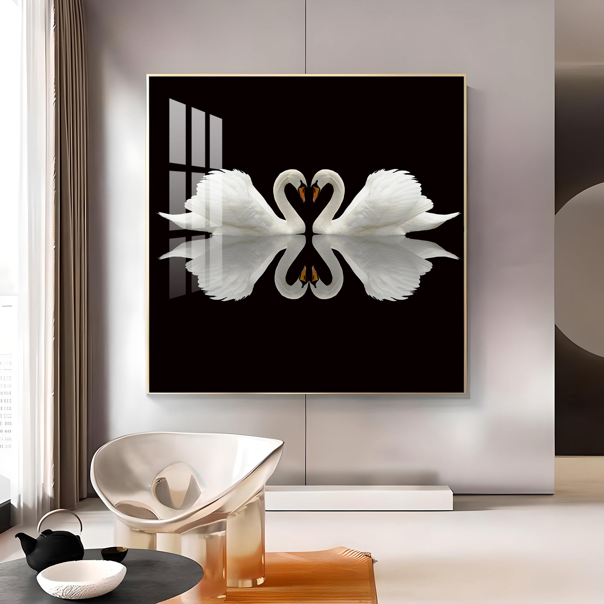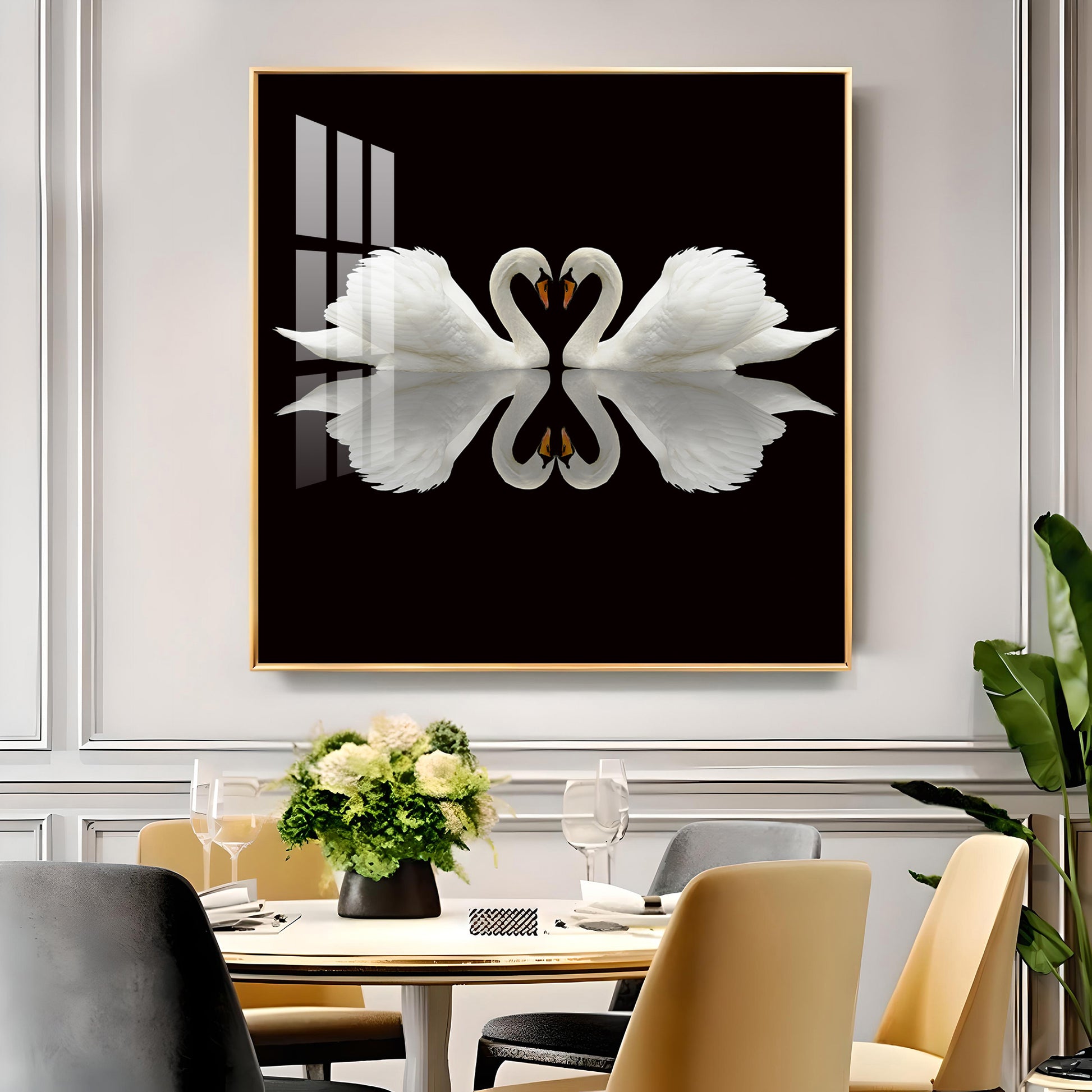 Ethereal Swan Mirage Glass Finish Square Wall Art