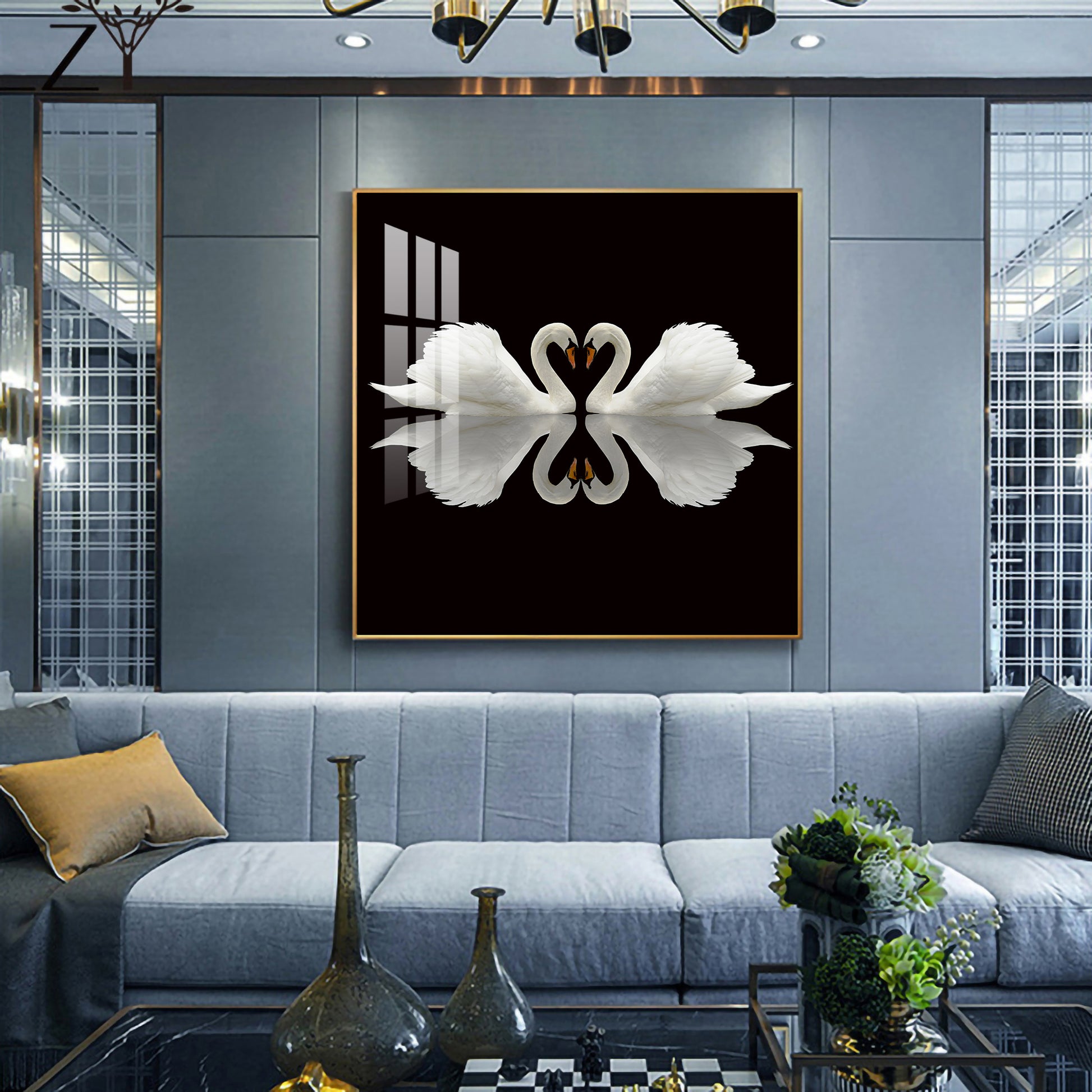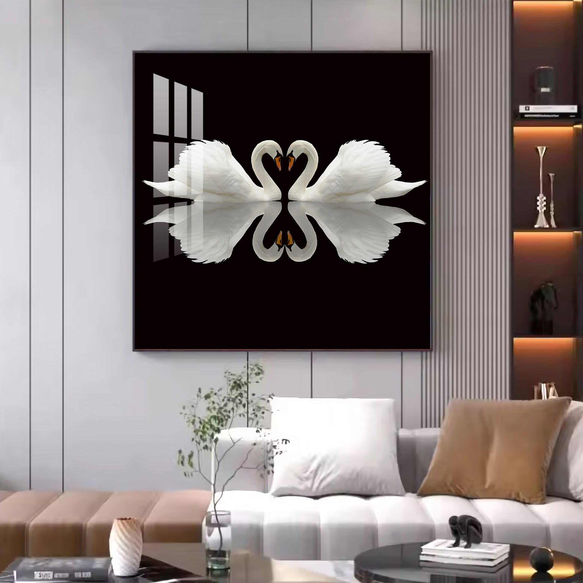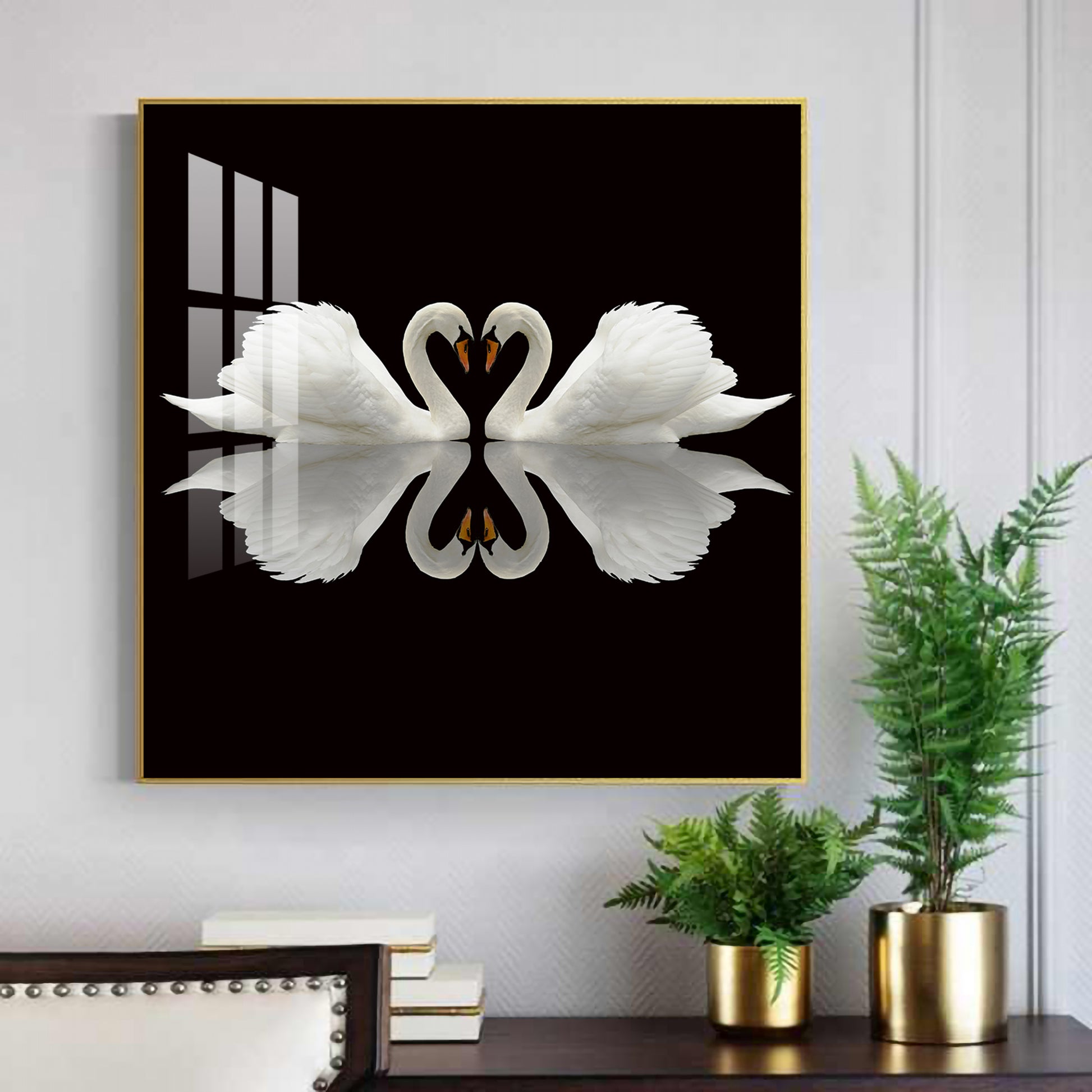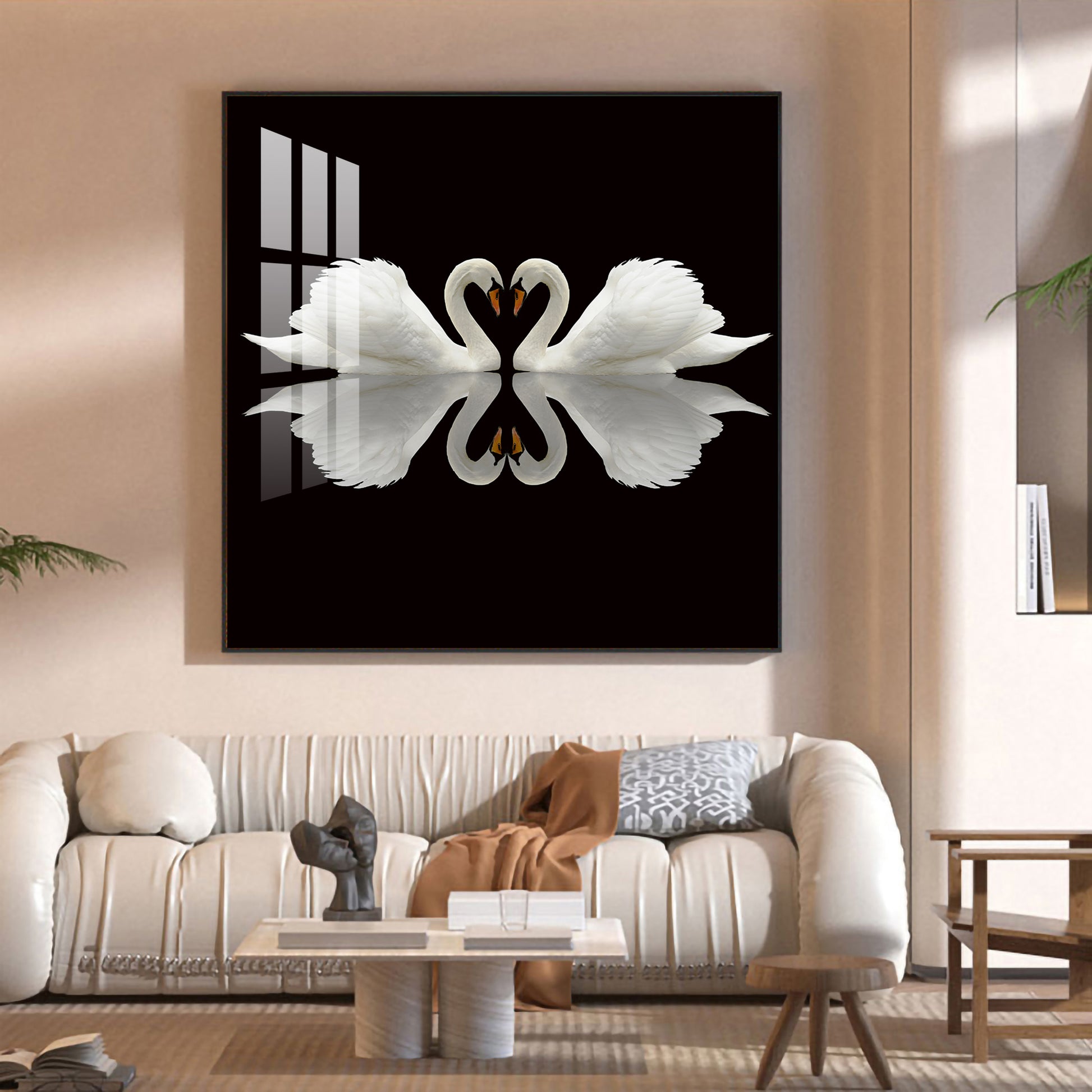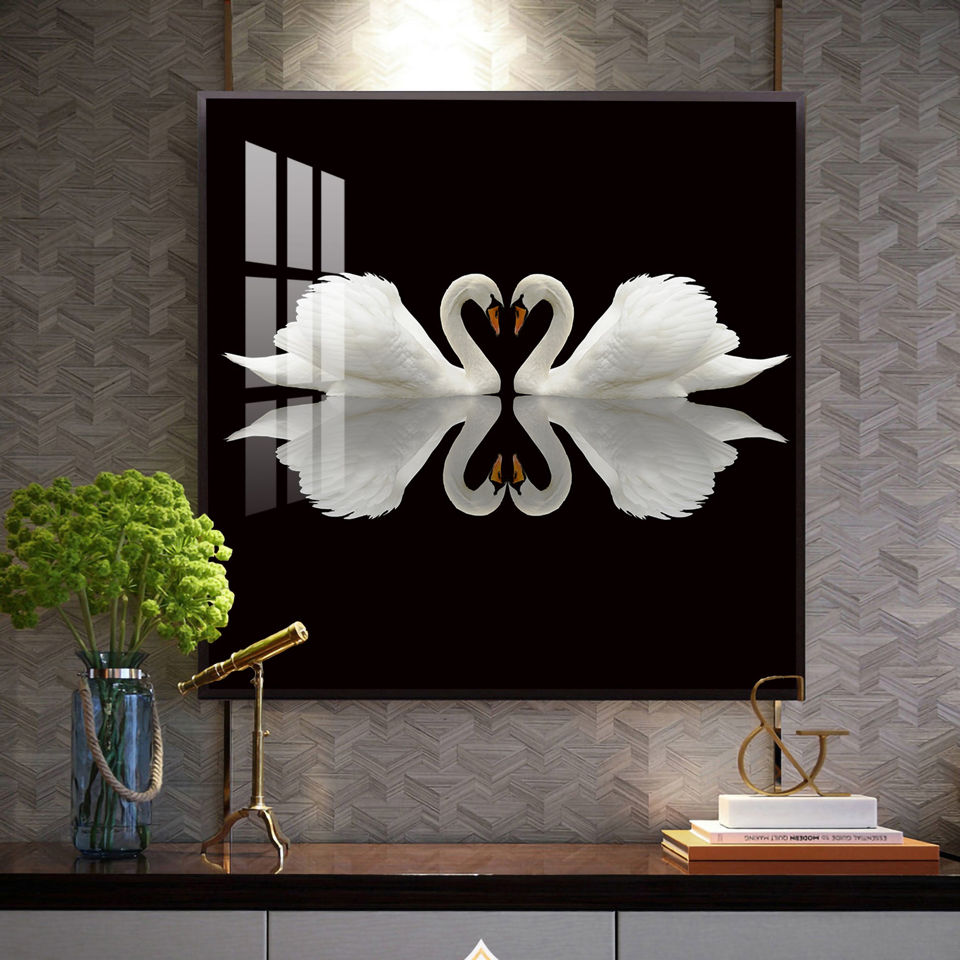 Ethereal Swan Mirage Glass Finish Square Wall Art