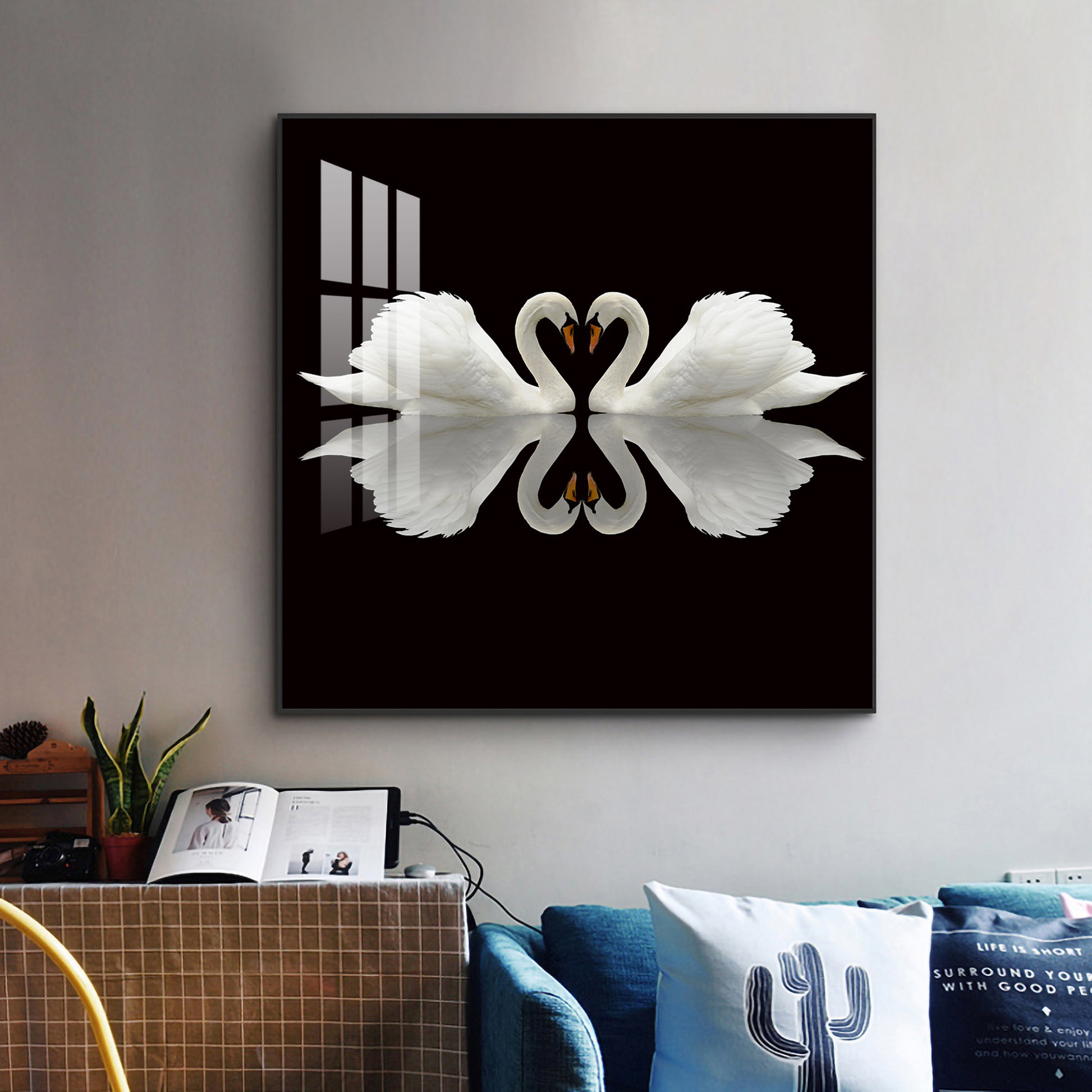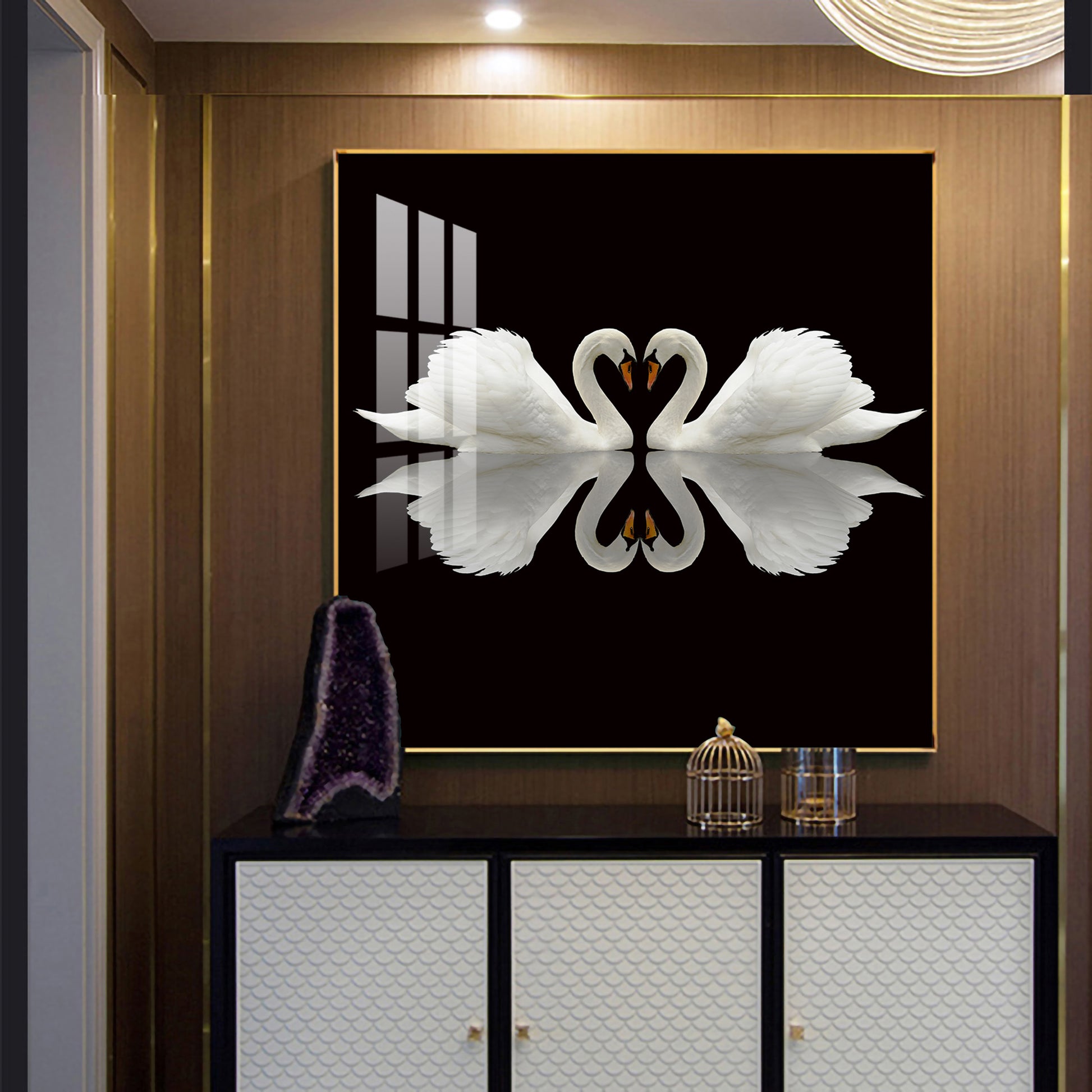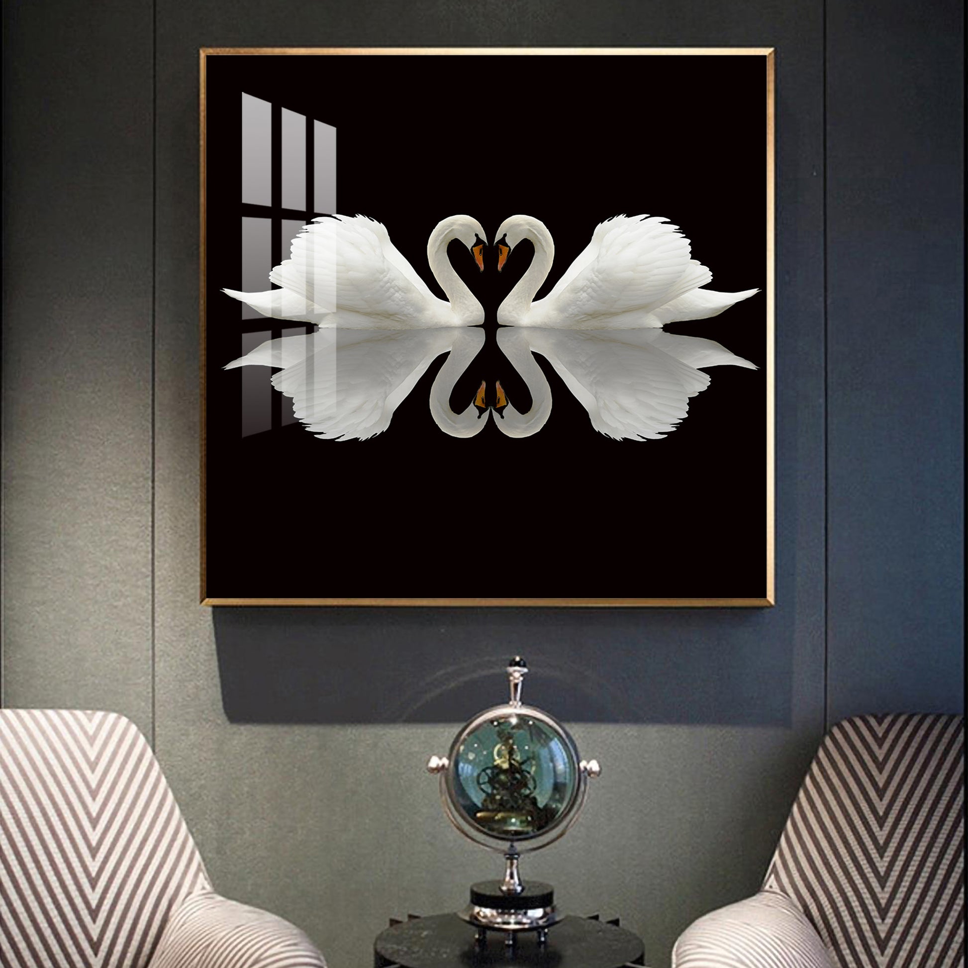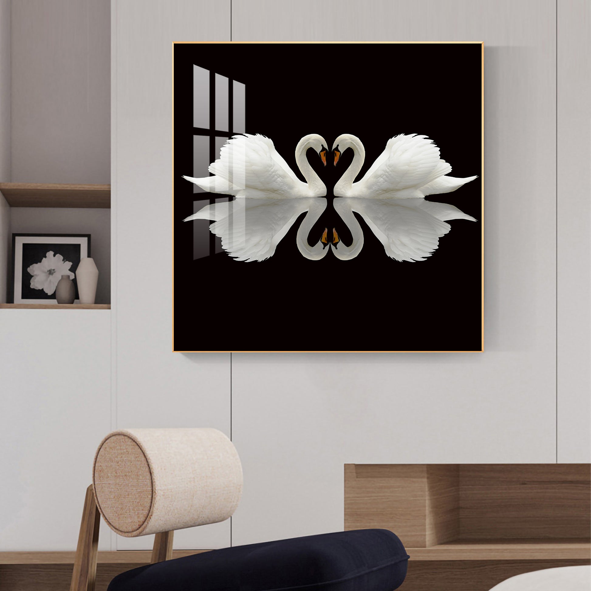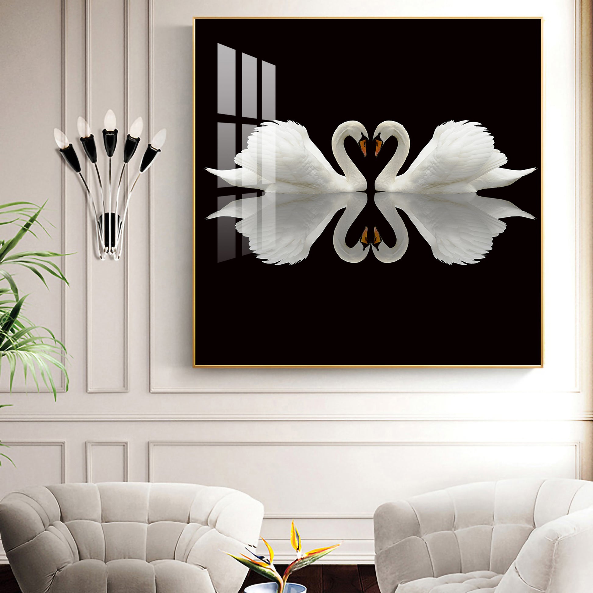 Ethereal Swan Mirage Glass Finish Square Wall Art