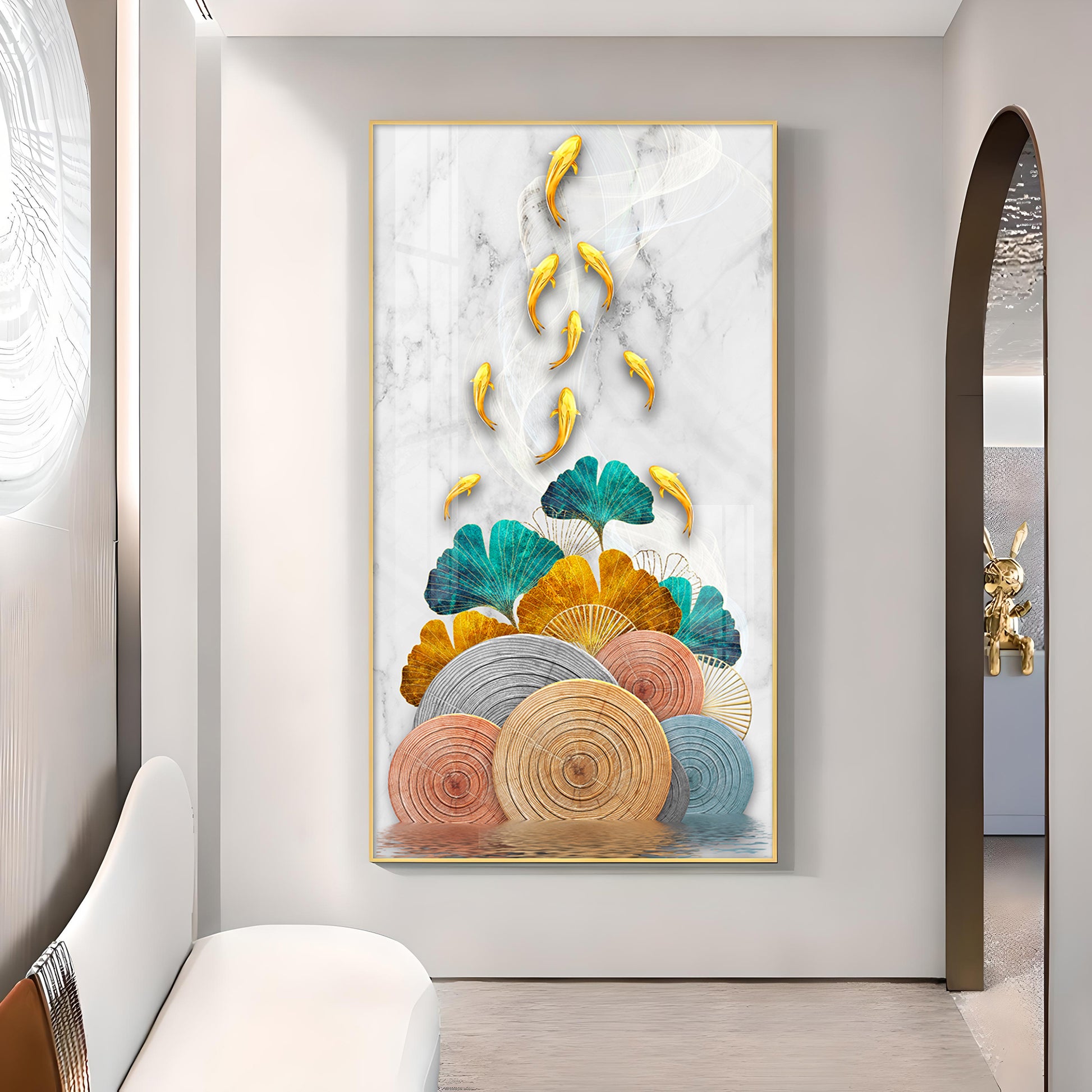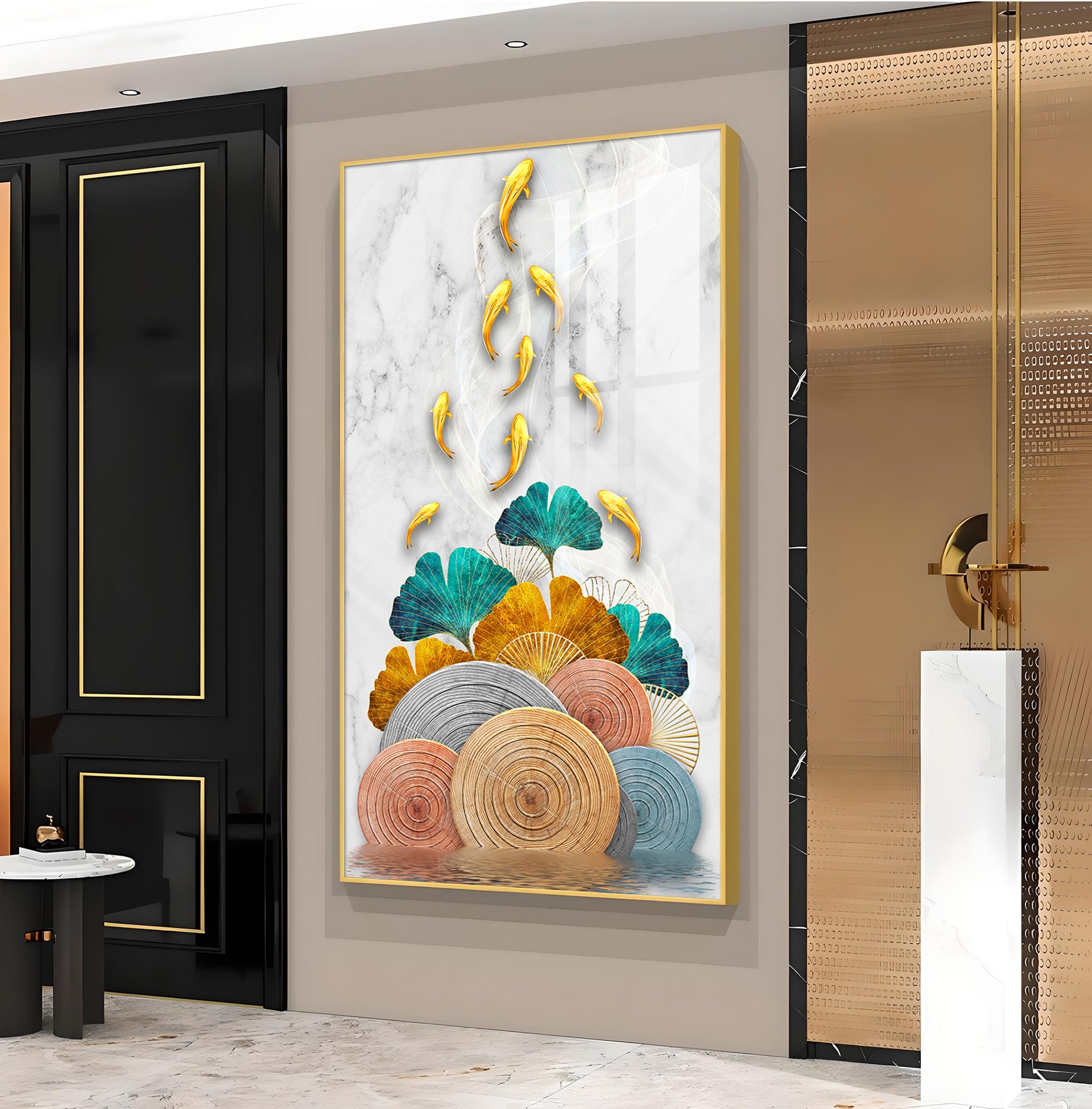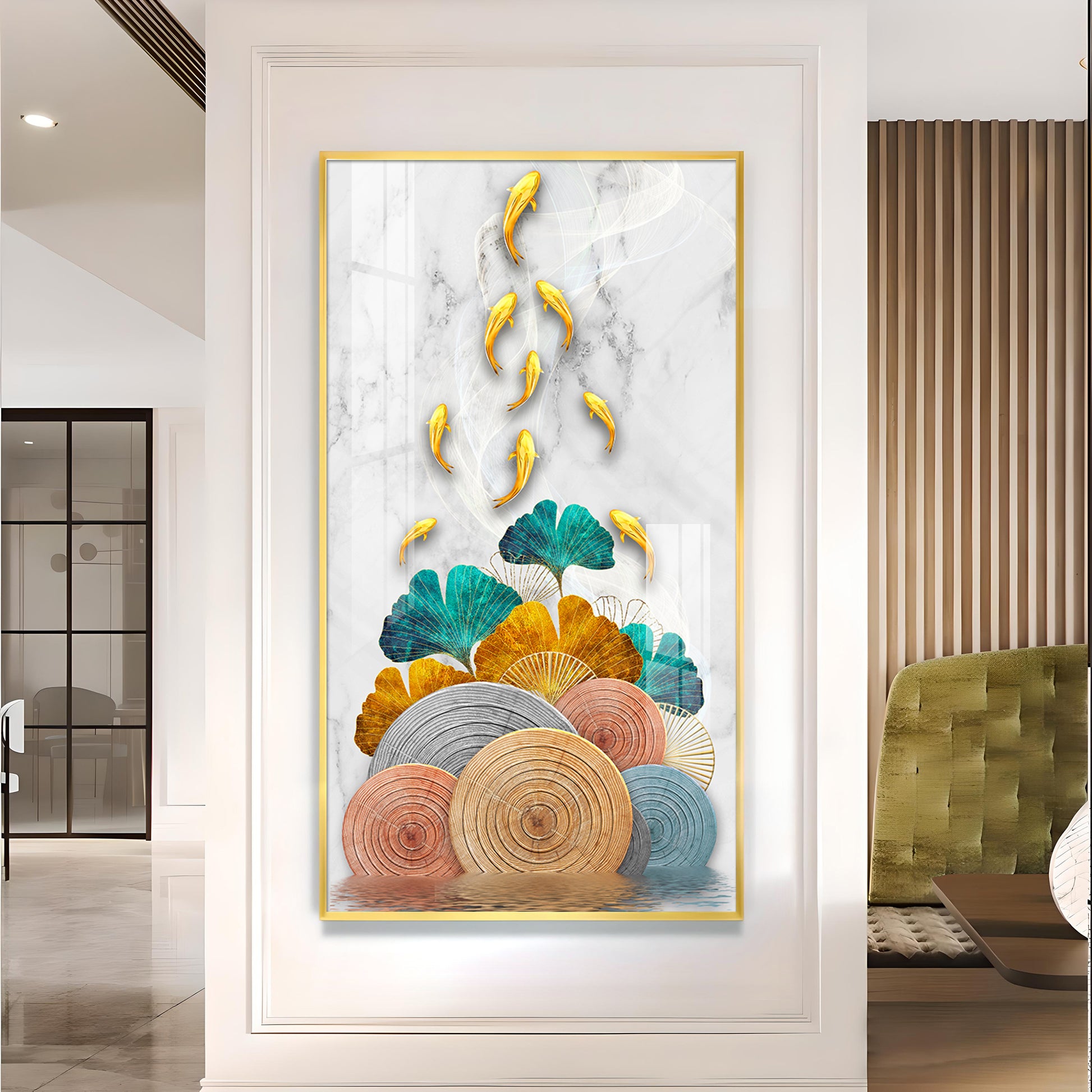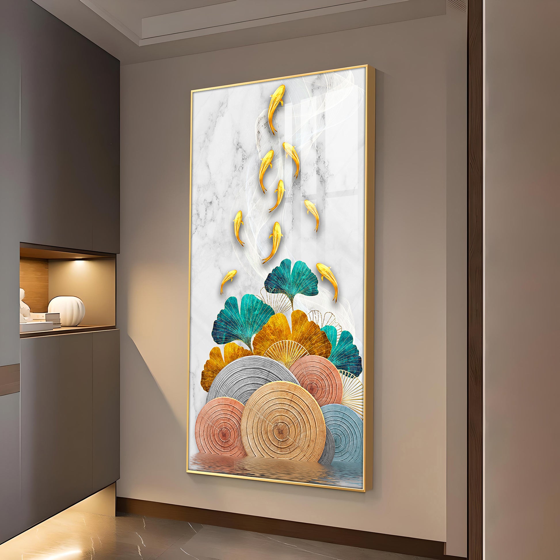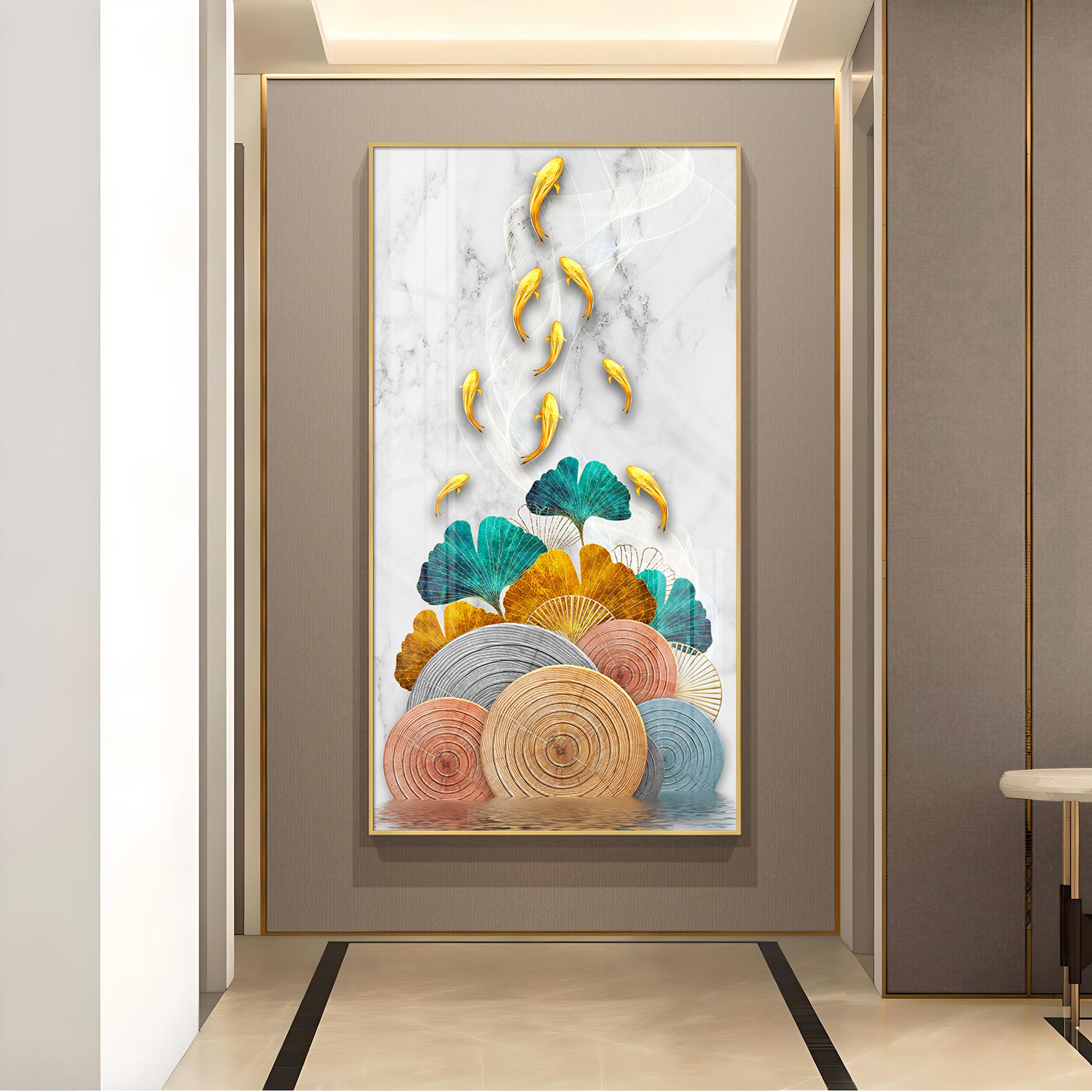 Floral Koi Bliss Artistry Glass Finish Vertical Wall Art