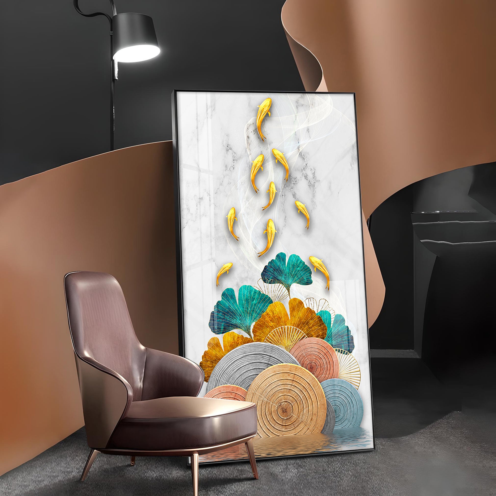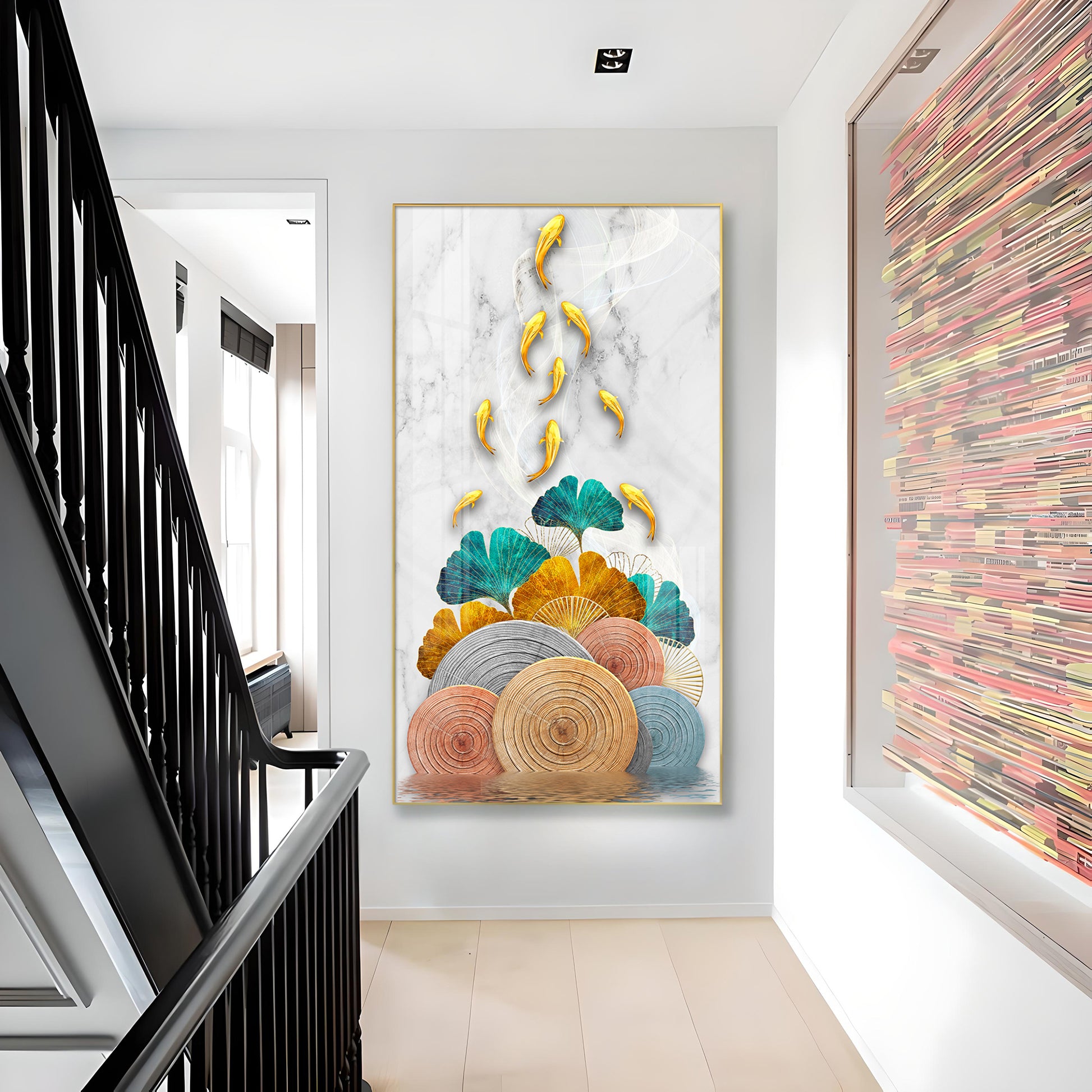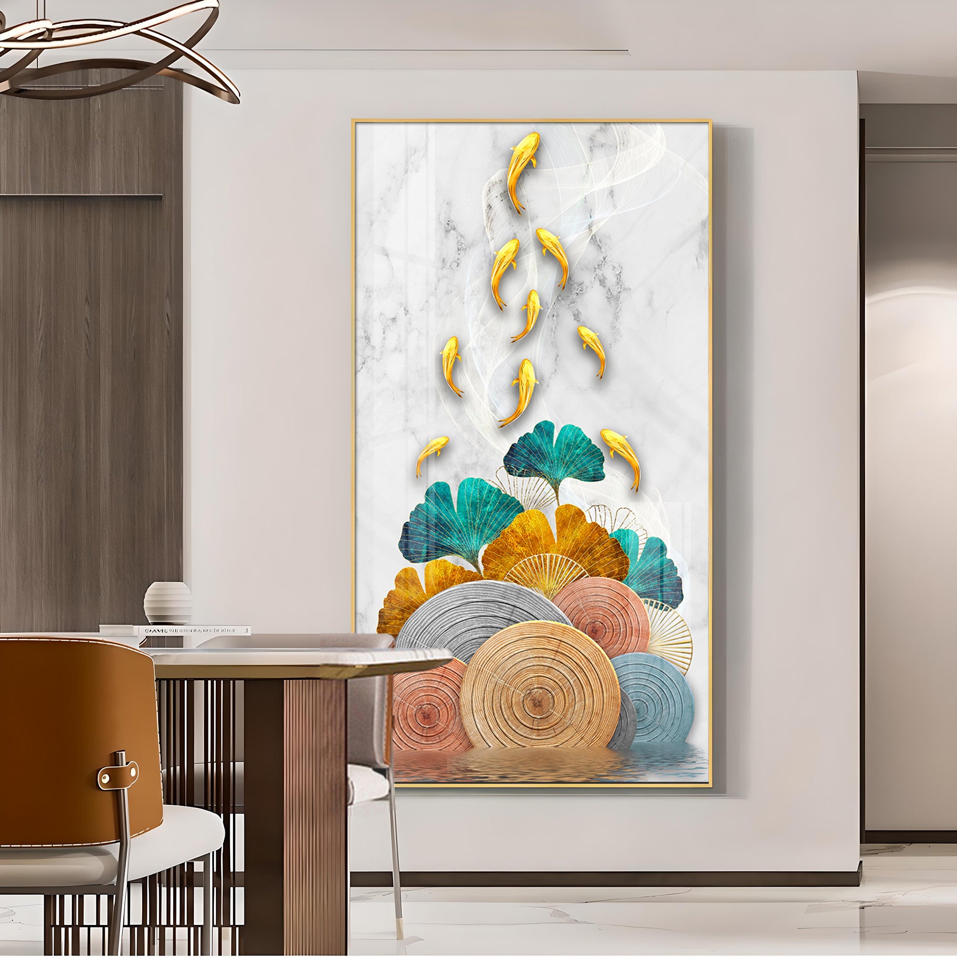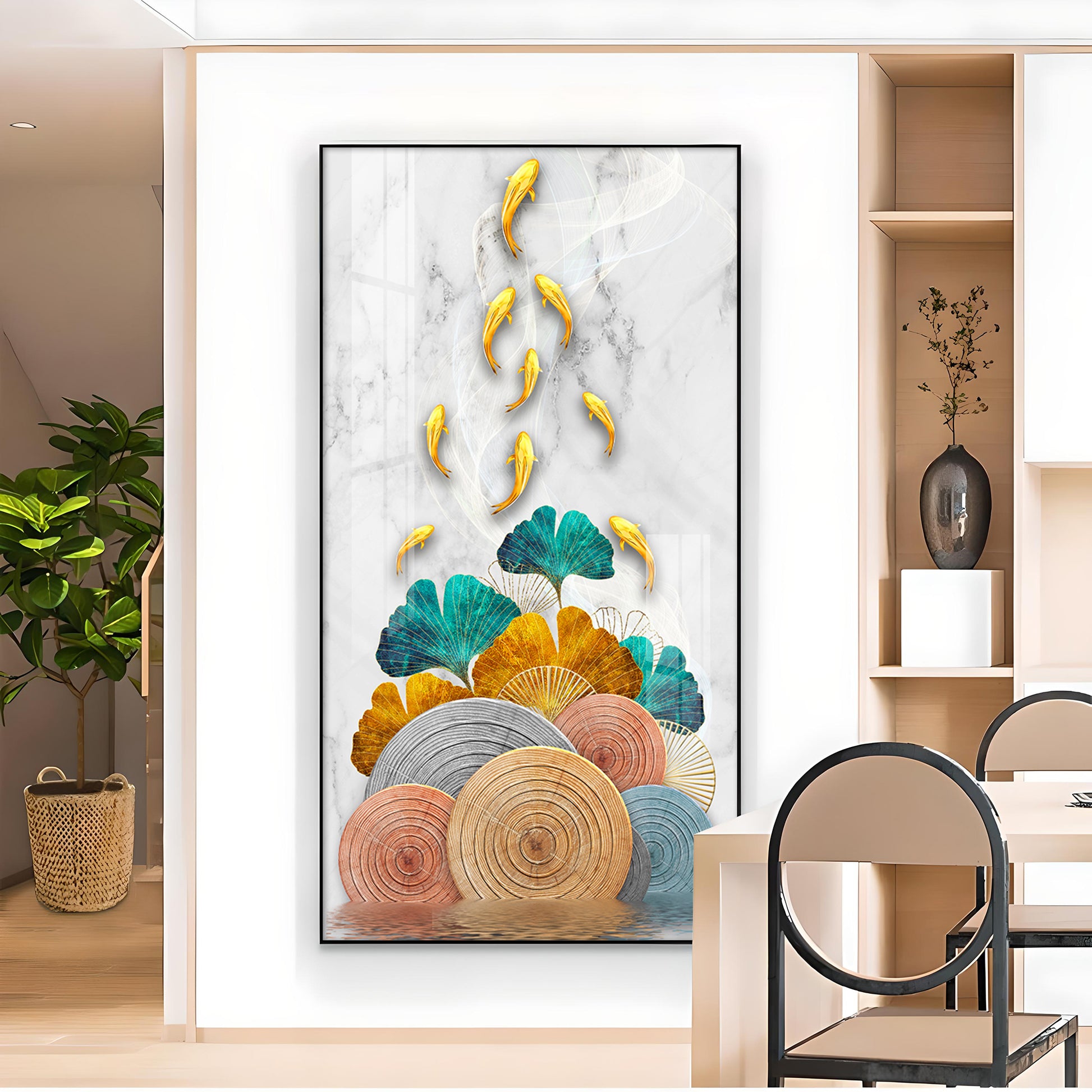 Floral Koi Bliss Artistry Glass Finish Vertical Wall Art