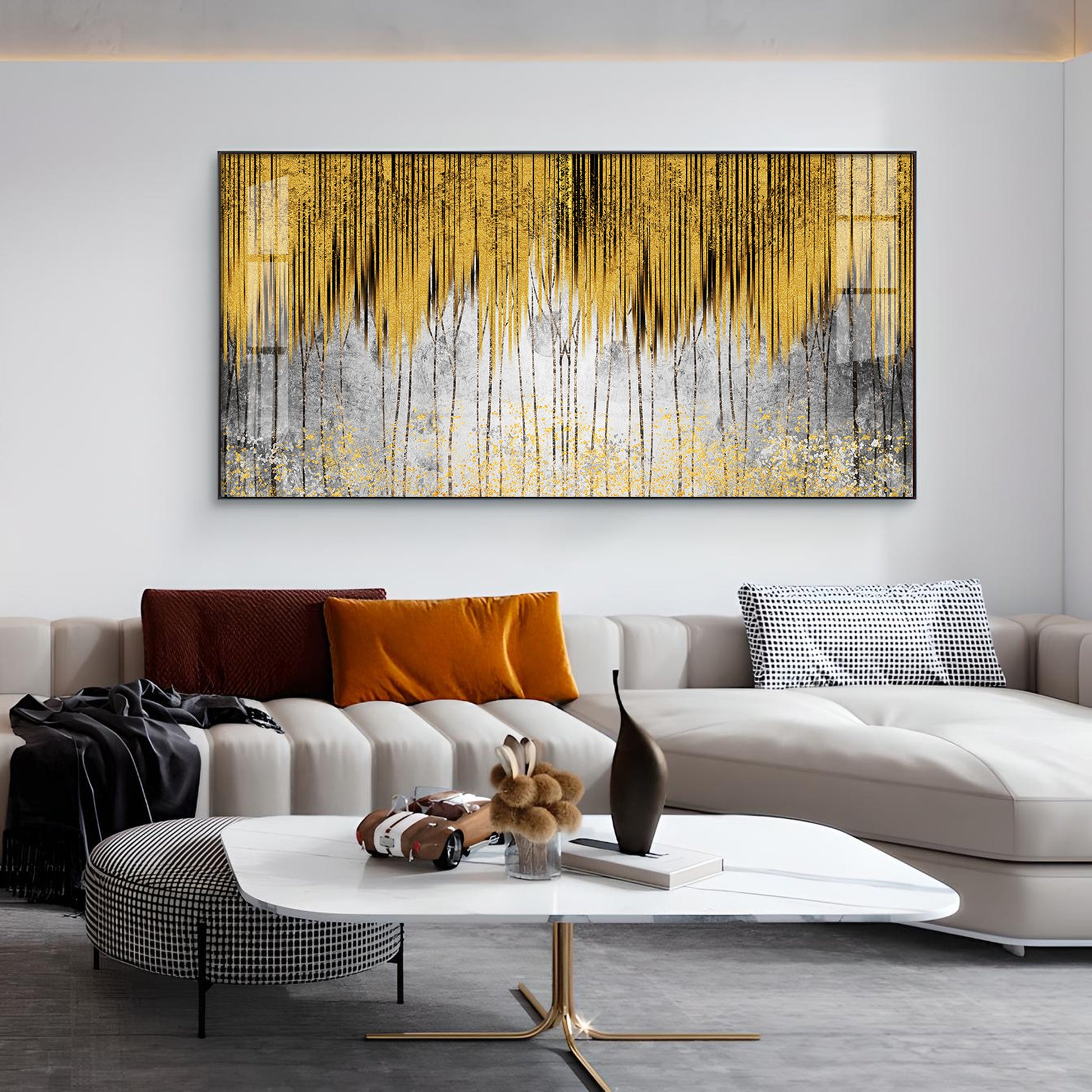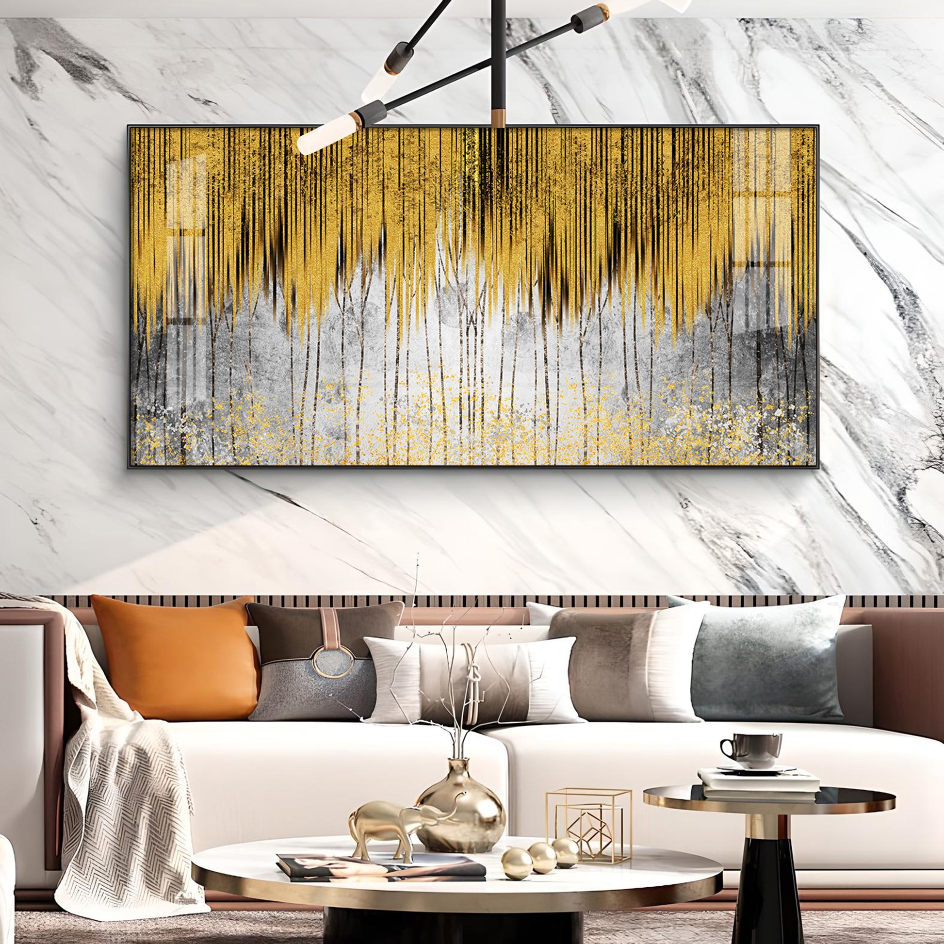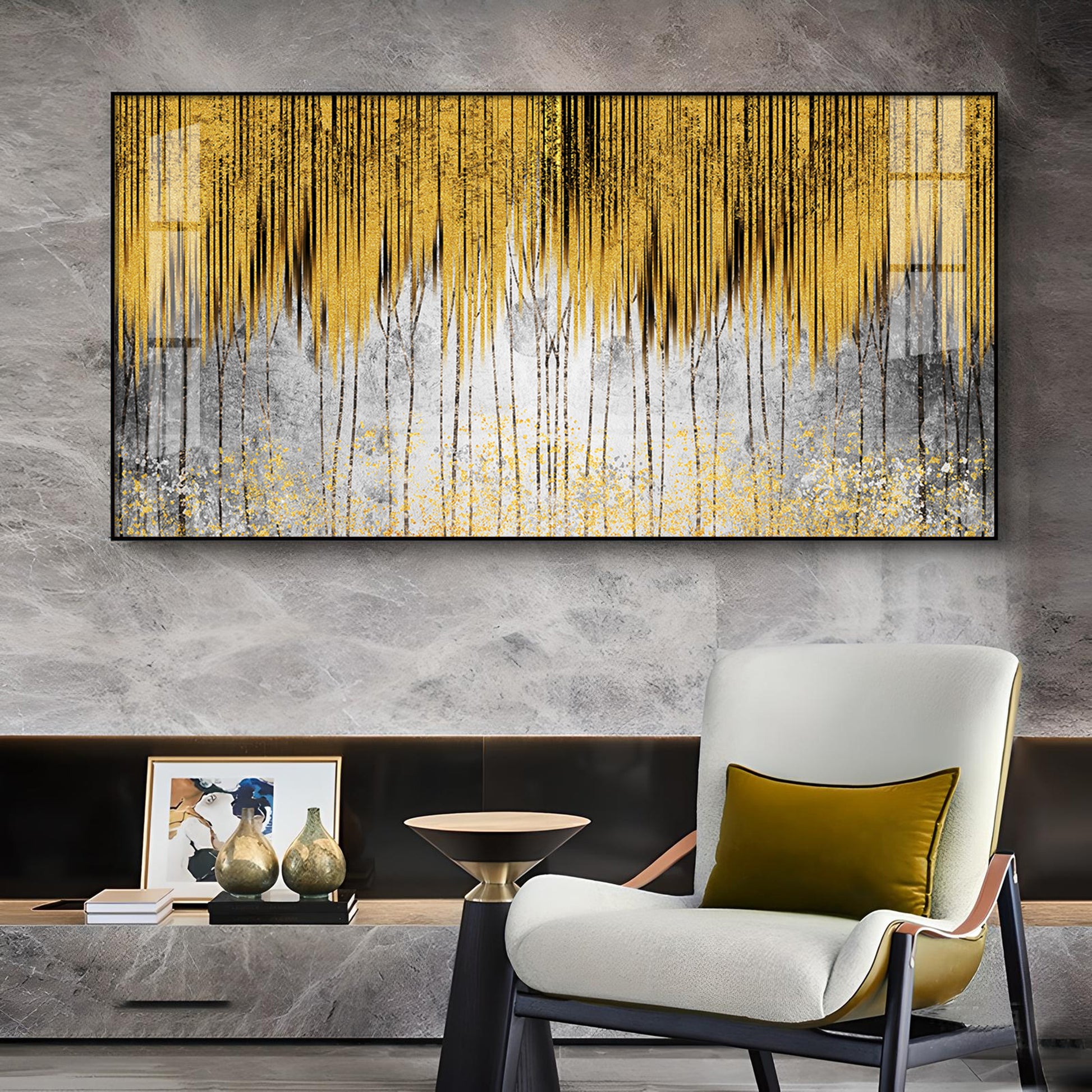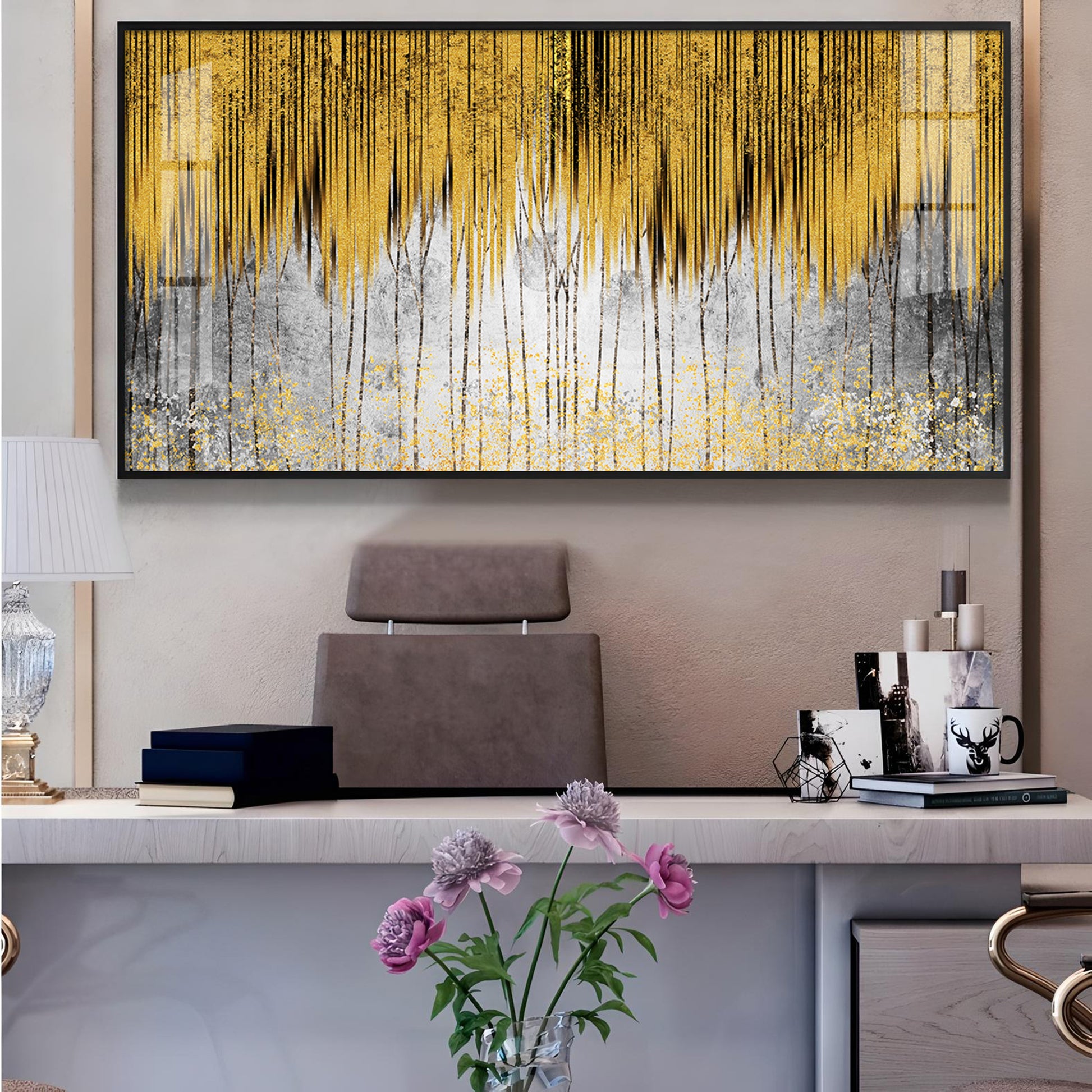 Functional Golden Line Glass Finish Horizontal Wall Art