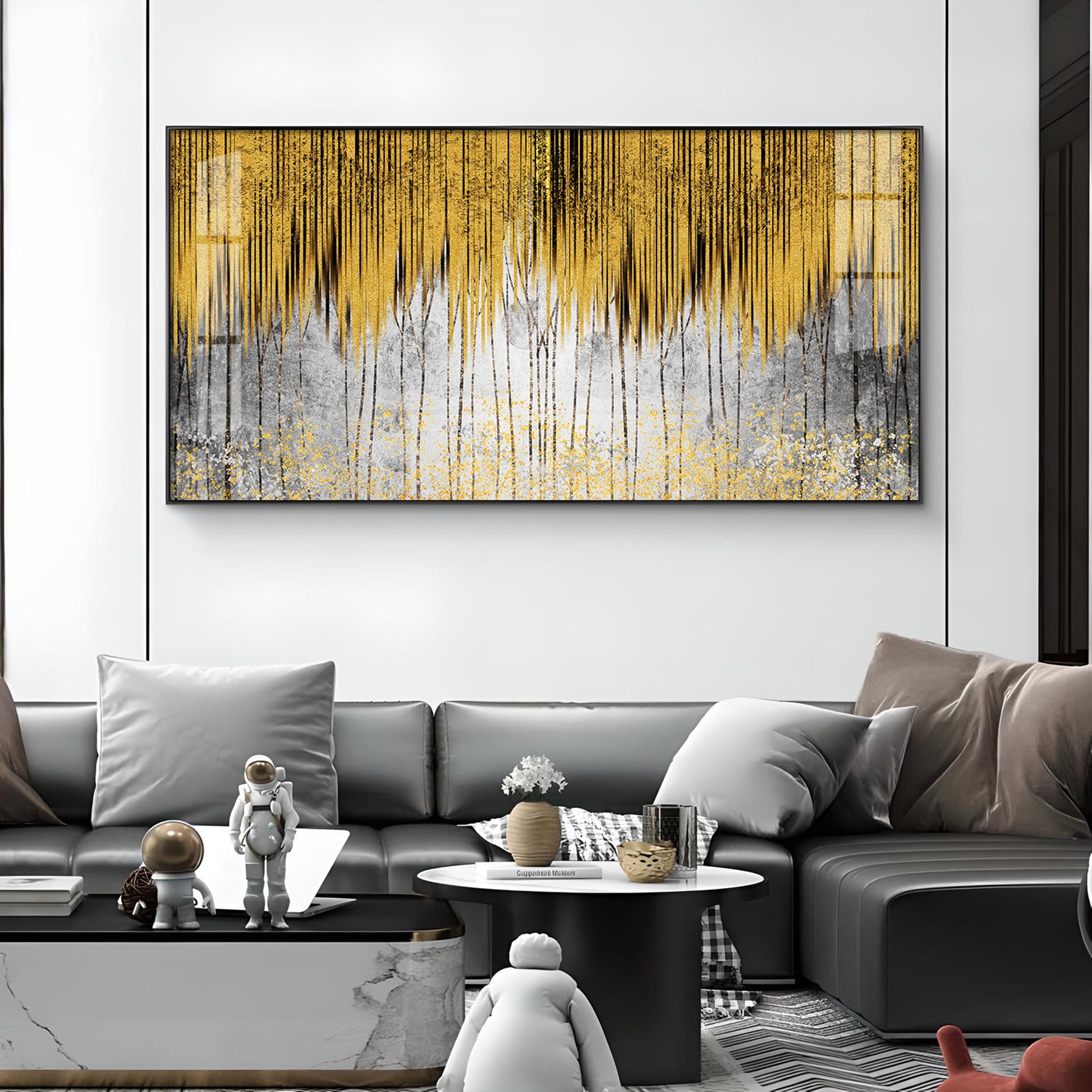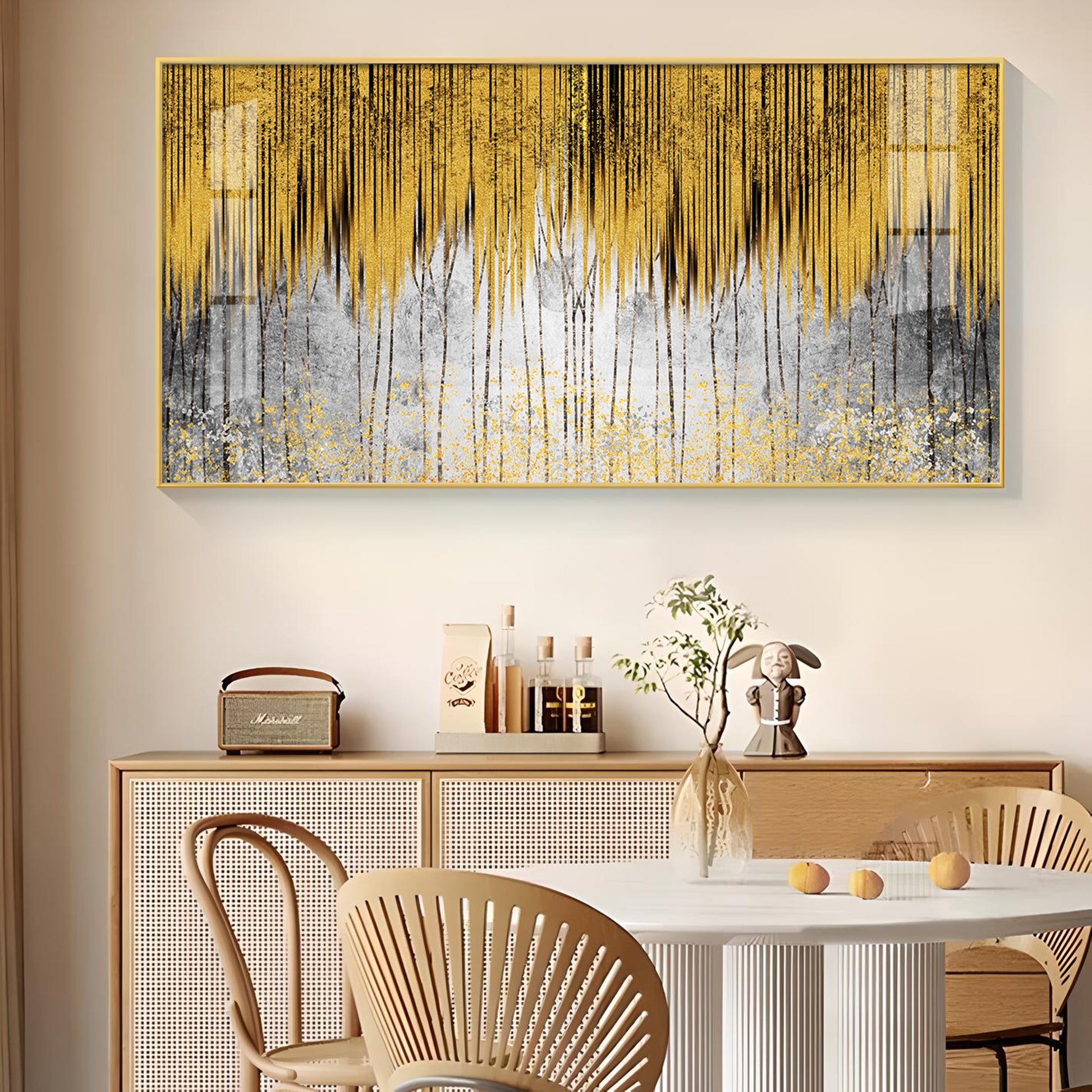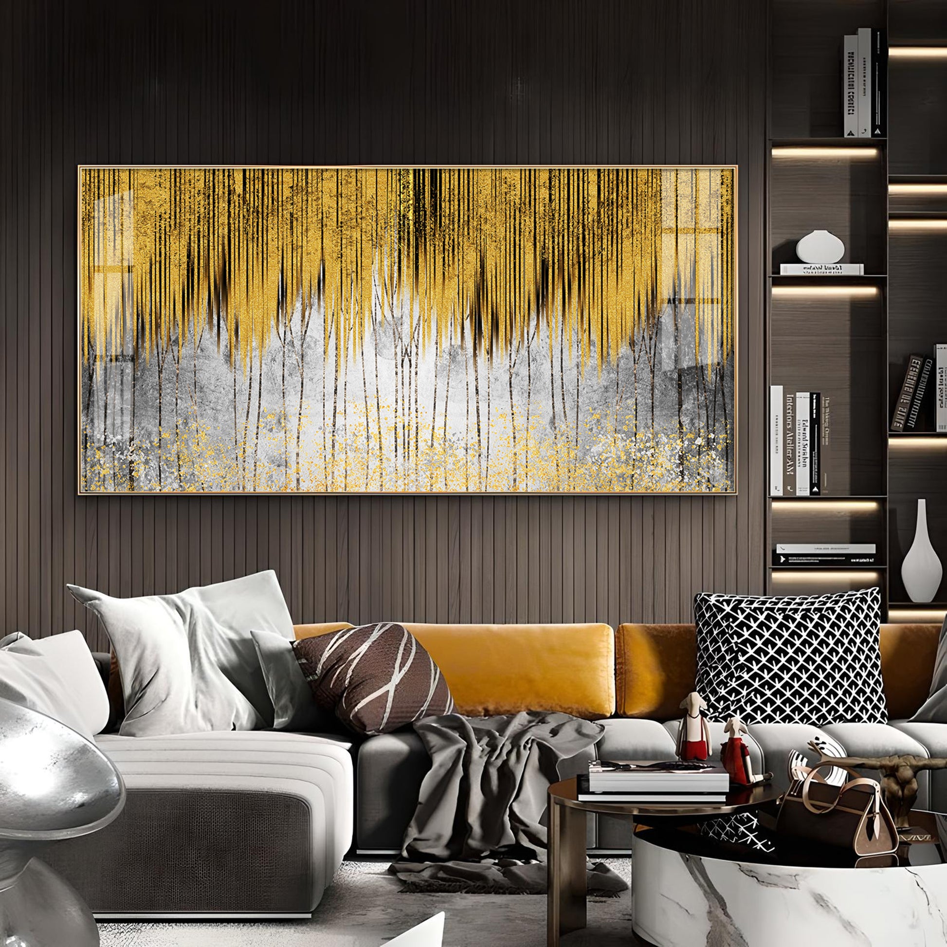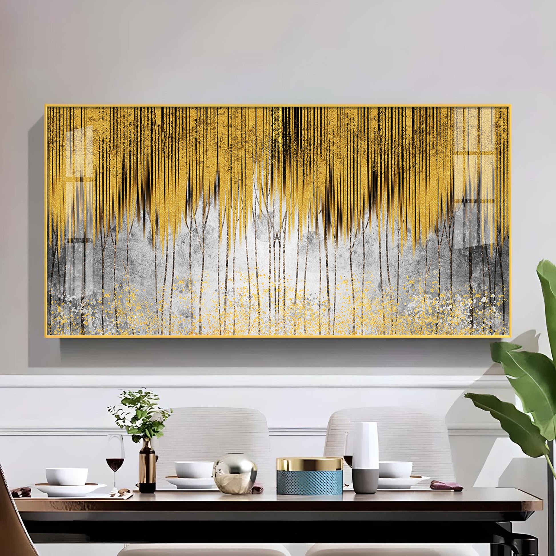 Functional Golden Line Glass Finish Horizontal Wall Art