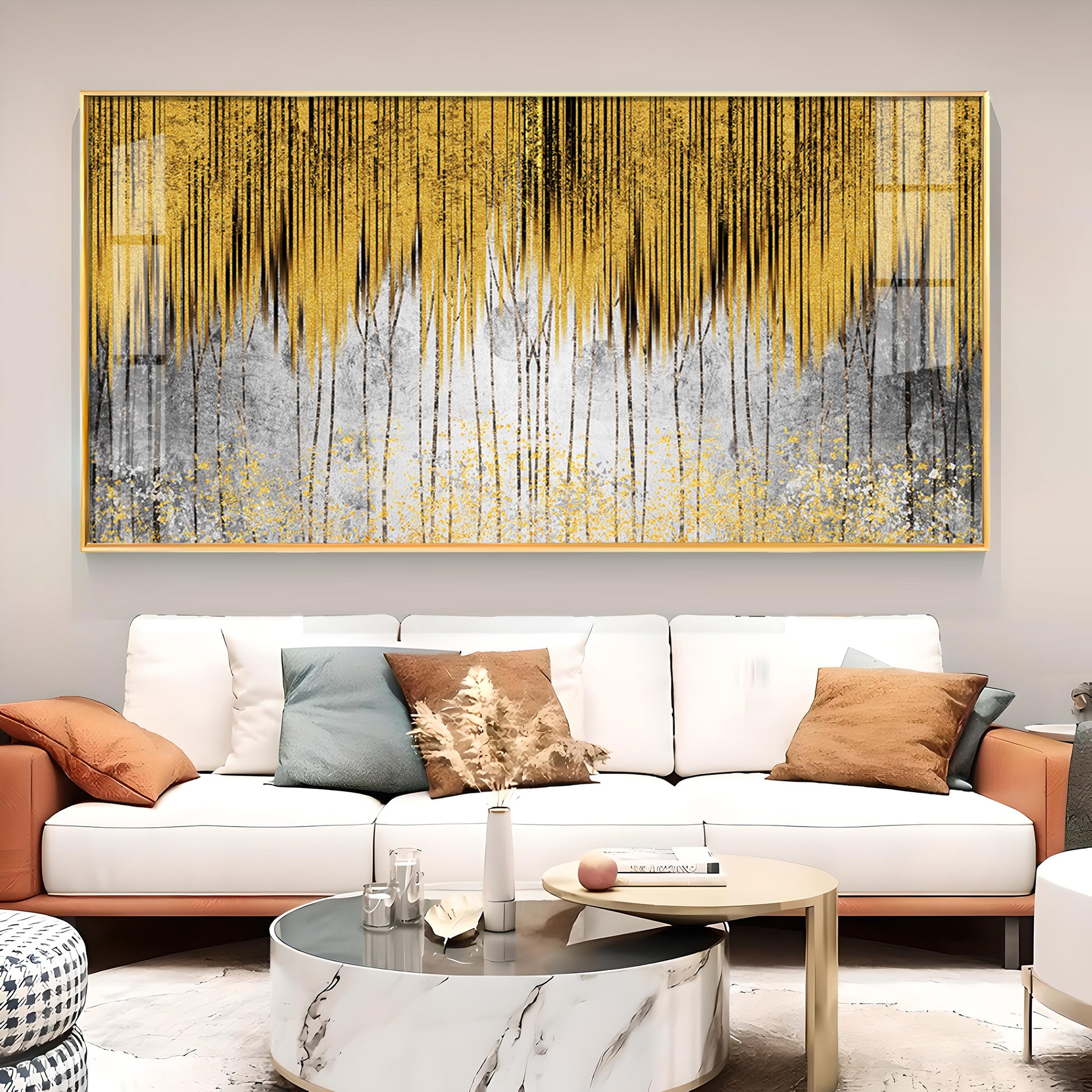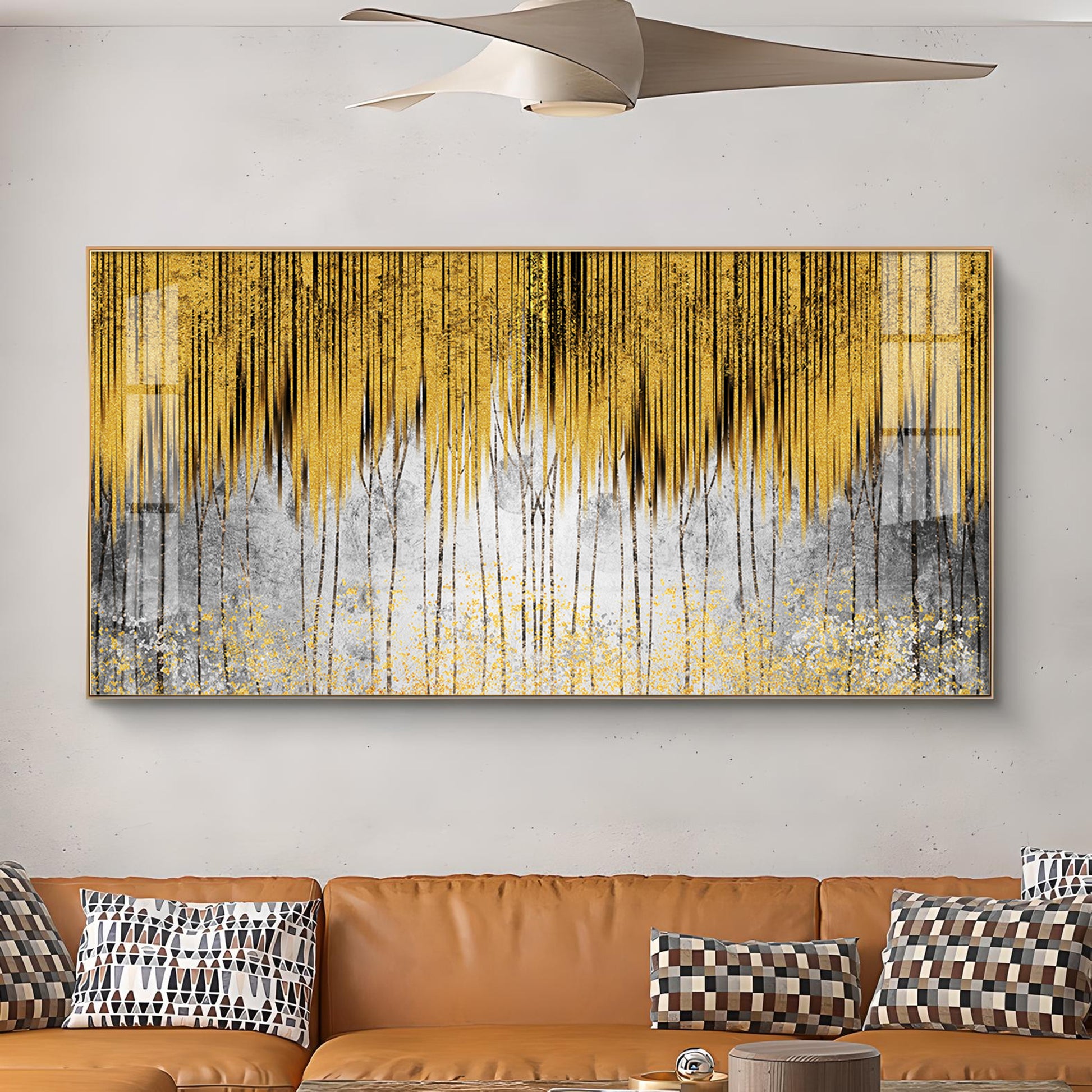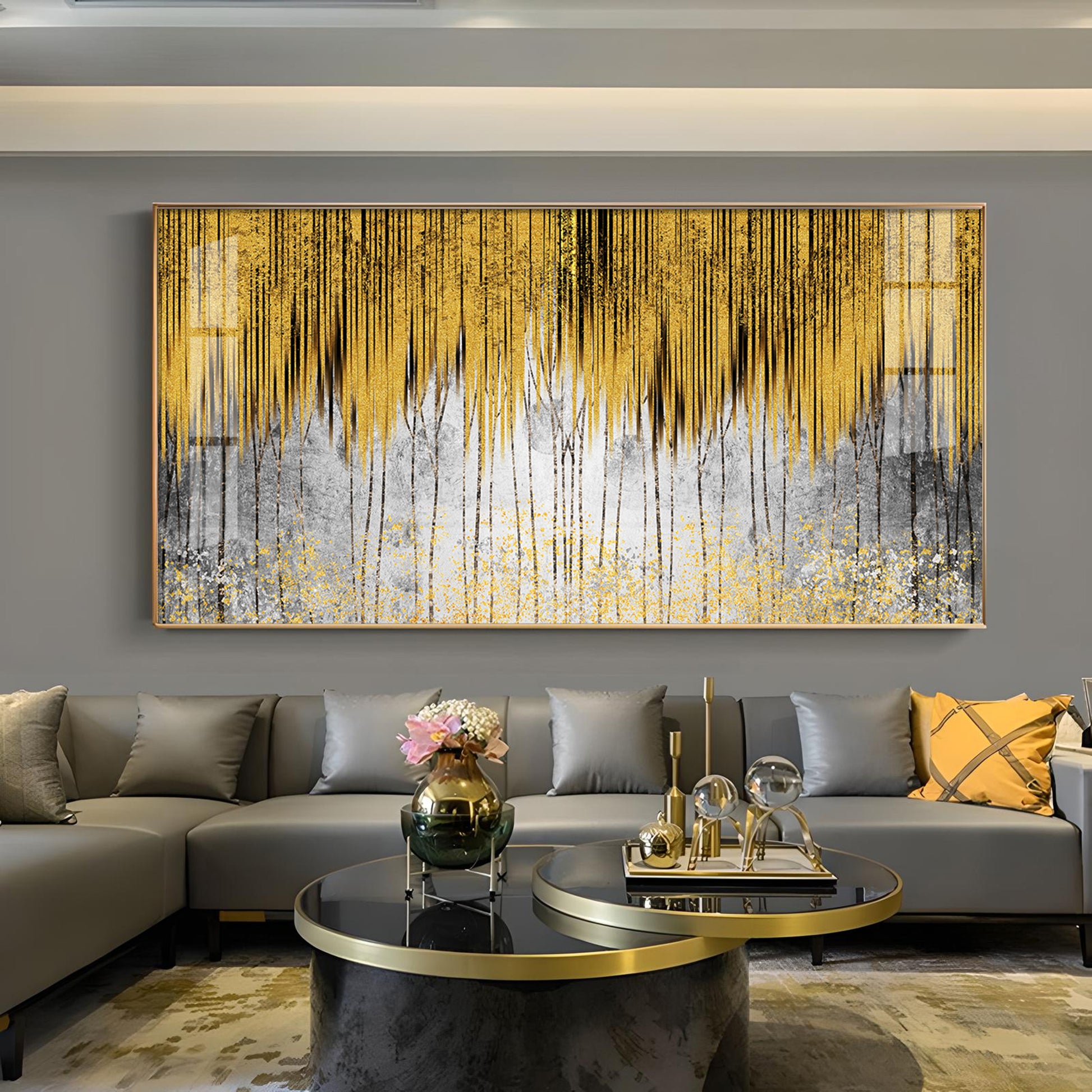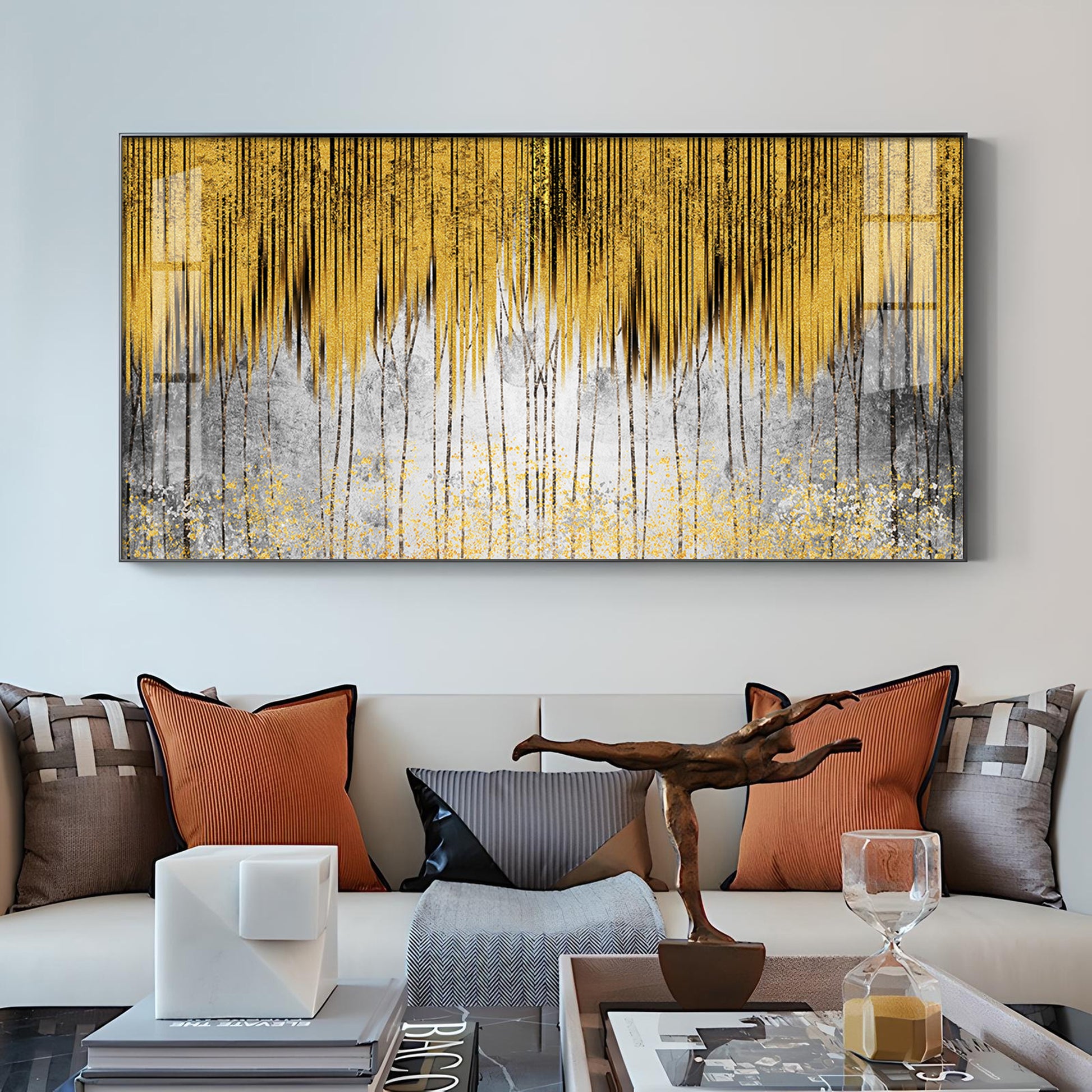 Functional Golden Line Glass Finish Horizontal Wall Art