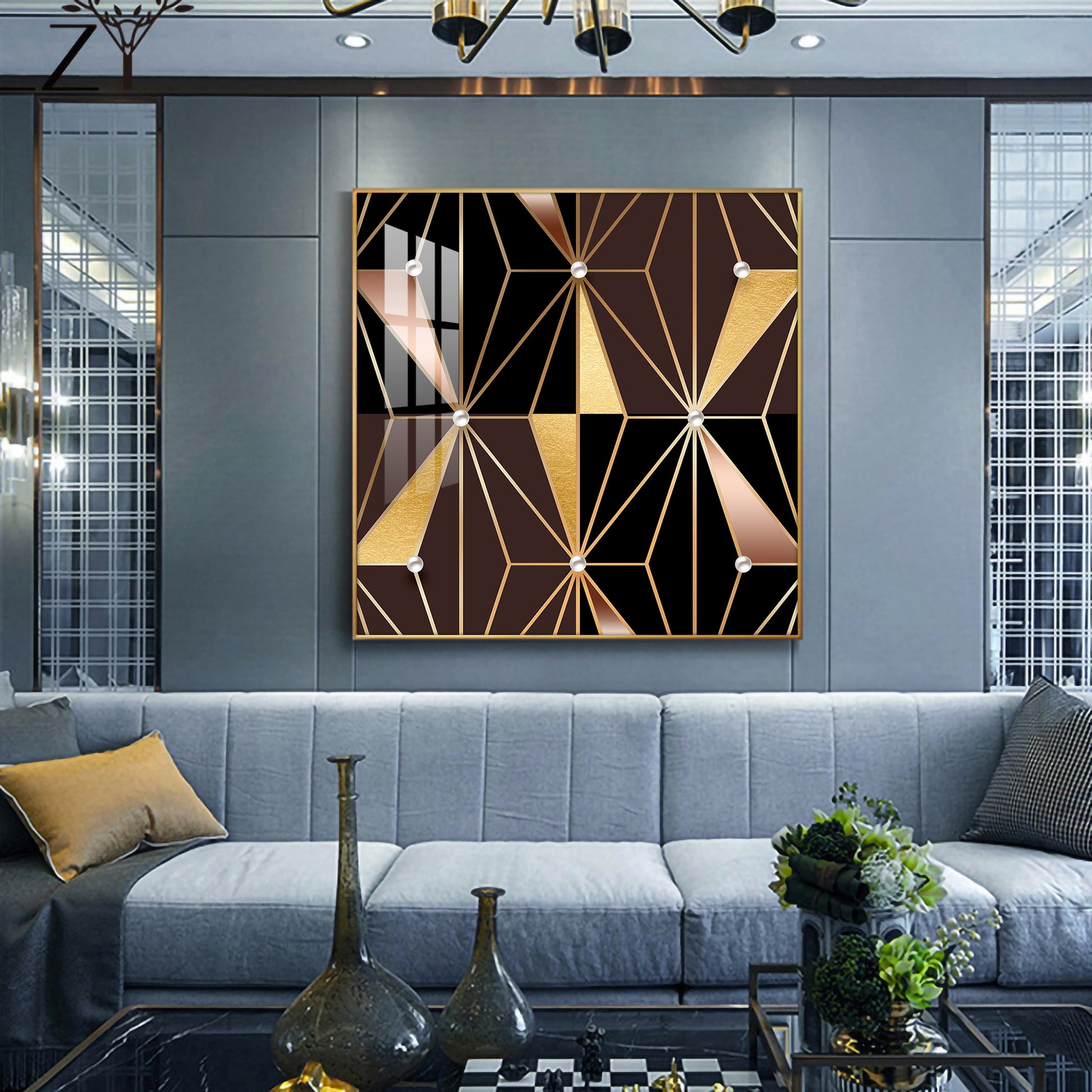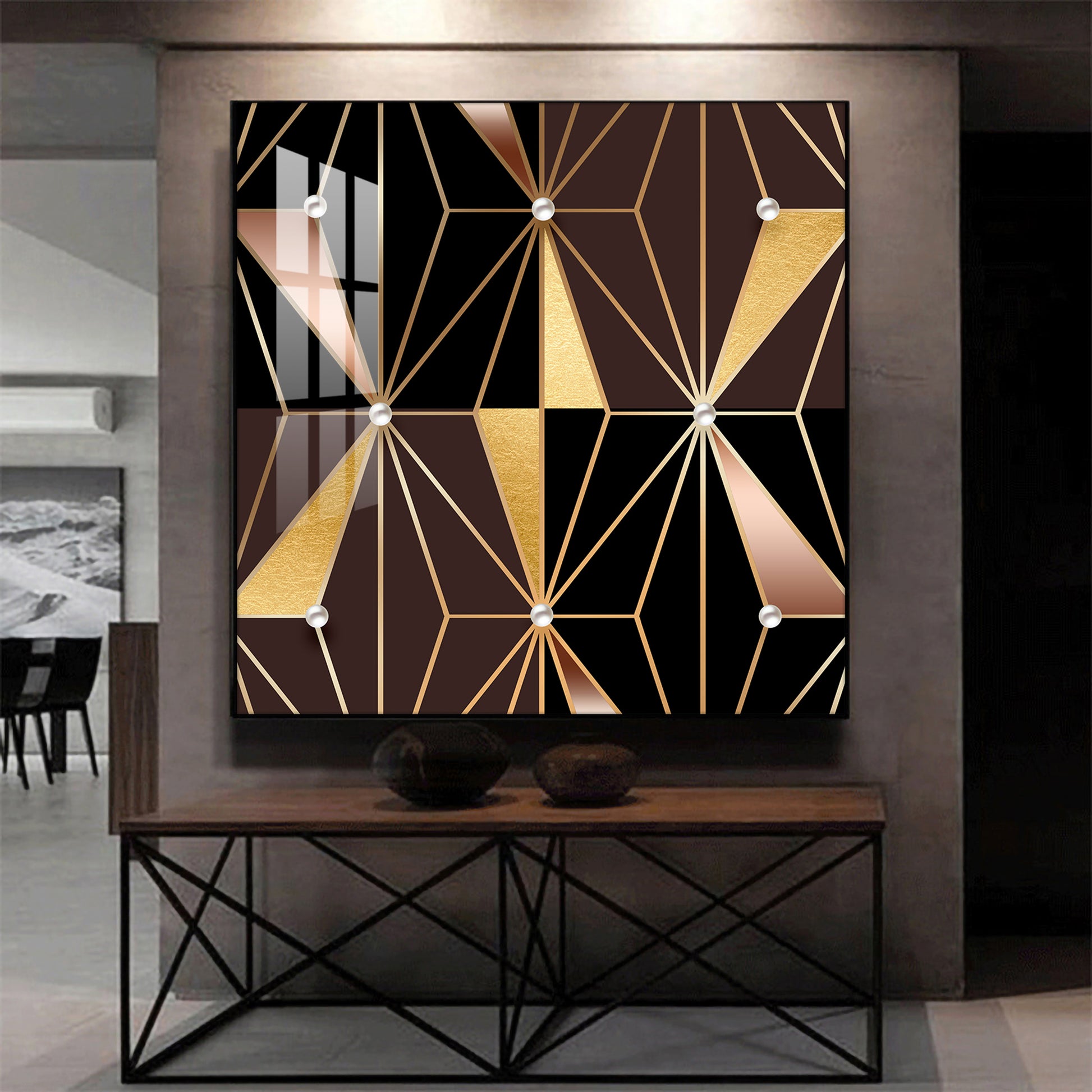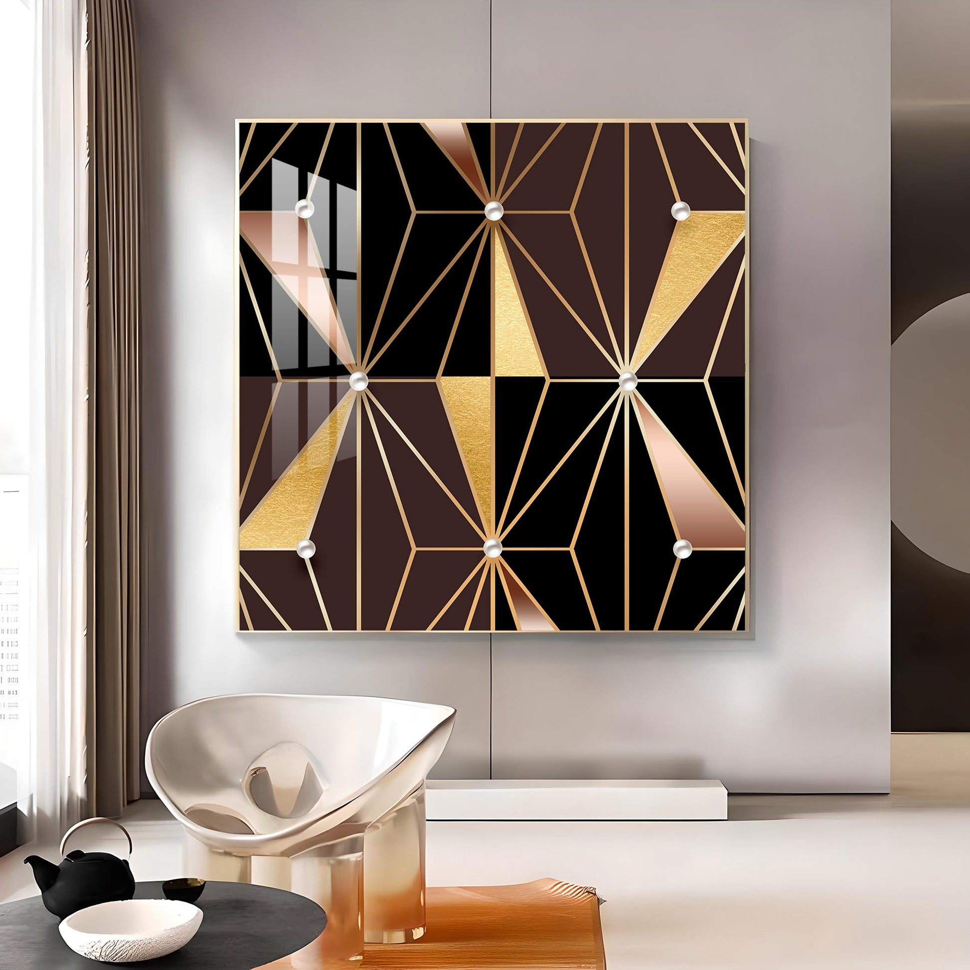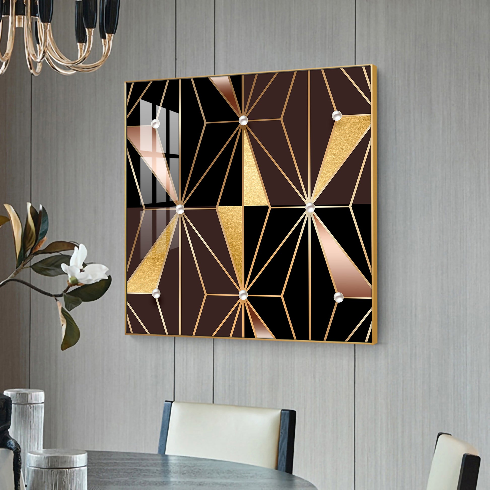 Geometric Glamour Glass Finish Square Wall Art