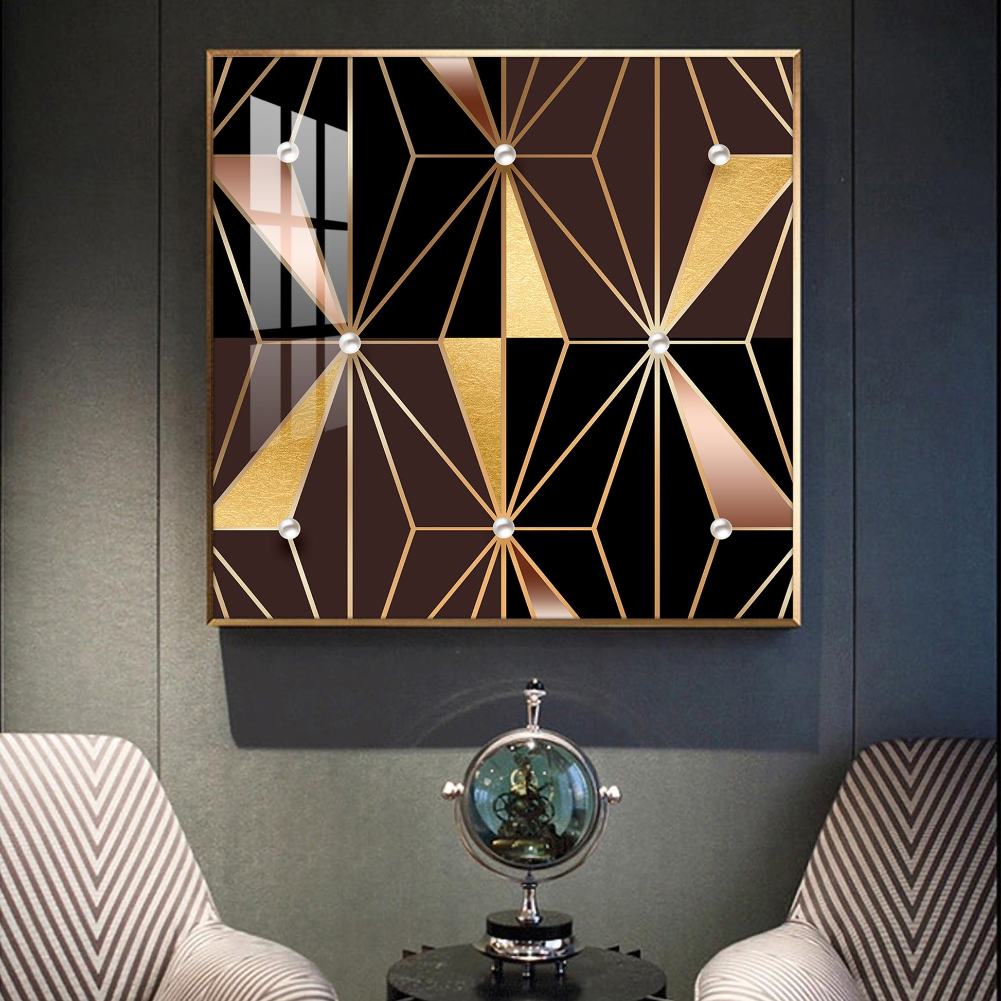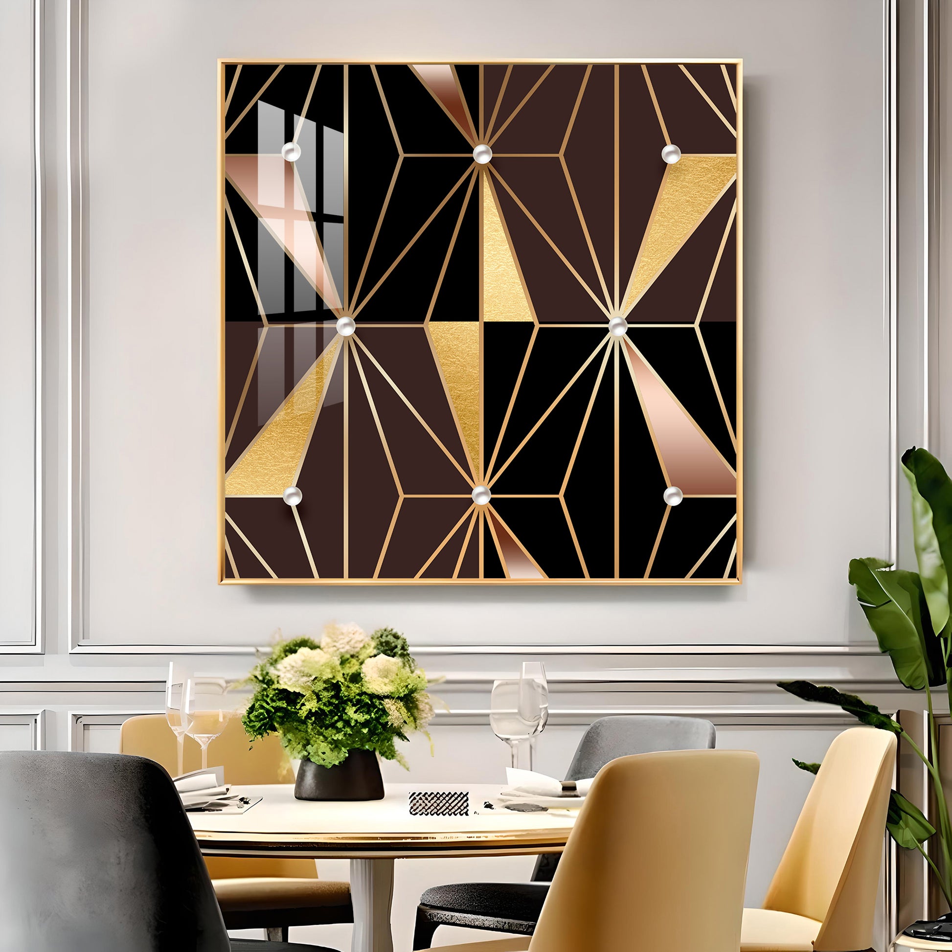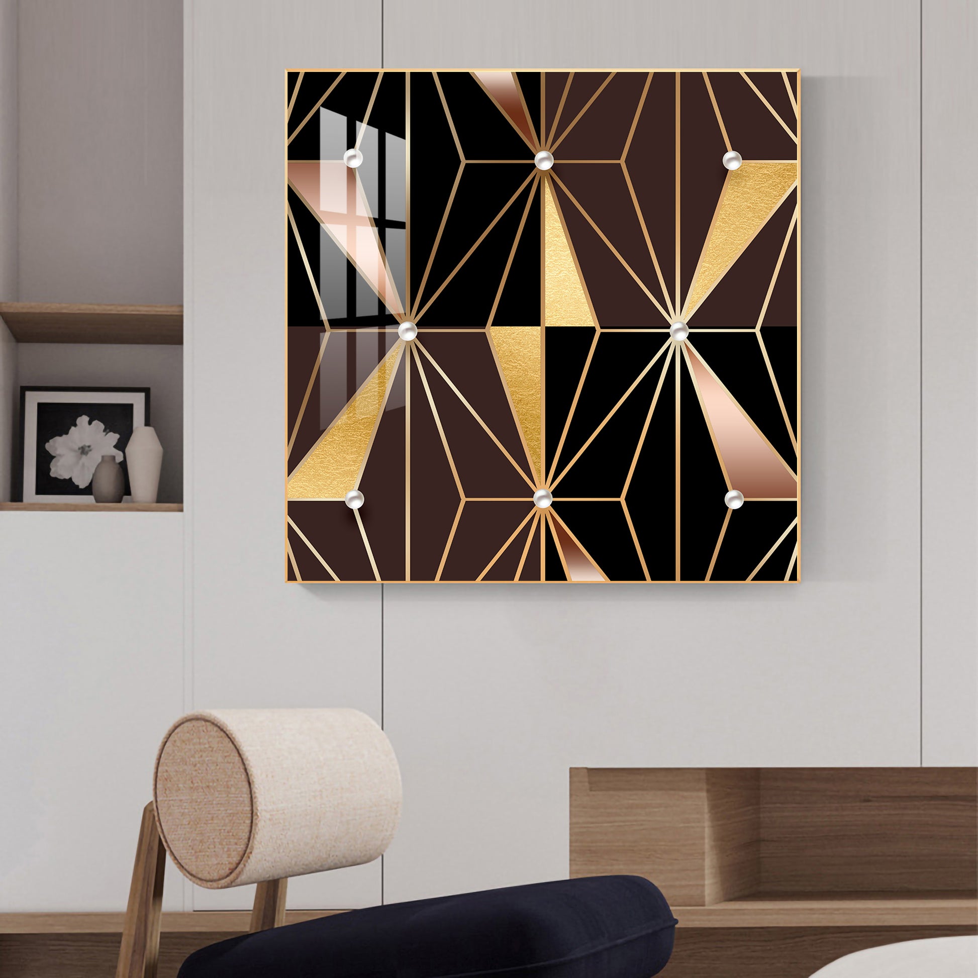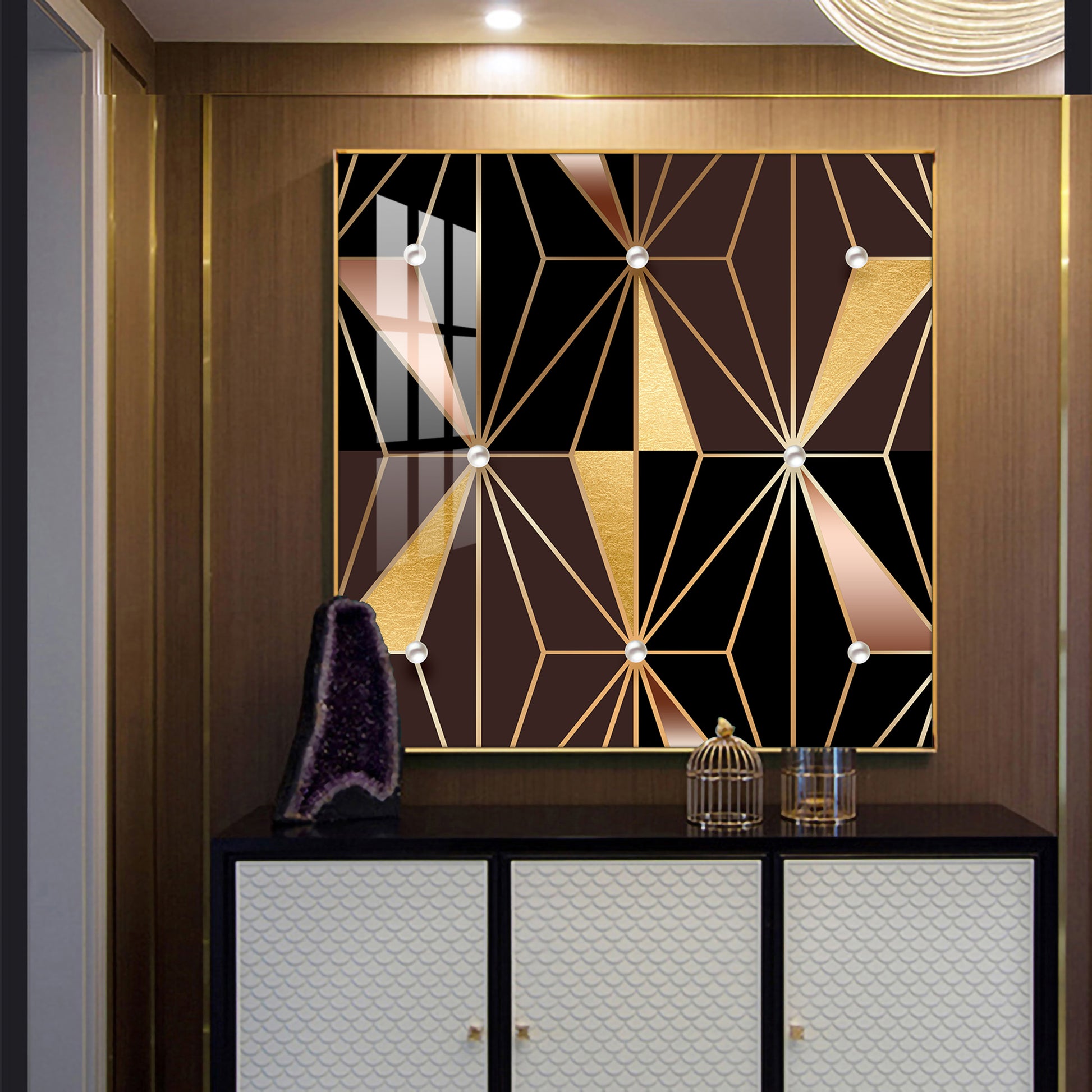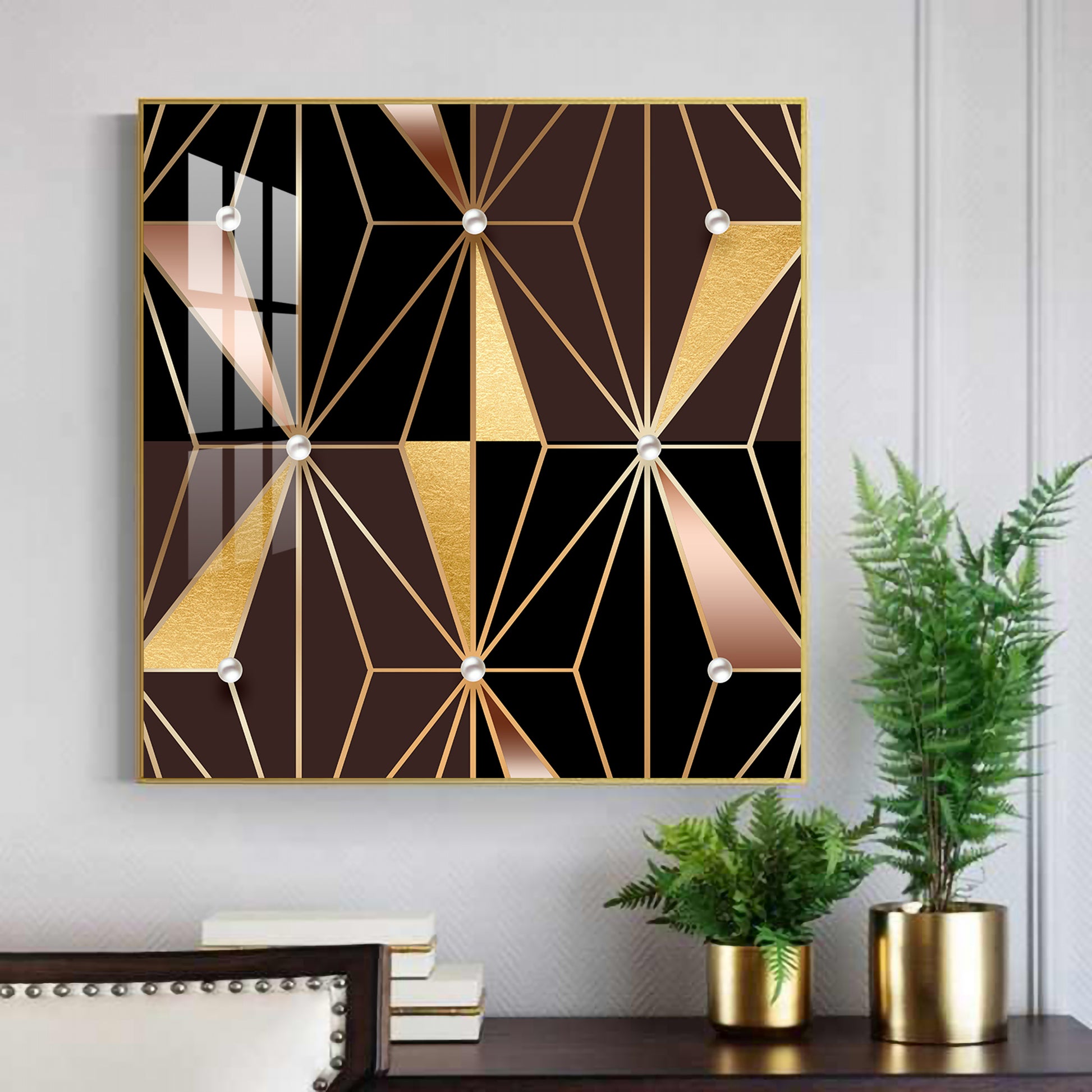 Geometric Glamour Glass Finish Square Wall Art