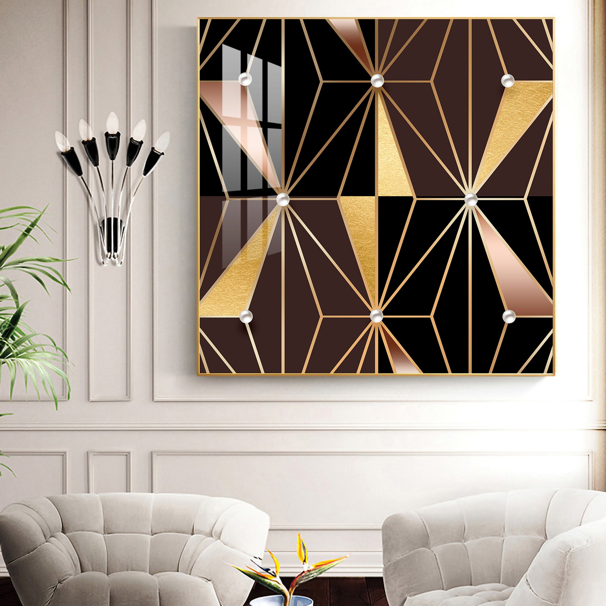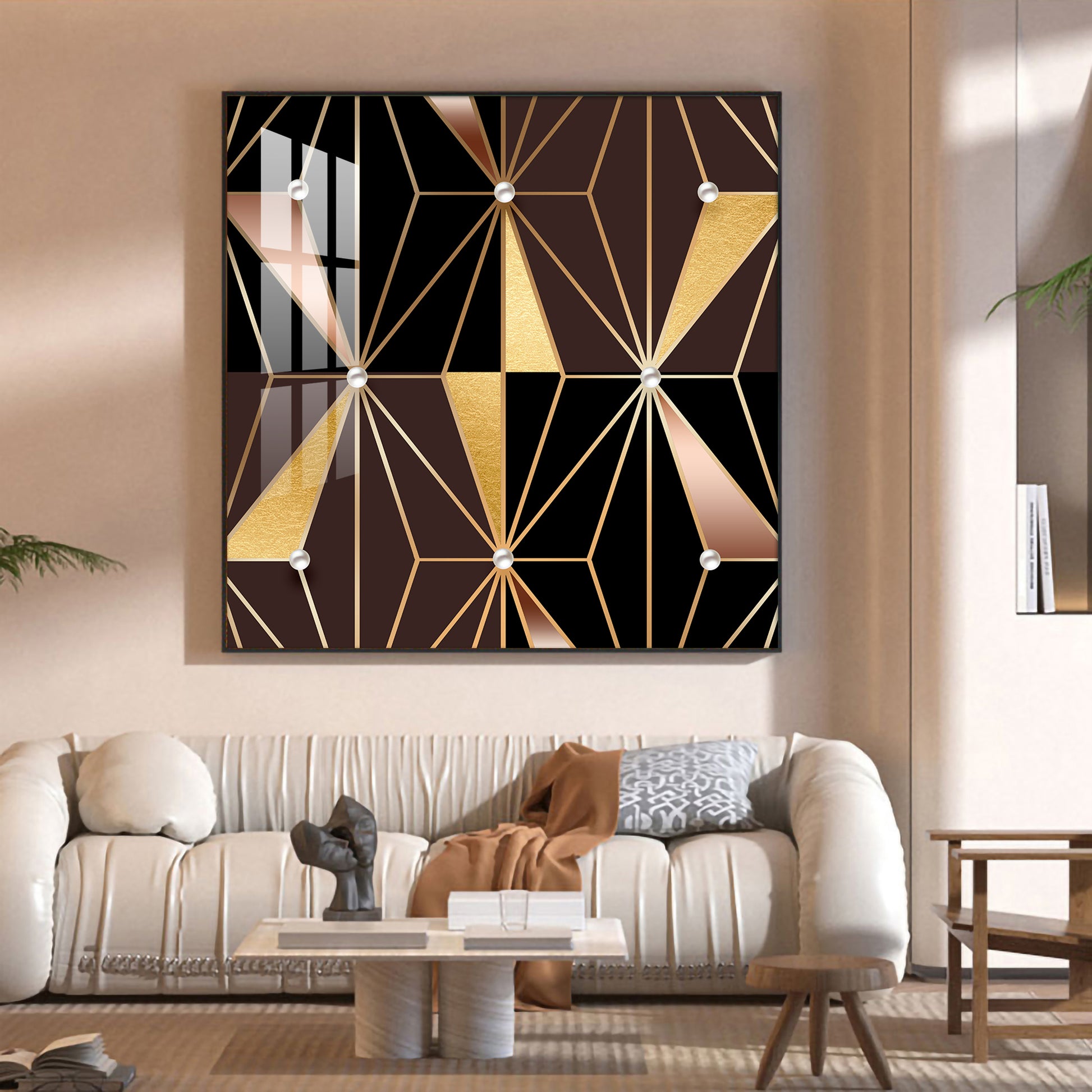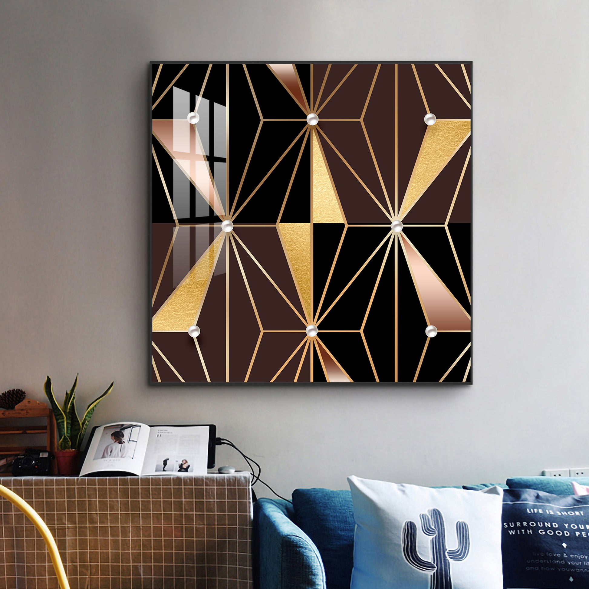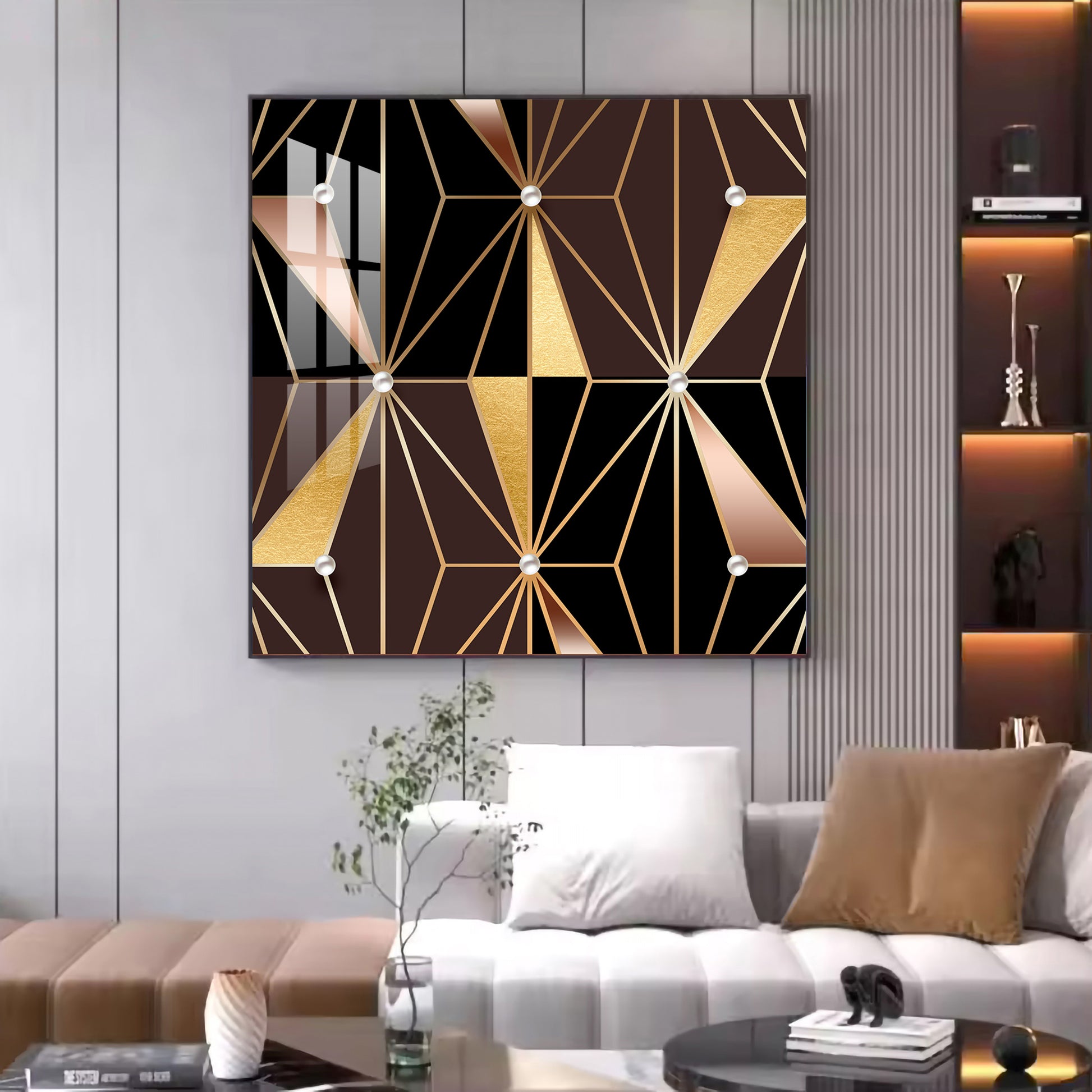 Geometric Glamour Glass Finish Square Wall Art
