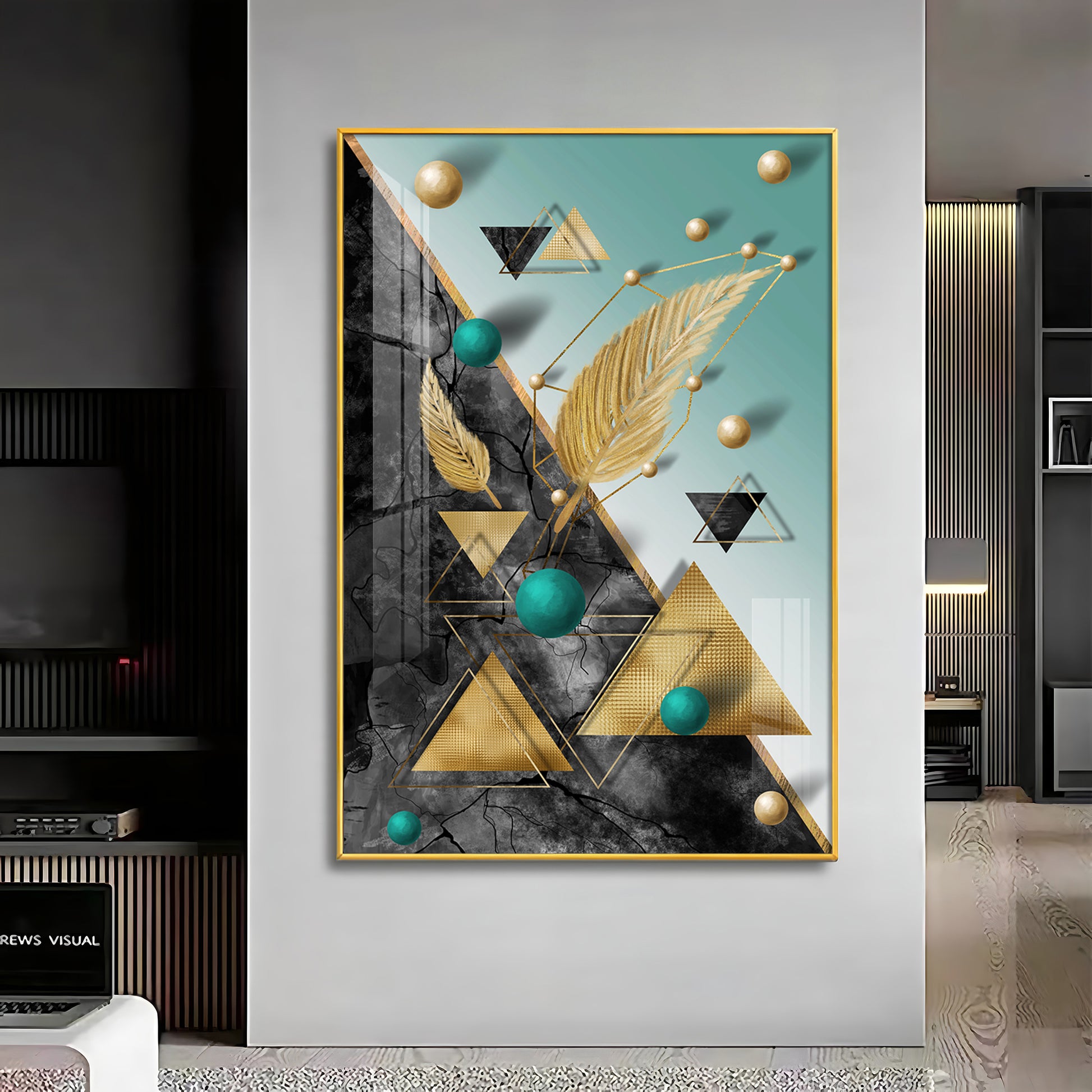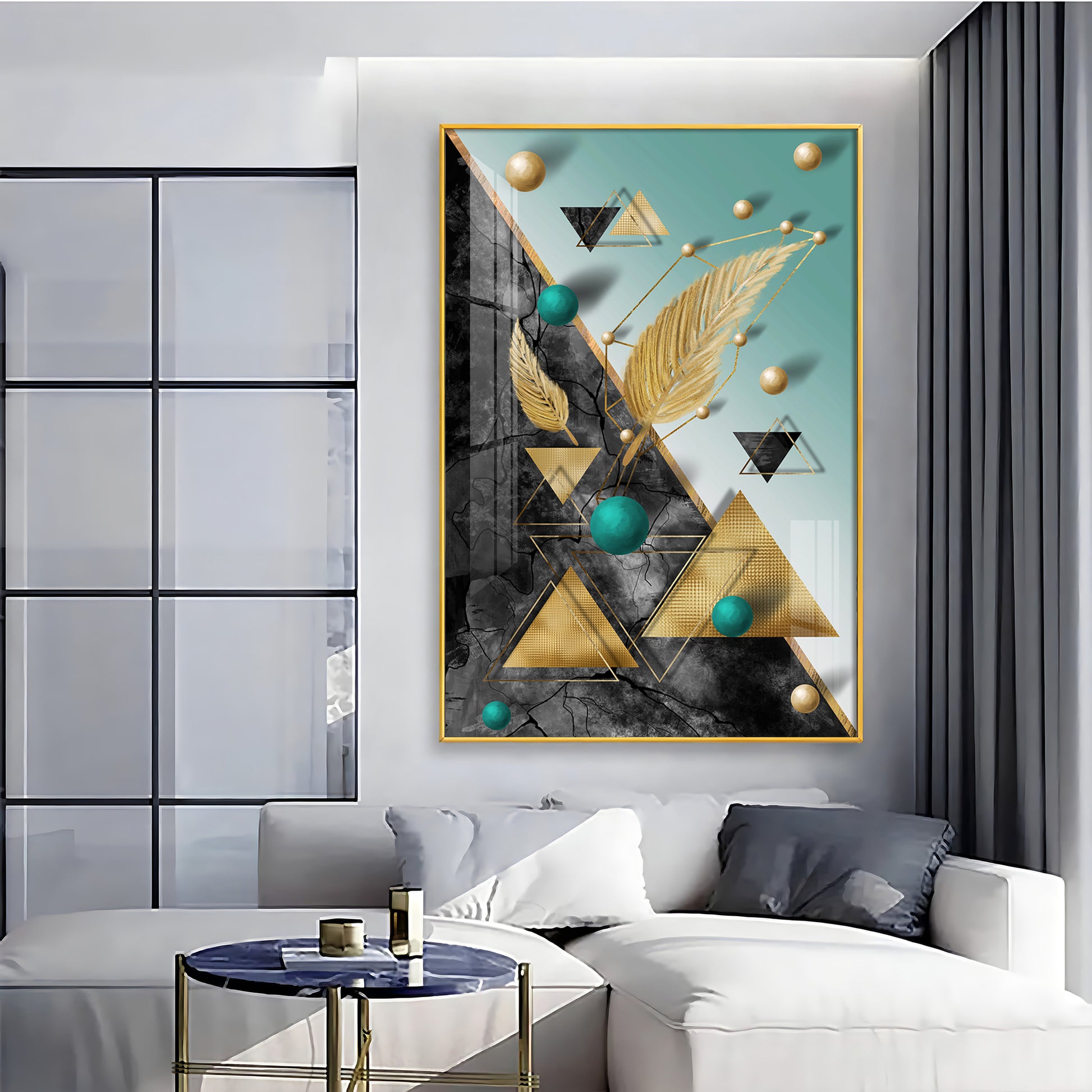 Geometric Luxe Living Glass Finish Vertical Wall Art