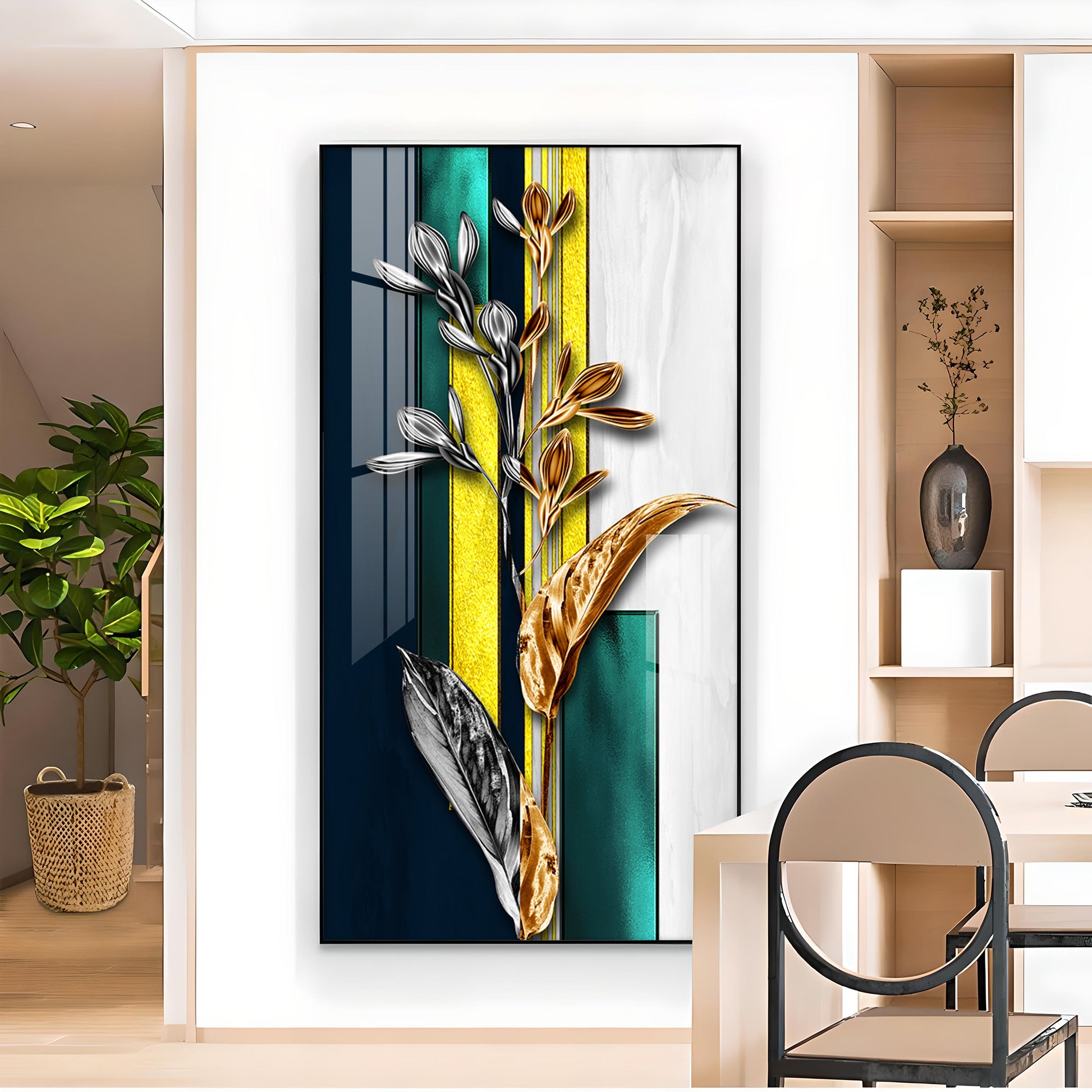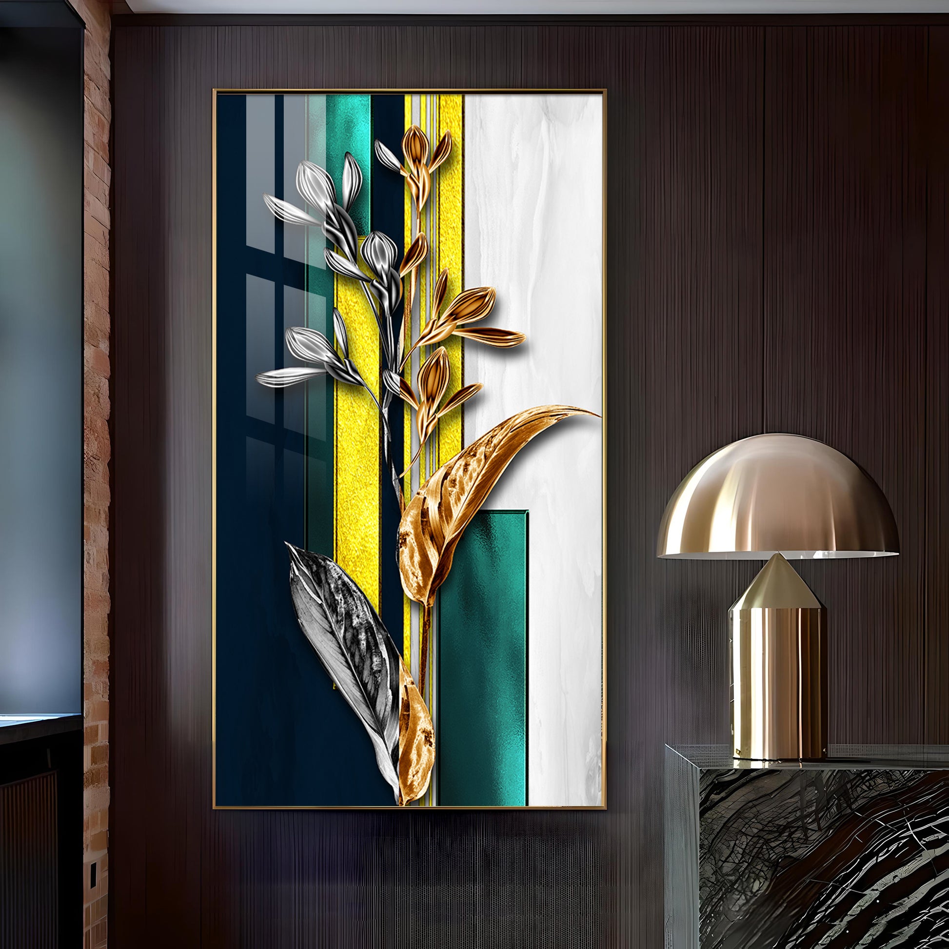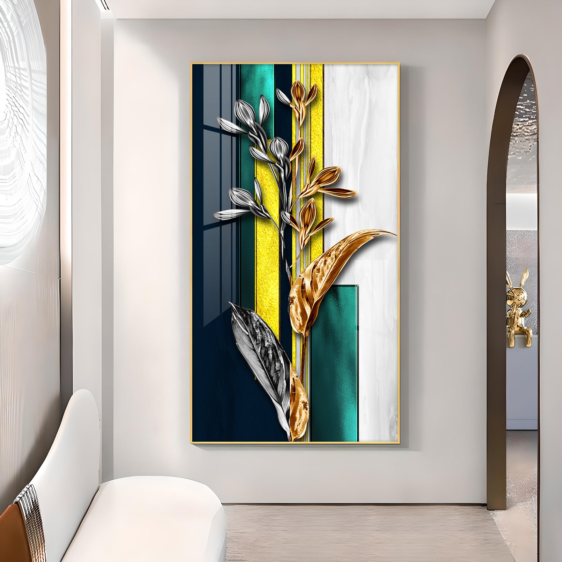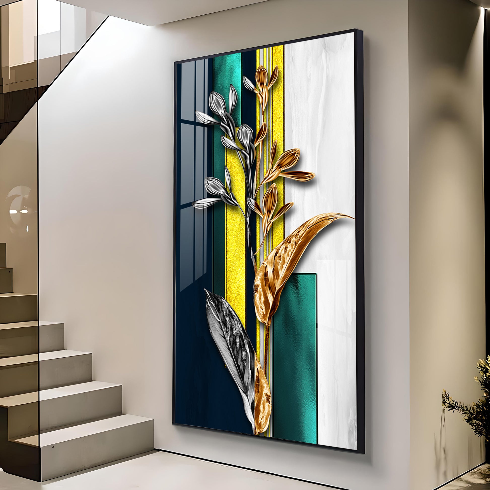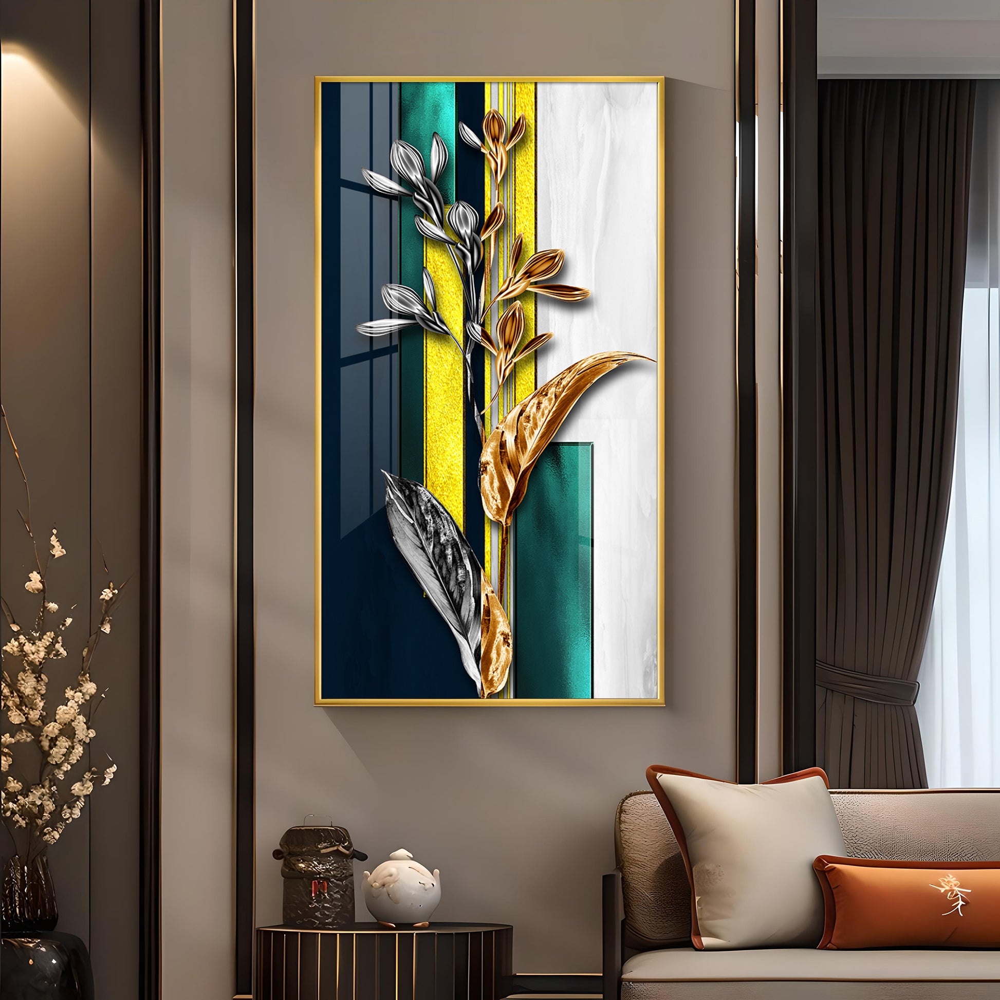 Gilded Floral Glass Finish Vertical Wall Art