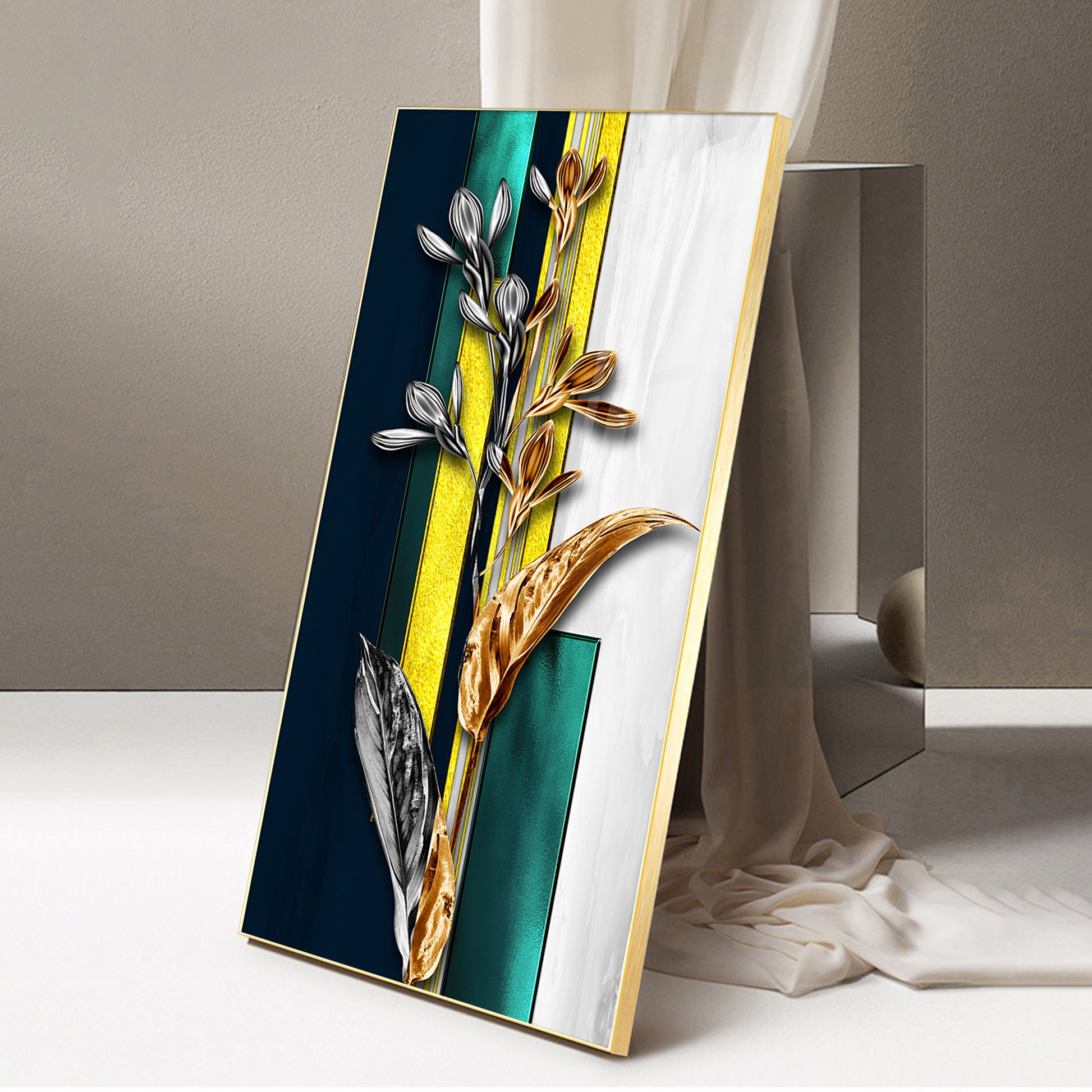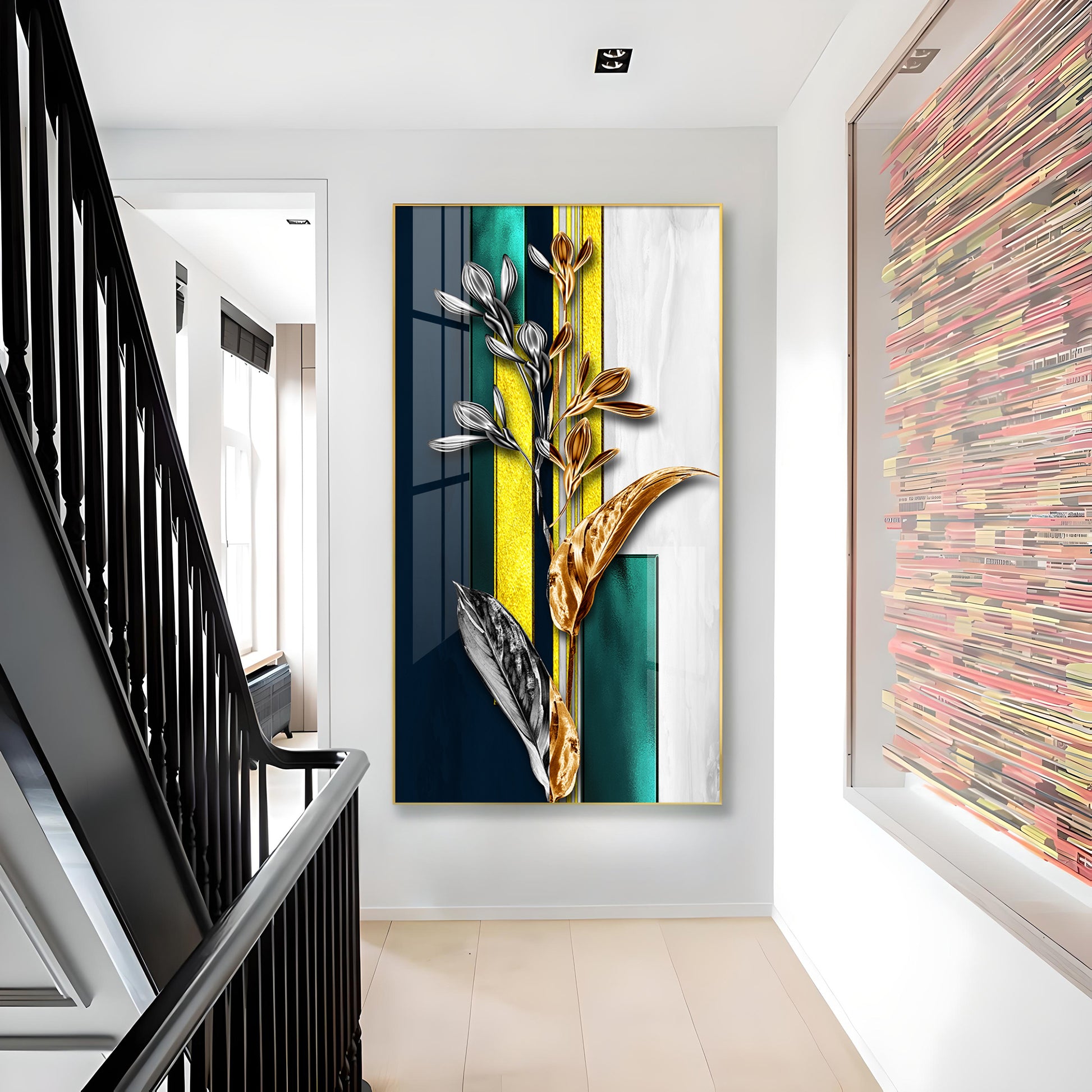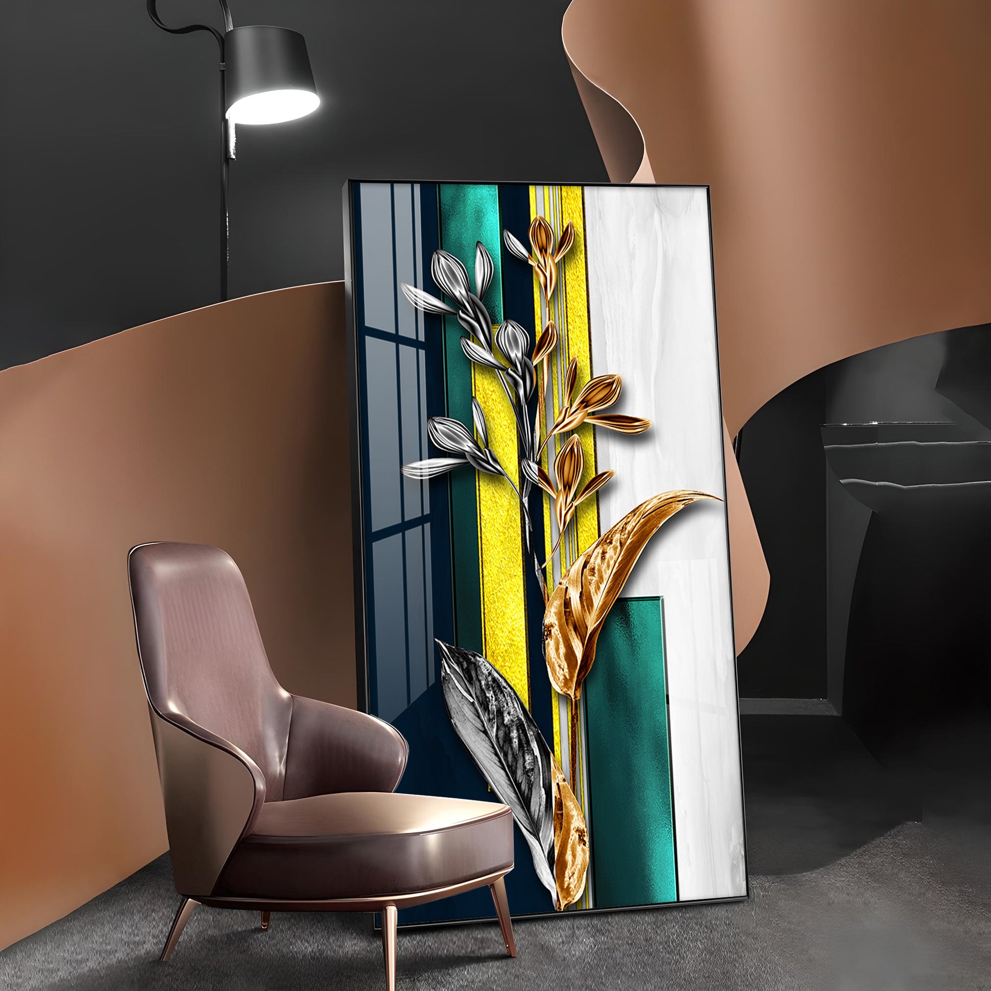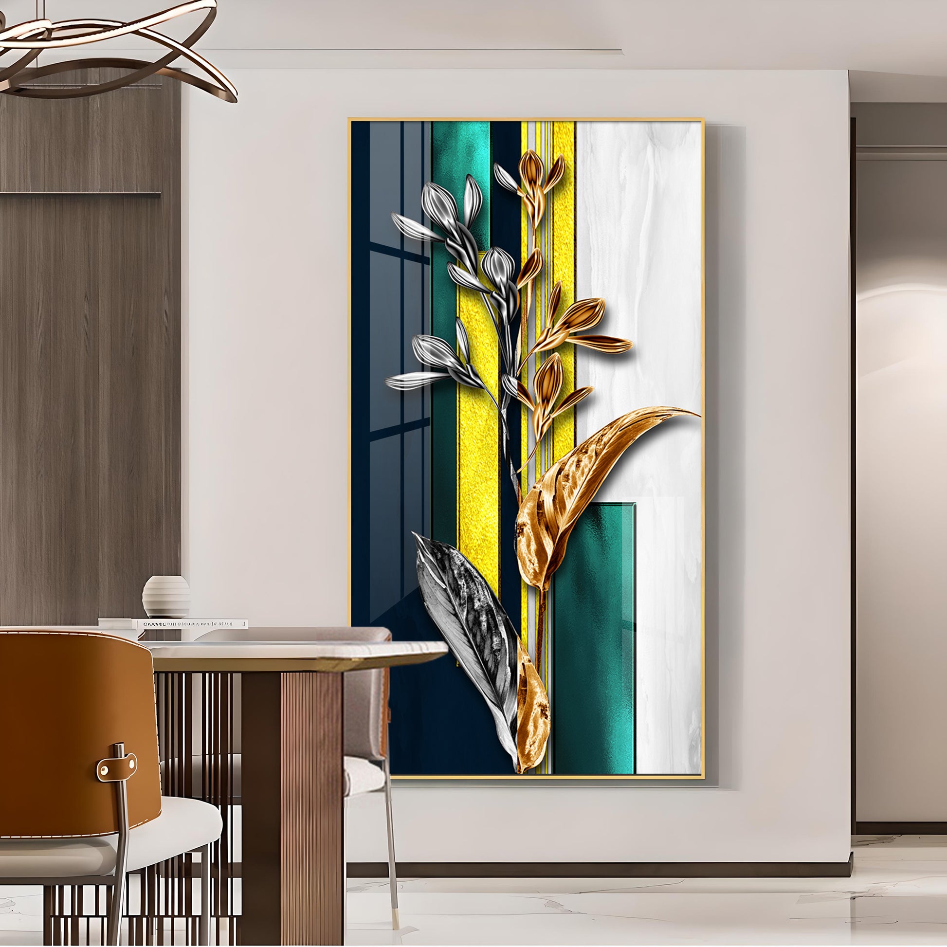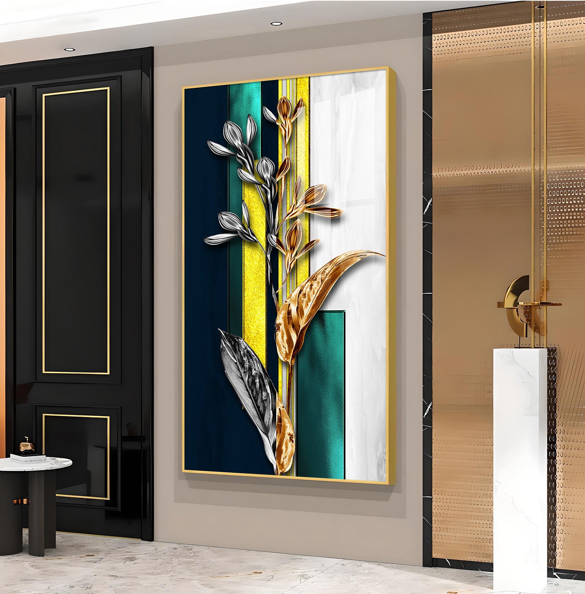 Gilded Floral Glass Finish Vertical Wall Art