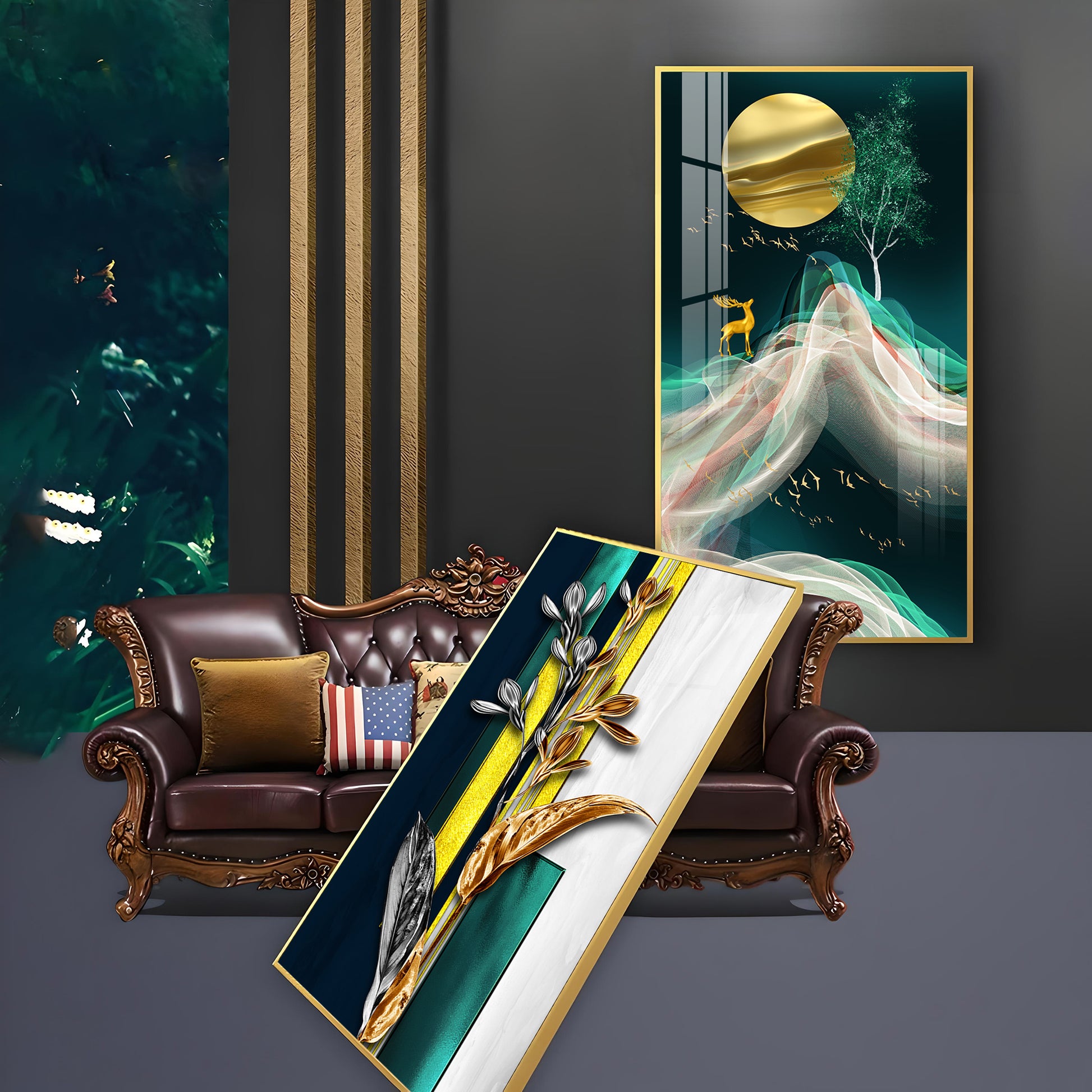 Our Framed glass finish wall art is easy to hang. The metal hooks are included in the box of your ordered wall art. You can simply mount it to the wall you want to place.