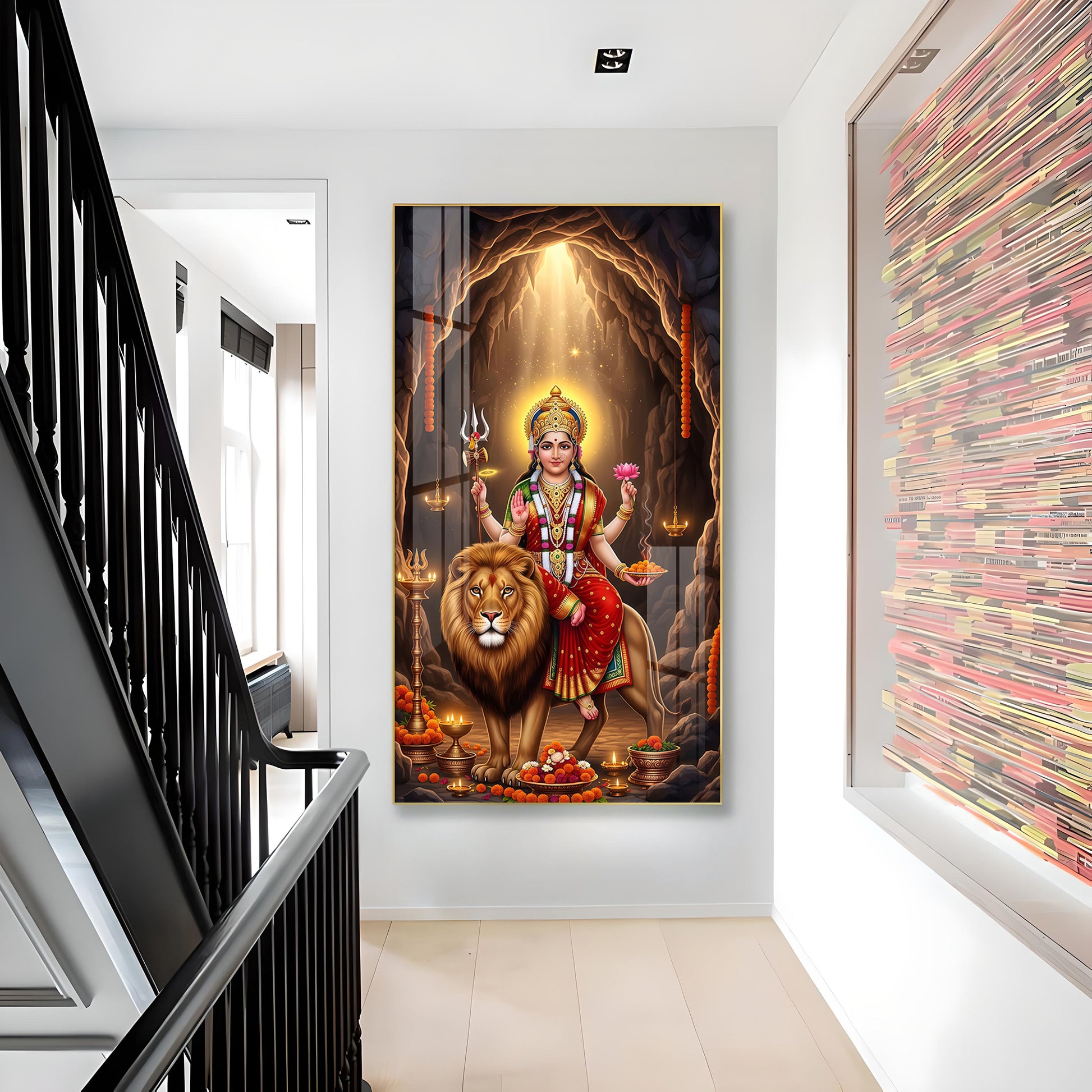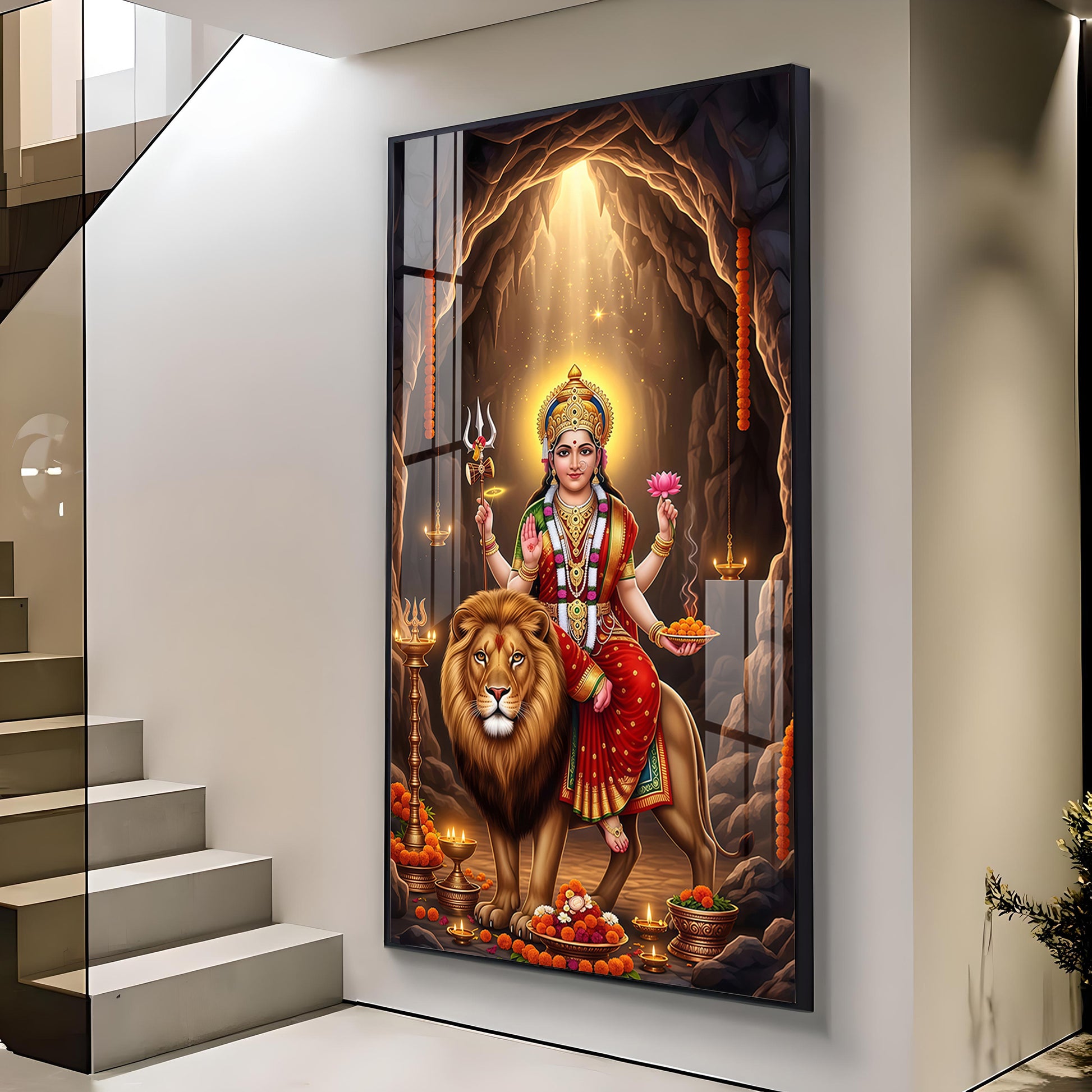Goddess Maa Durga Glass Finish Vertical Wall Art