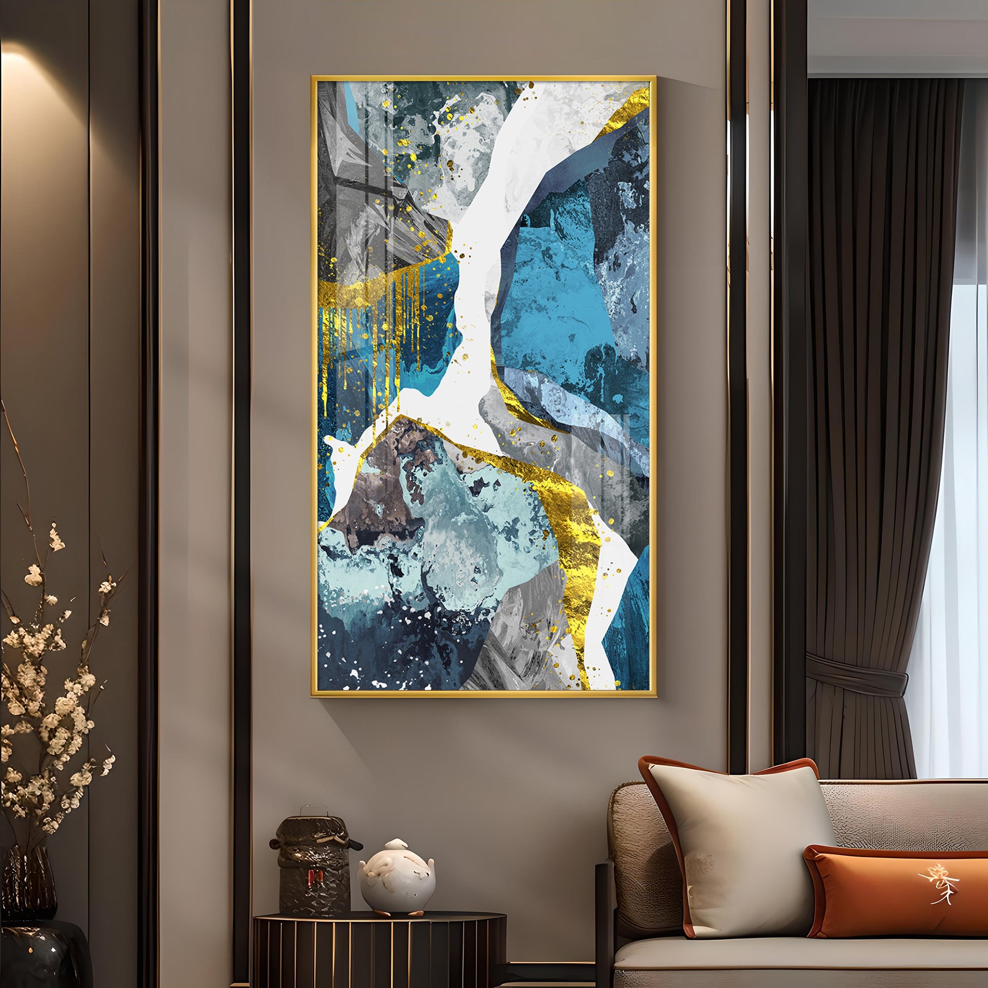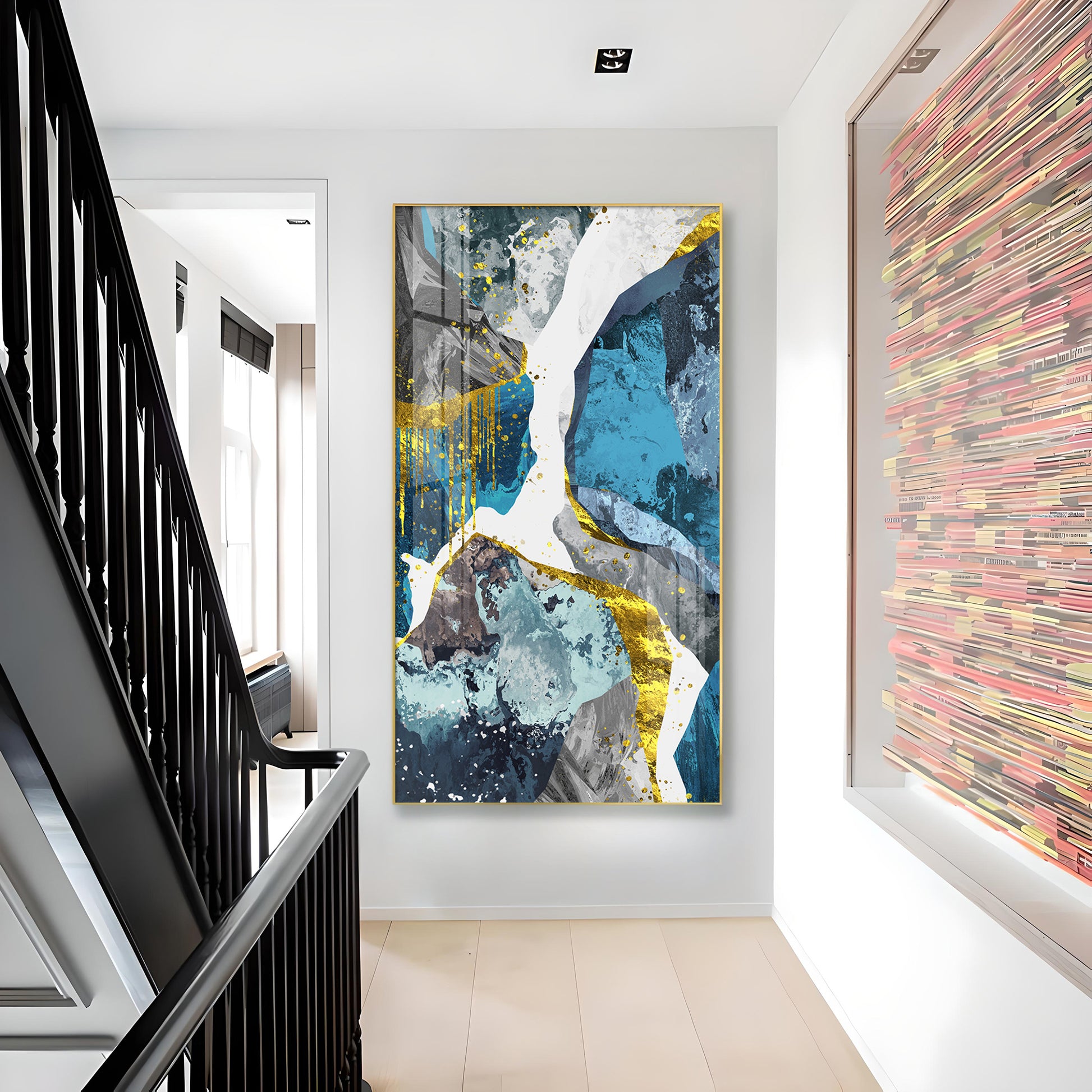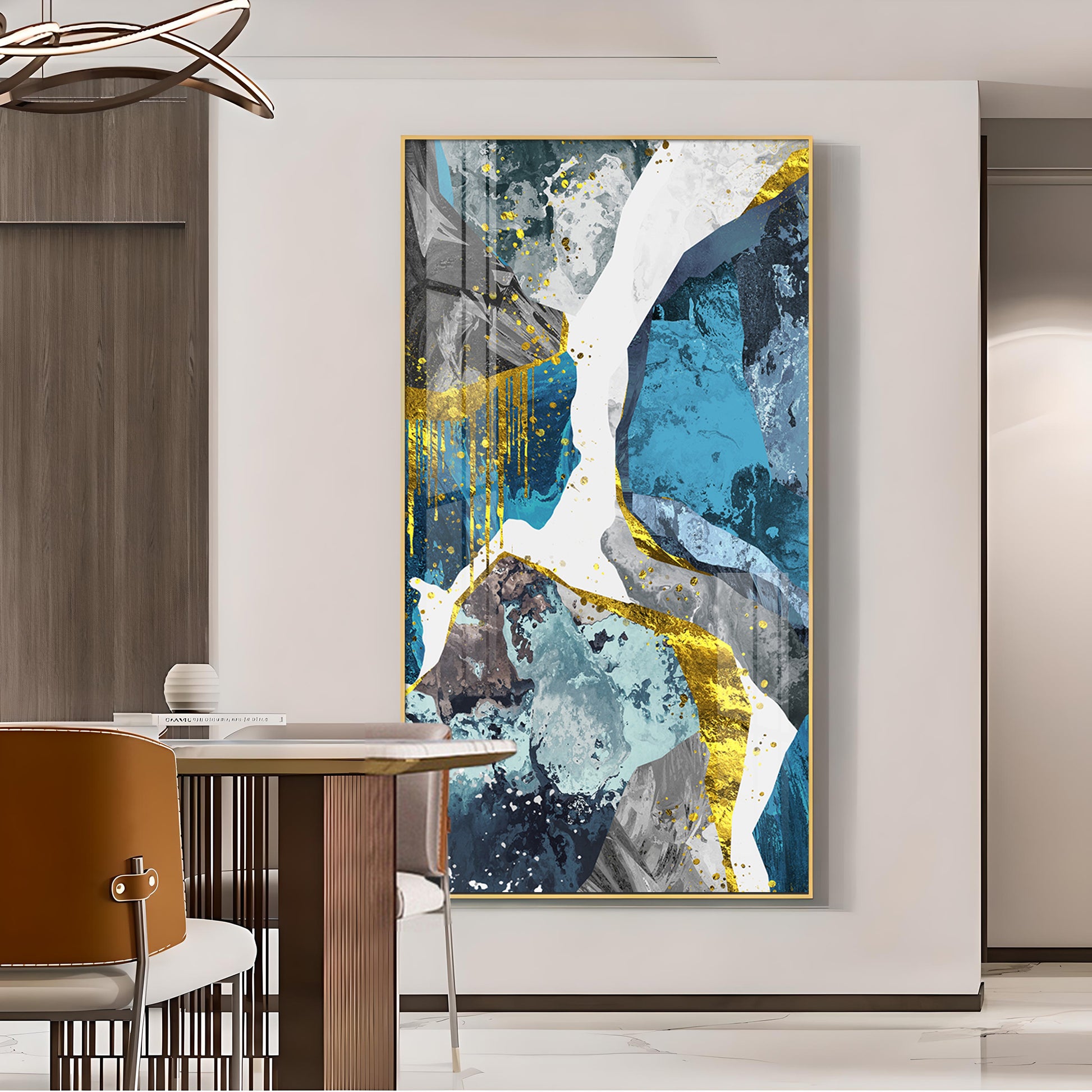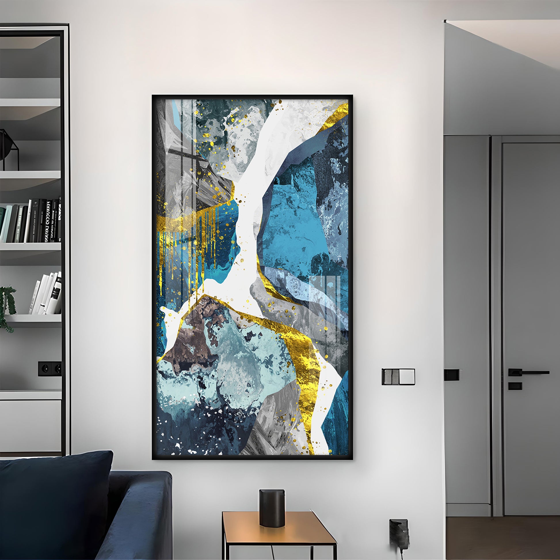 Gold and Blue Abstraction Glass Finish Vertical Wall Art