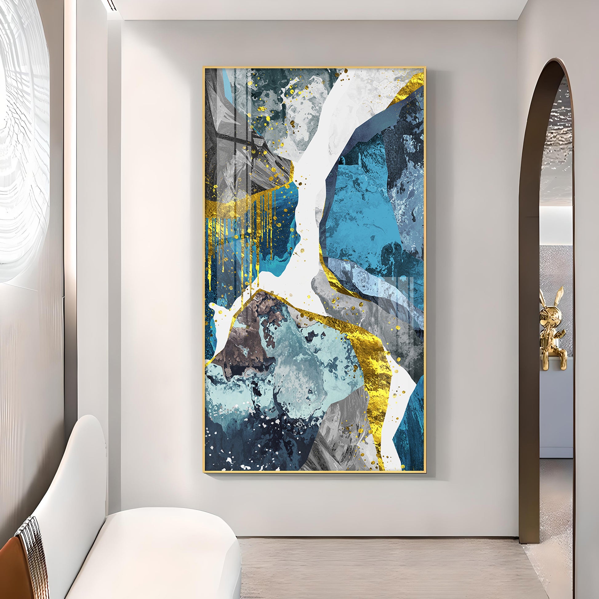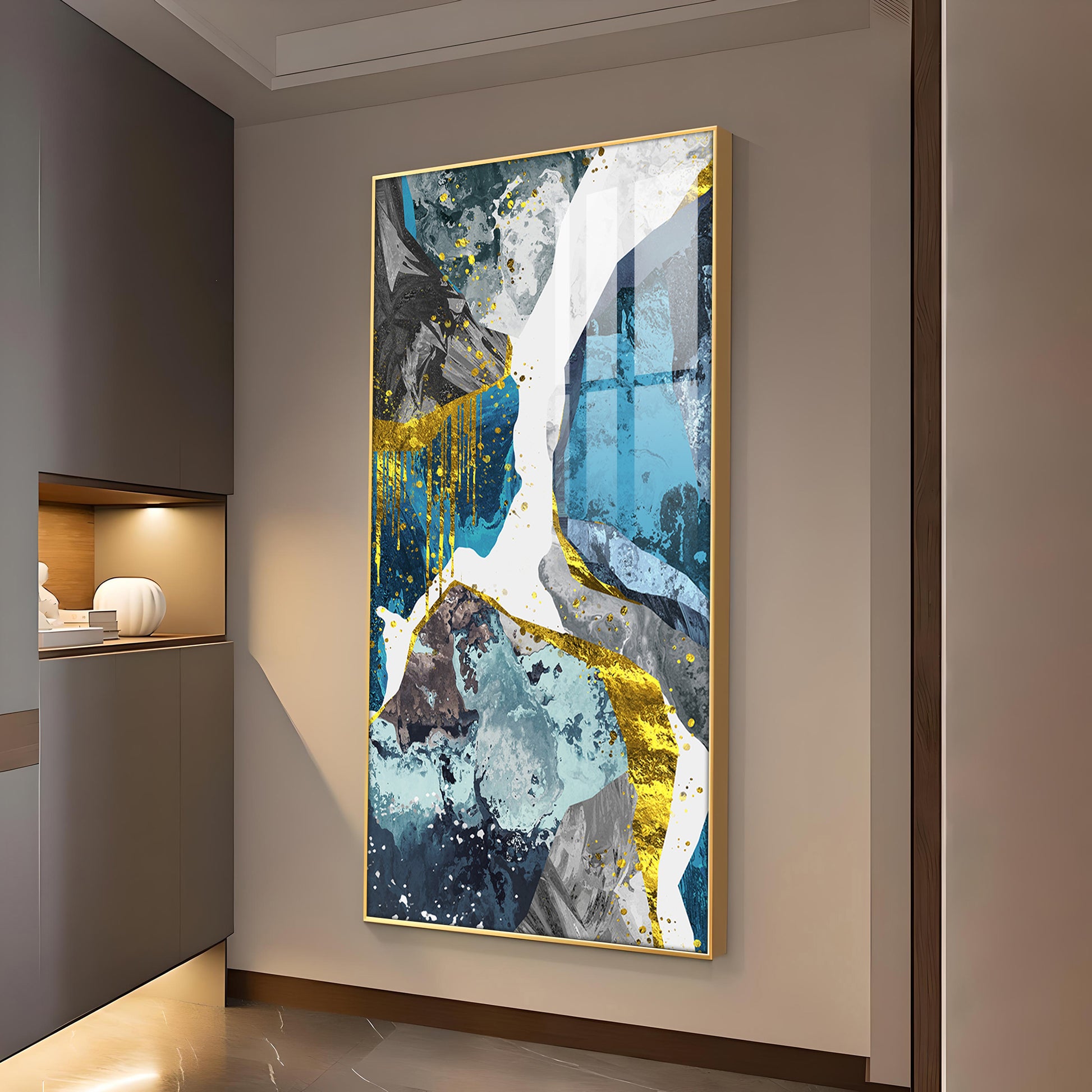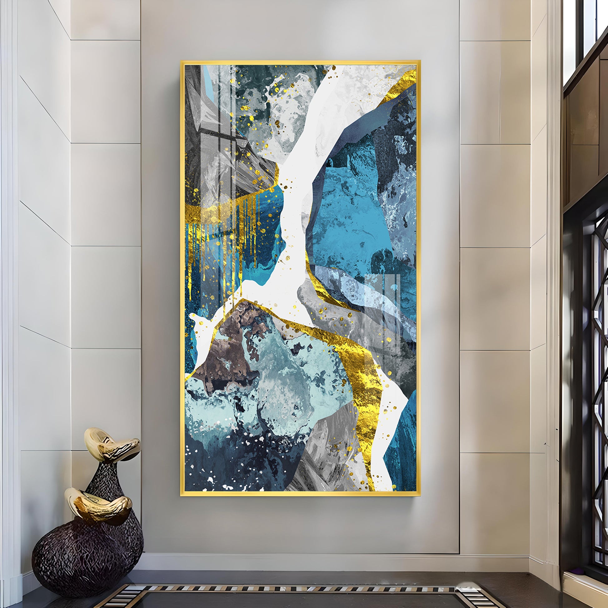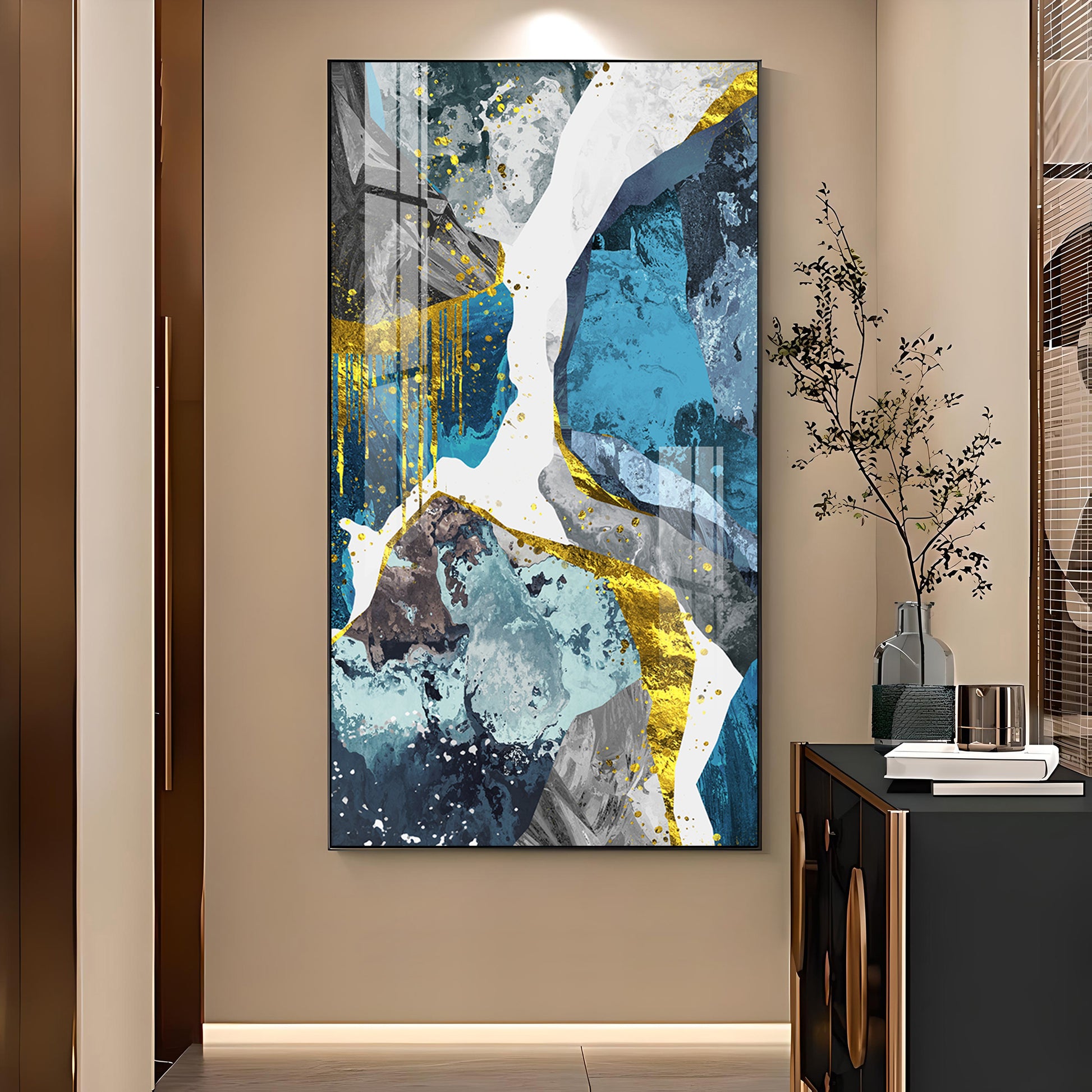 Gold and Blue Abstraction Glass Finish Vertical Wall Art