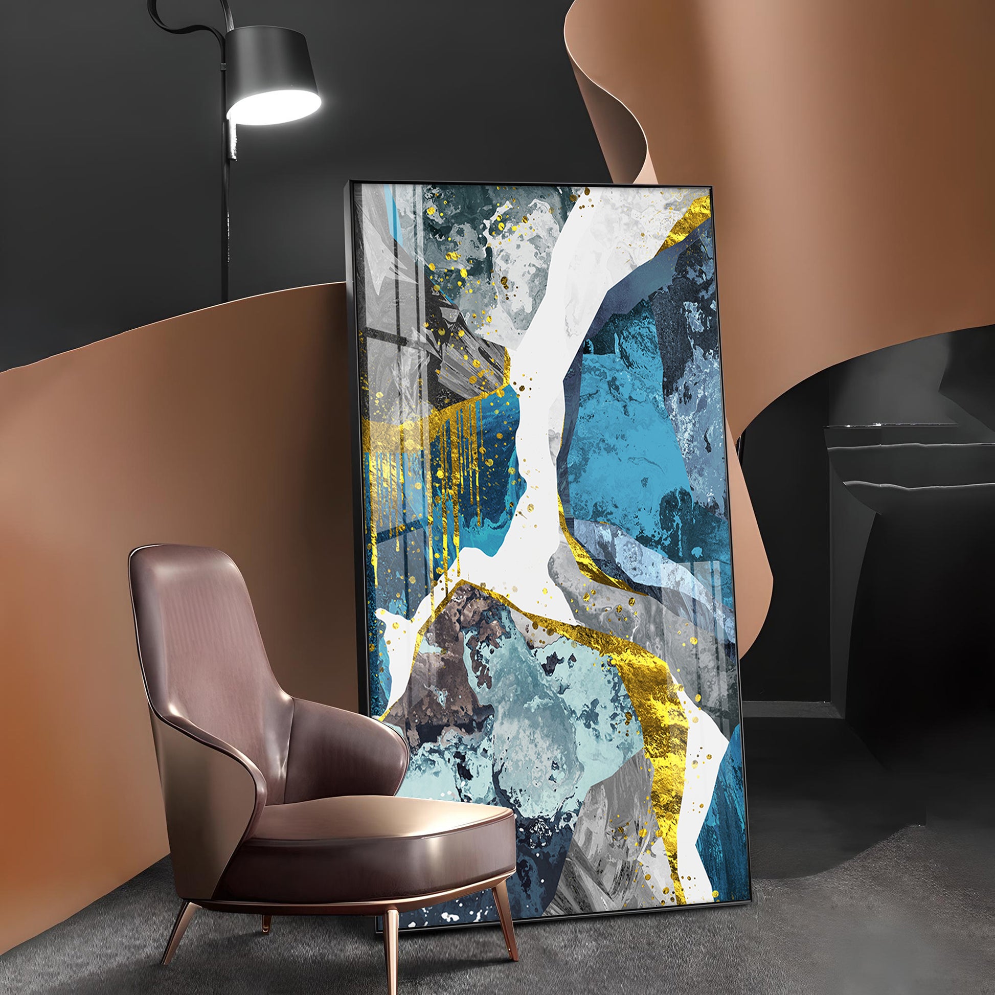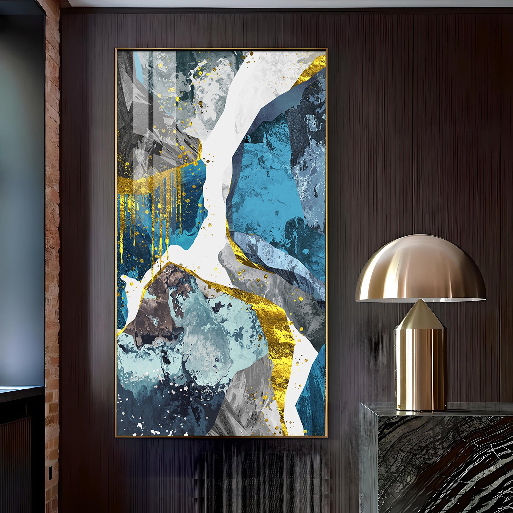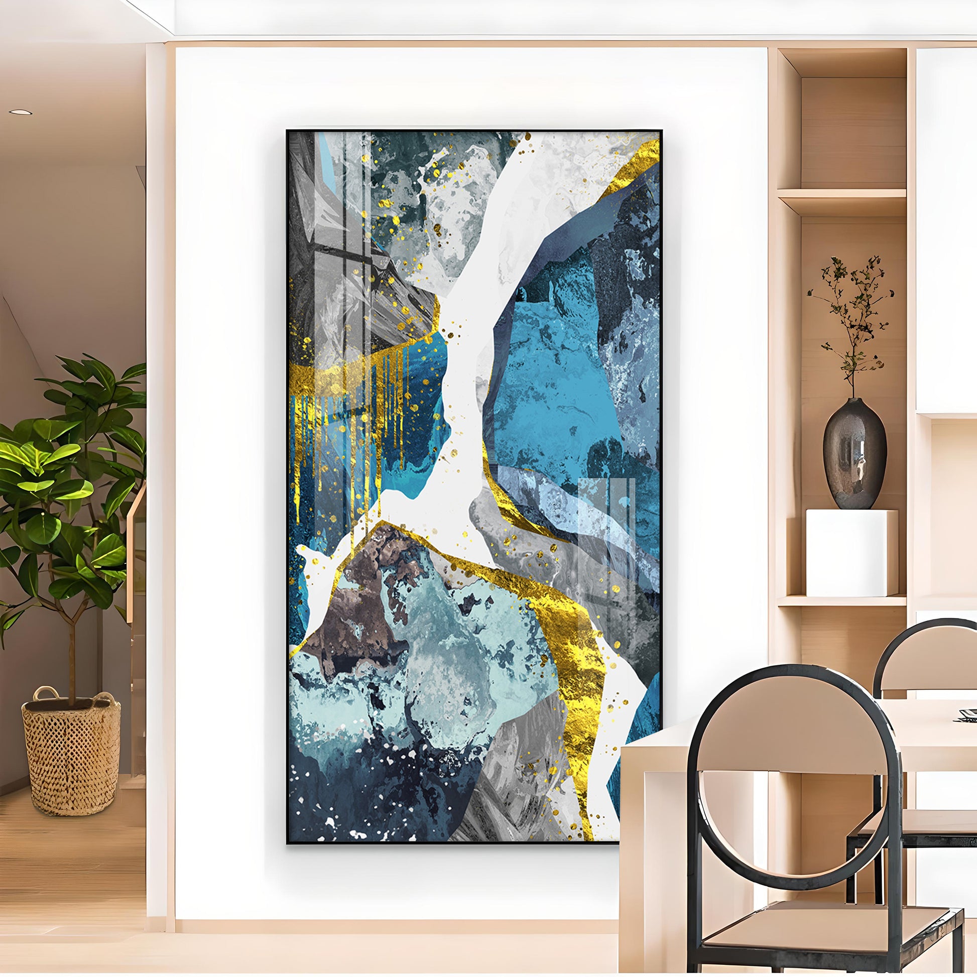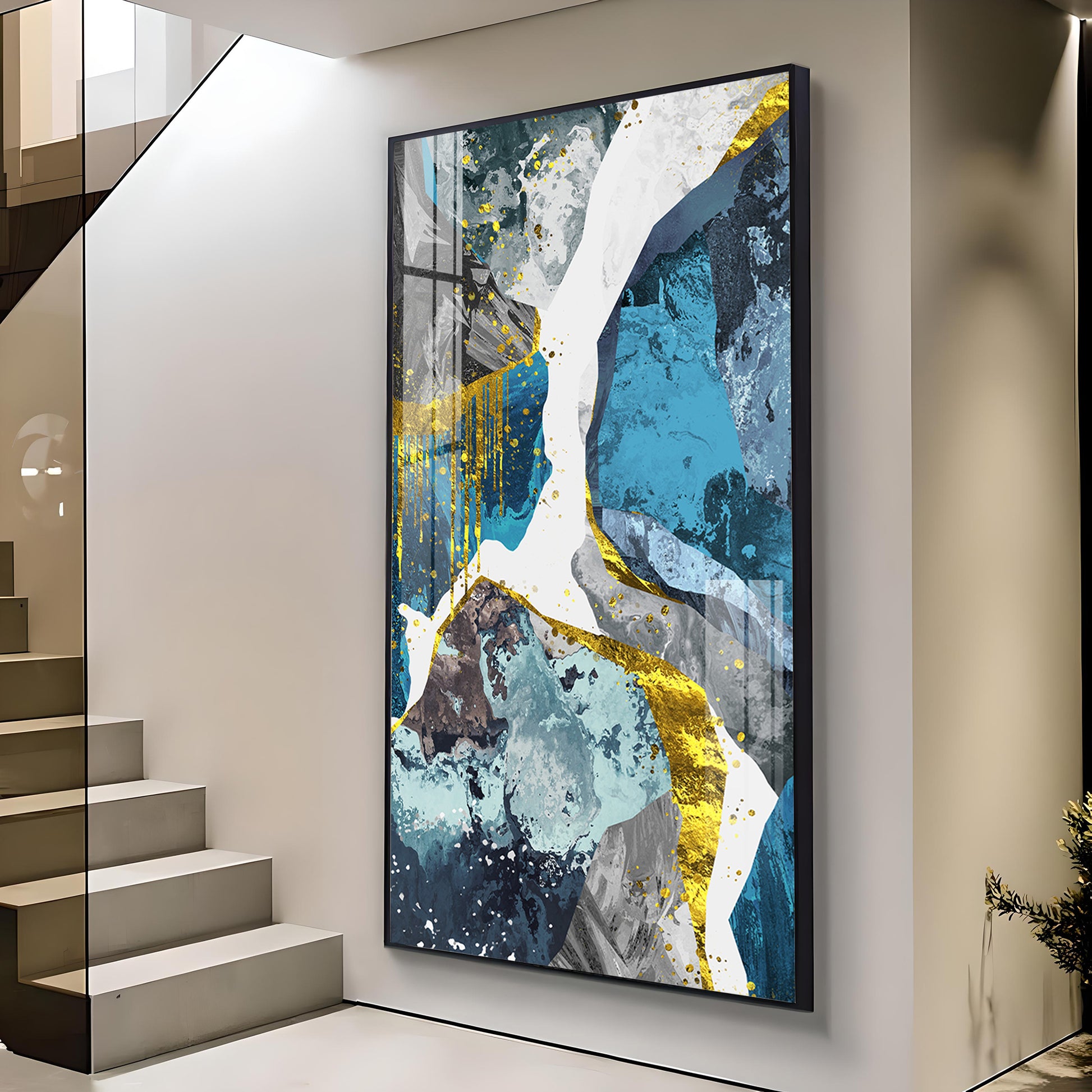 Gold and Blue Abstraction Glass Finish Vertical Wall Art