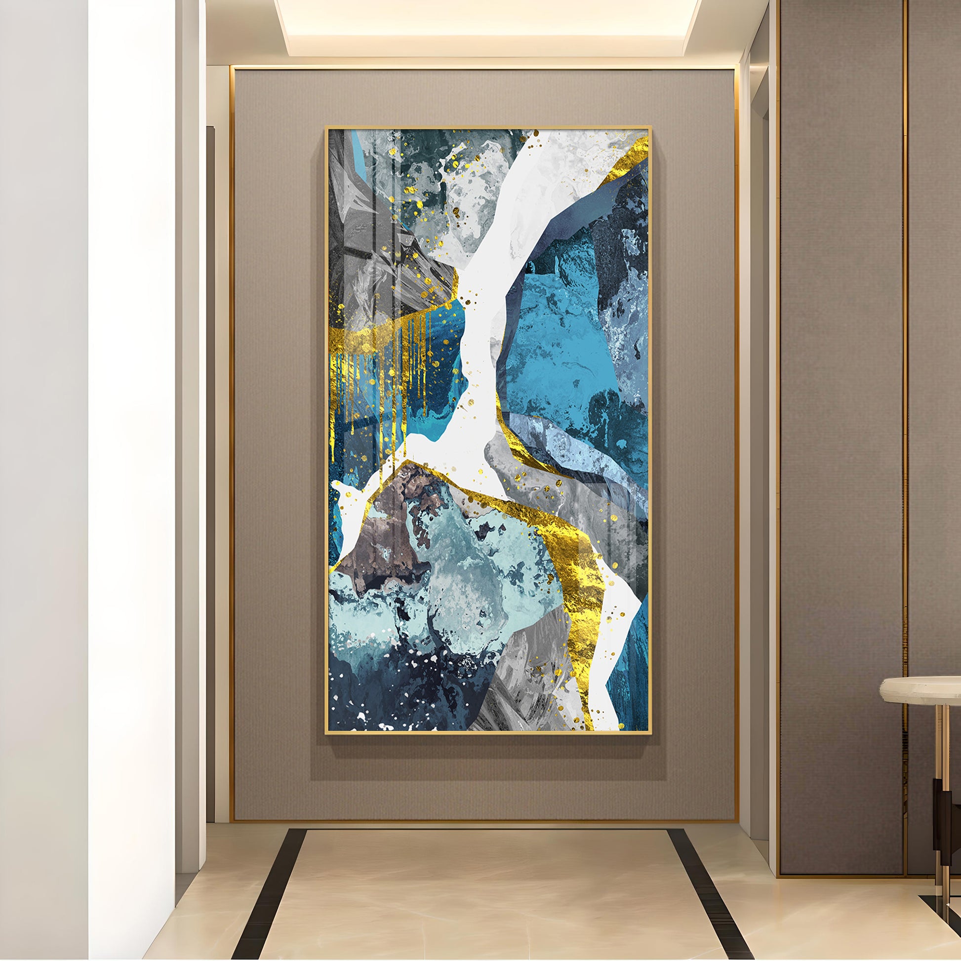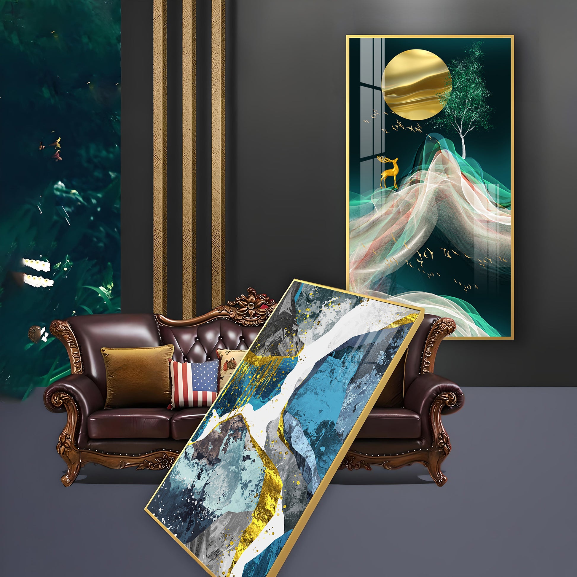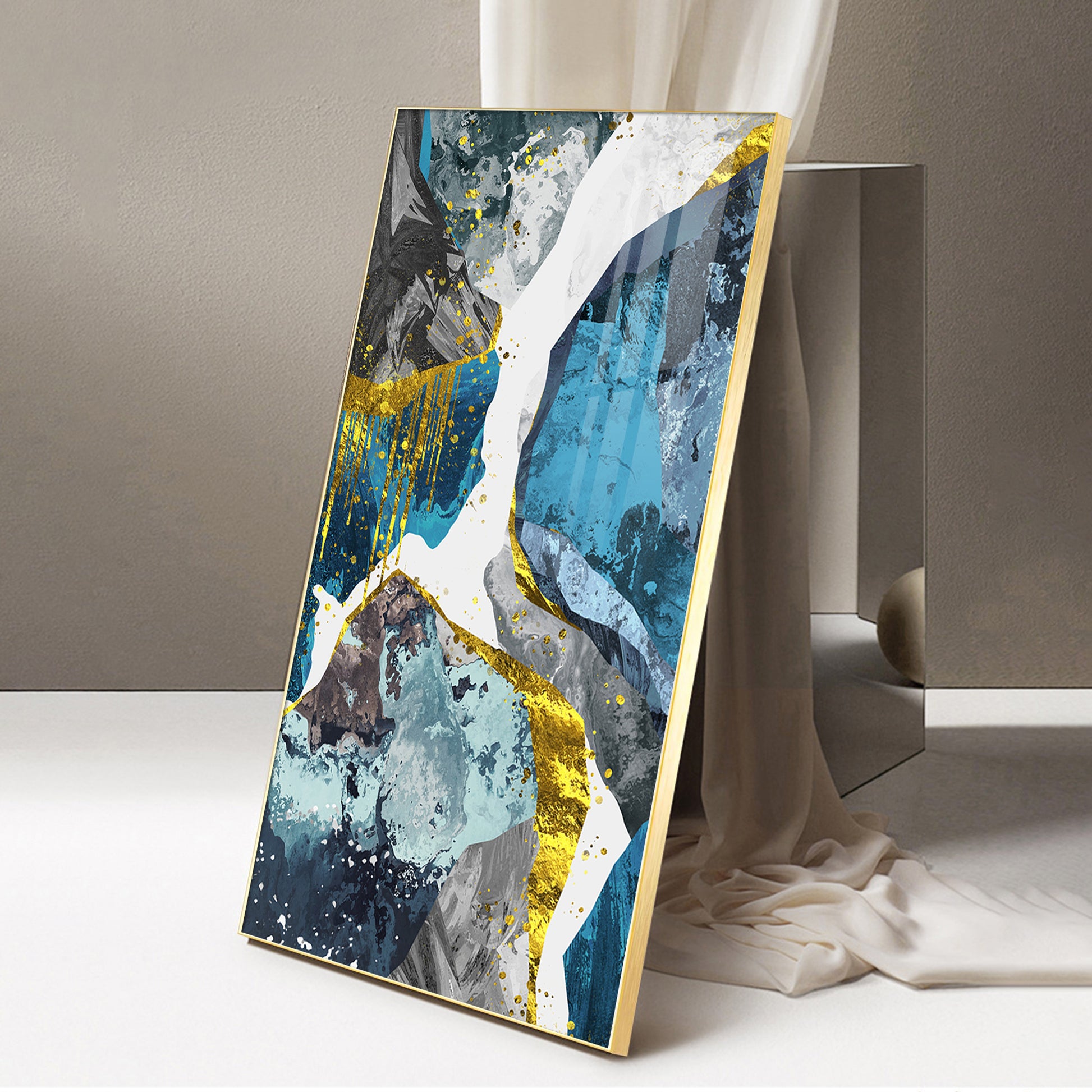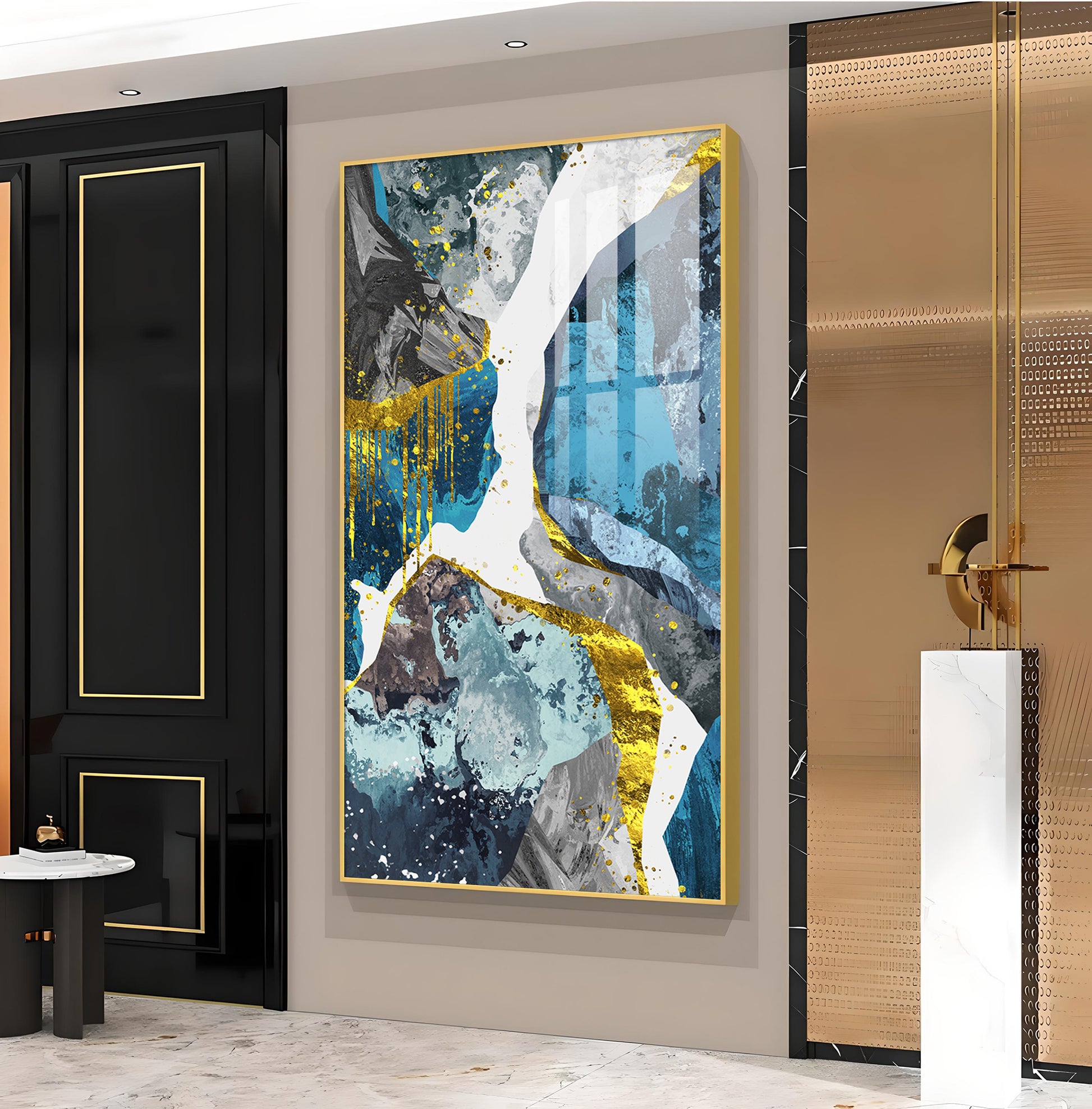 Gold and Blue Abstraction Glass Finish Vertical Wall Art