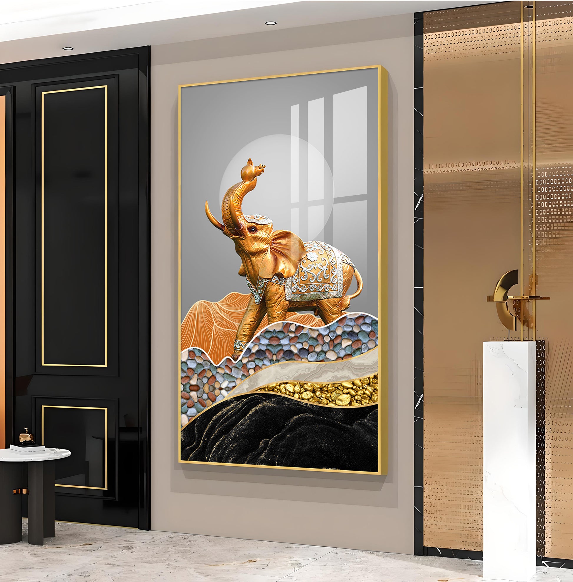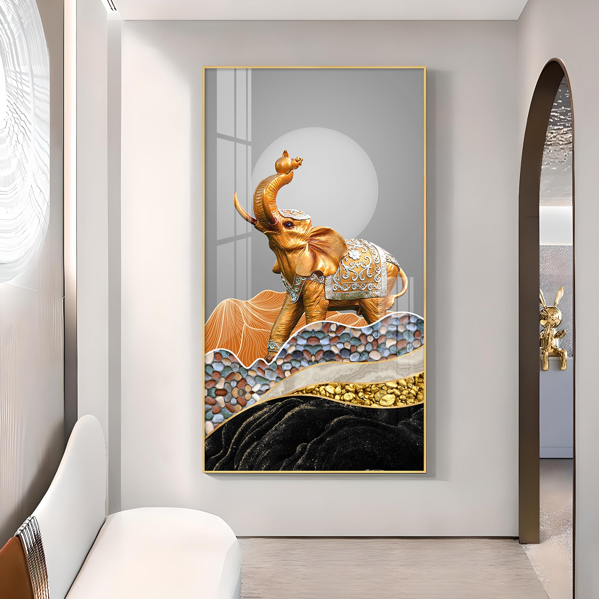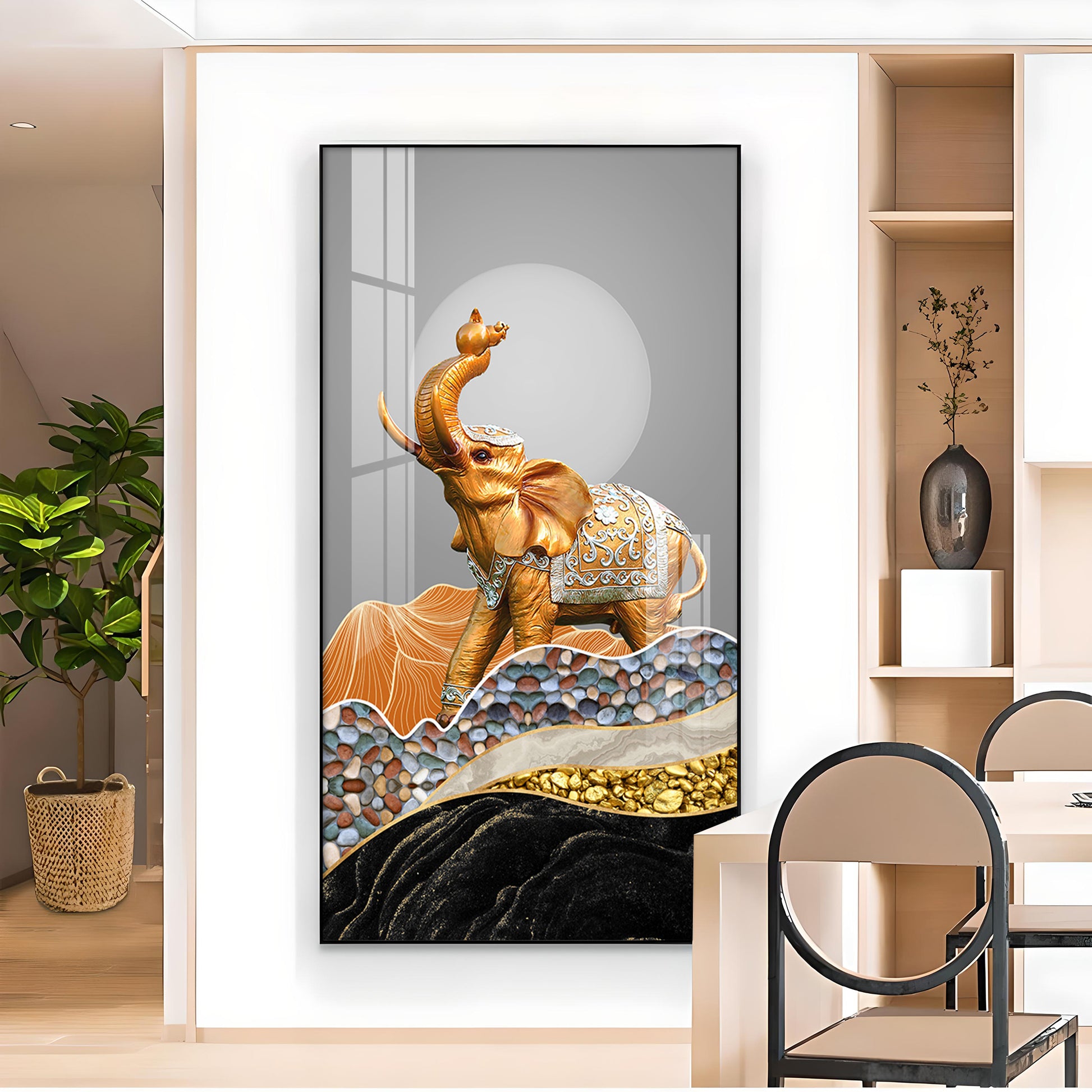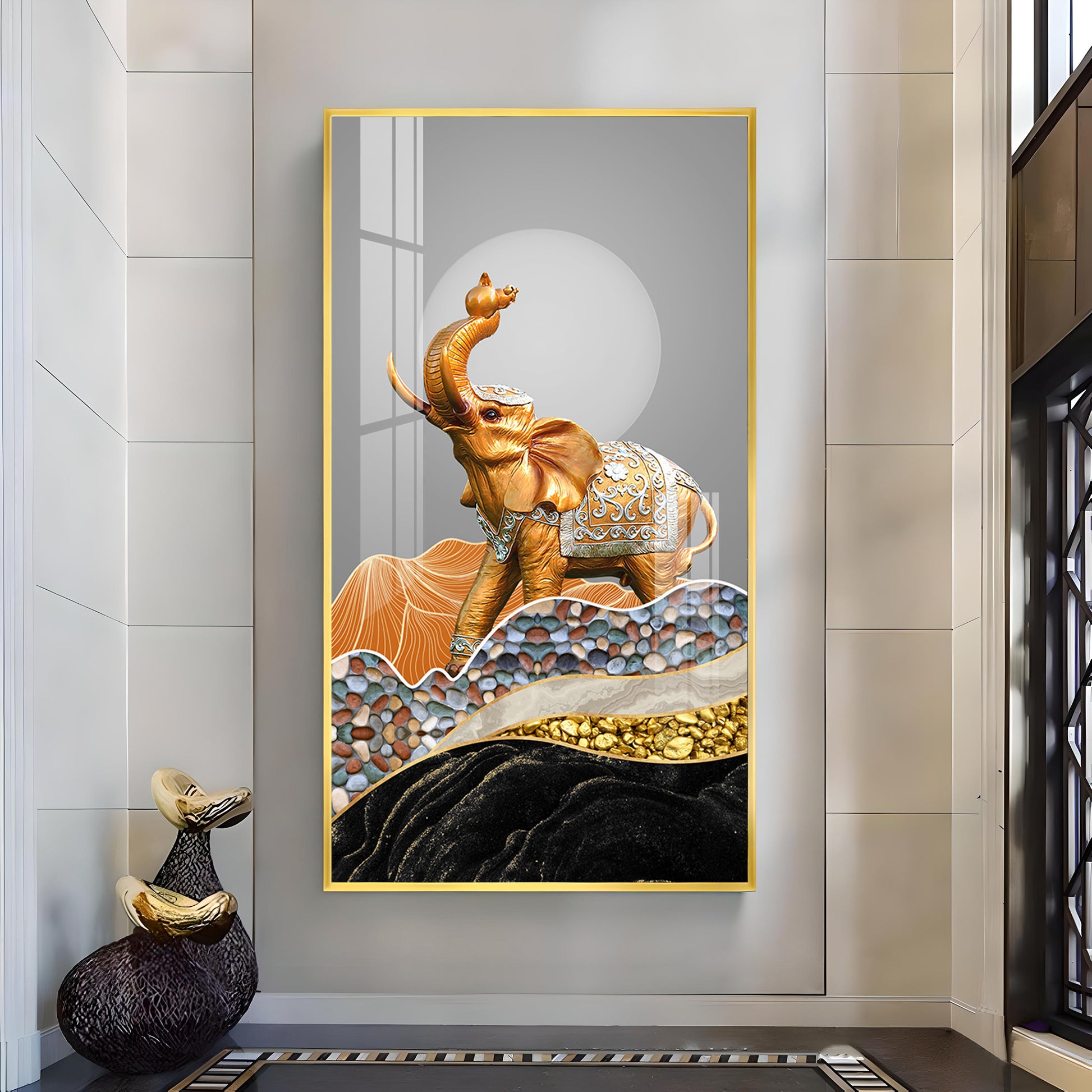 Gold and Silver Elephant Figurine Glass Finish Vertical Wall Art