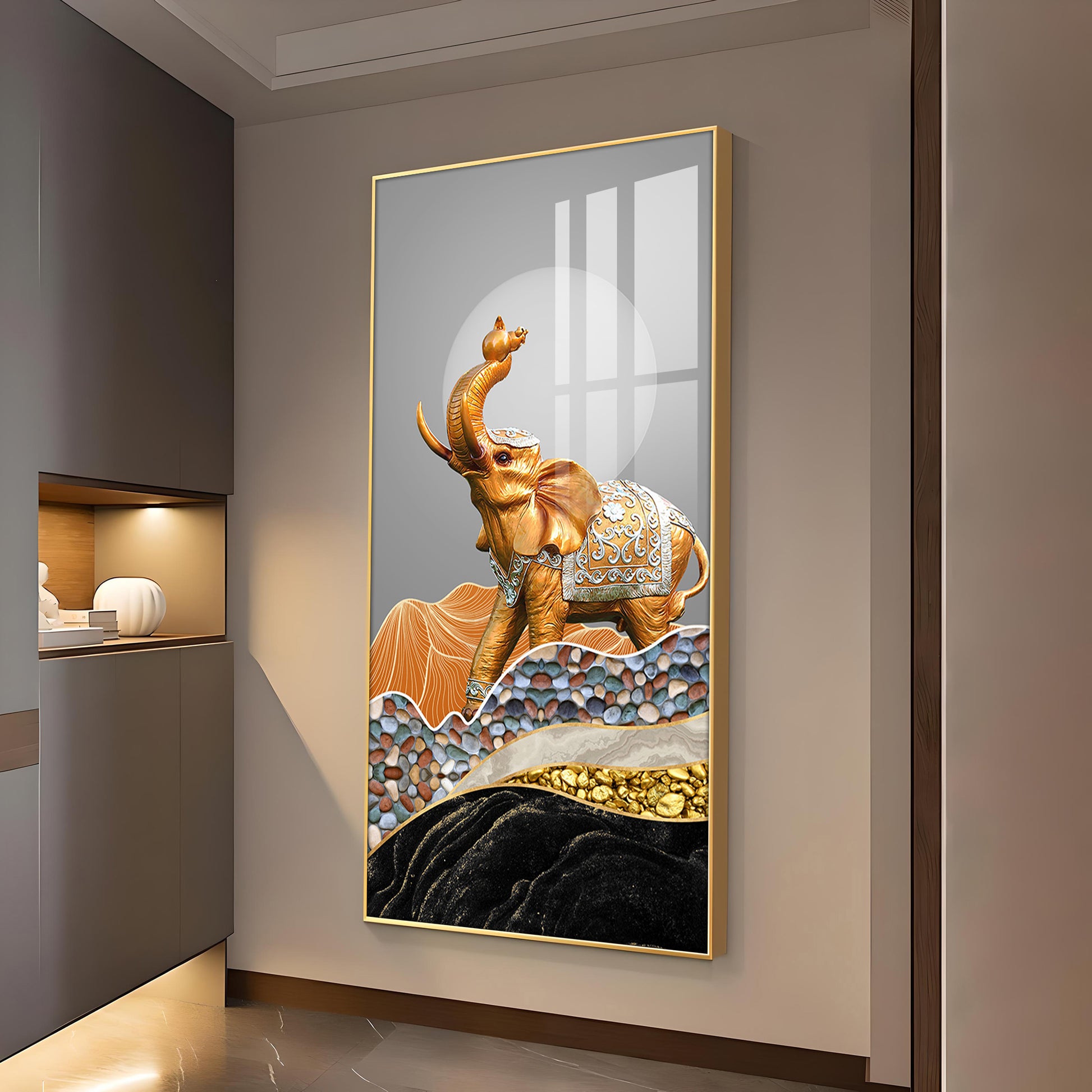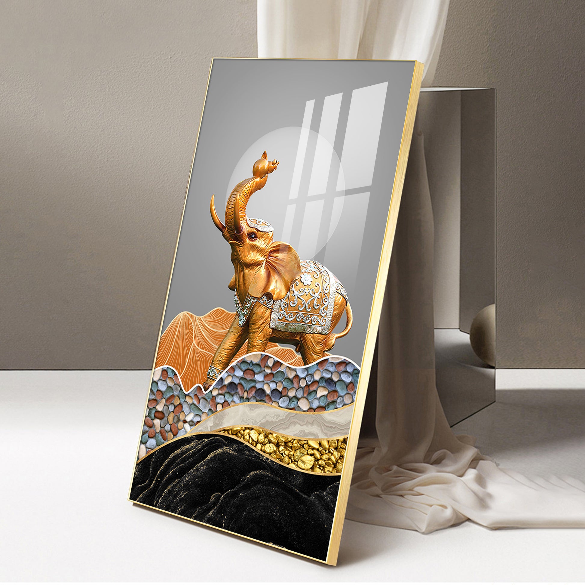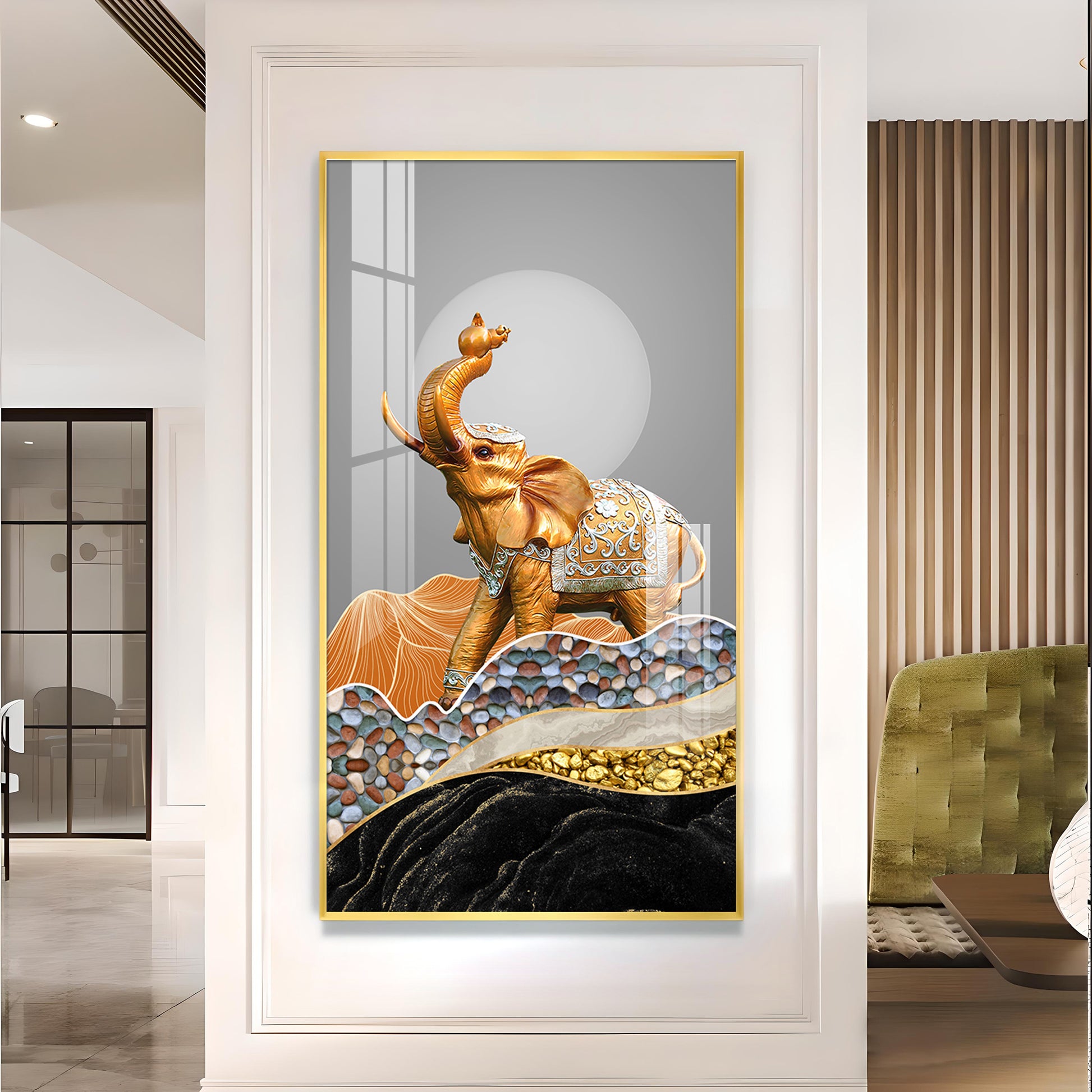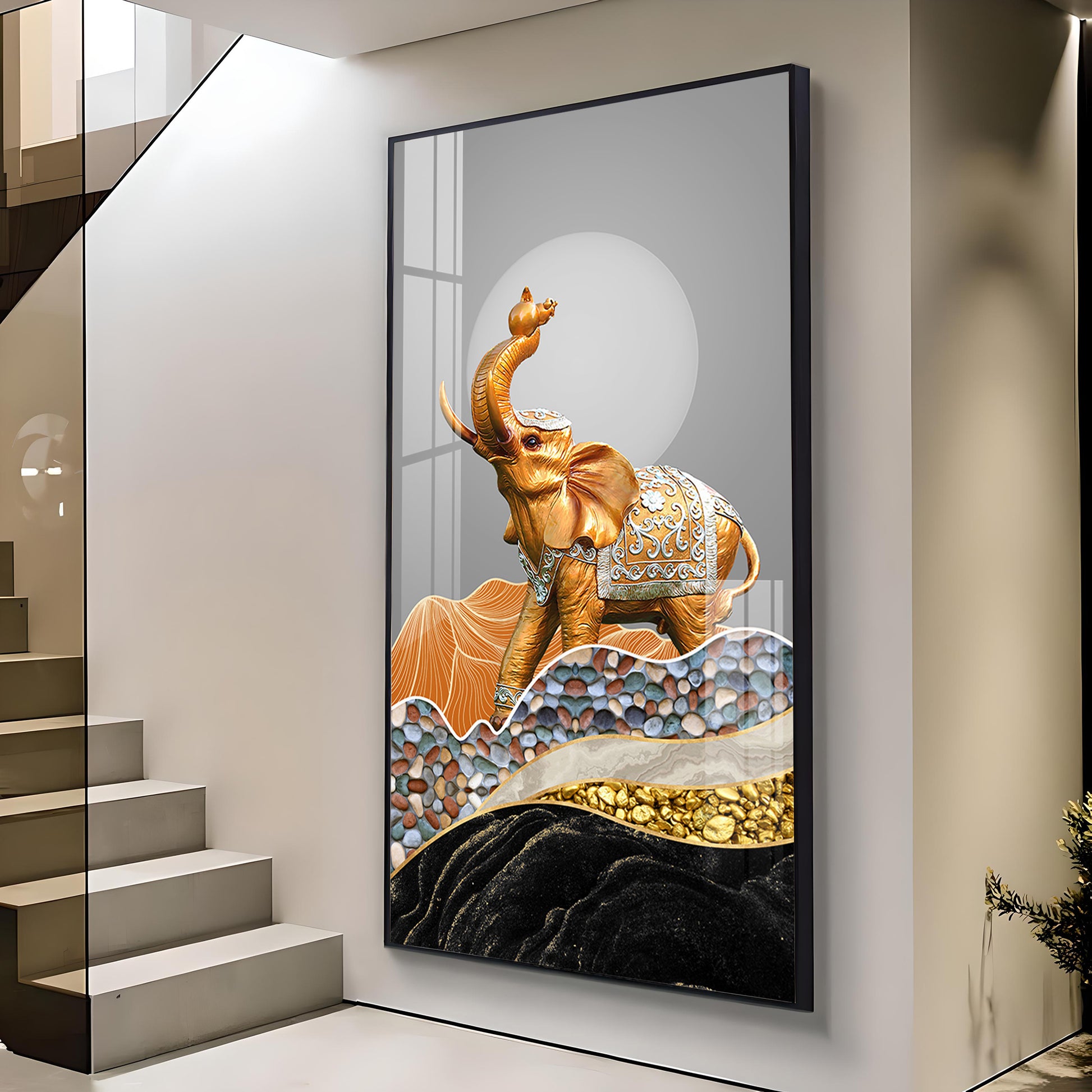 Gold and Silver Elephant Figurine Glass Finish Vertical Wall Art