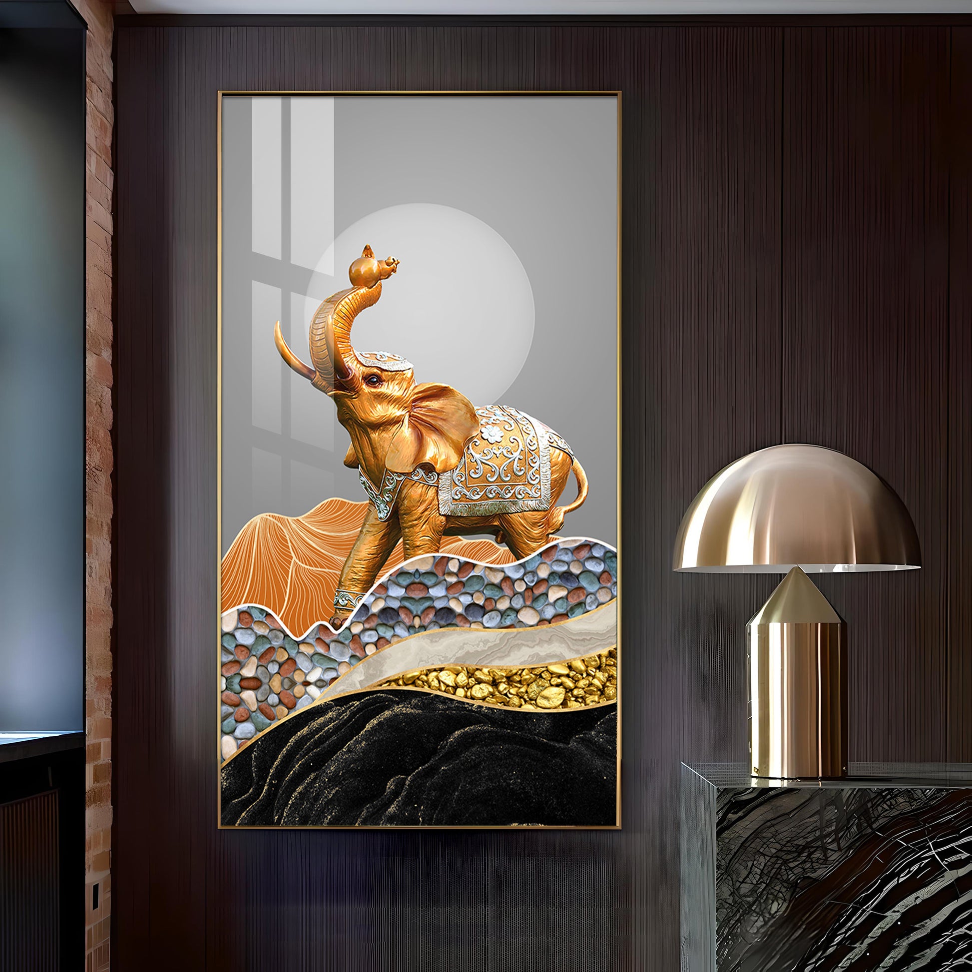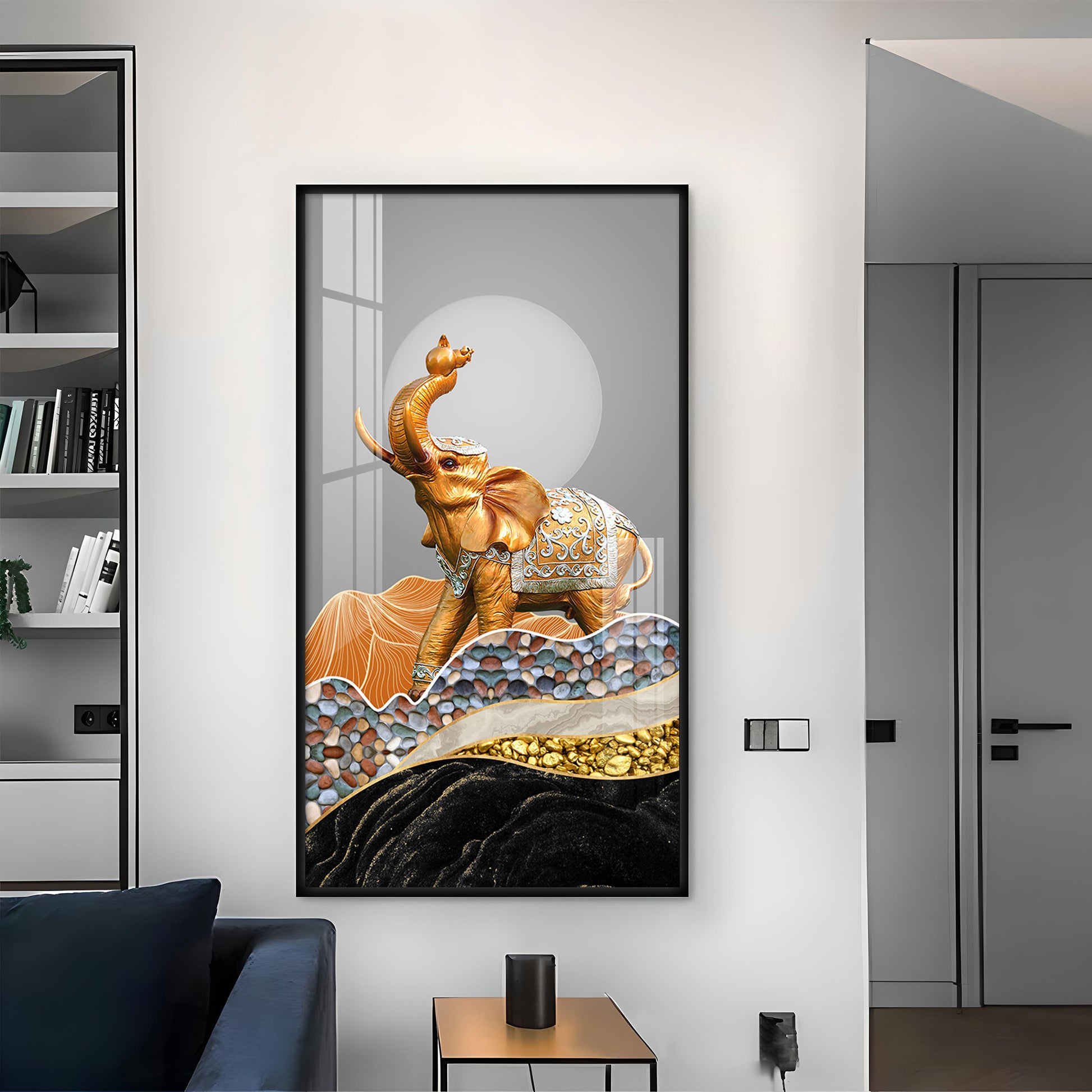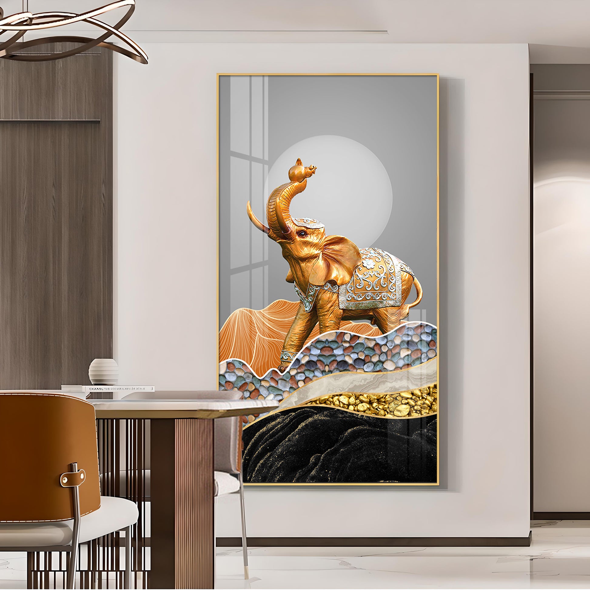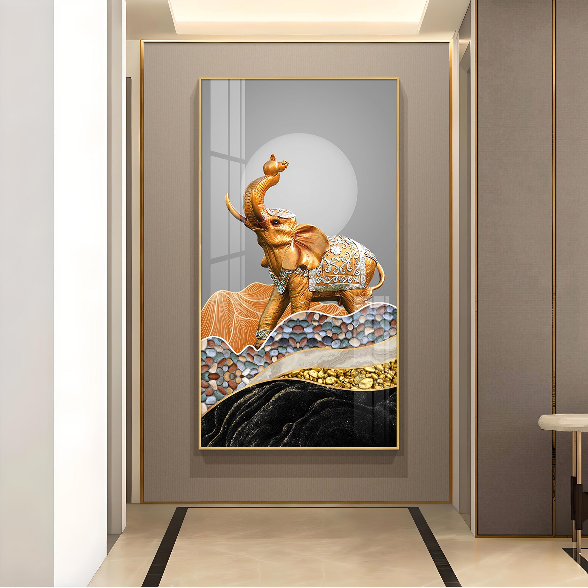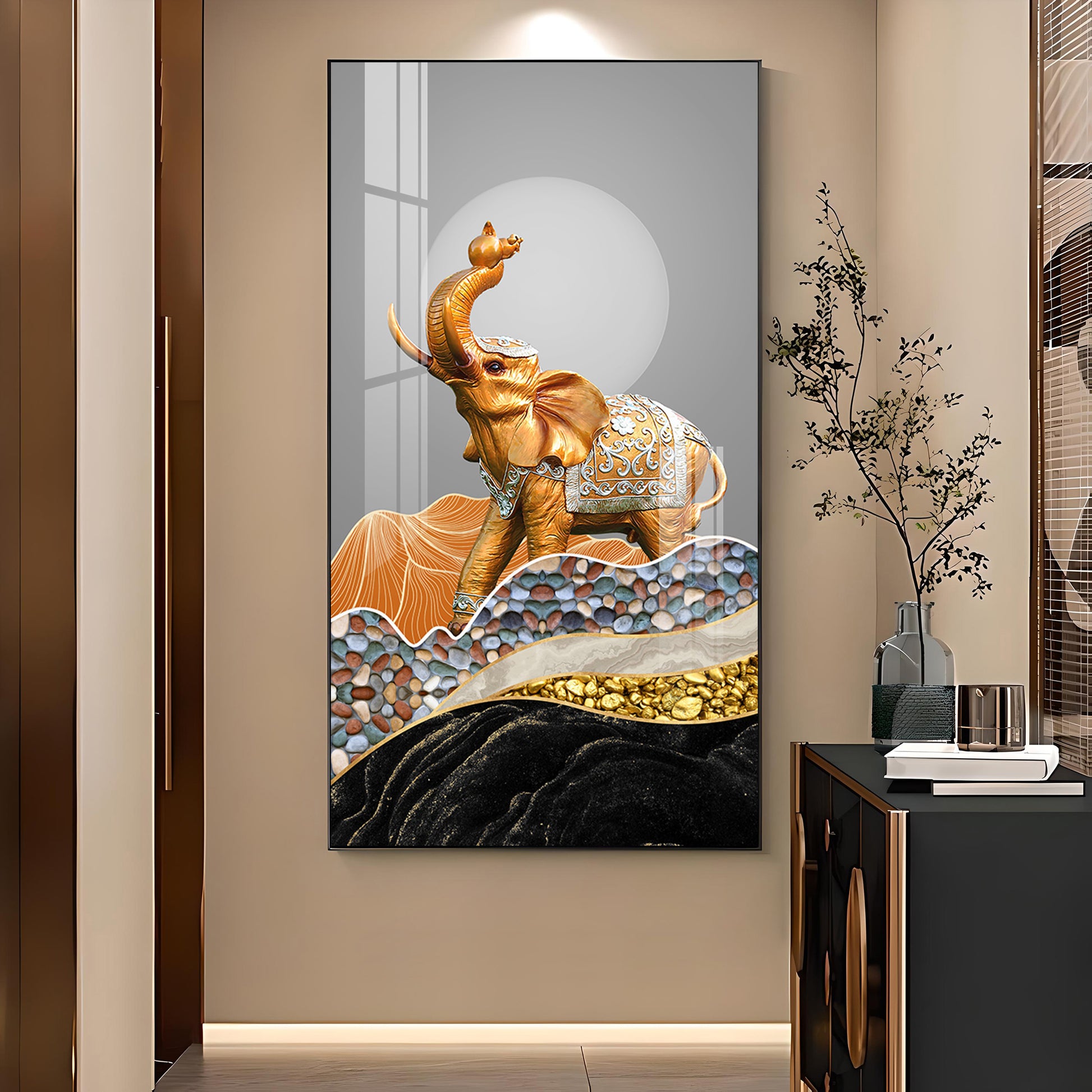 Gold and Silver Elephant Figurine Glass Finish Vertical Wall Art