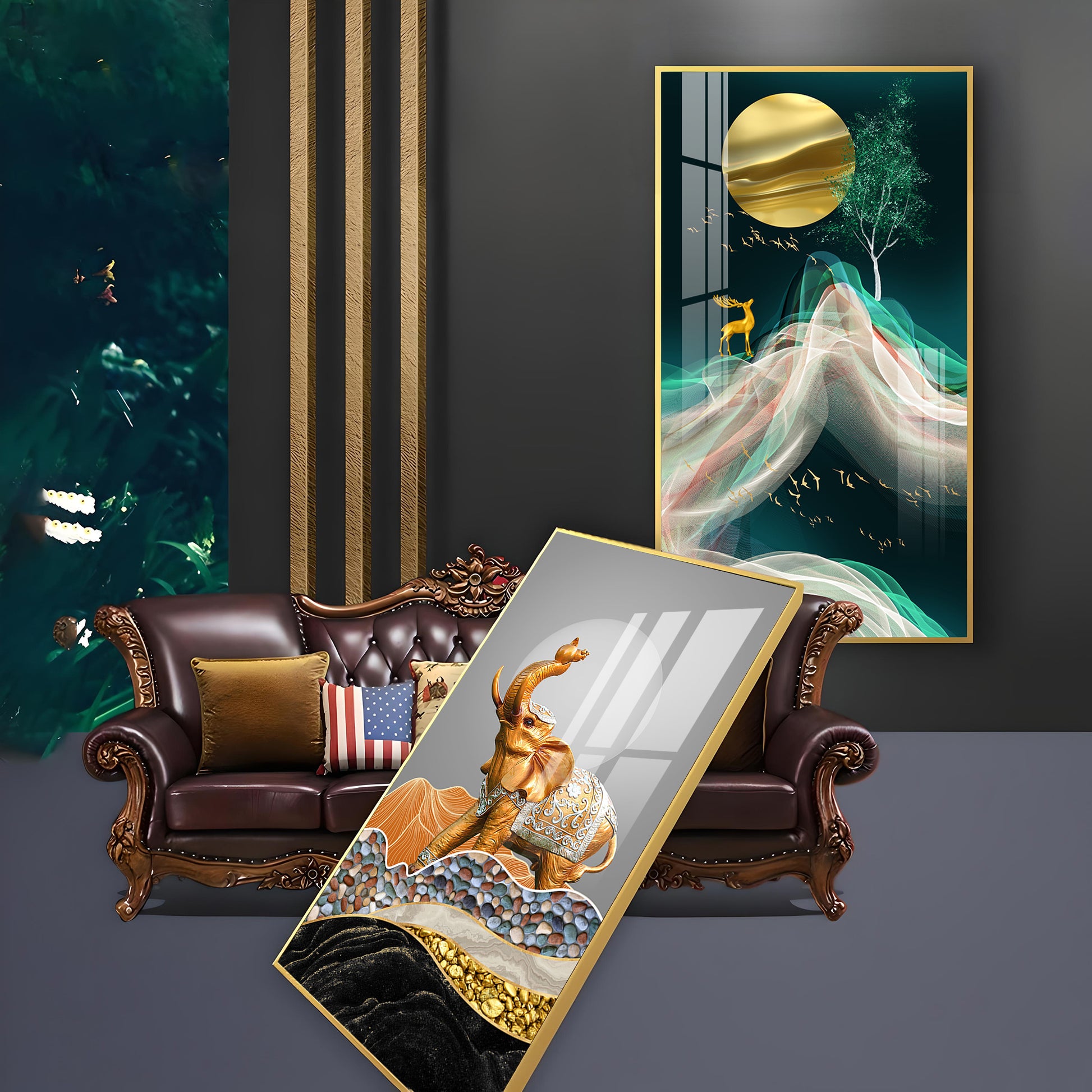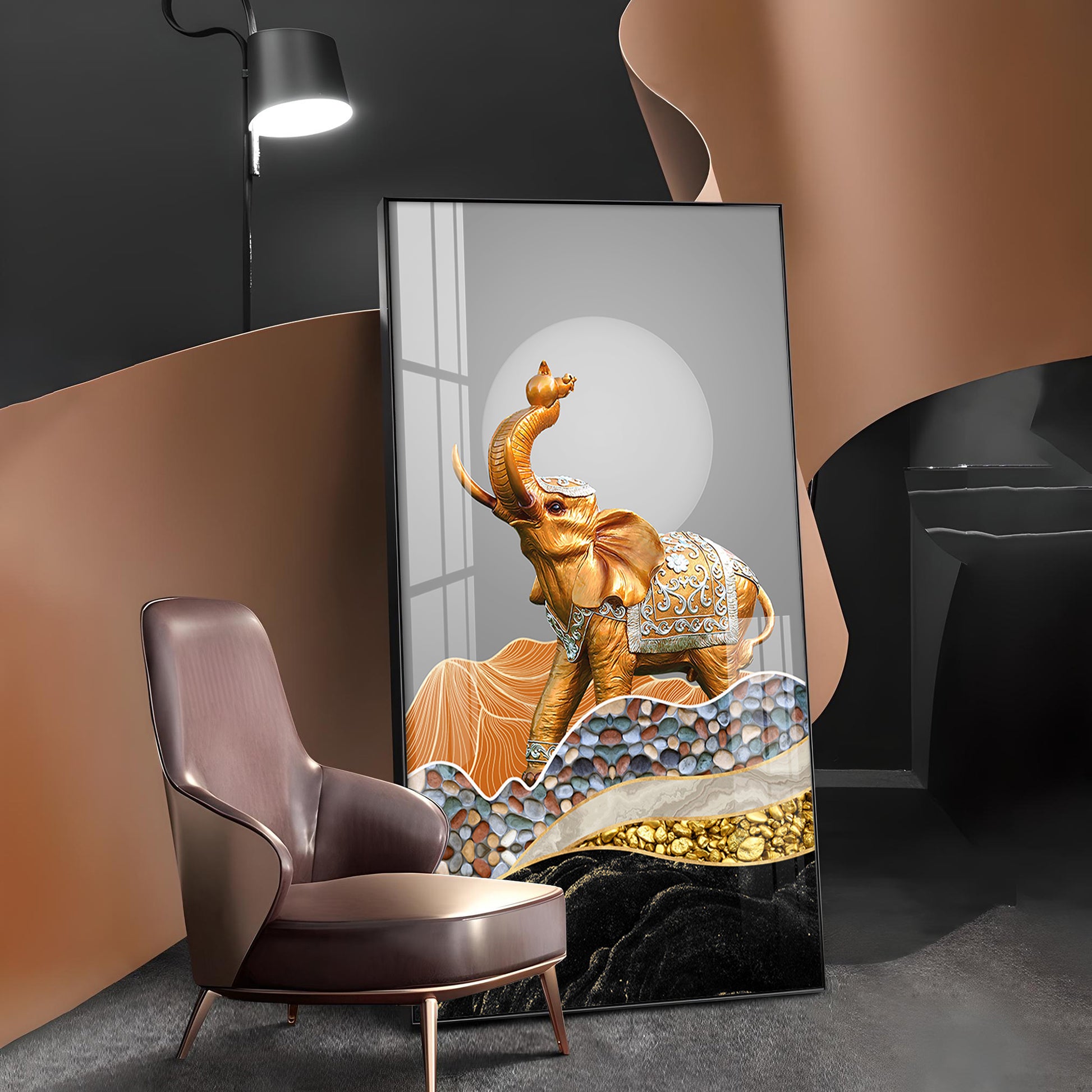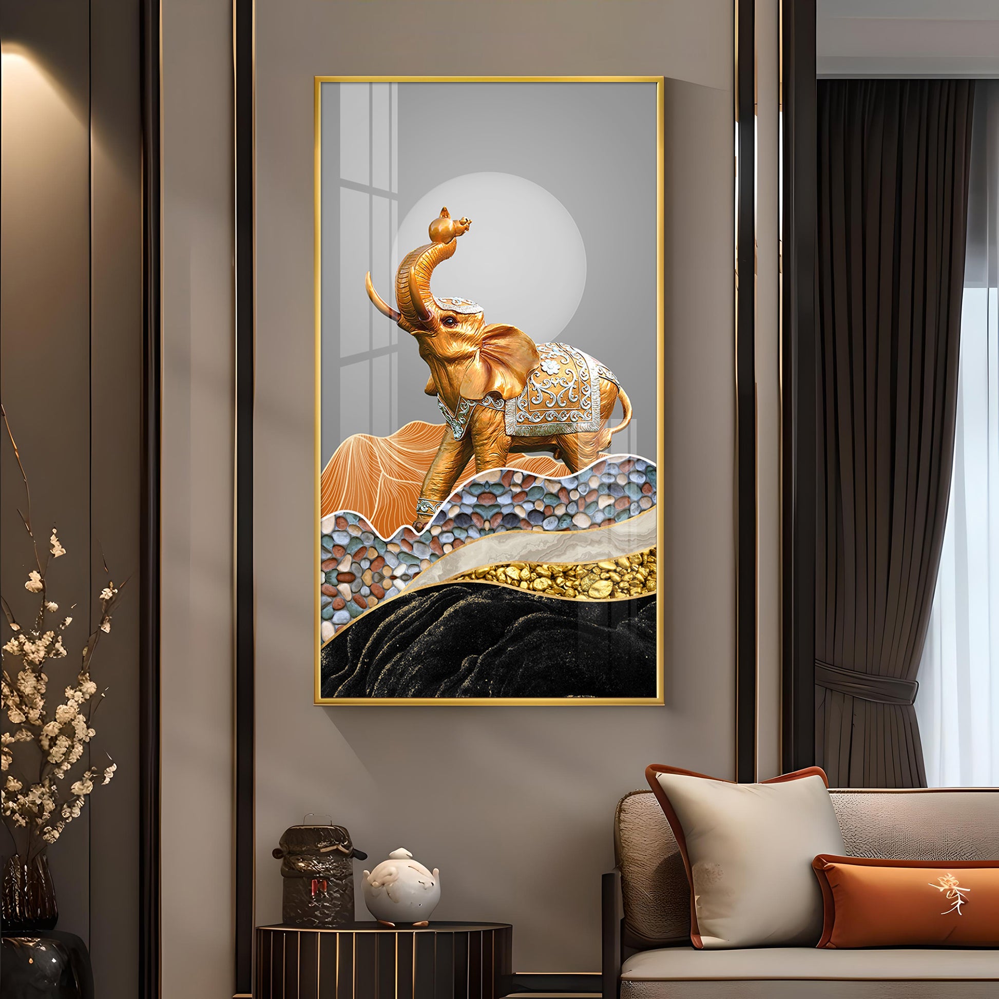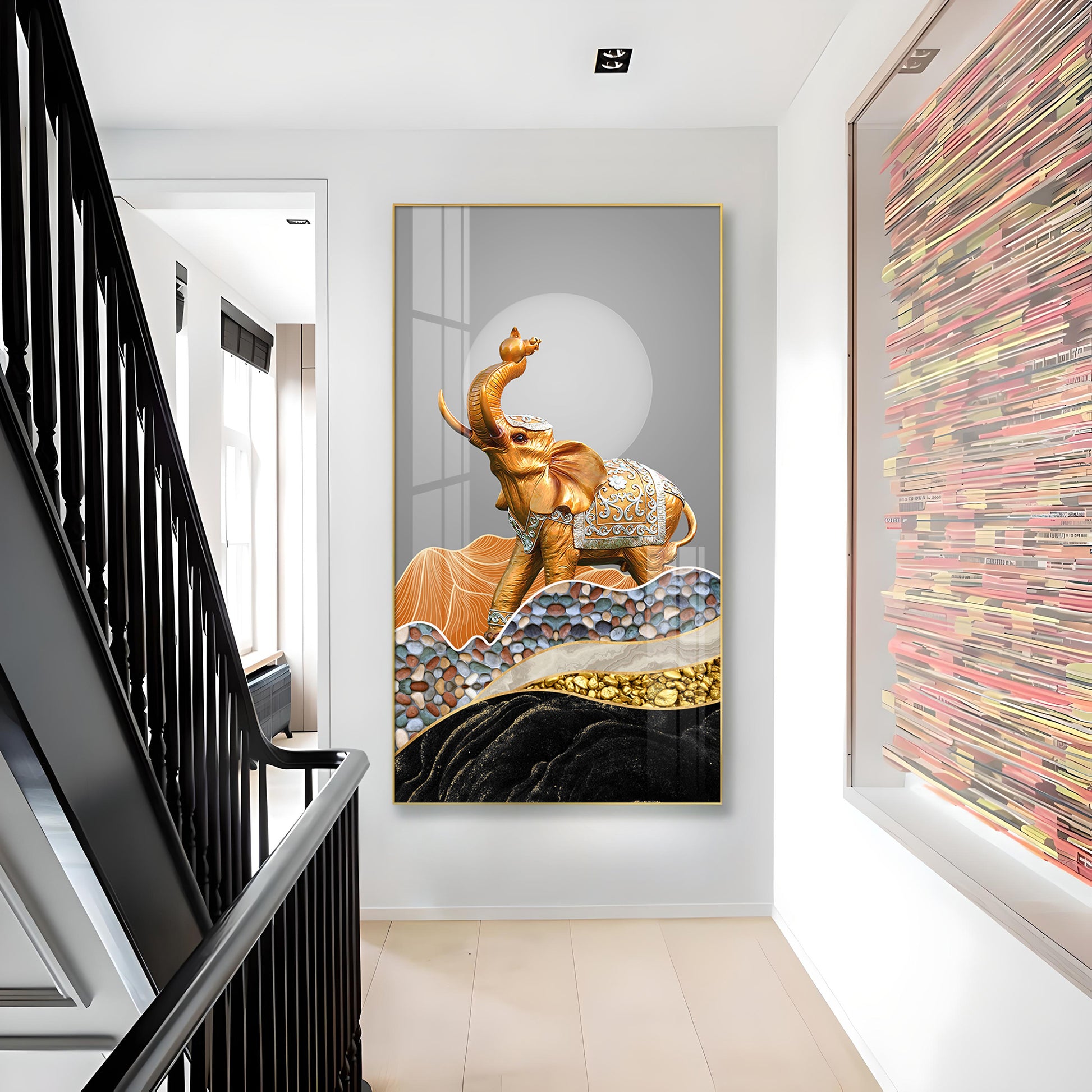 Gold and Silver Elephant Figurine Glass Finish Vertical Wall Art