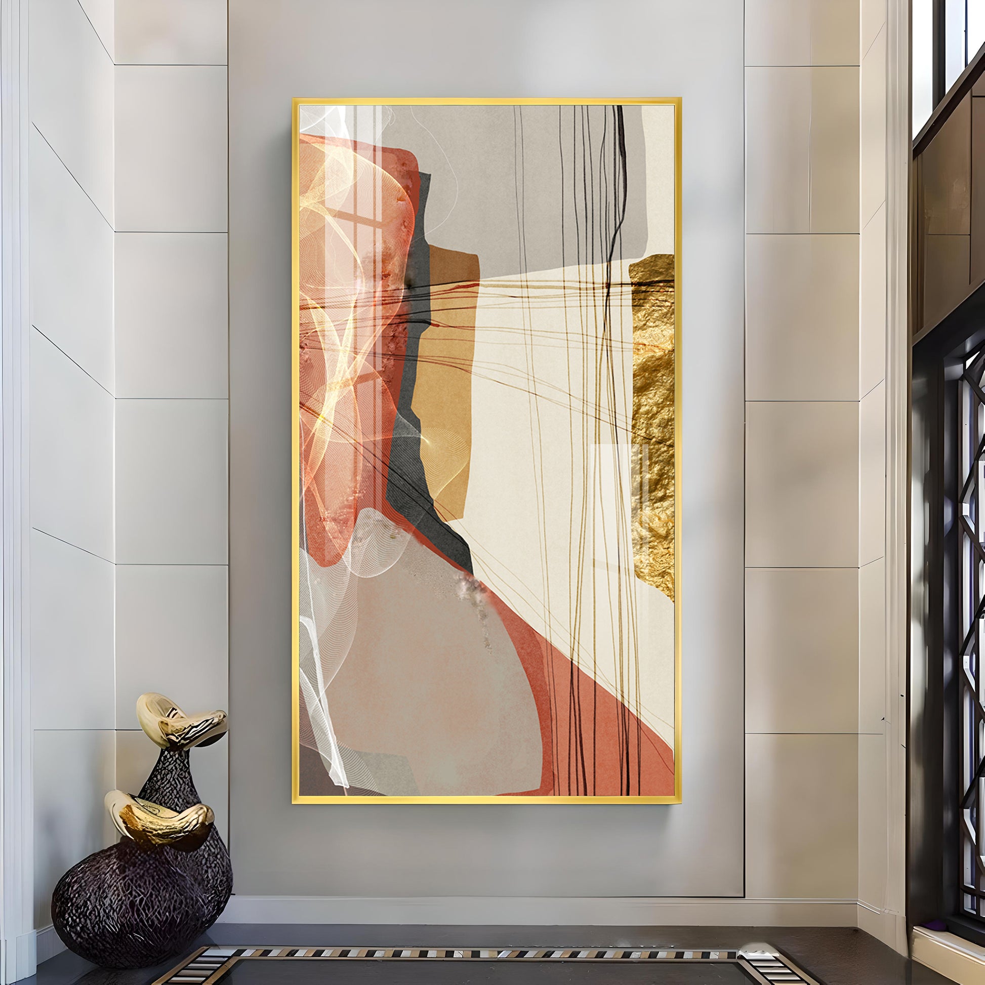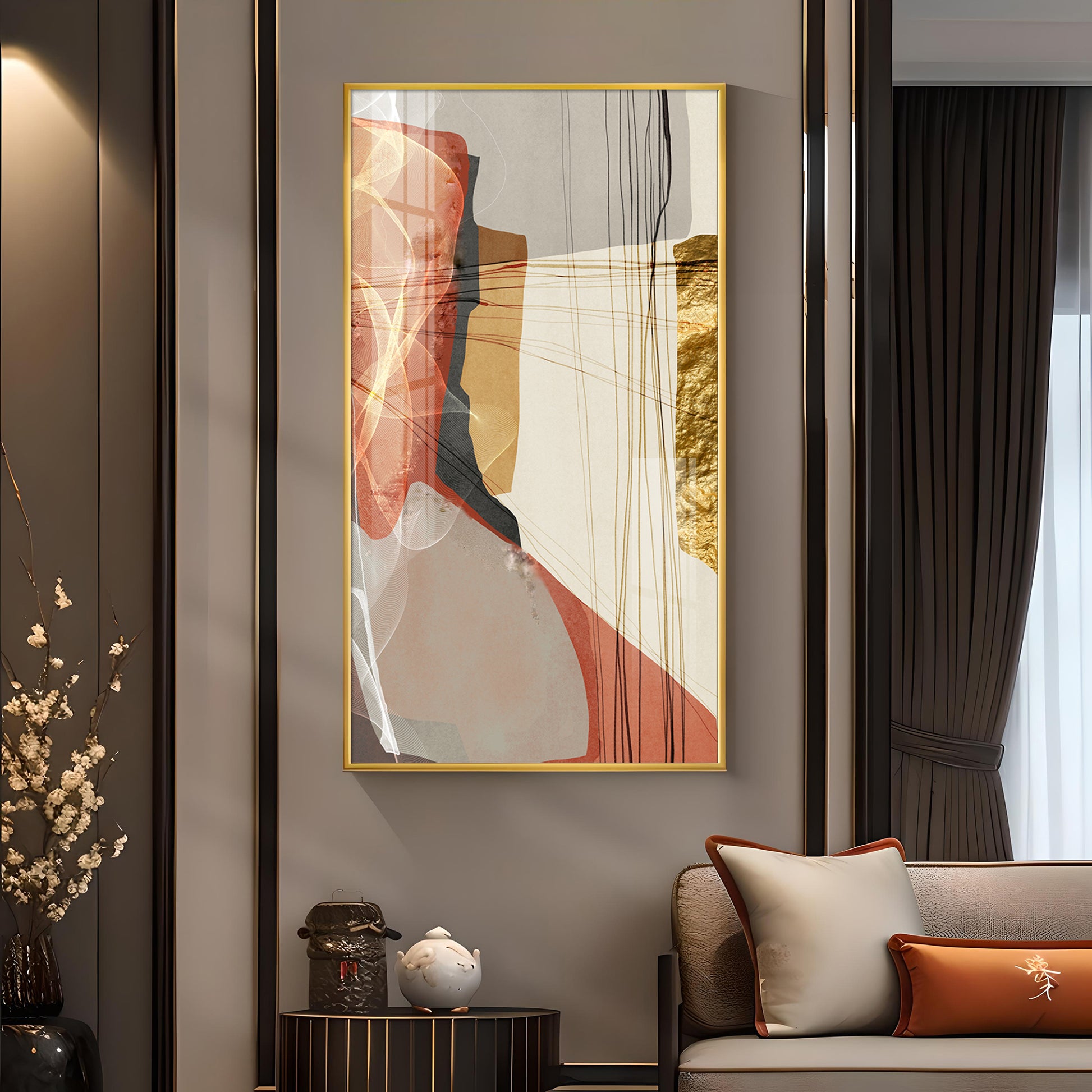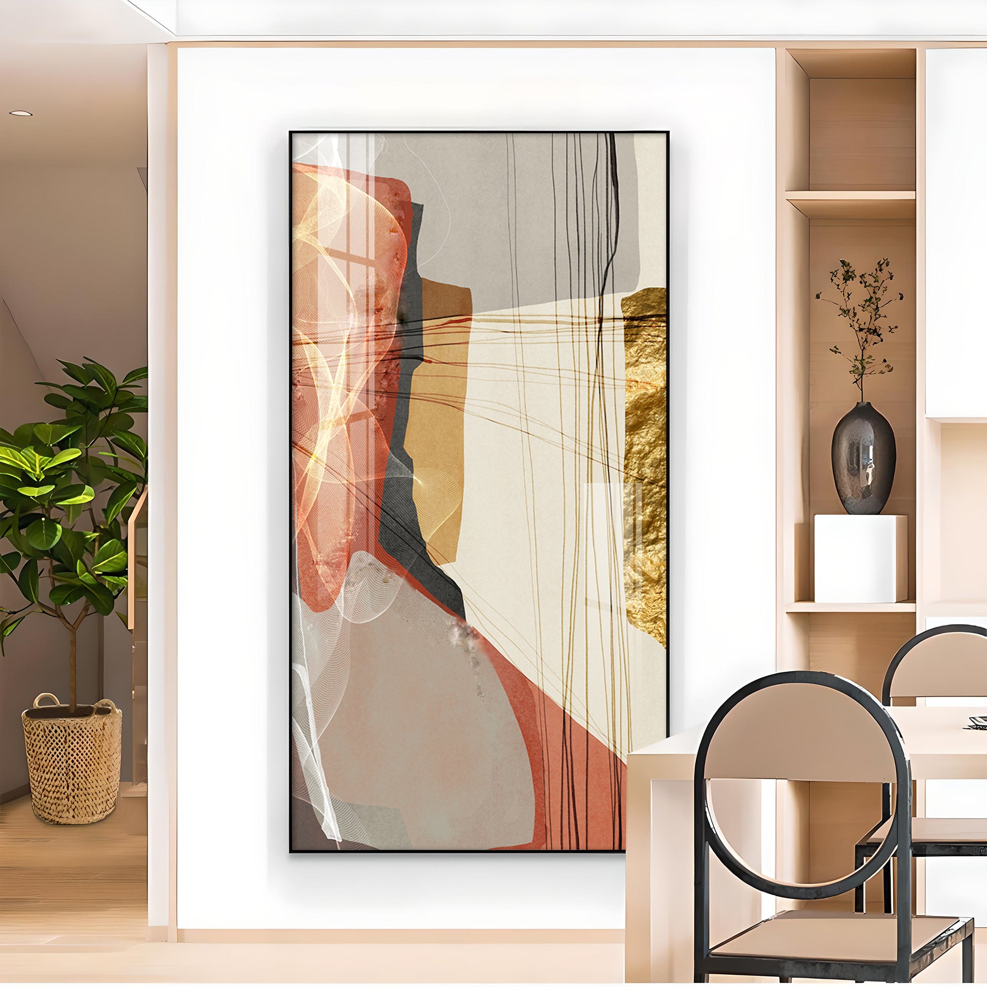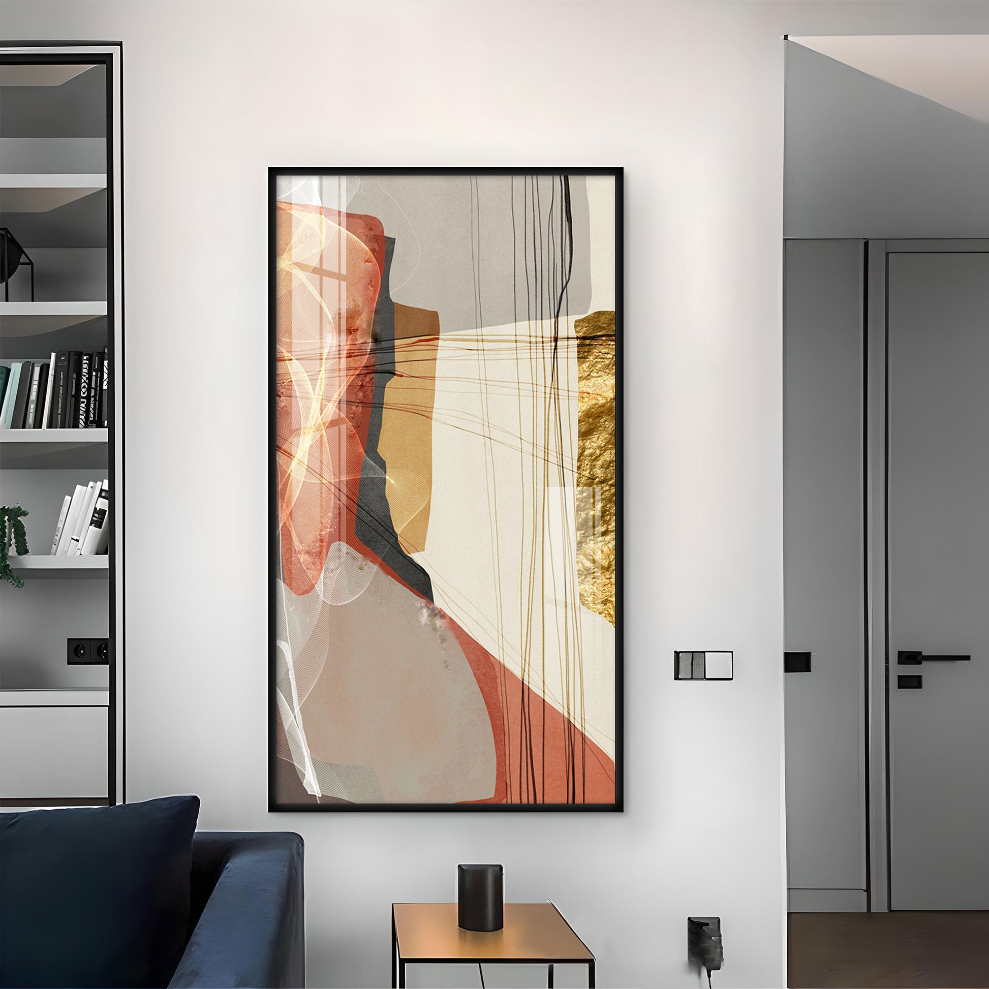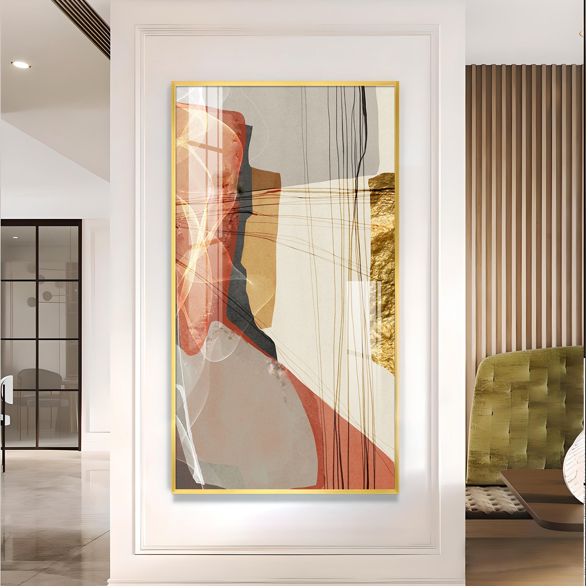 Gold-Red Abstraction Glass Finish Vertical Wall Art