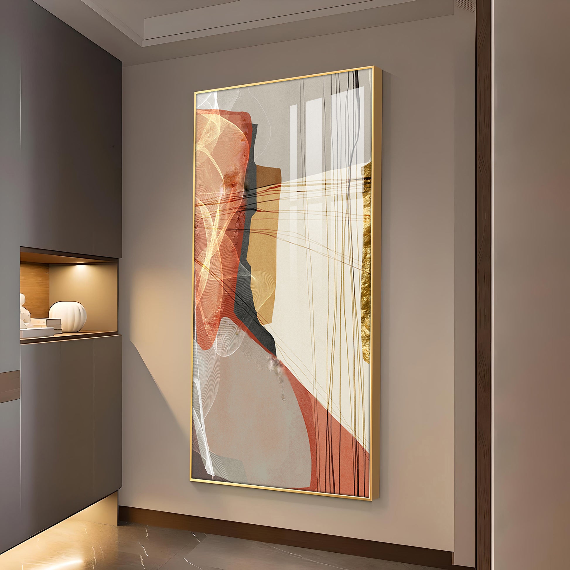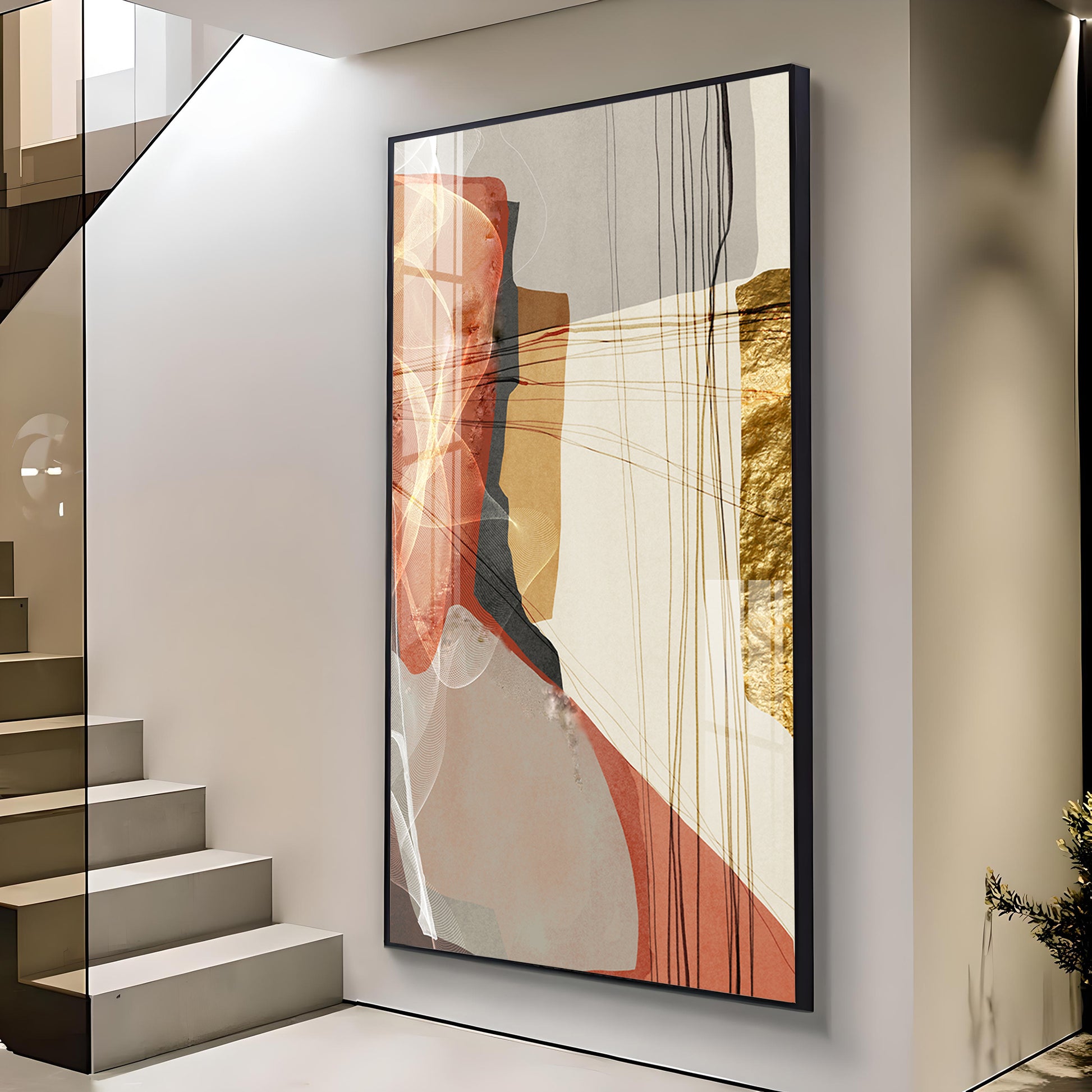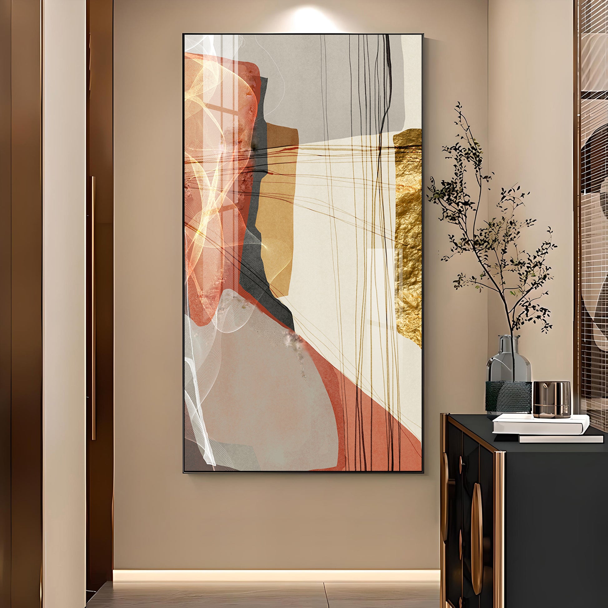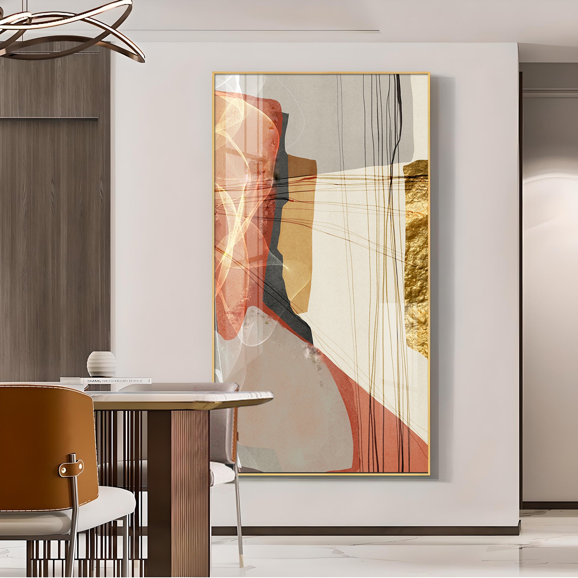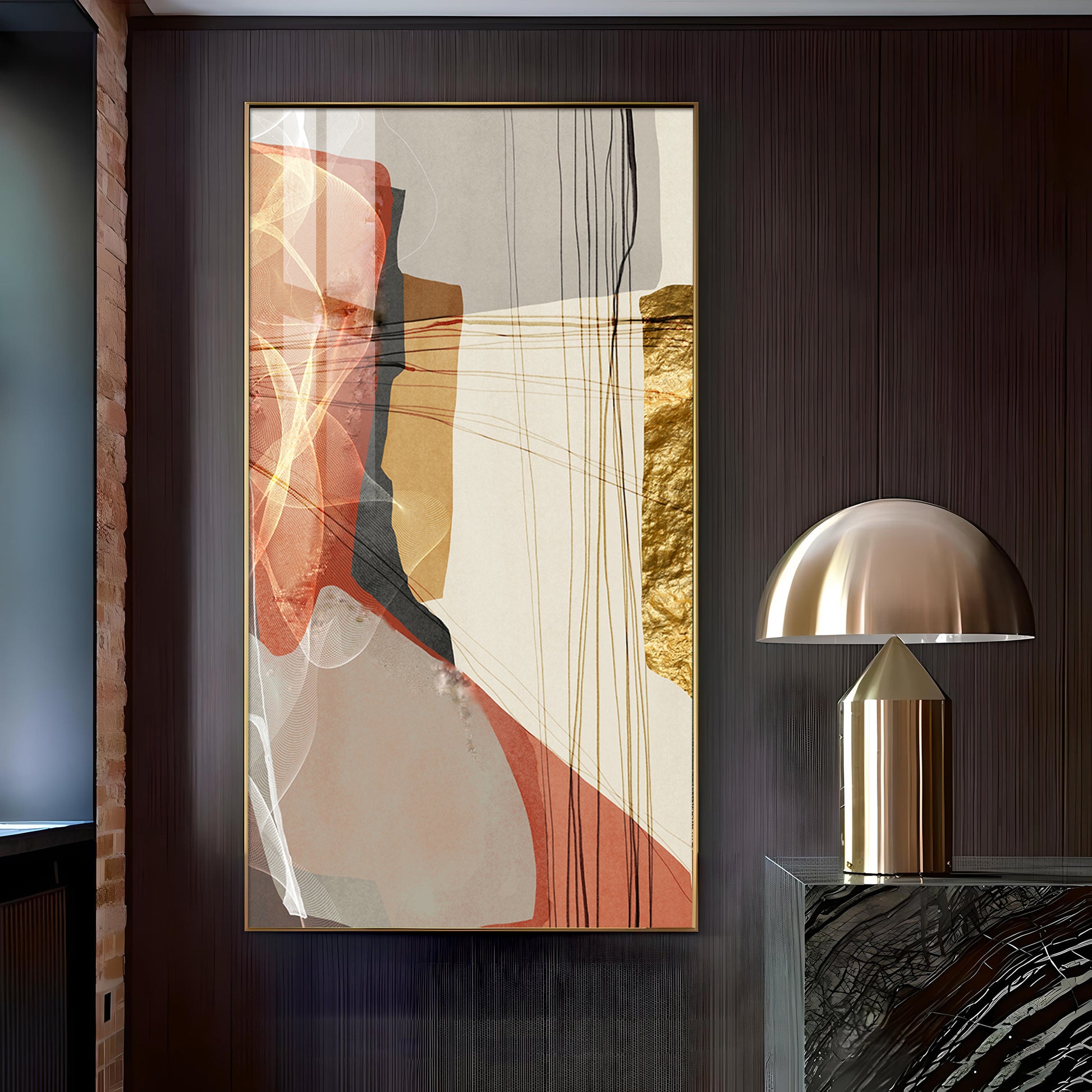 Gold-Red Abstraction Glass Finish Vertical Wall Art