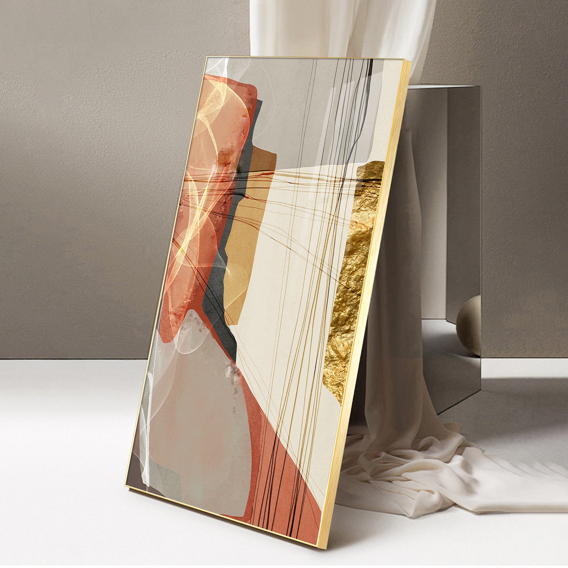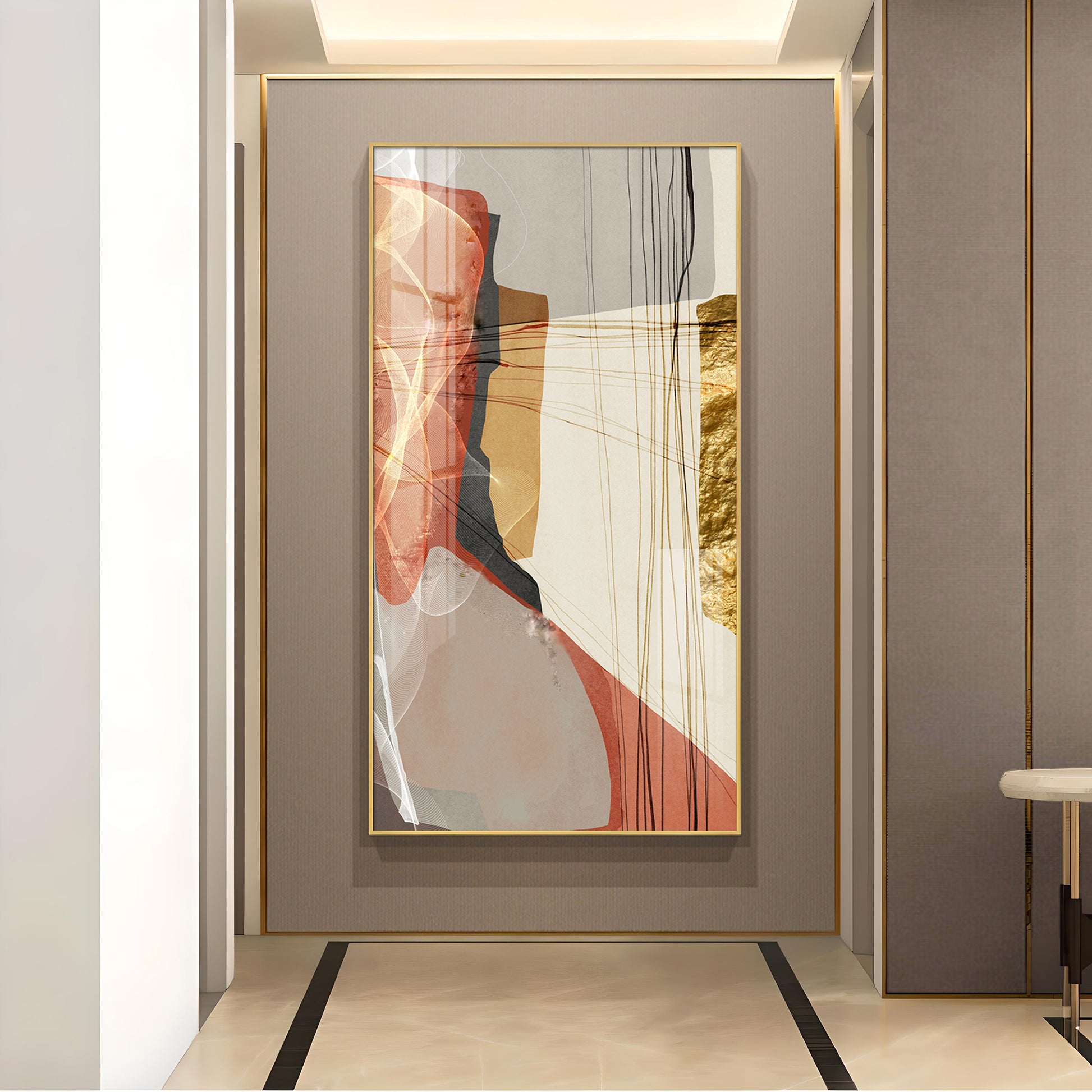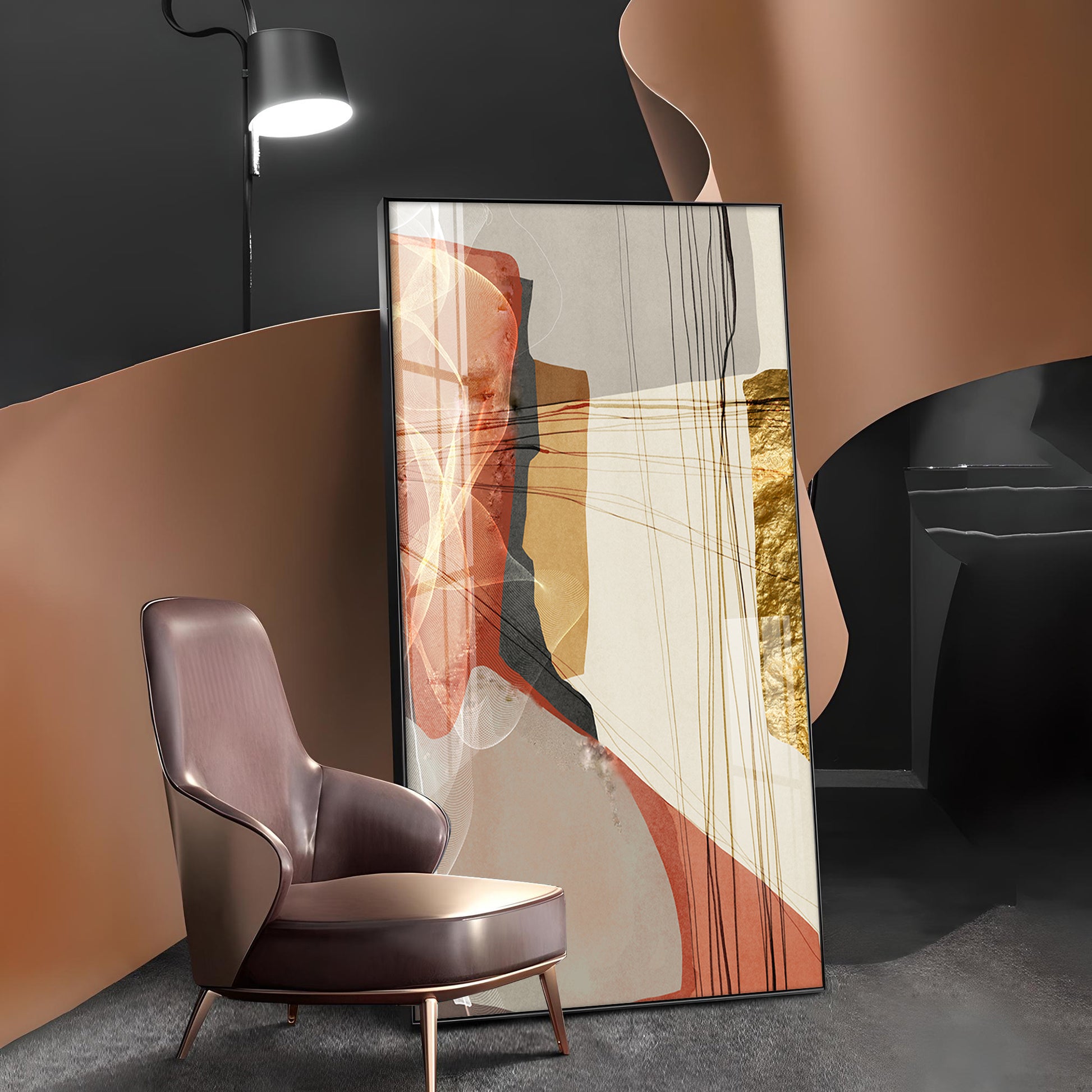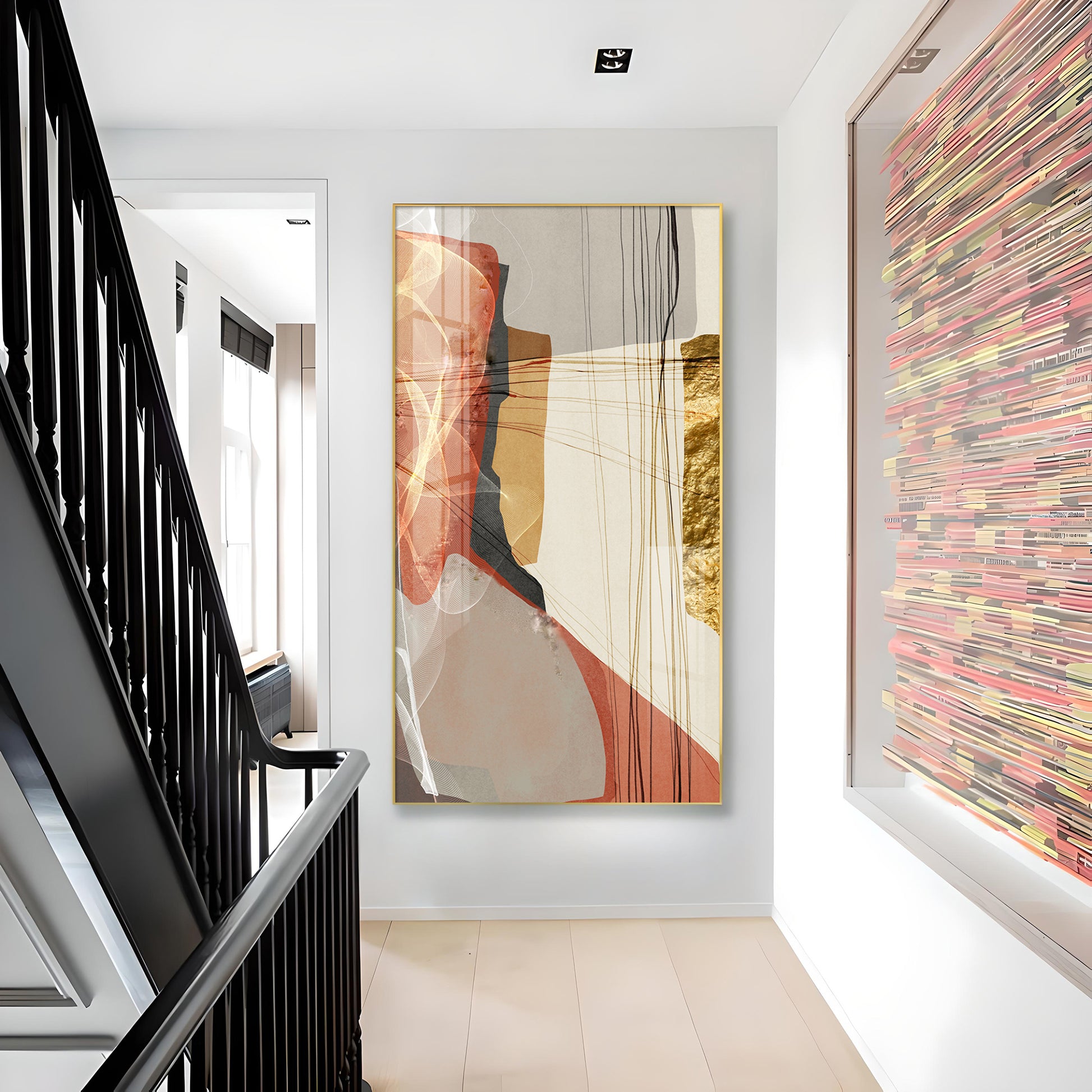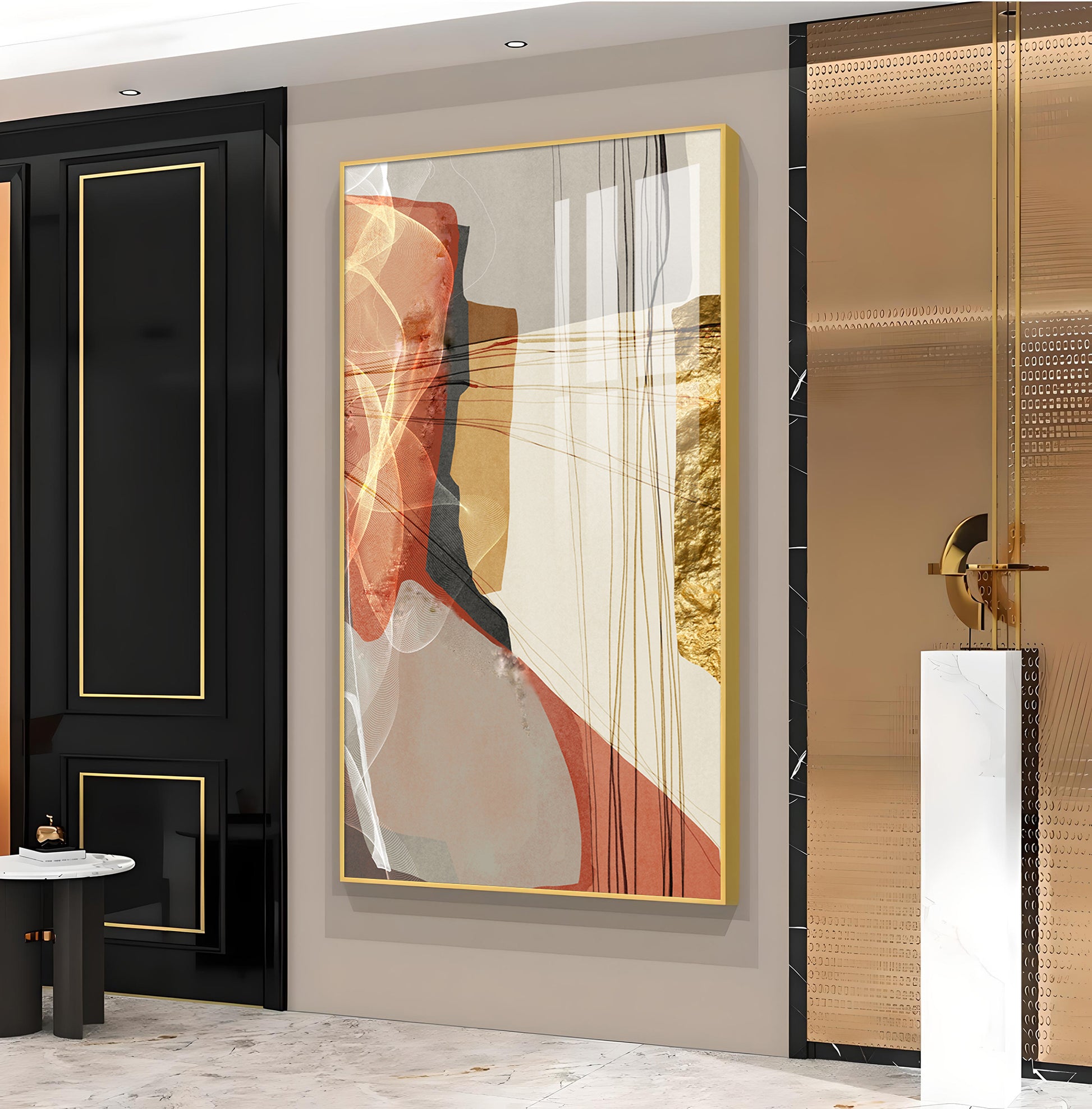 Gold-Red Abstraction Glass Finish Vertical Wall Art