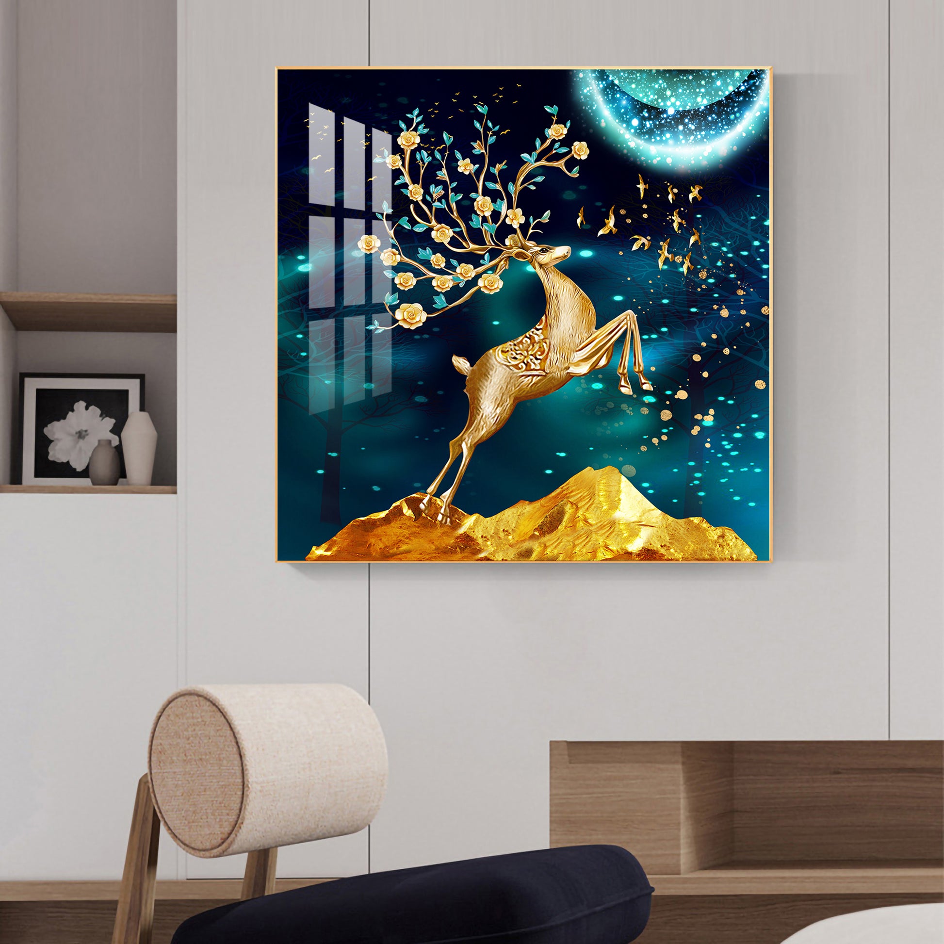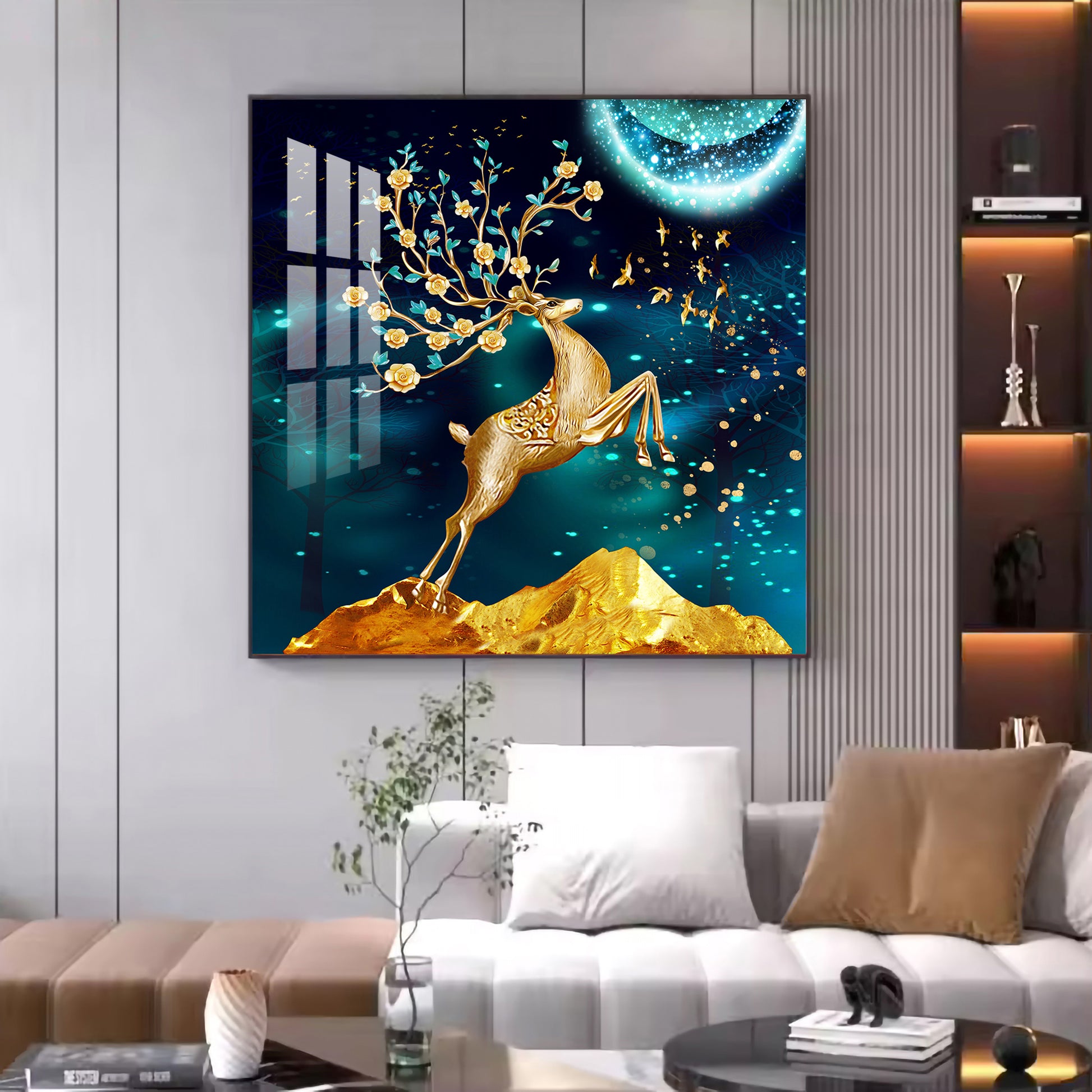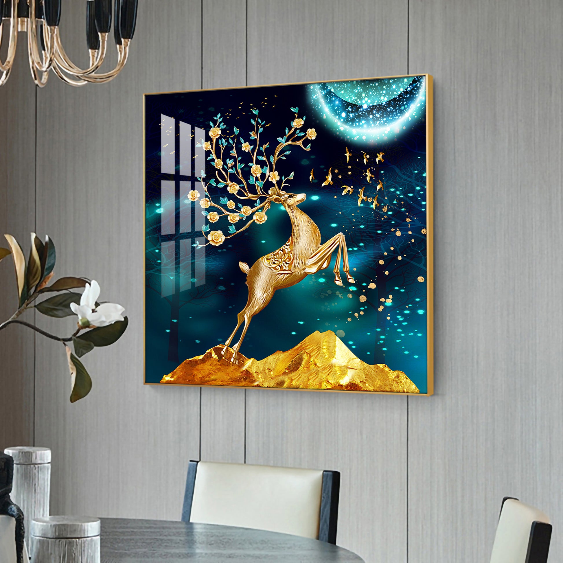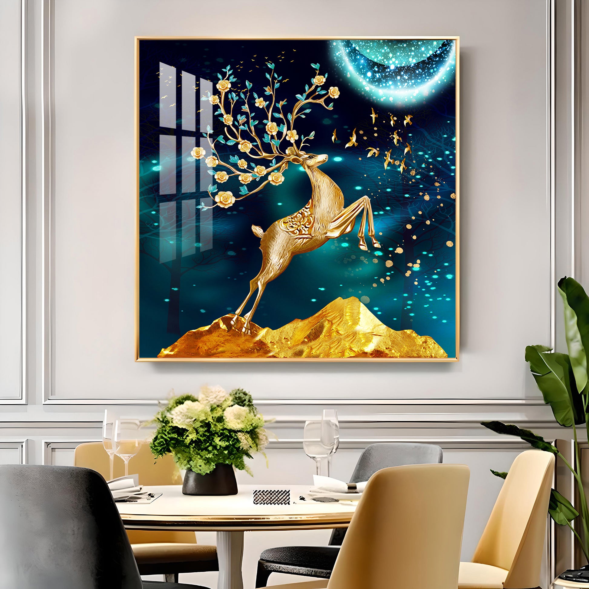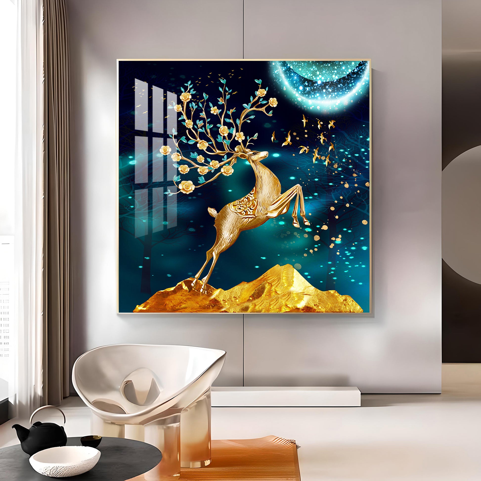 Golden Antlered Beauty Glass Finish Square Wall Art