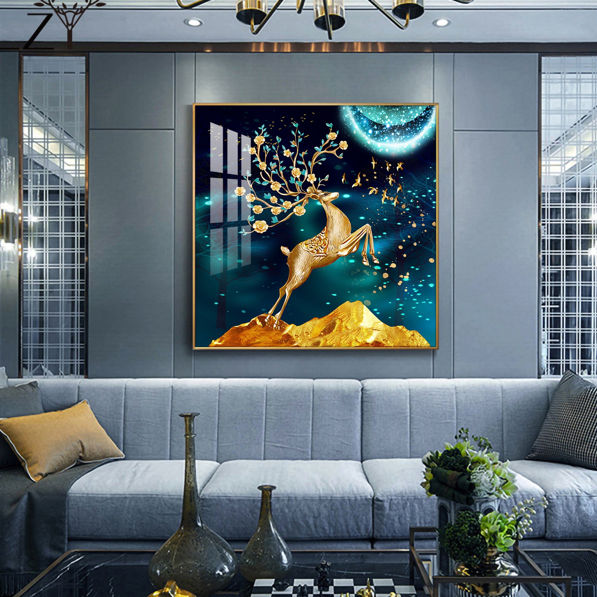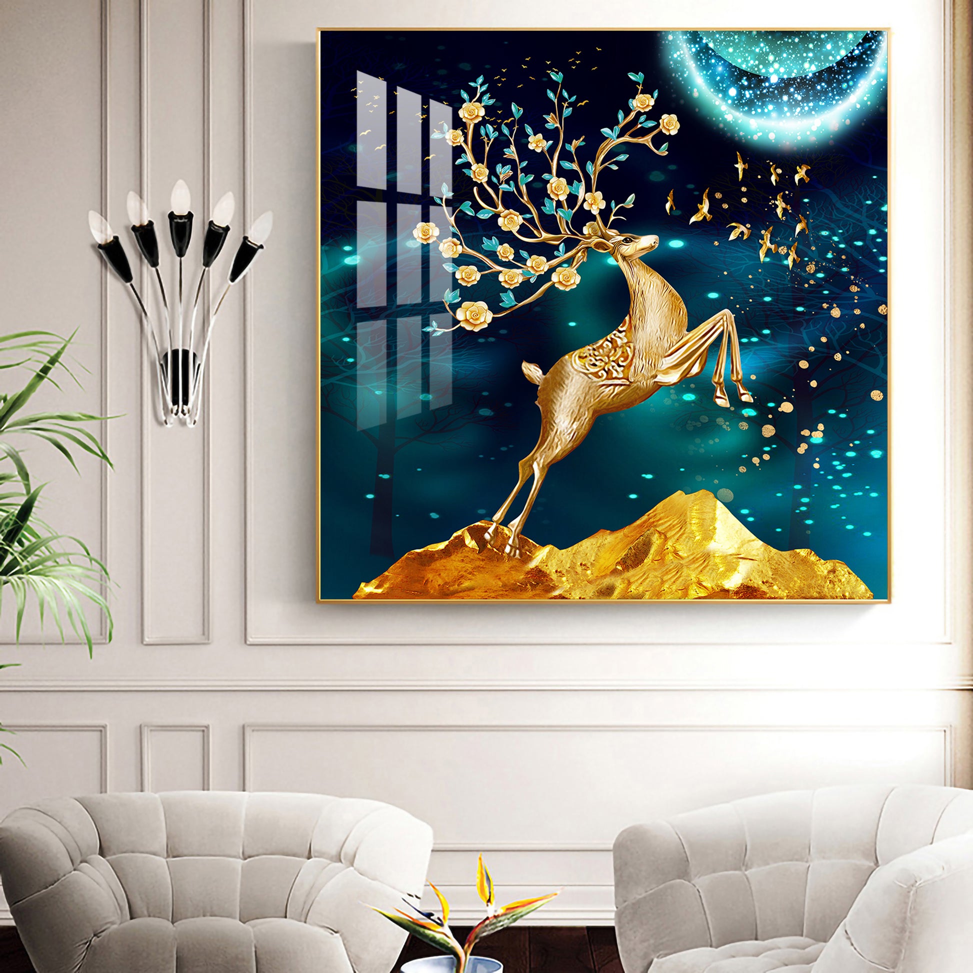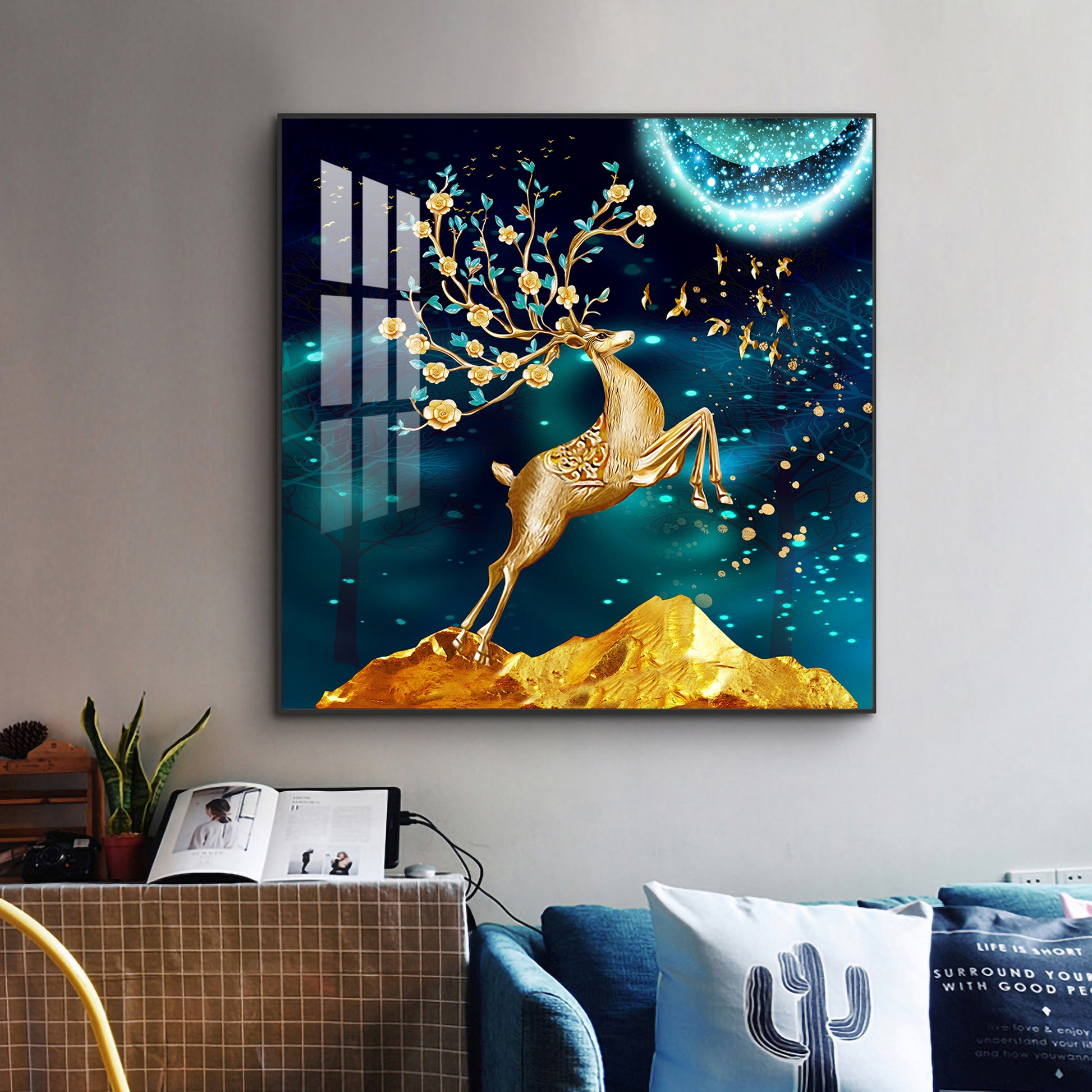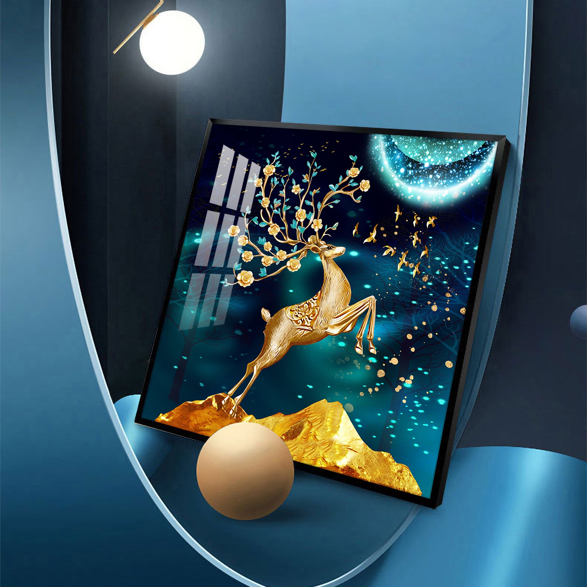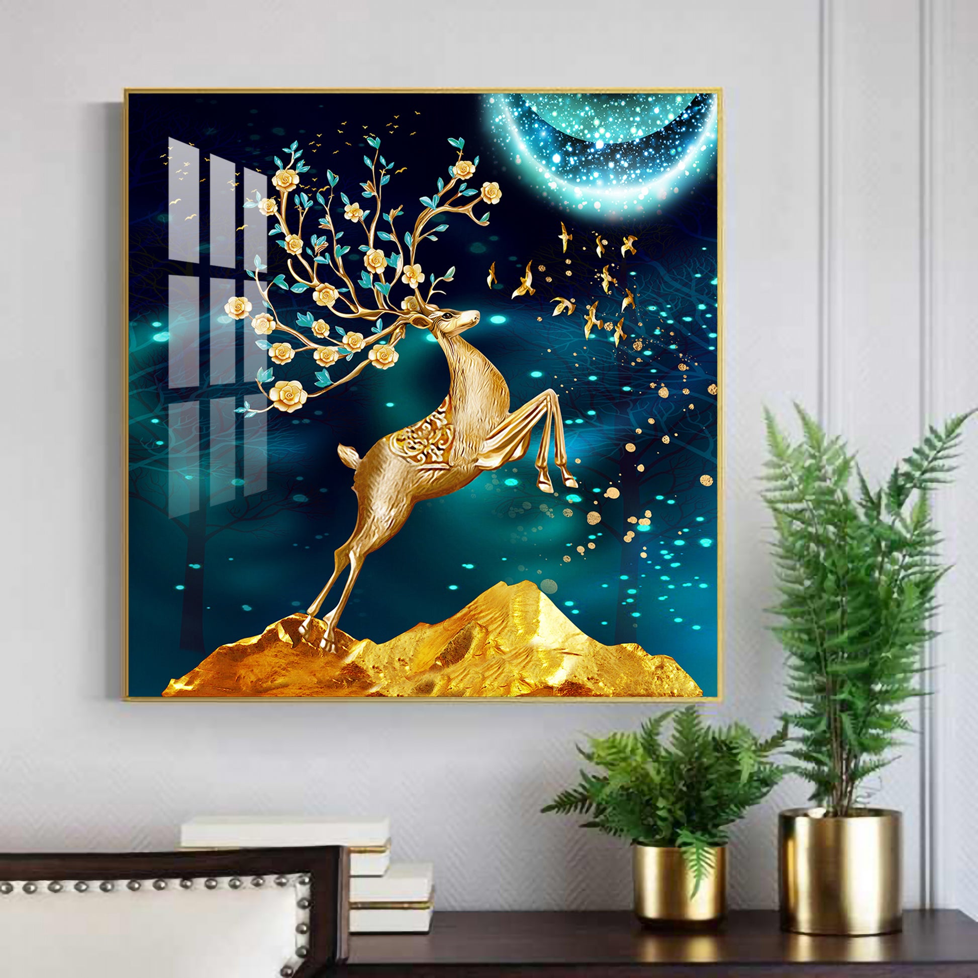Golden Antlered Beauty Glass Finish Square Wall Art