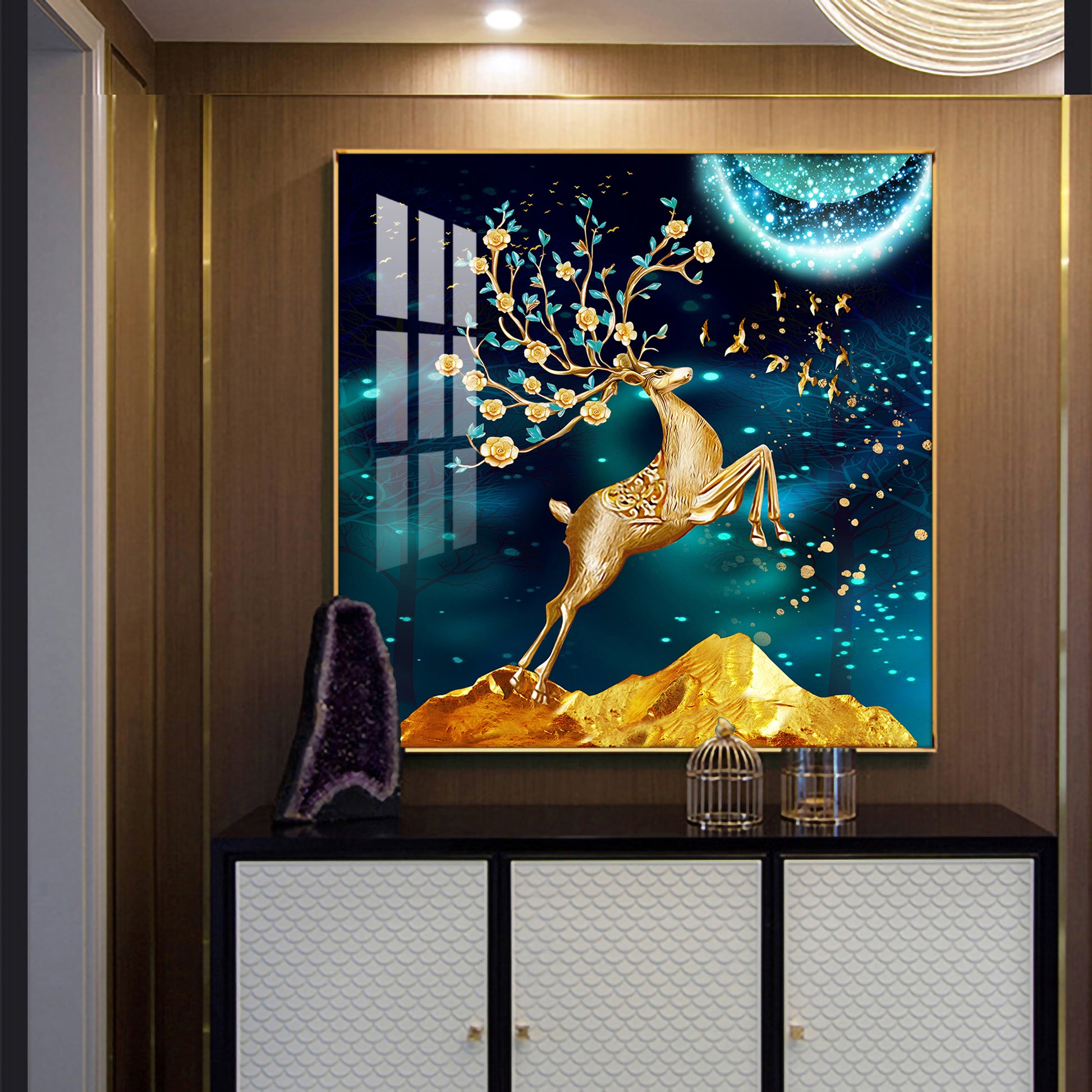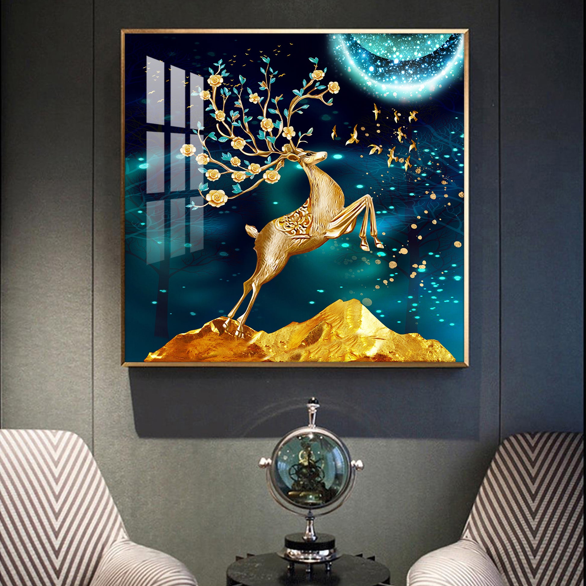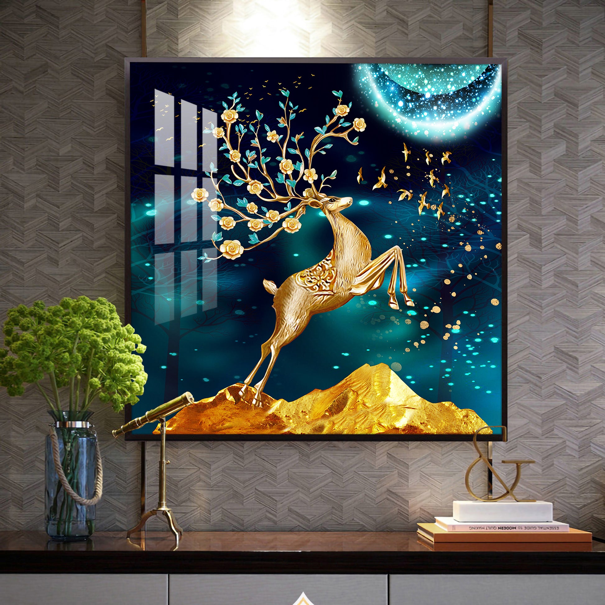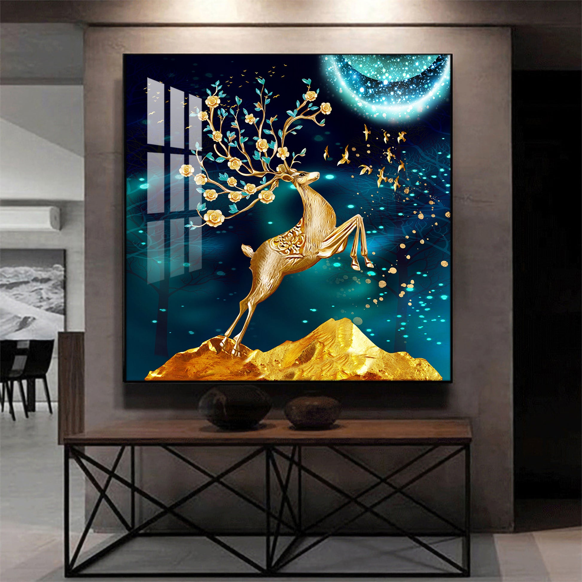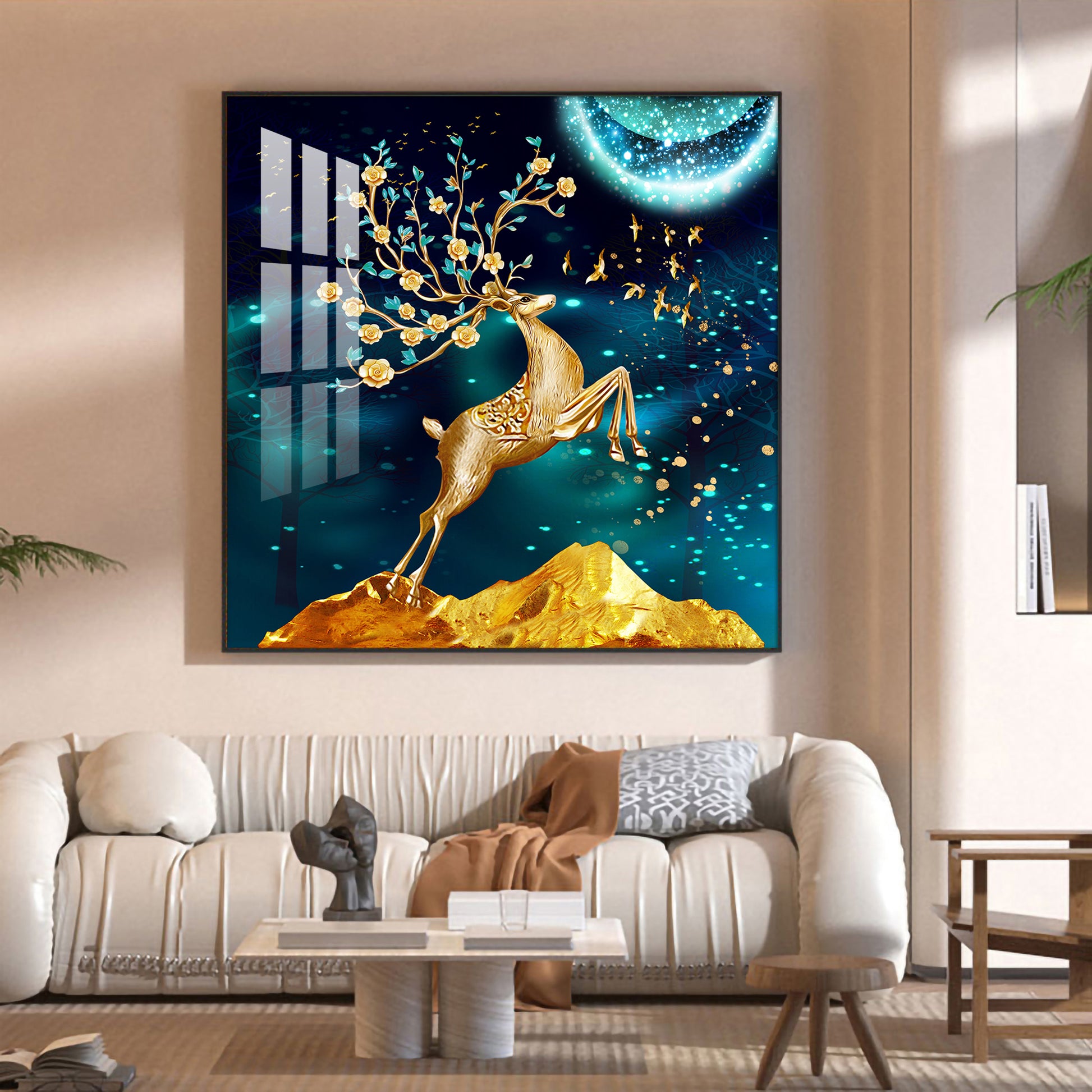 Golden Antlered Beauty Glass Finish Square Wall Art