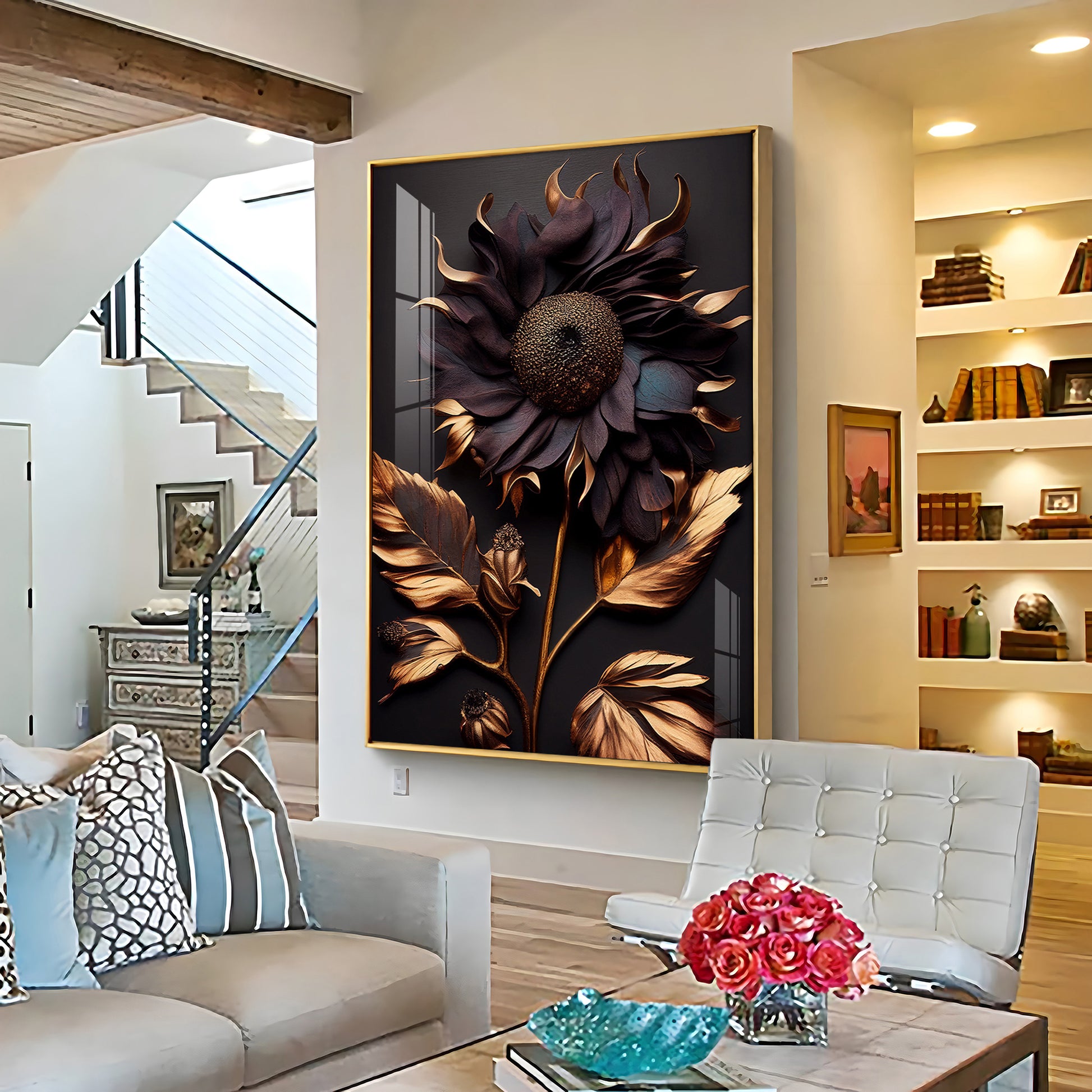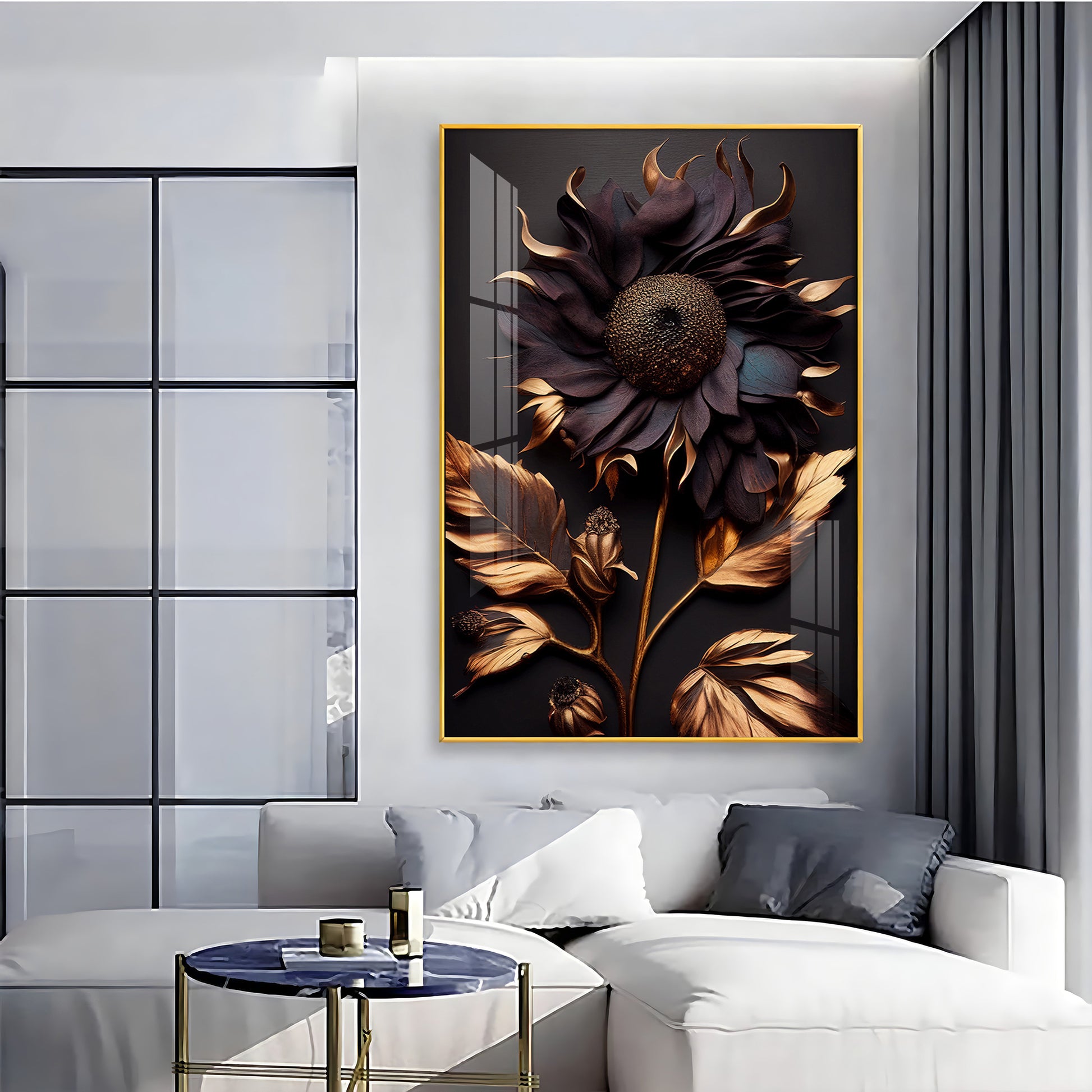 Golden Bloom Artistry Glass Finish Vertical Wall Art