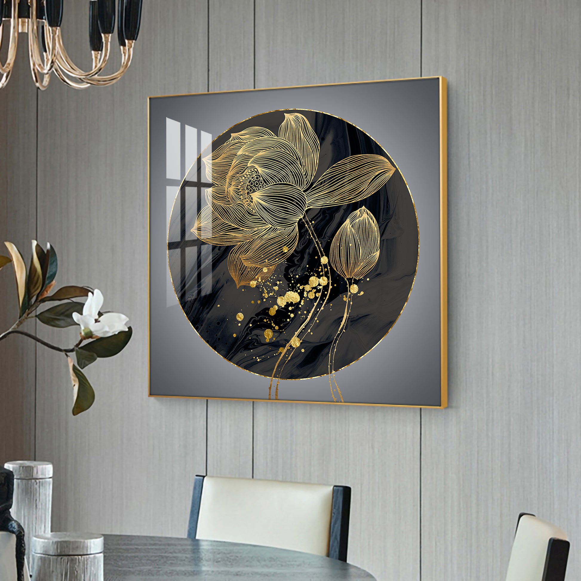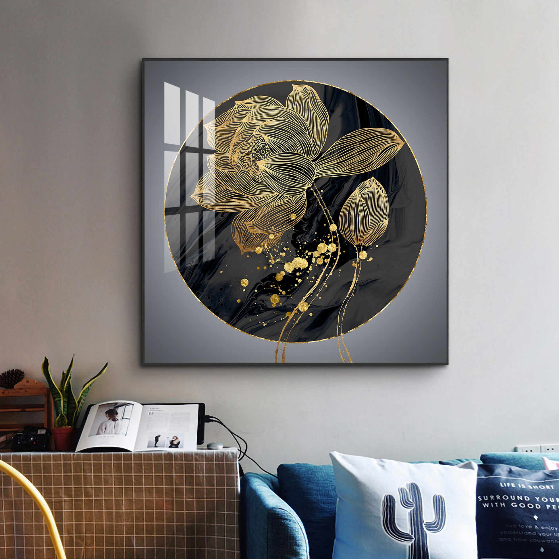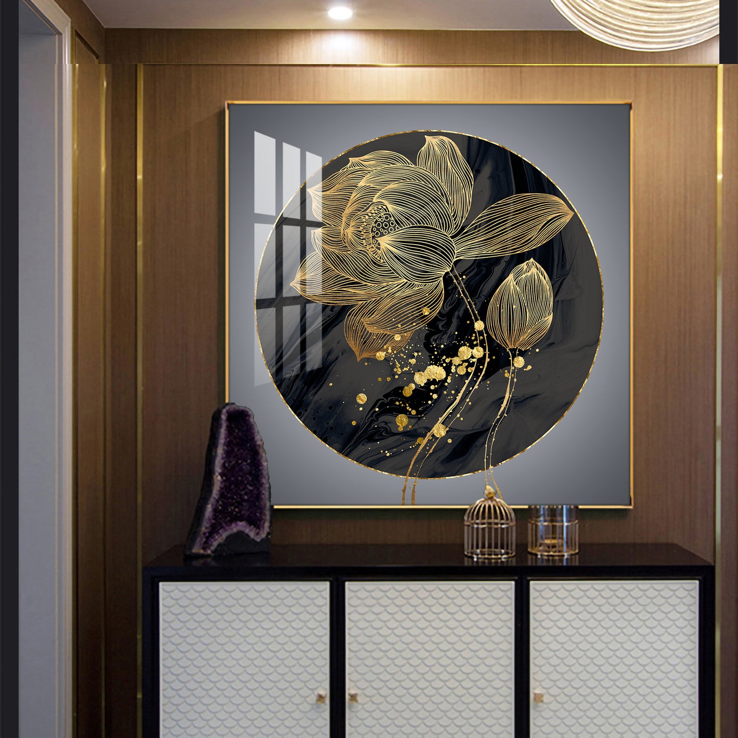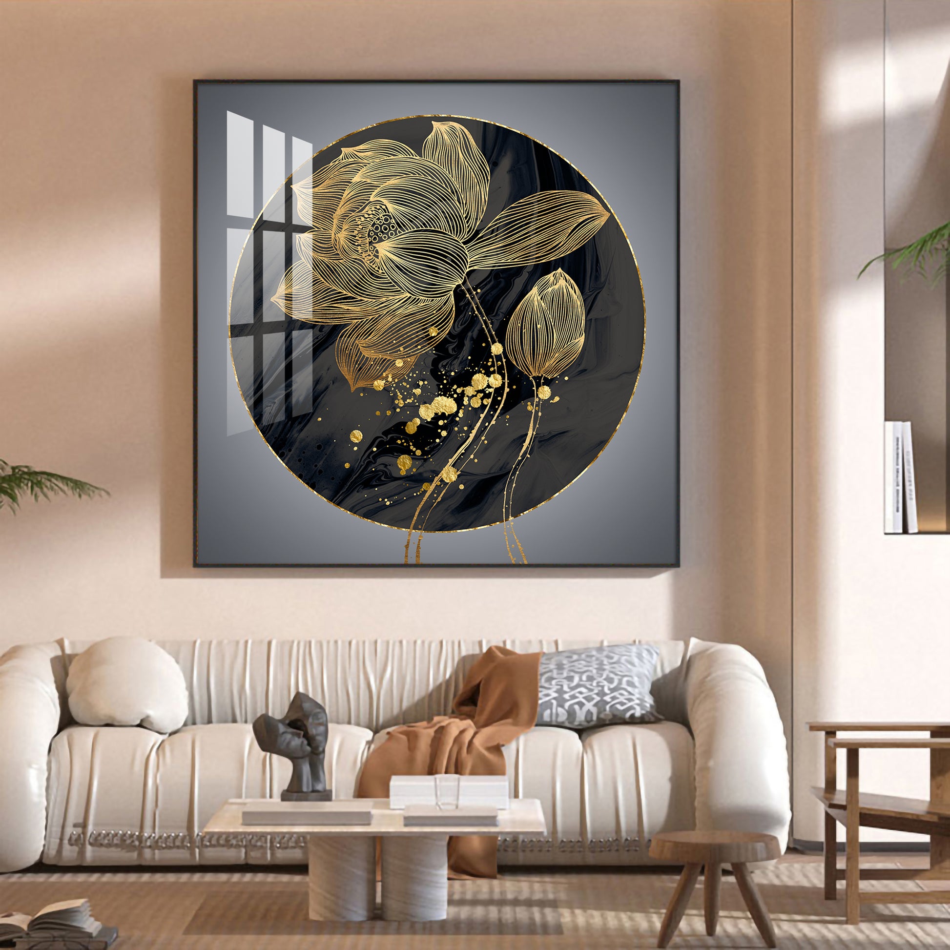 Golden Petal Grandeur Glass Finish Square Wall Art
