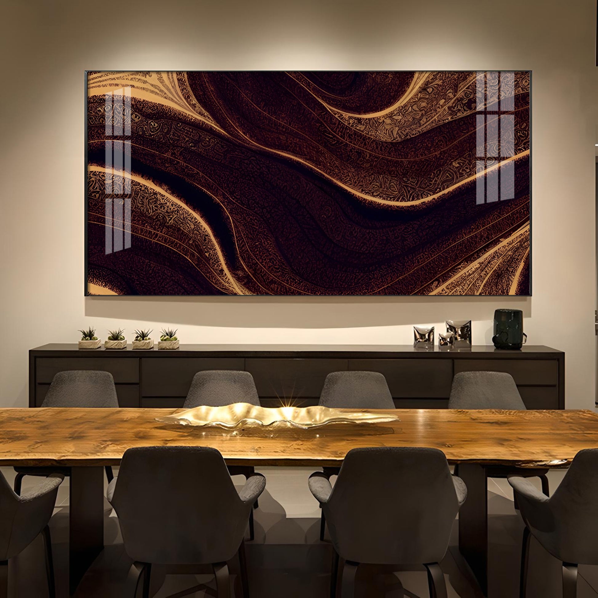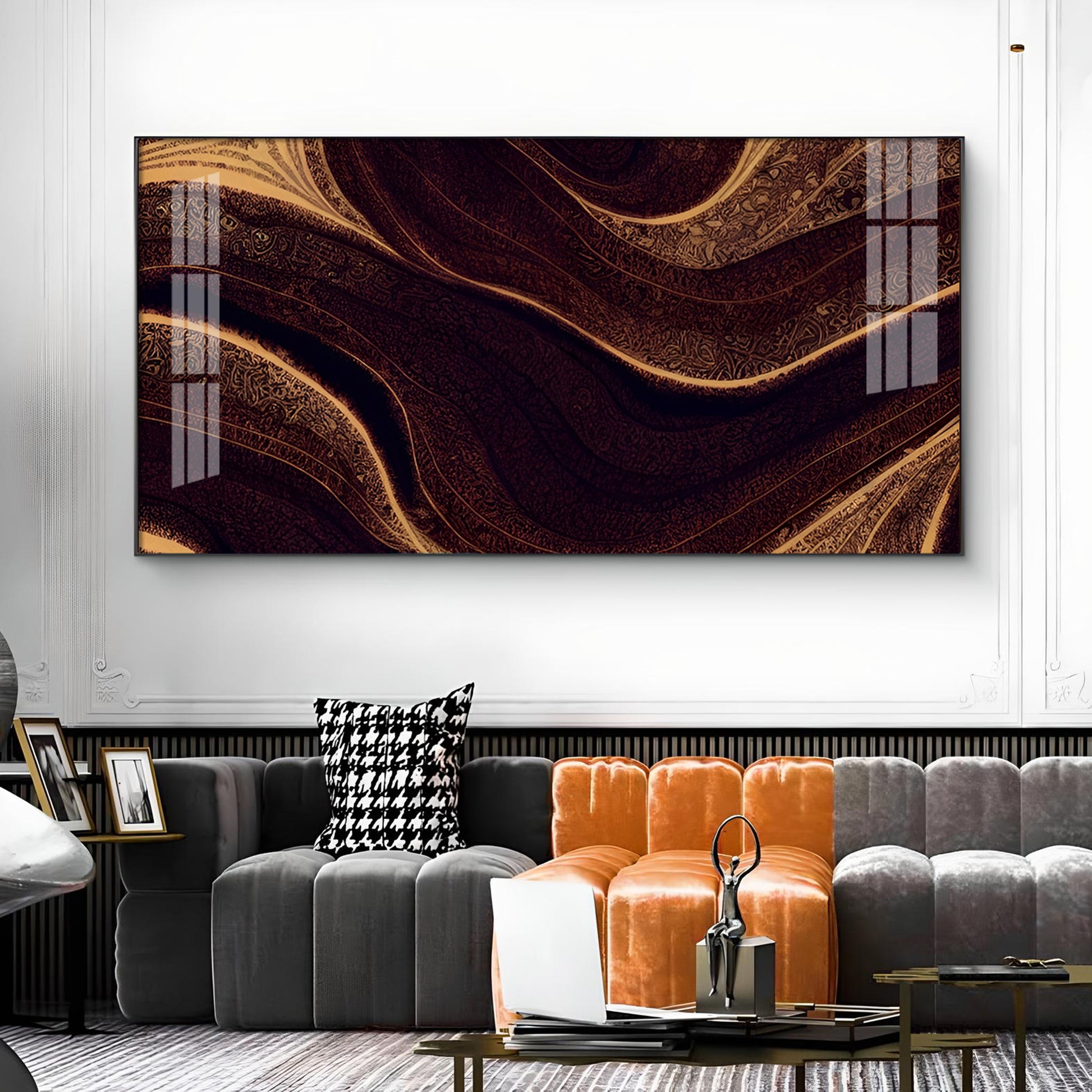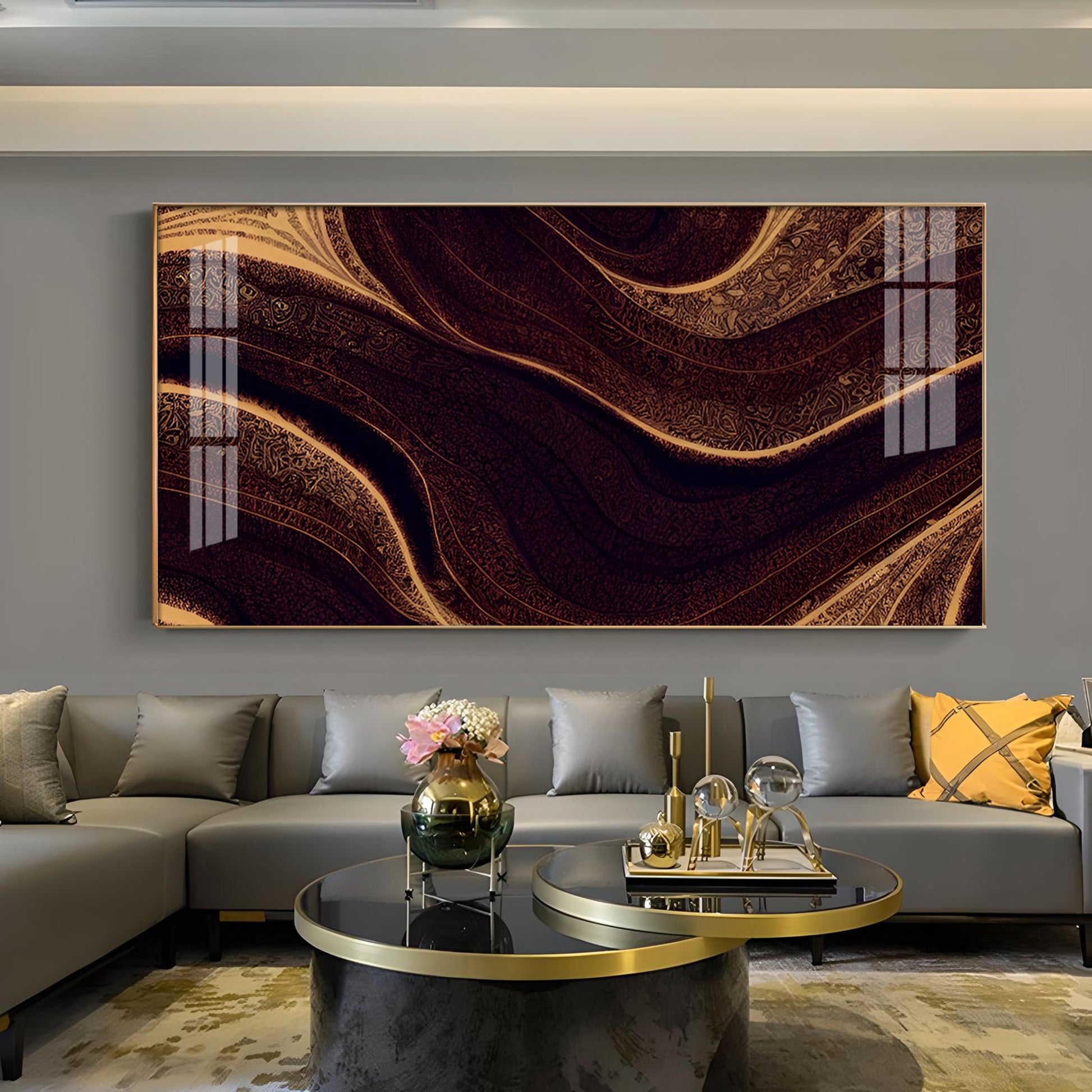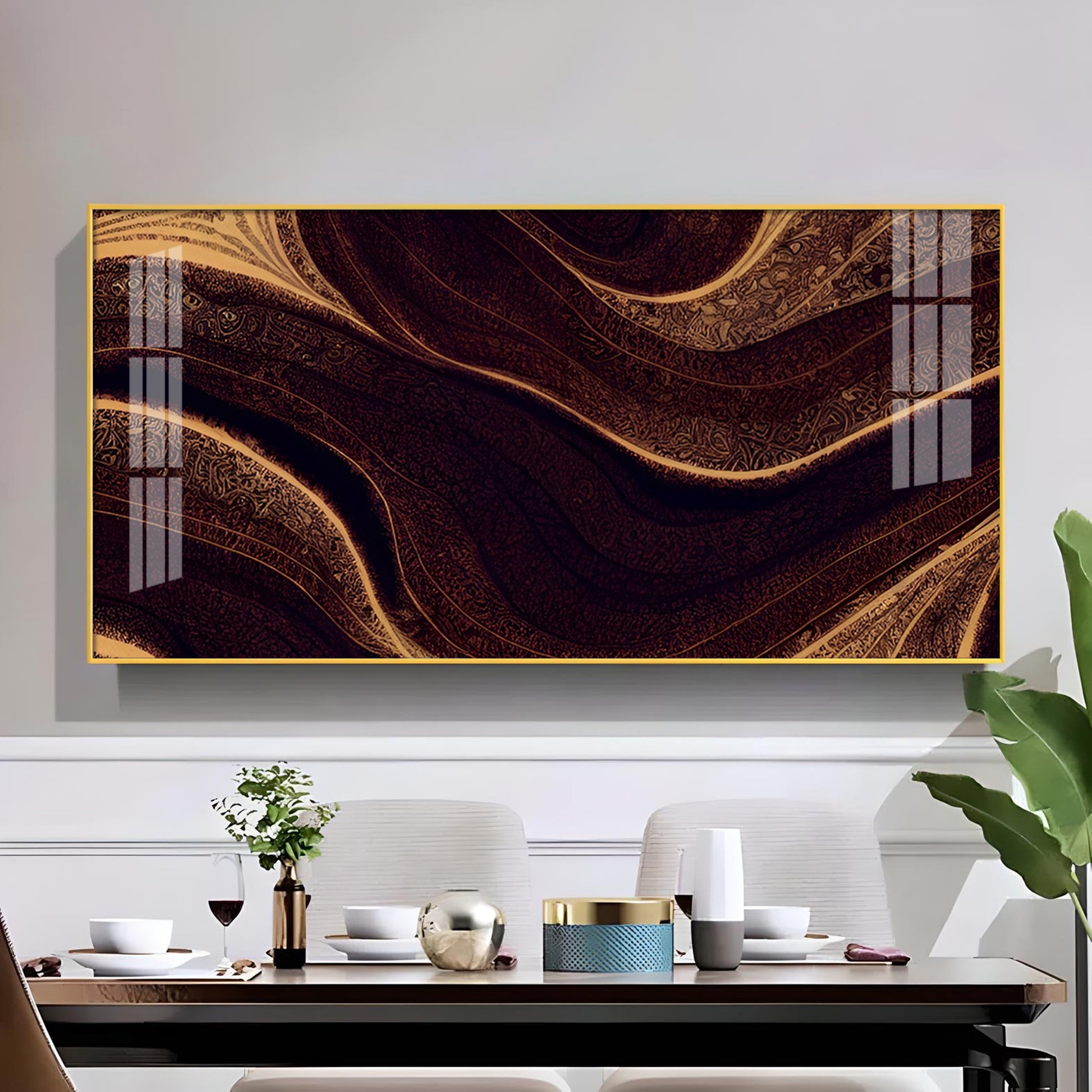 Golden Rhythm Wave Glass Finish Horizontal Wall Art