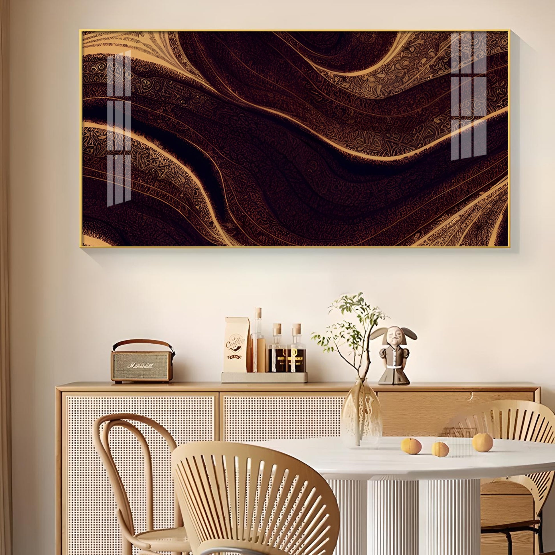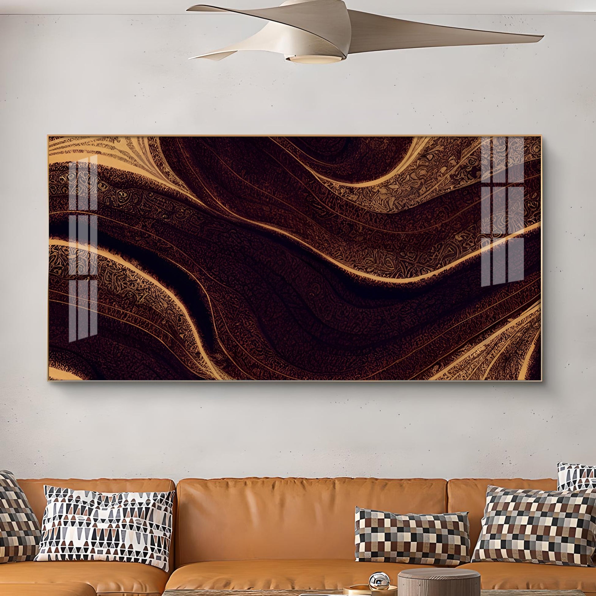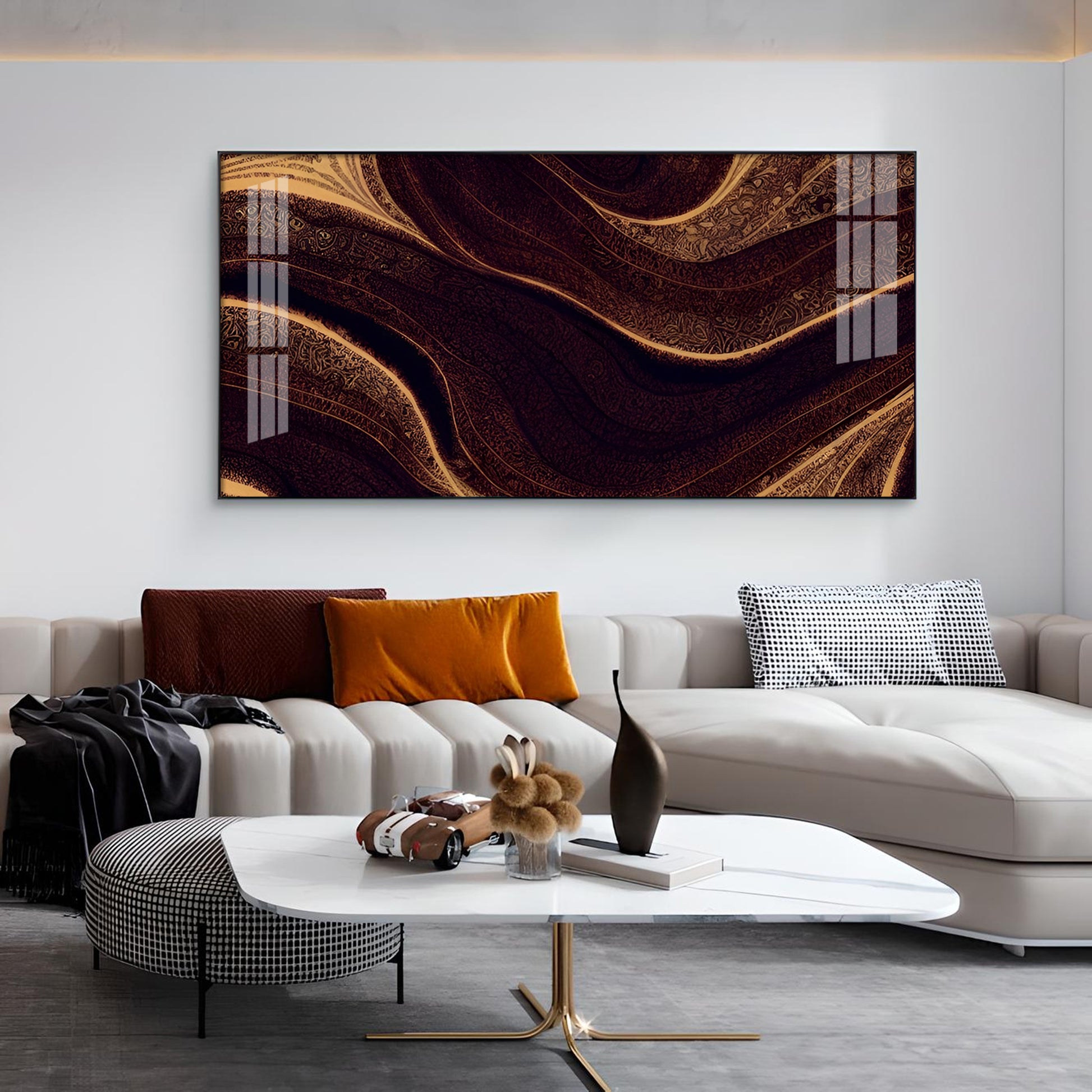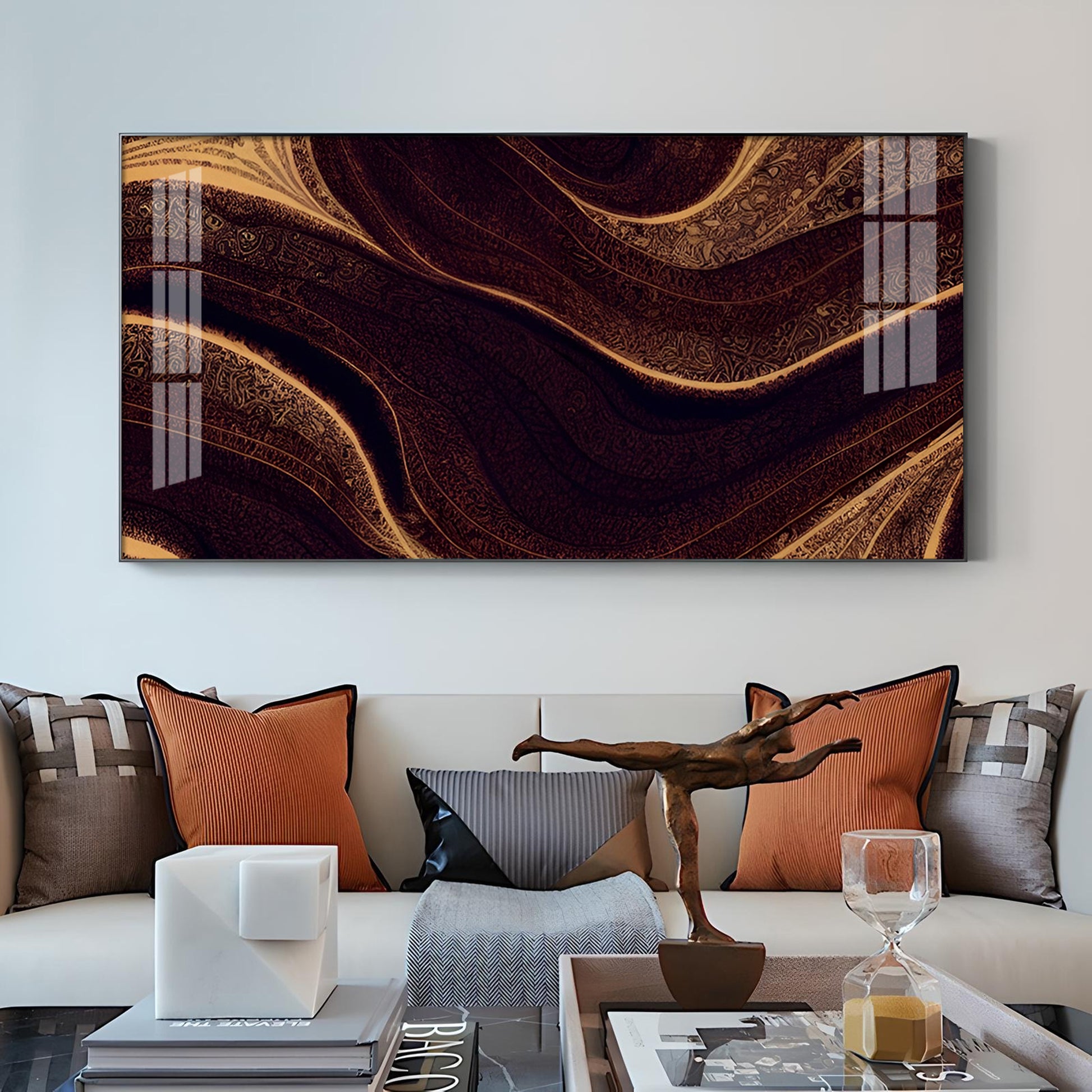 Golden Rhythm Wave Glass Finish Horizontal Wall Art