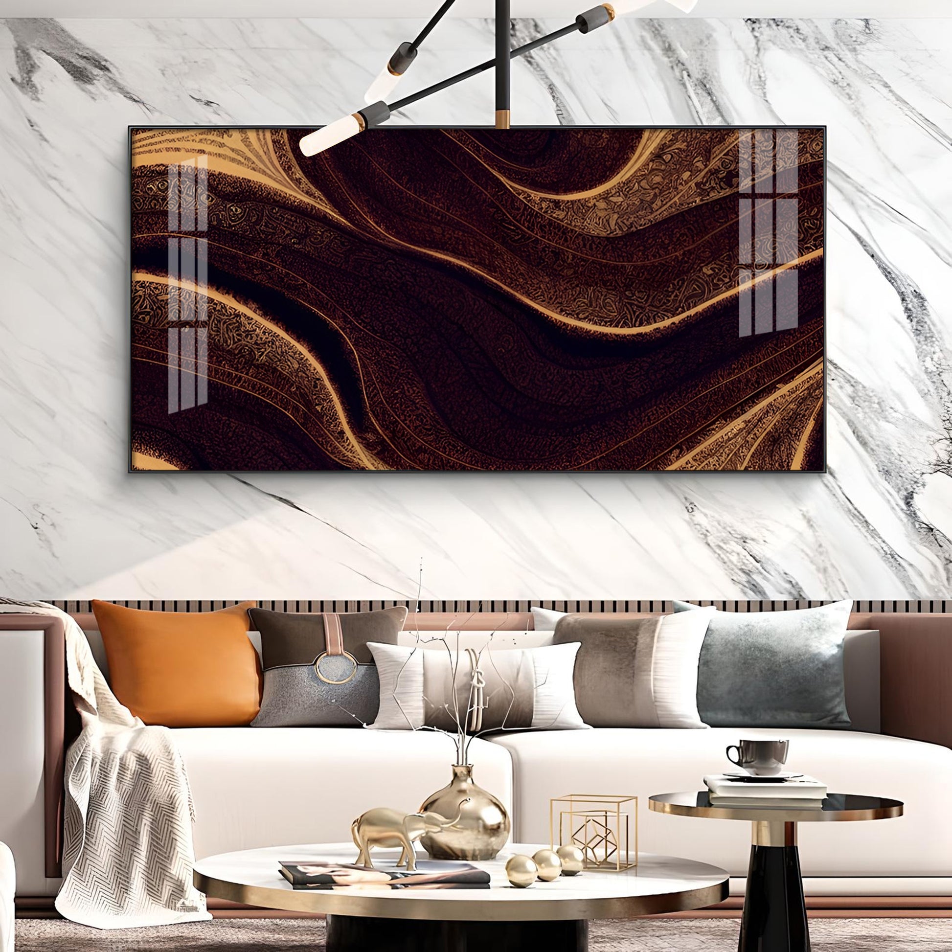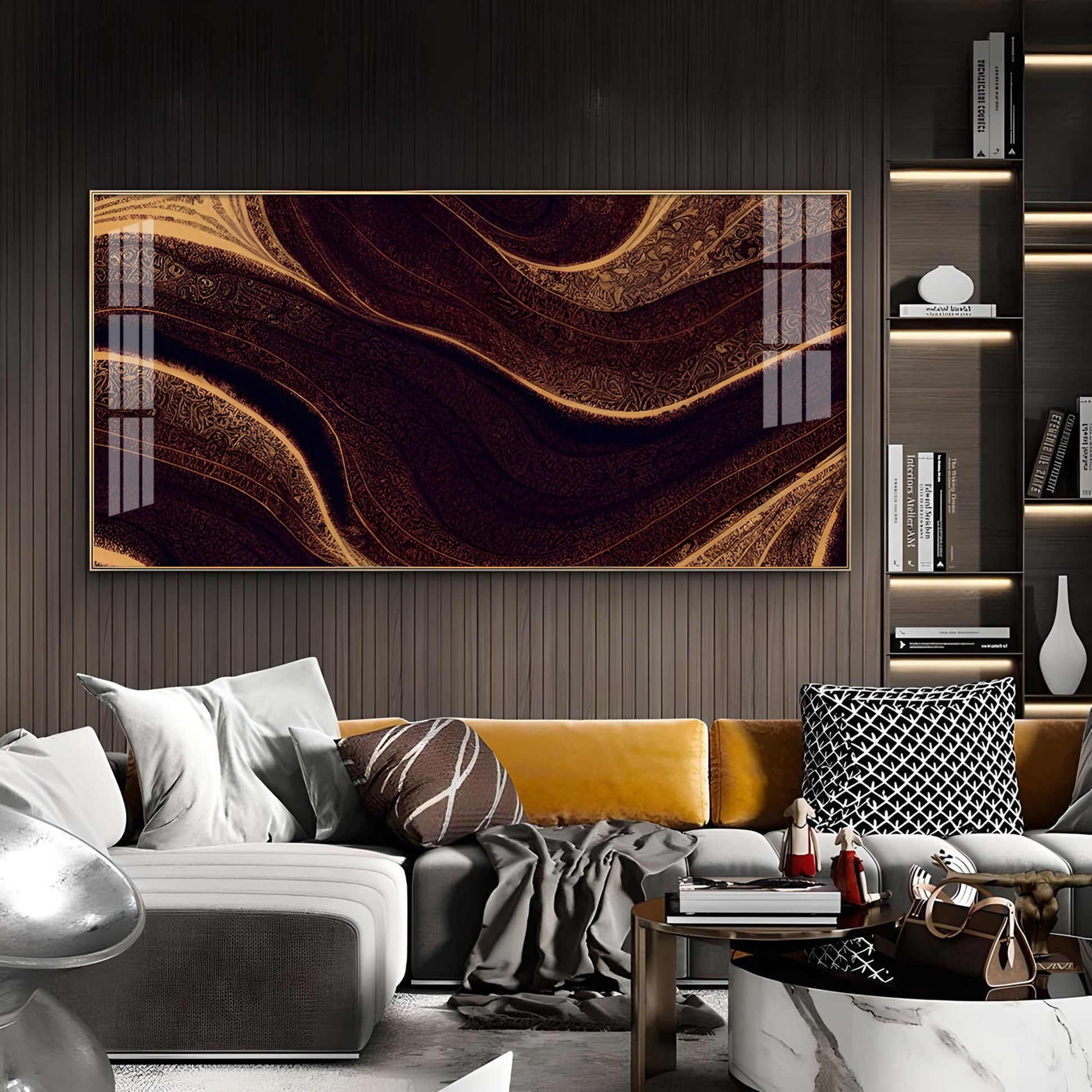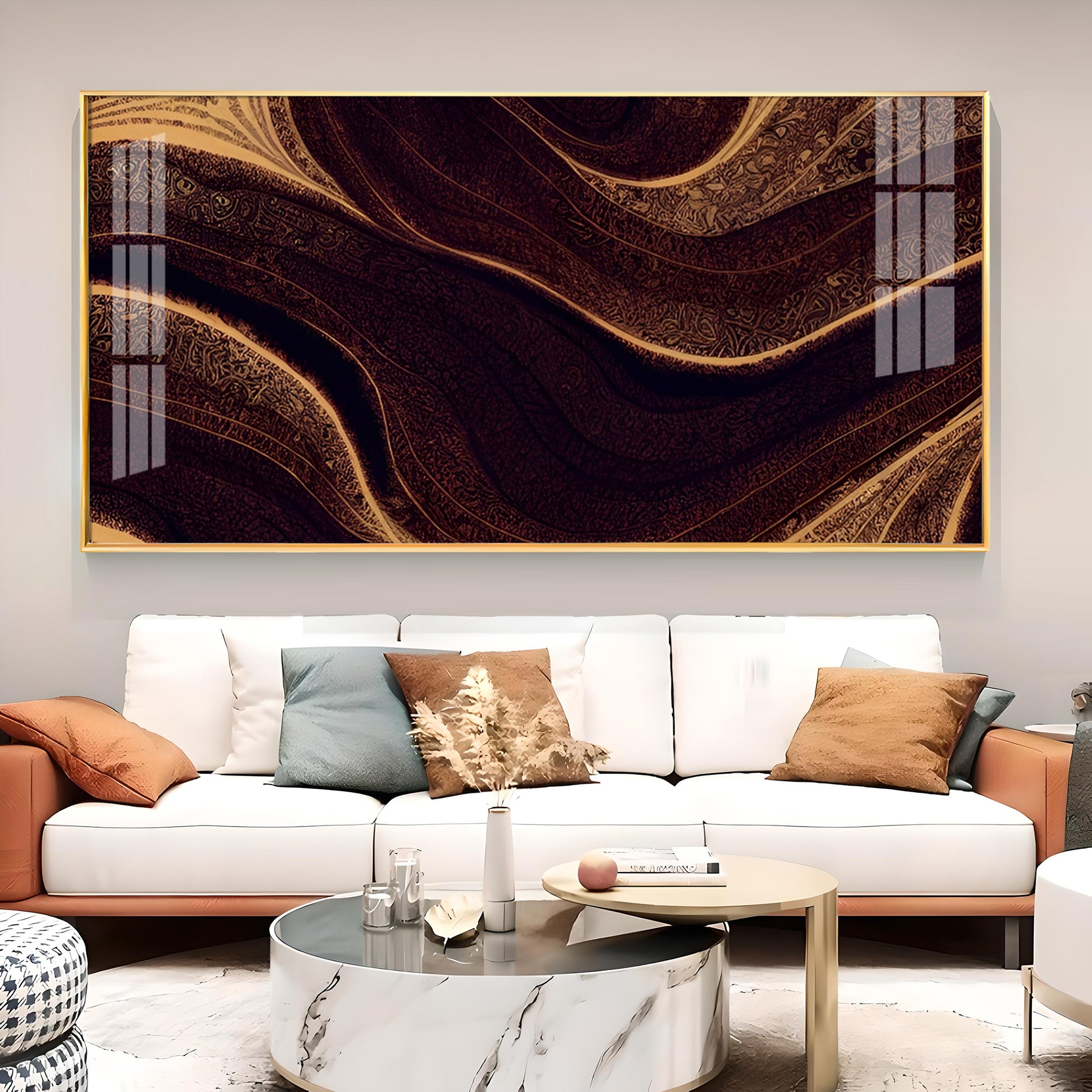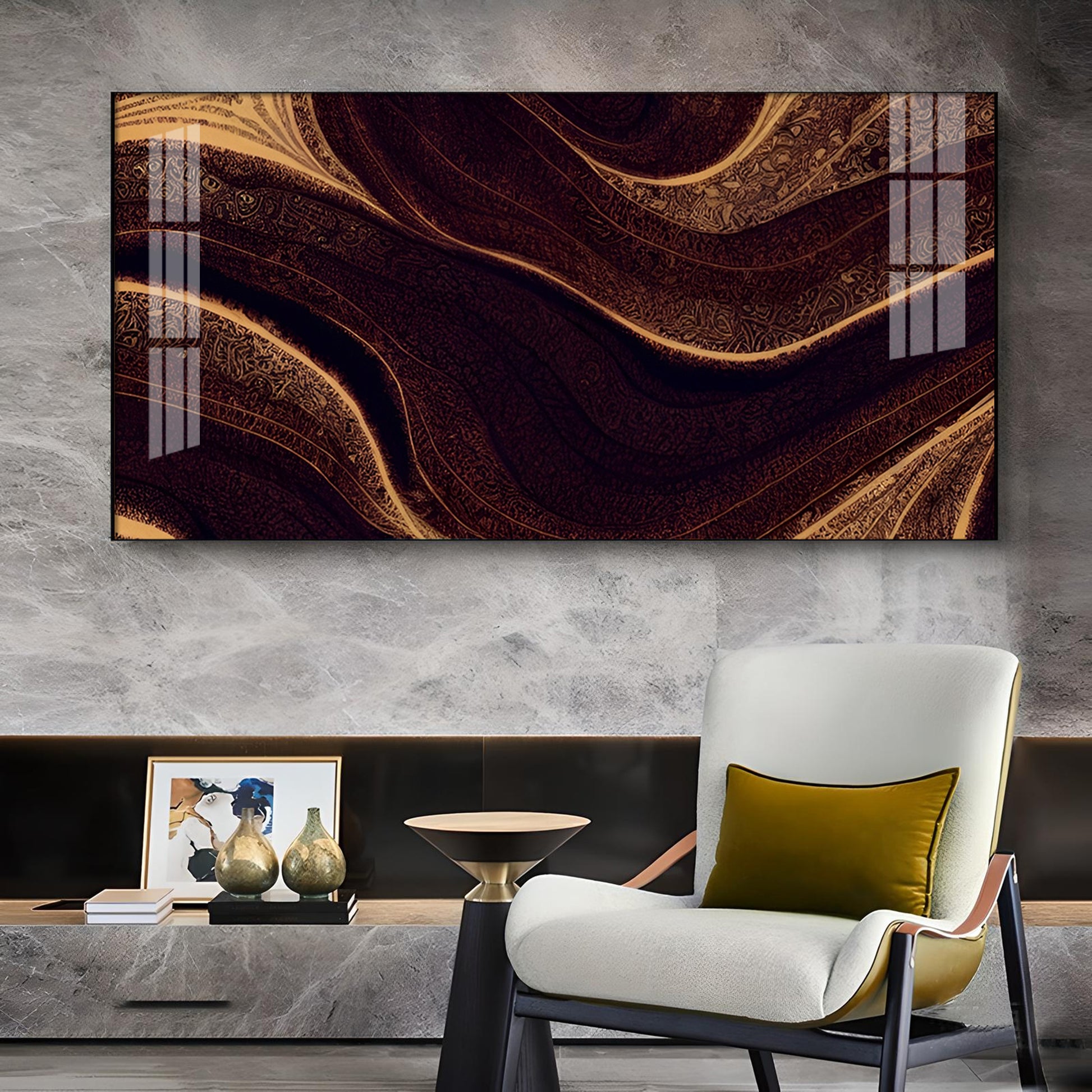 Golden Rhythm Wave Glass Finish Horizontal Wall Art