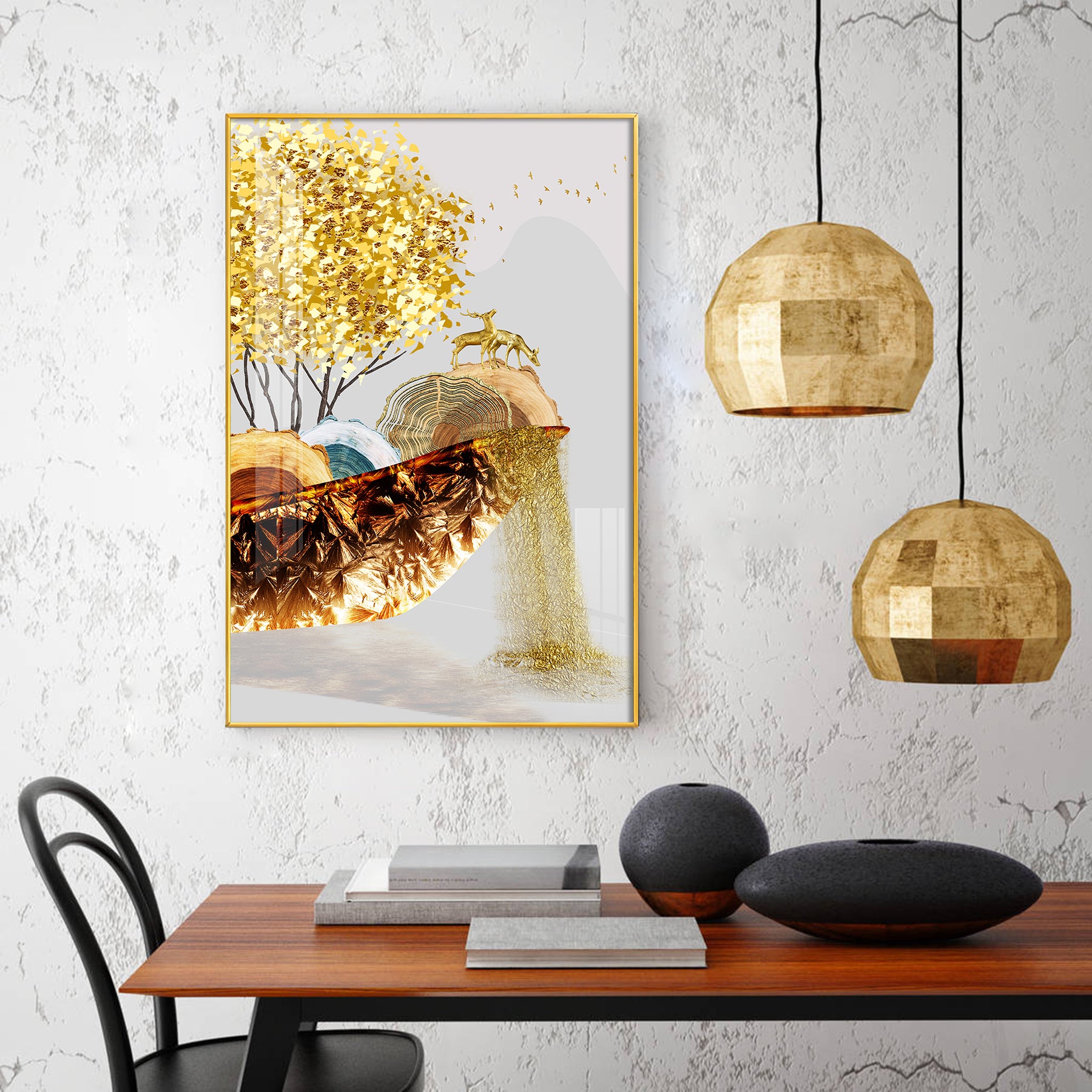 Our Framed glass finish wall art is easy to hang. The metal hooks are included in the box of your ordered wall art. You can simply mount it to the wall you want to place.