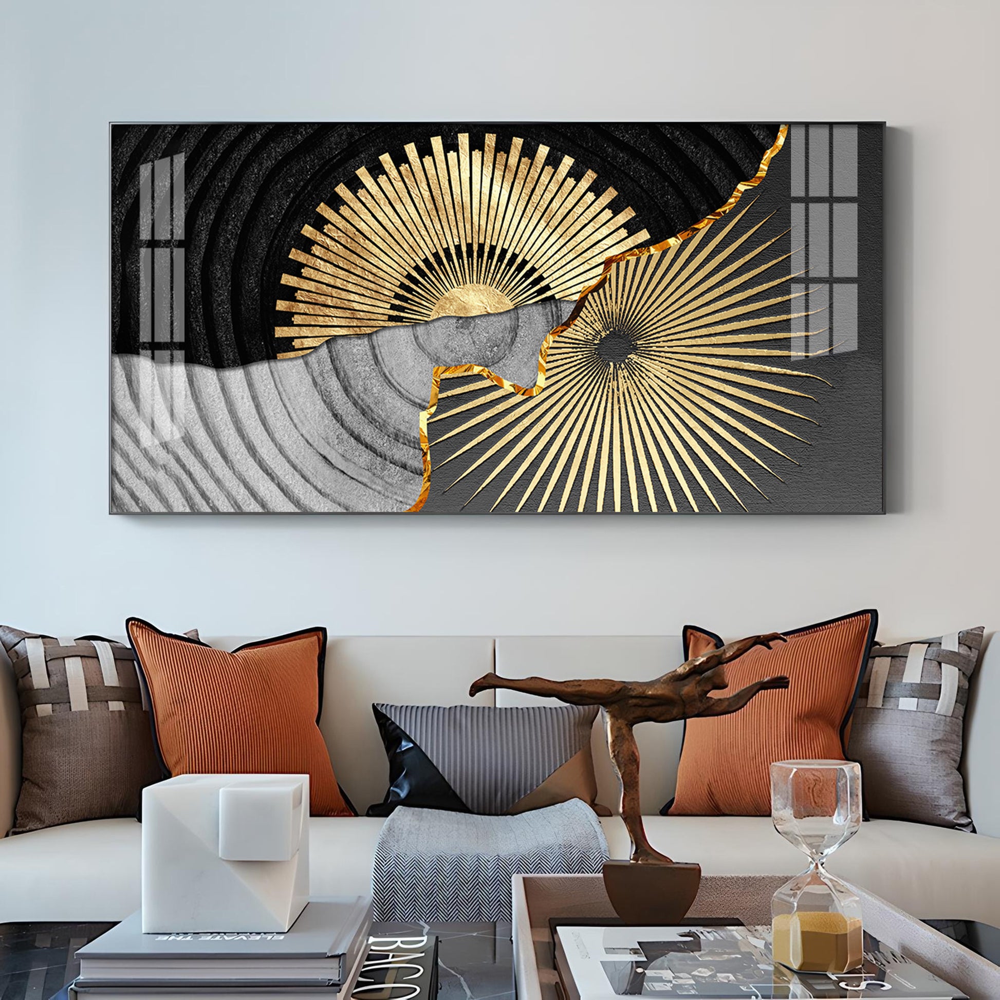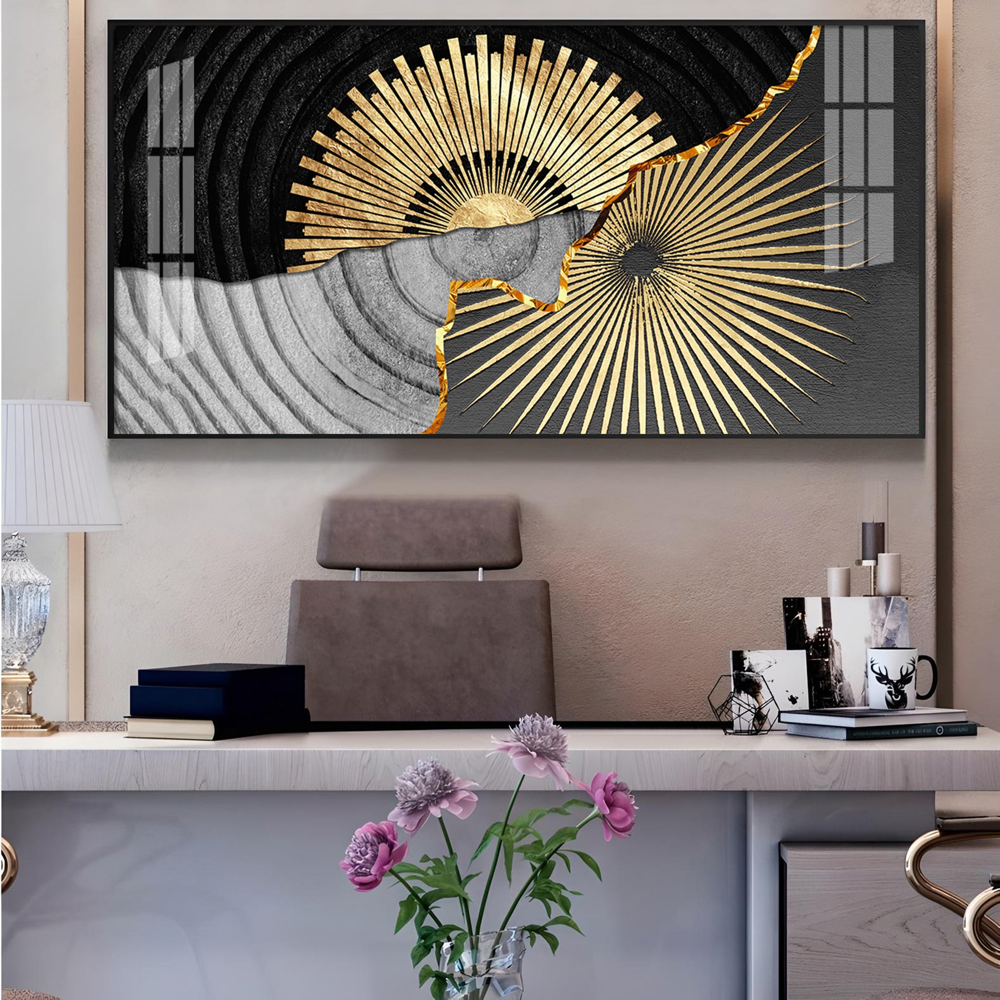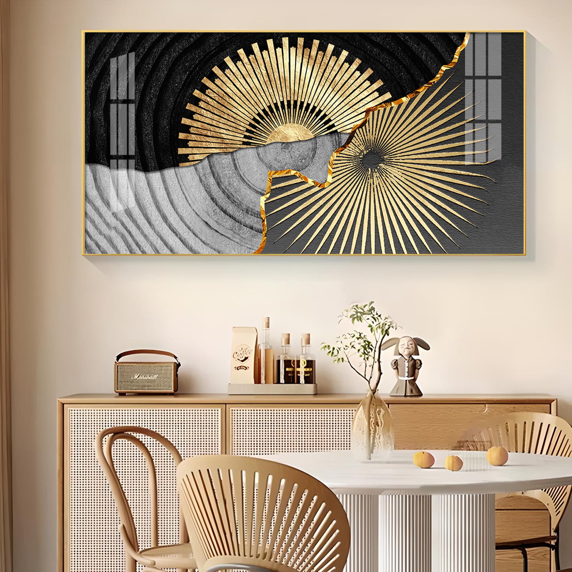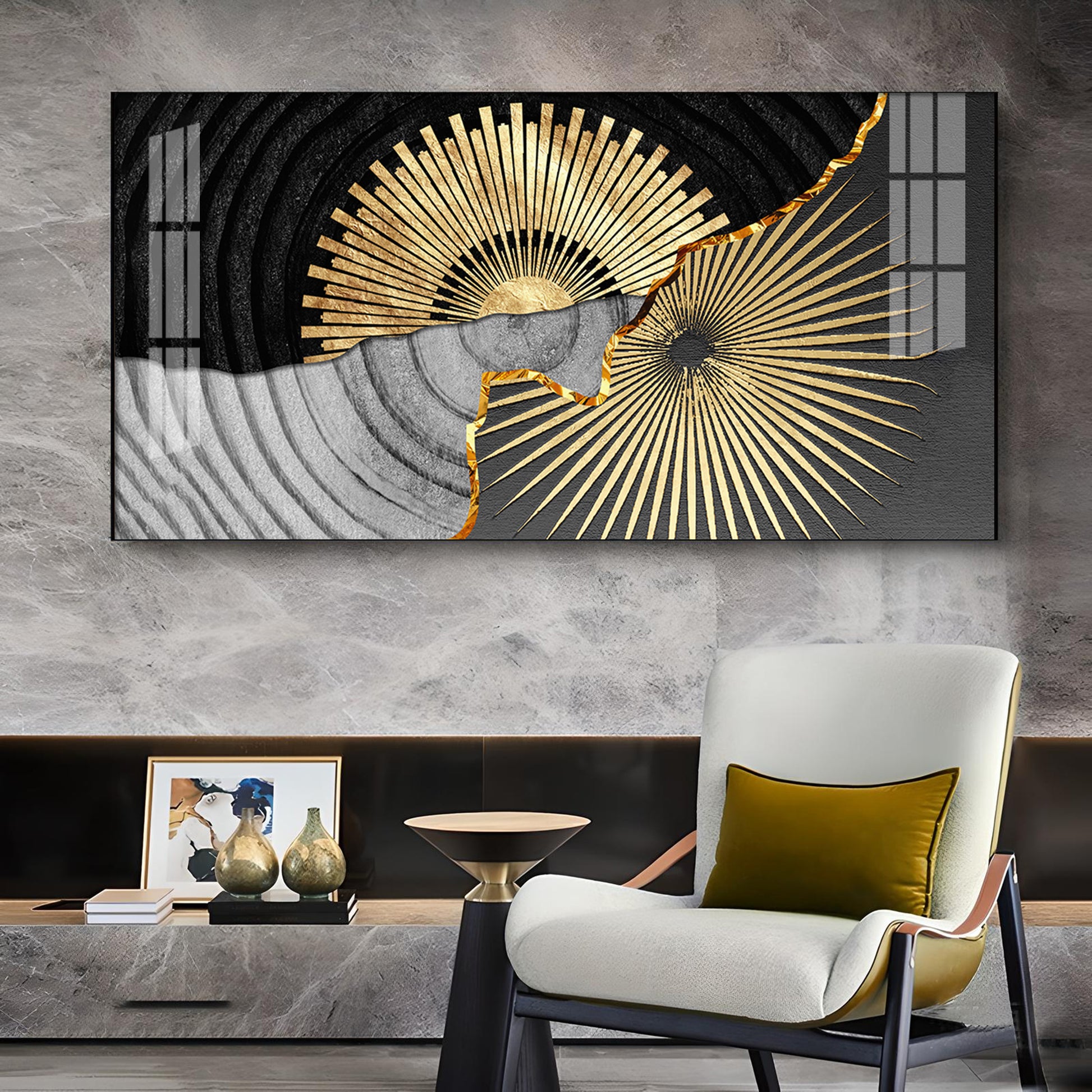 Golden Texture Fusion Glass Finish Horizontal Wall Art