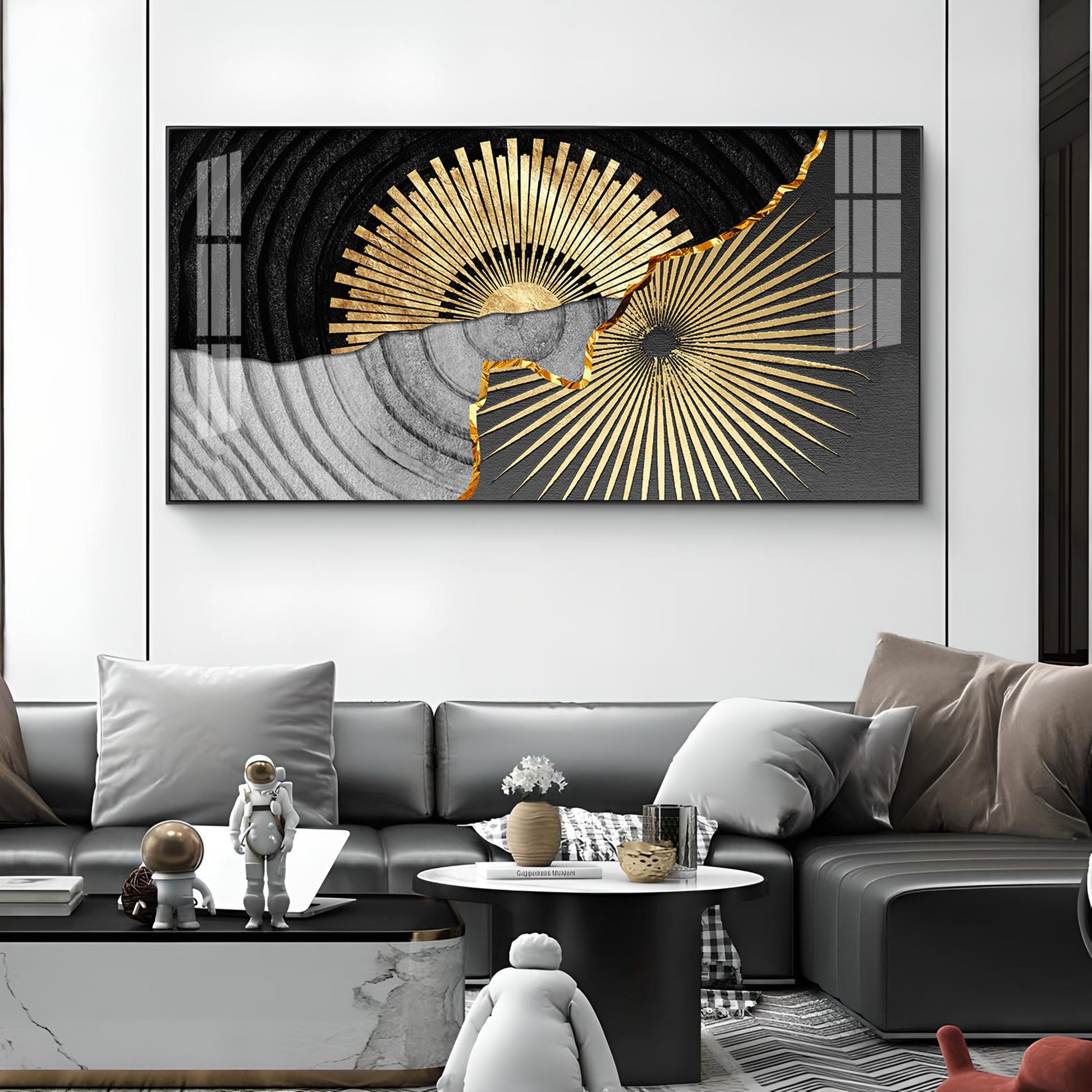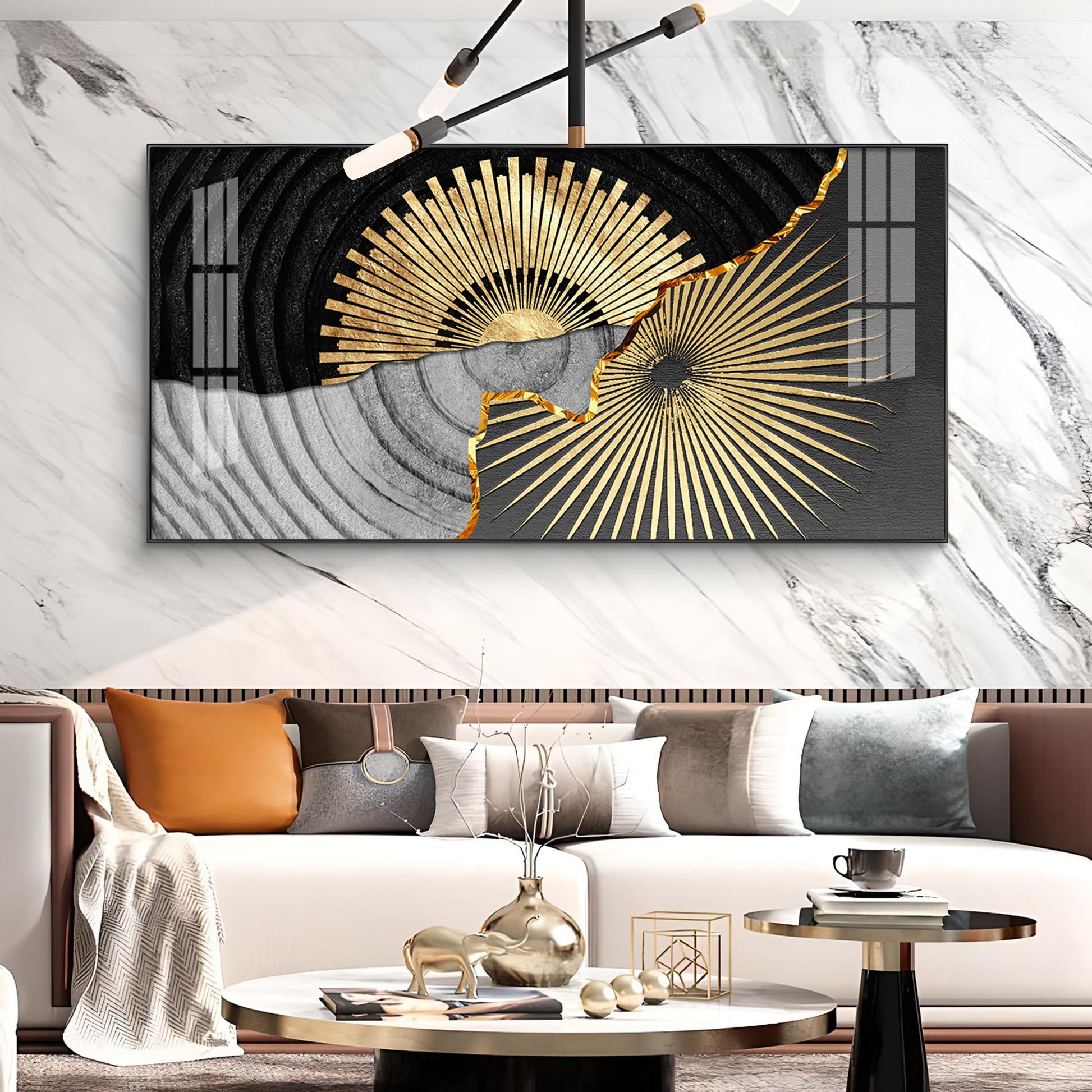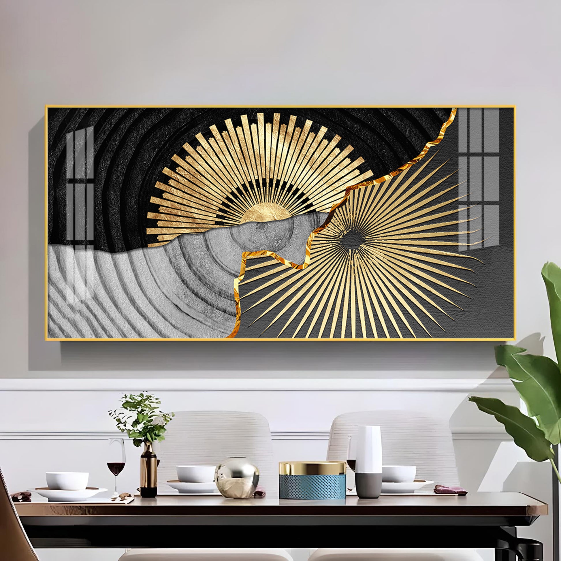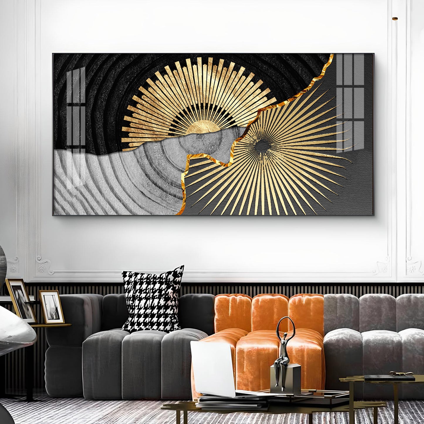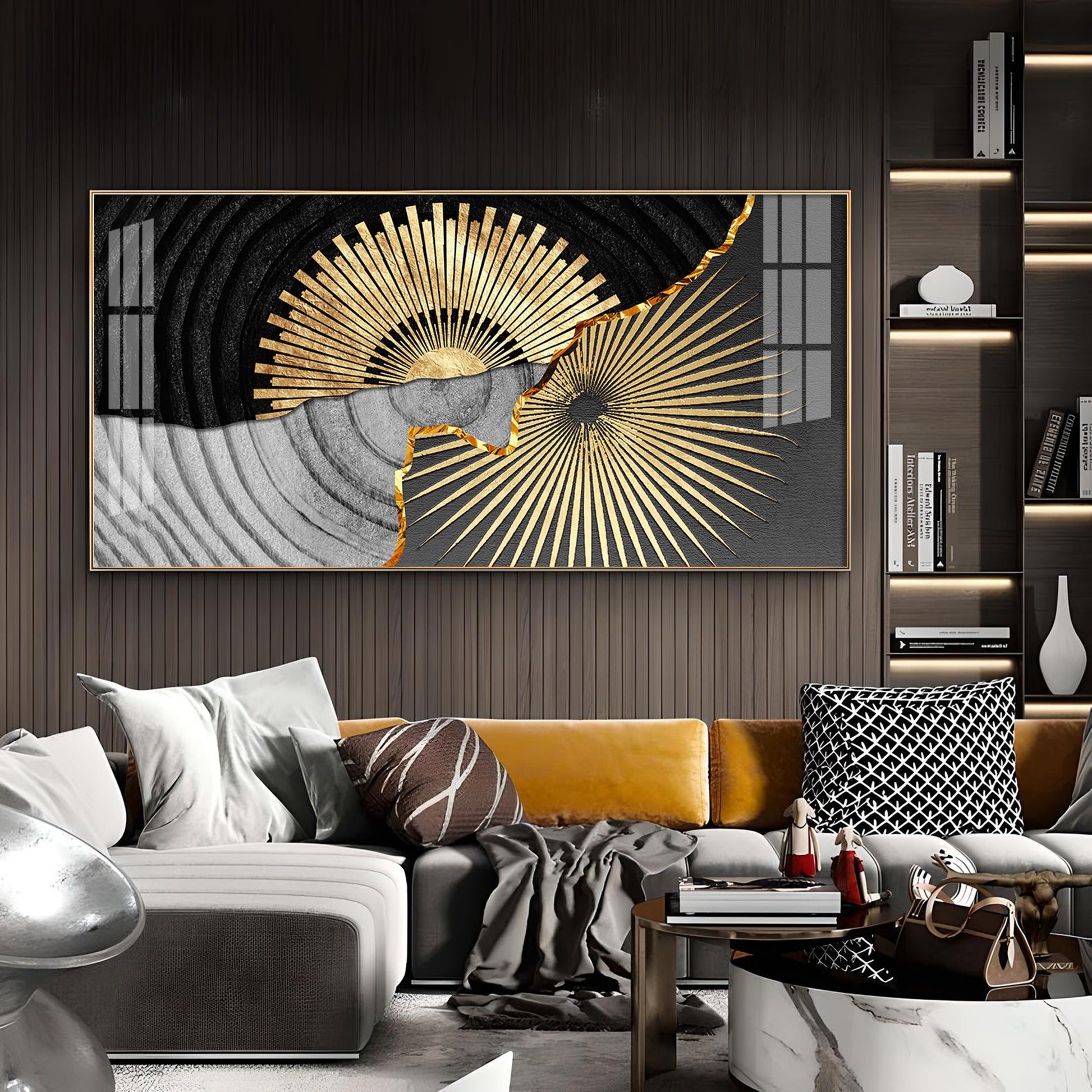 Golden Texture Fusion Glass Finish Horizontal Wall Art
