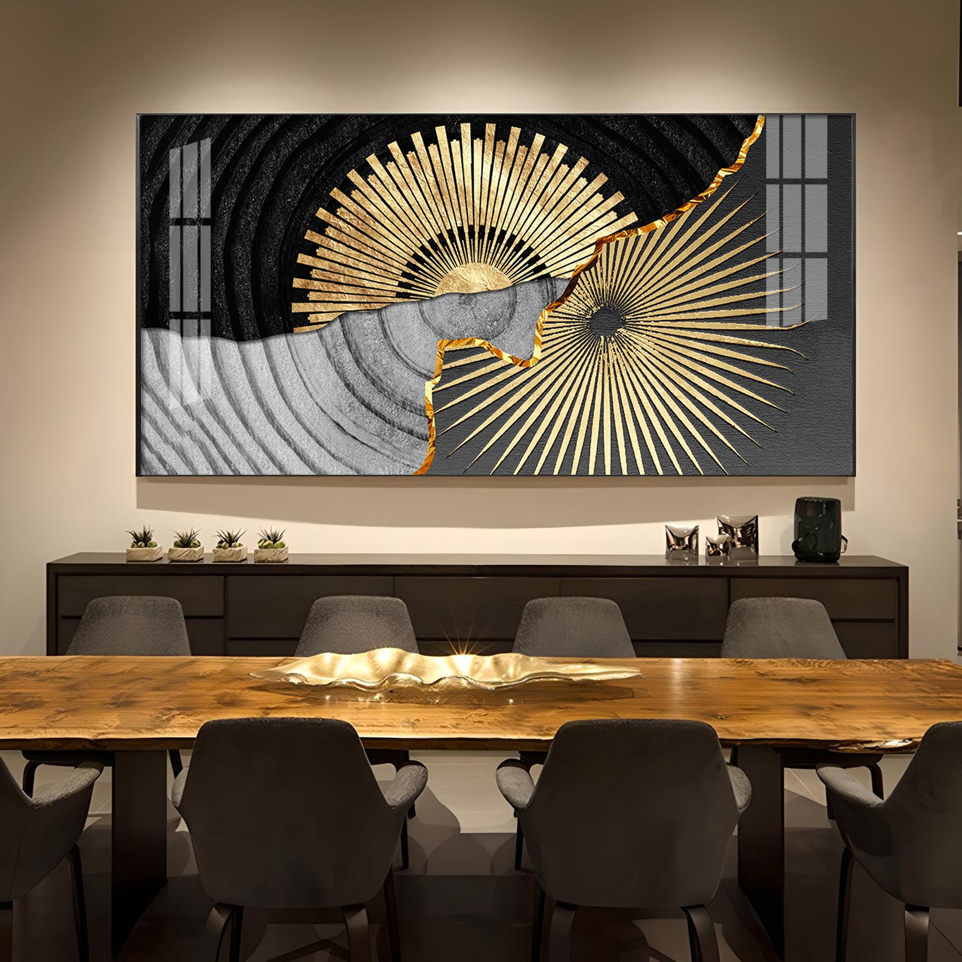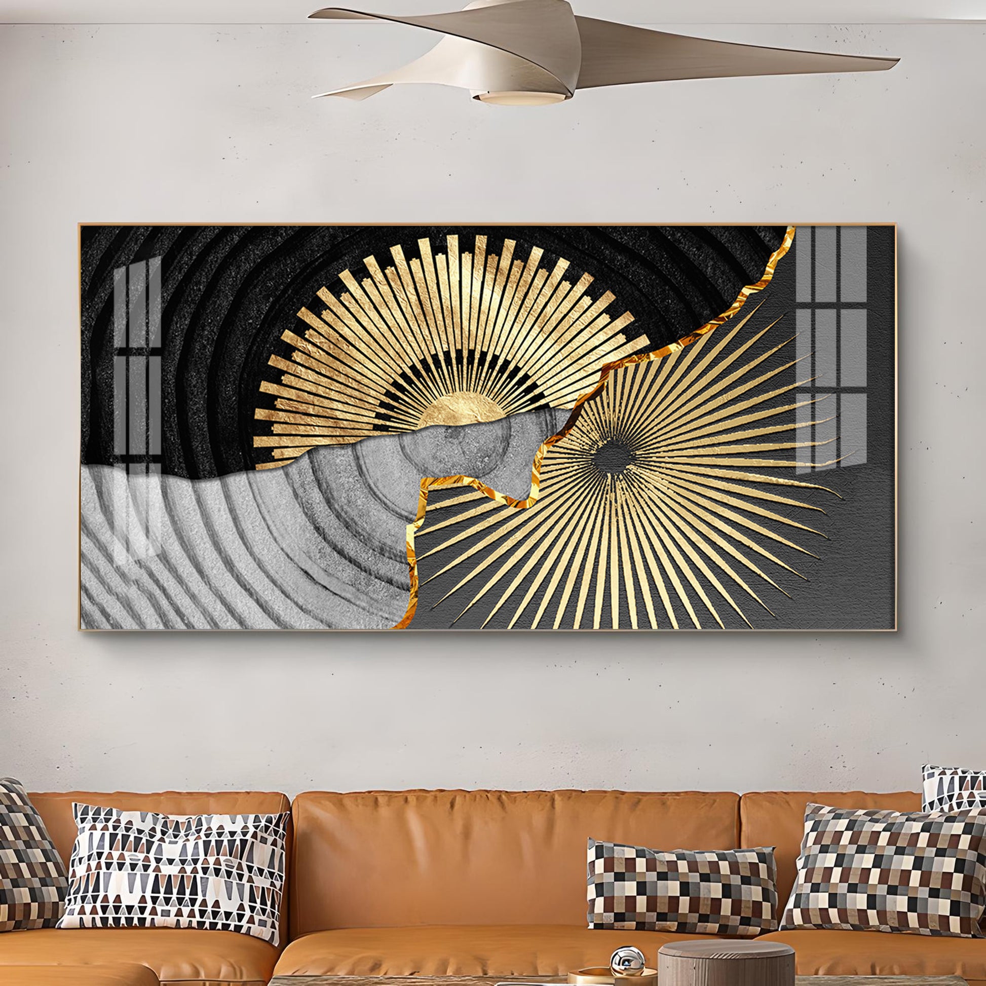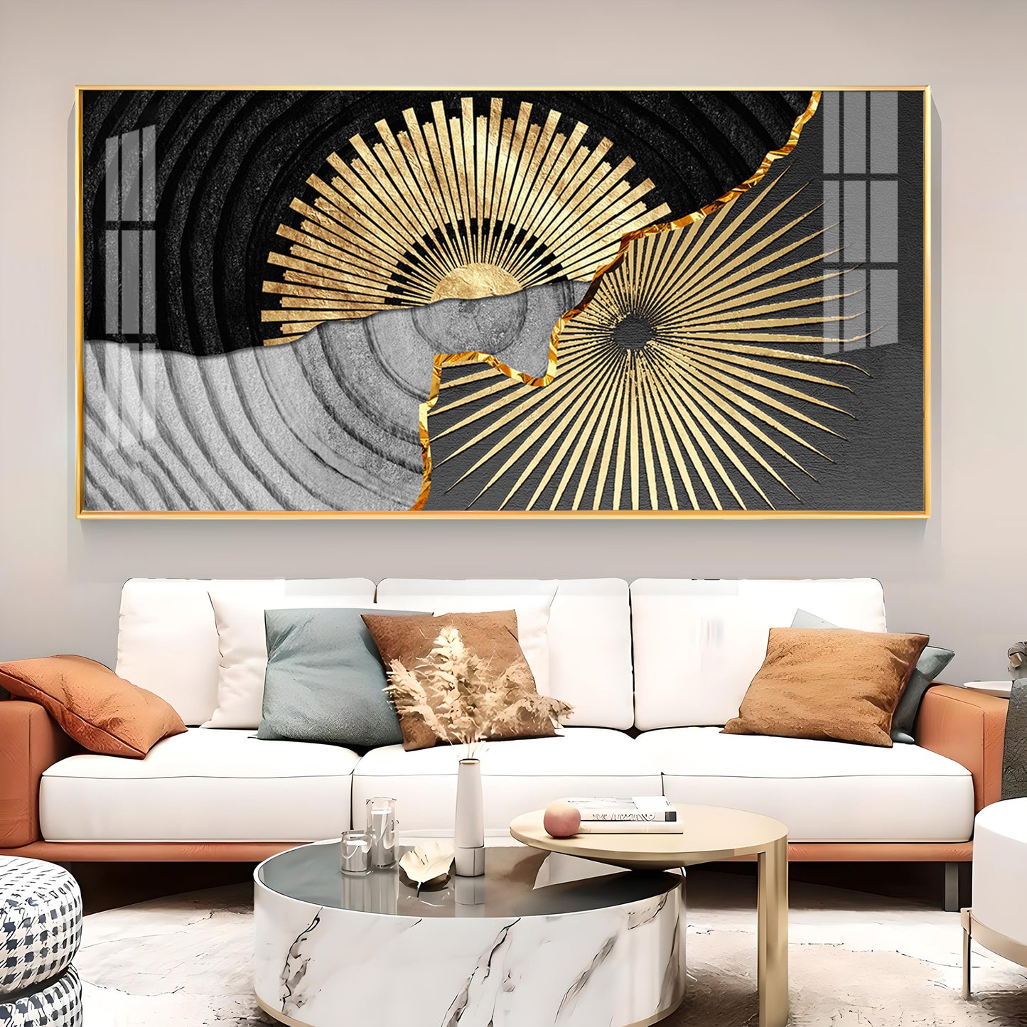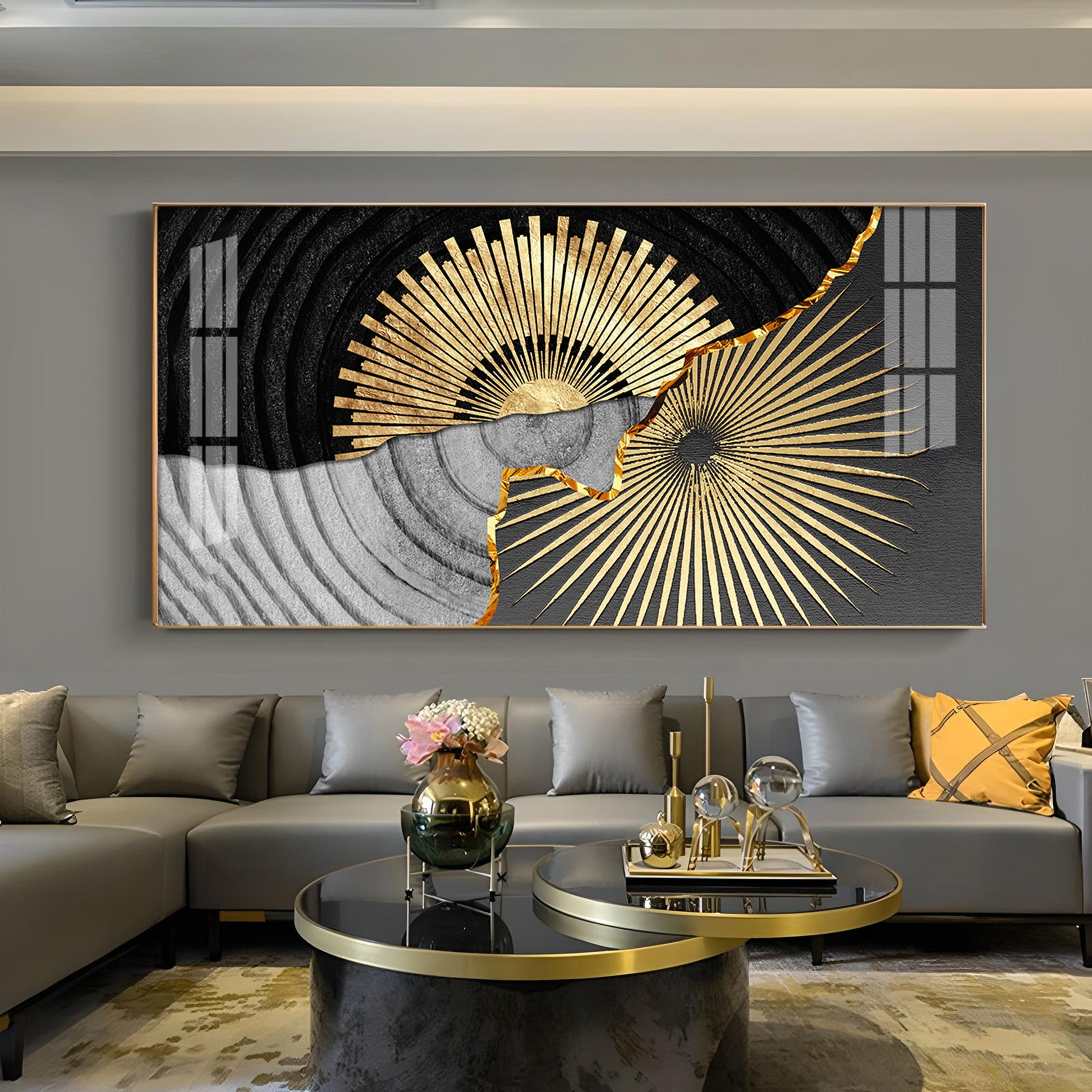 Golden Texture Fusion Glass Finish Horizontal Wall Art