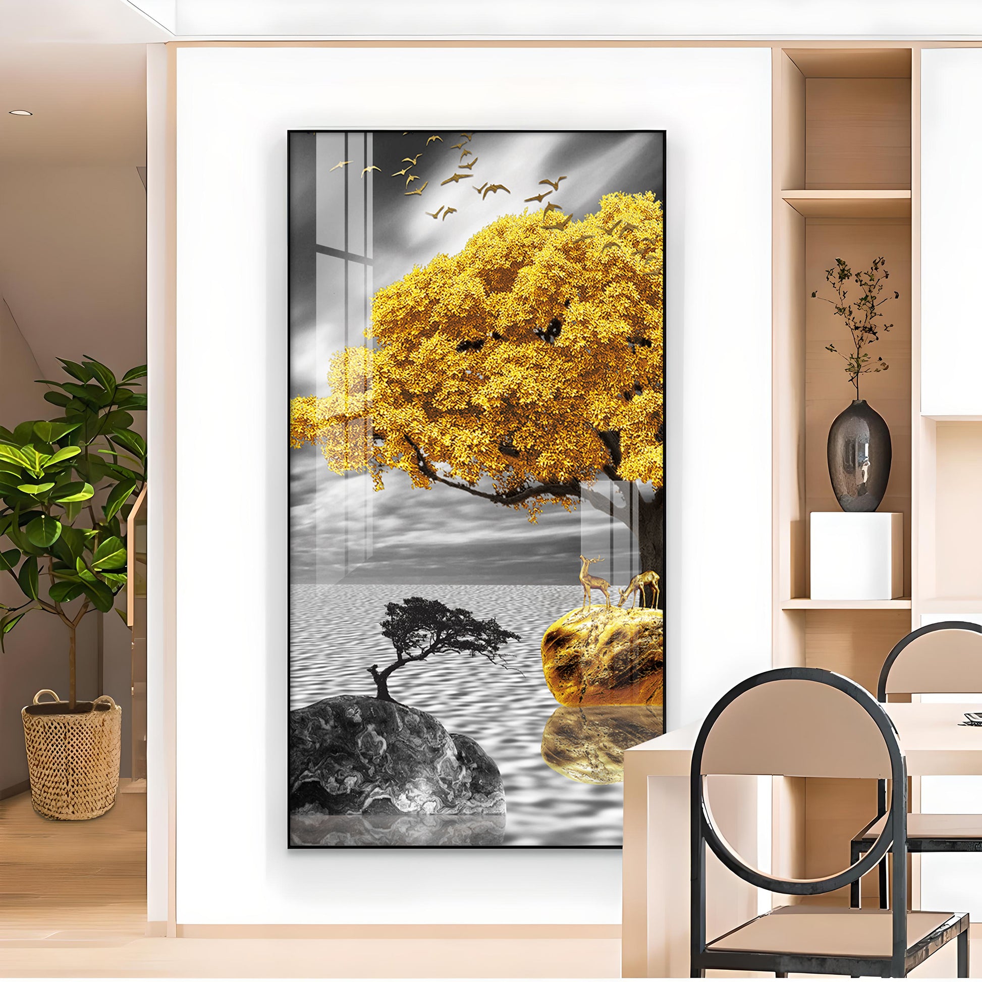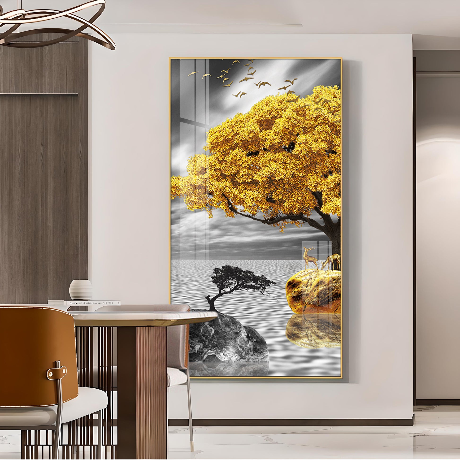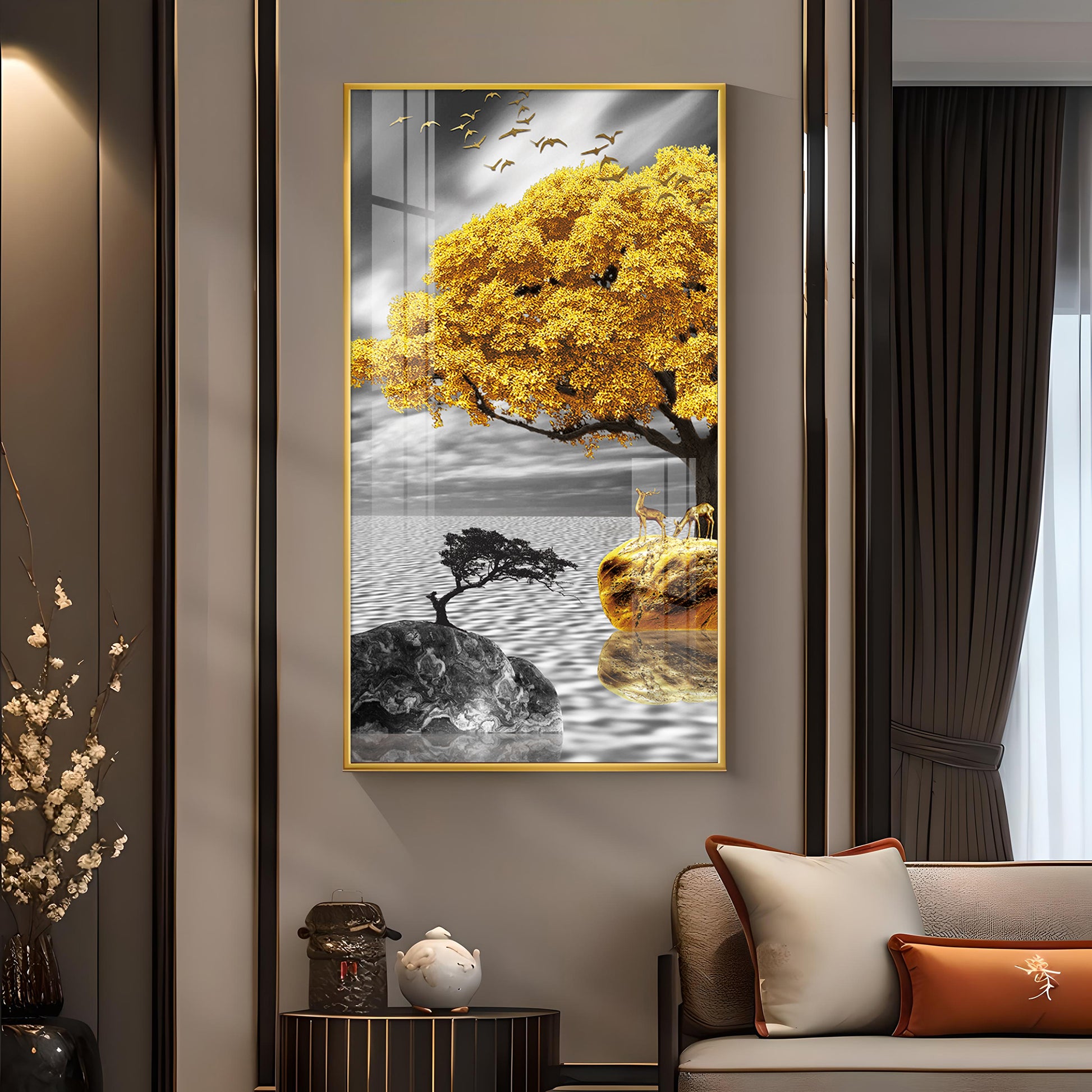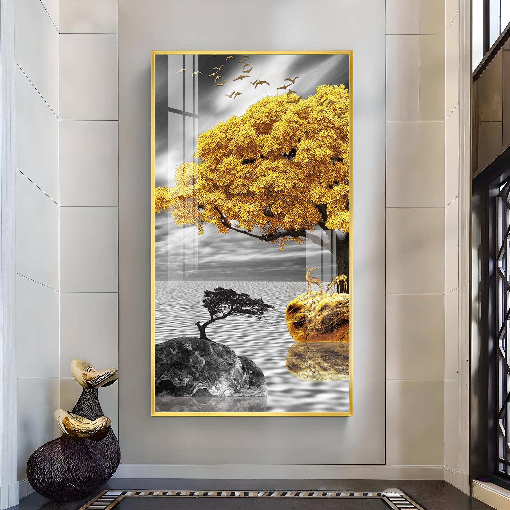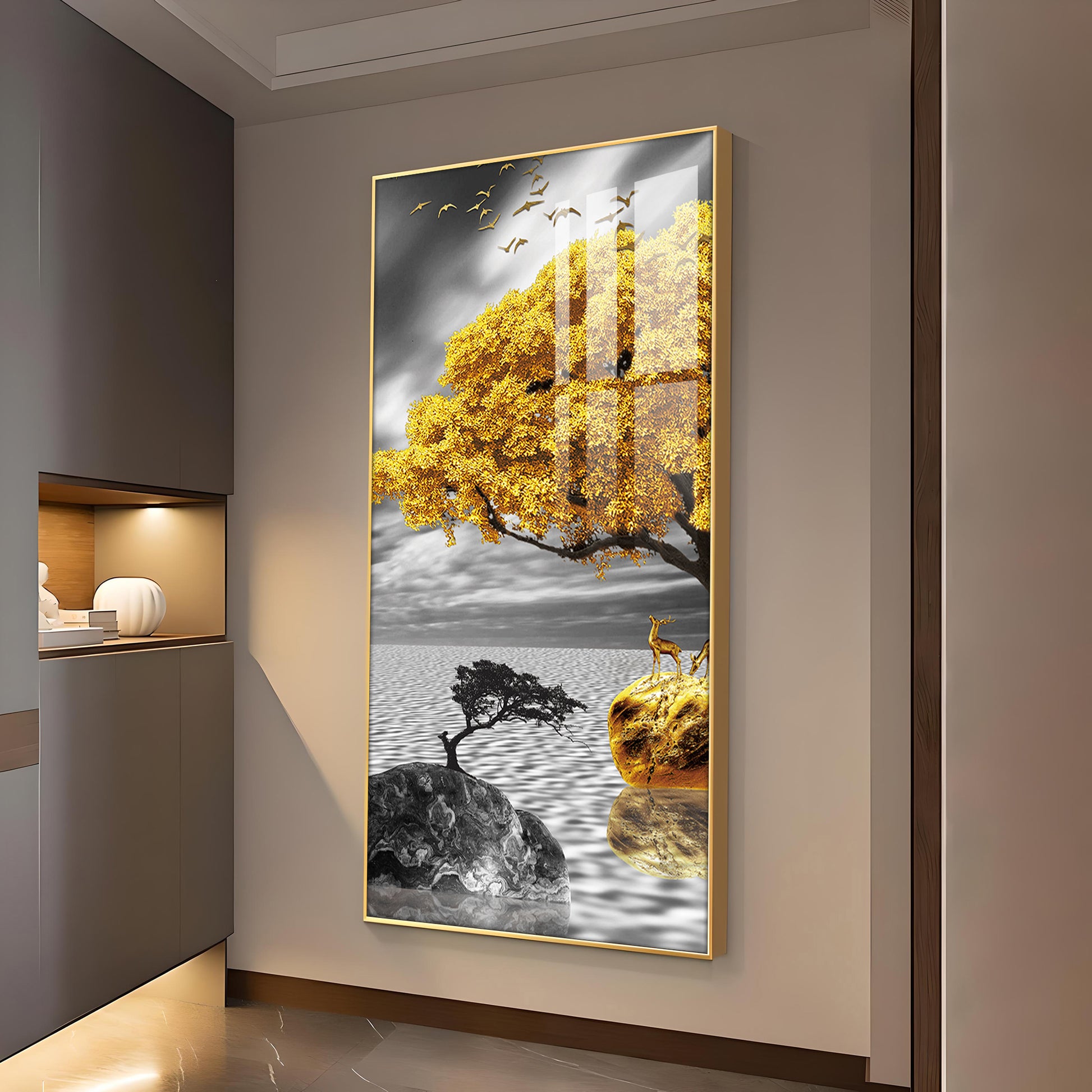 Golden Tree Oasis Glass Finish Vertical Wall Art