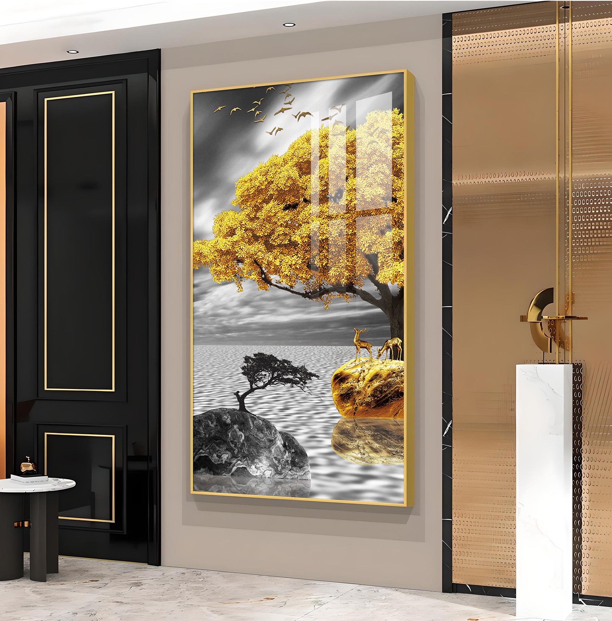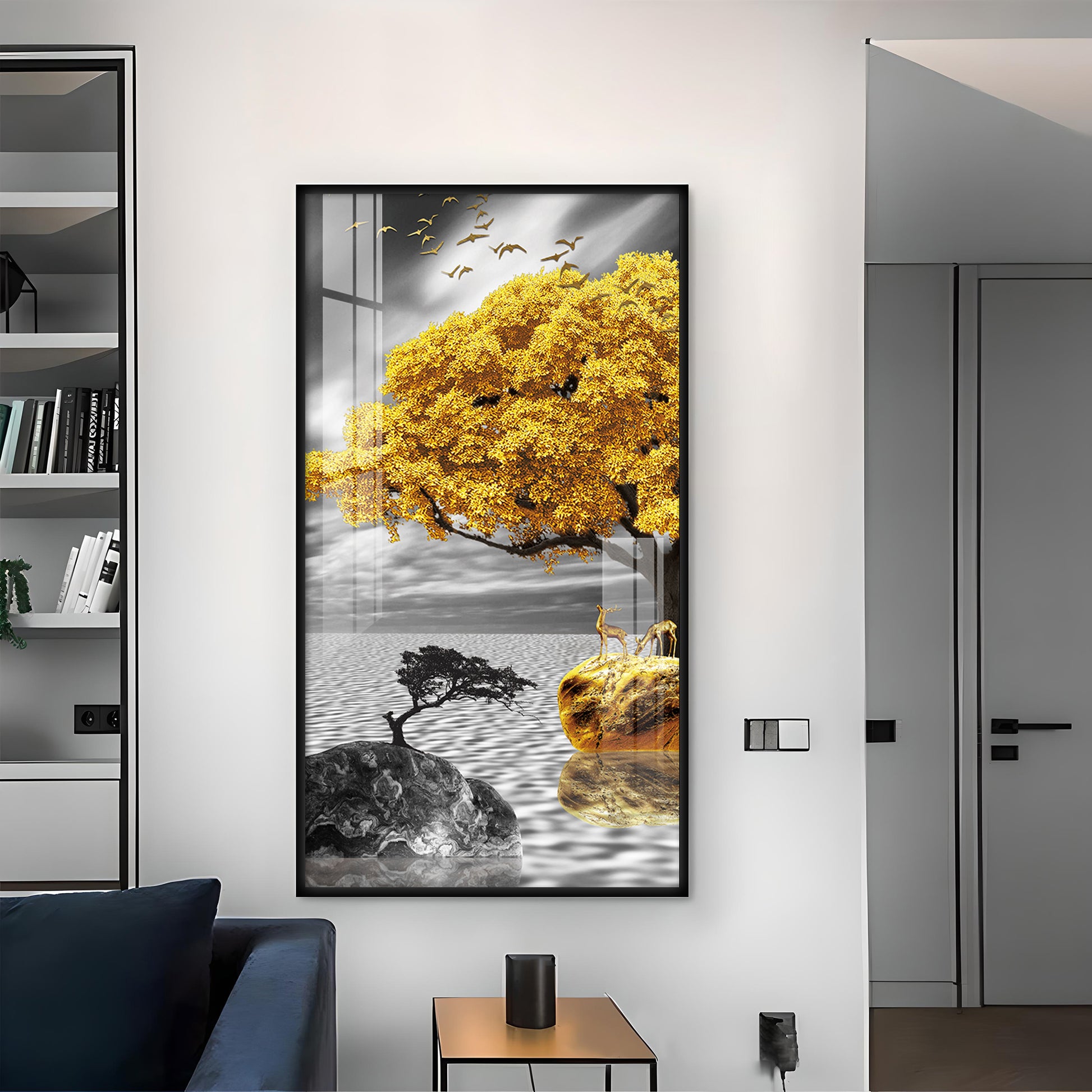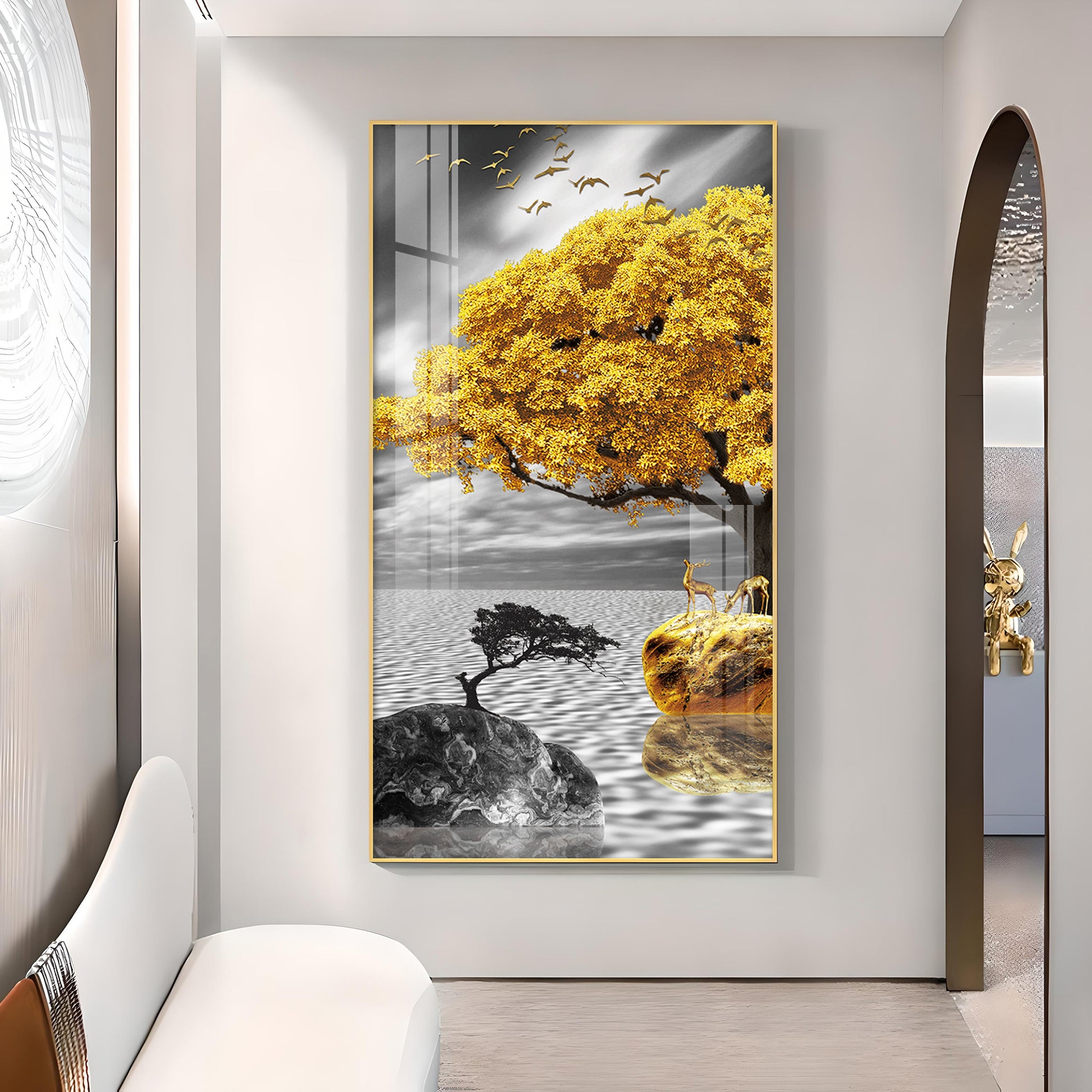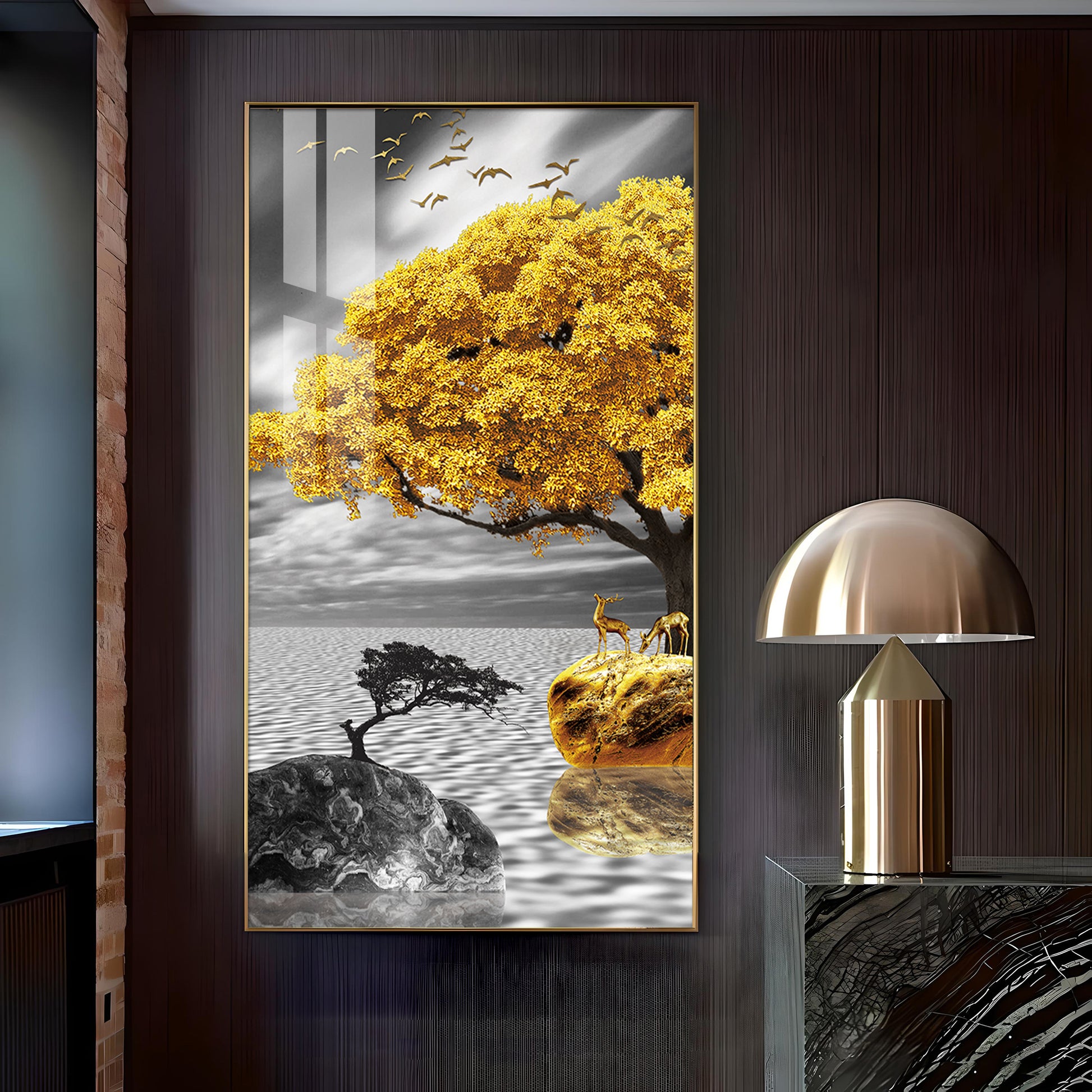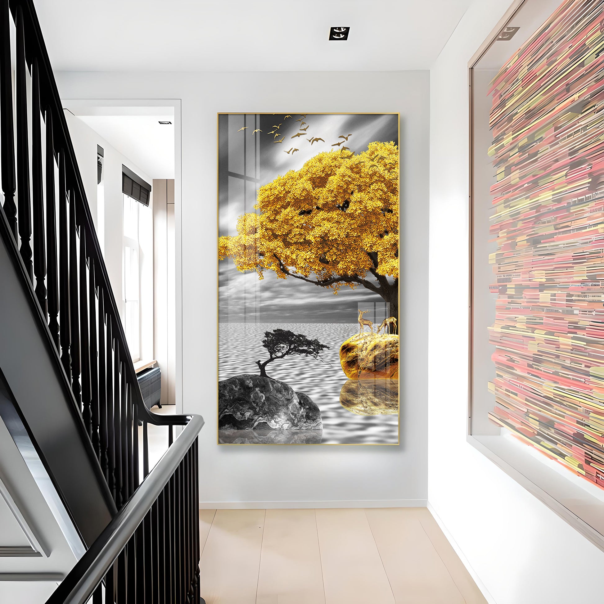 Golden Tree Oasis Glass Finish Vertical Wall Art