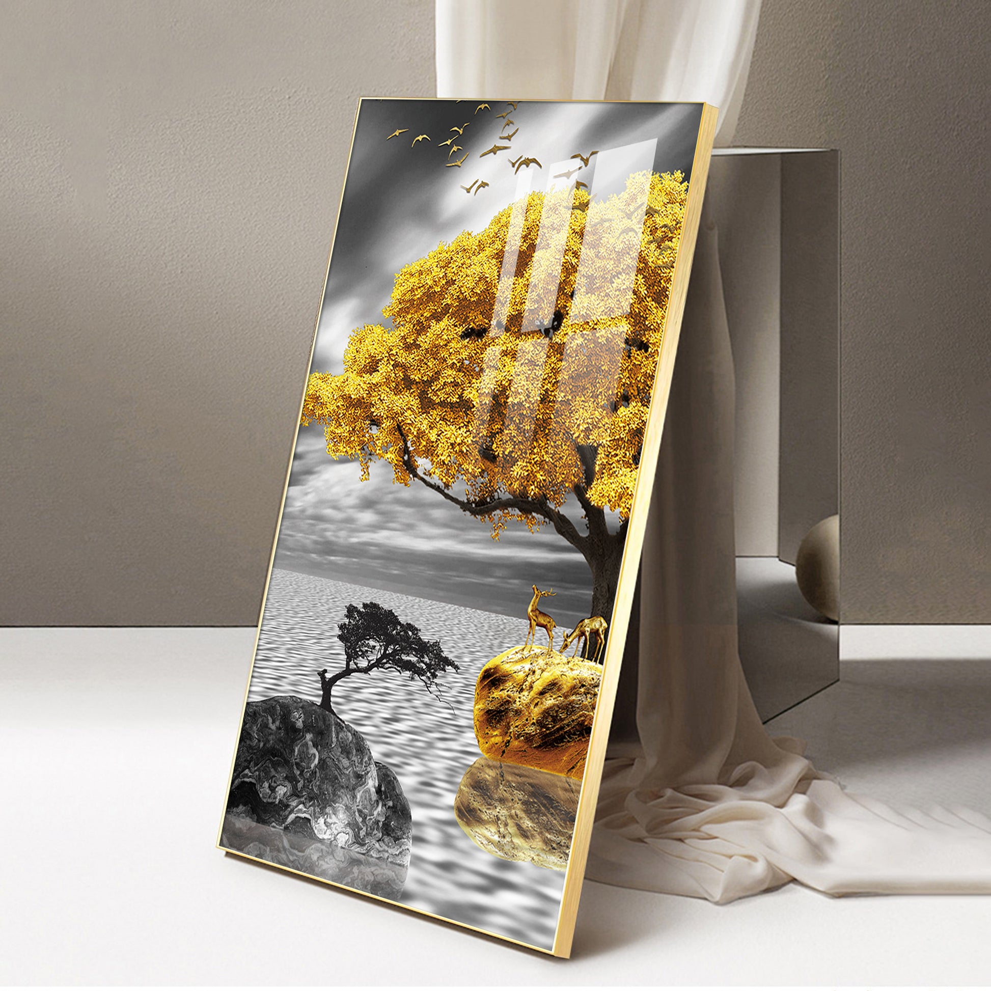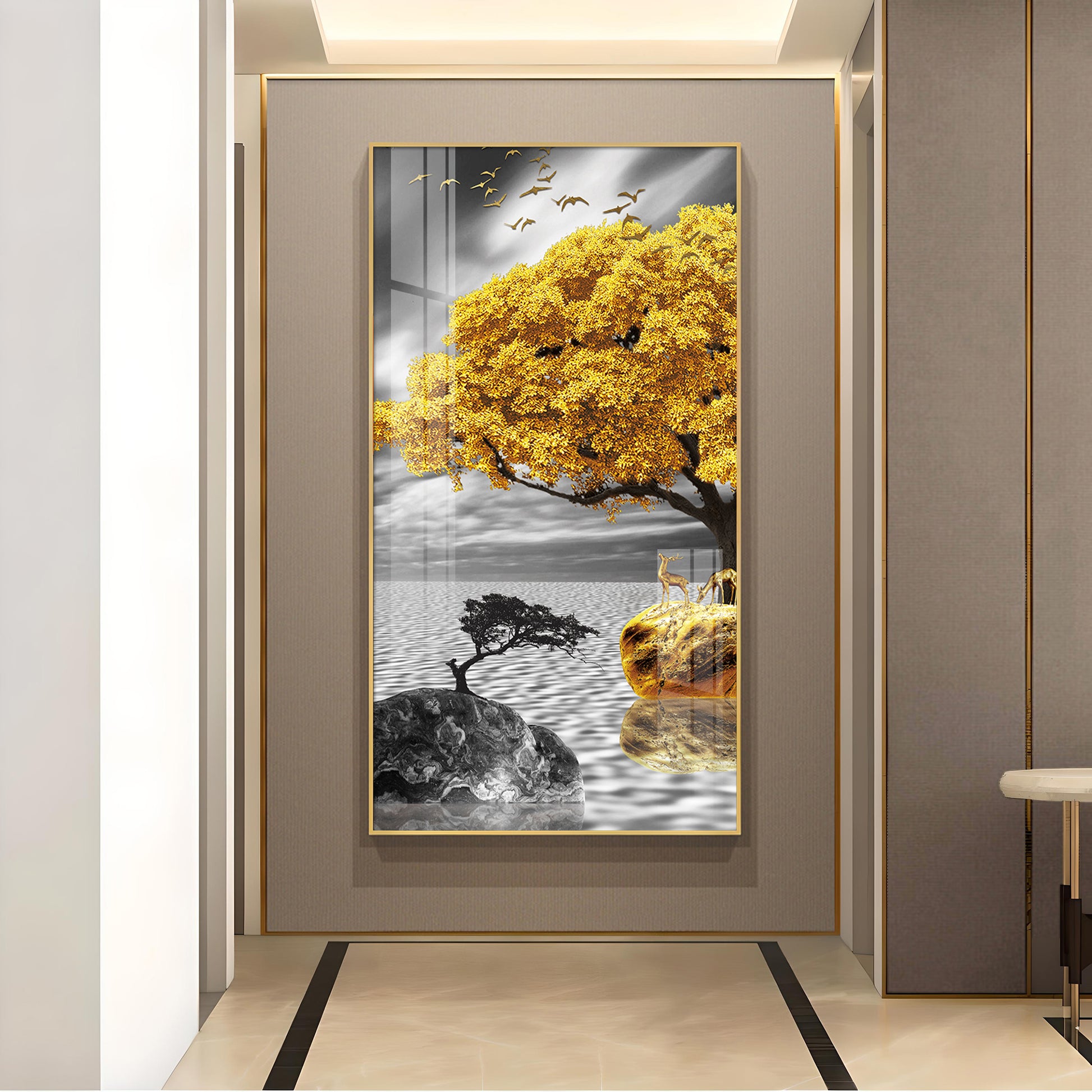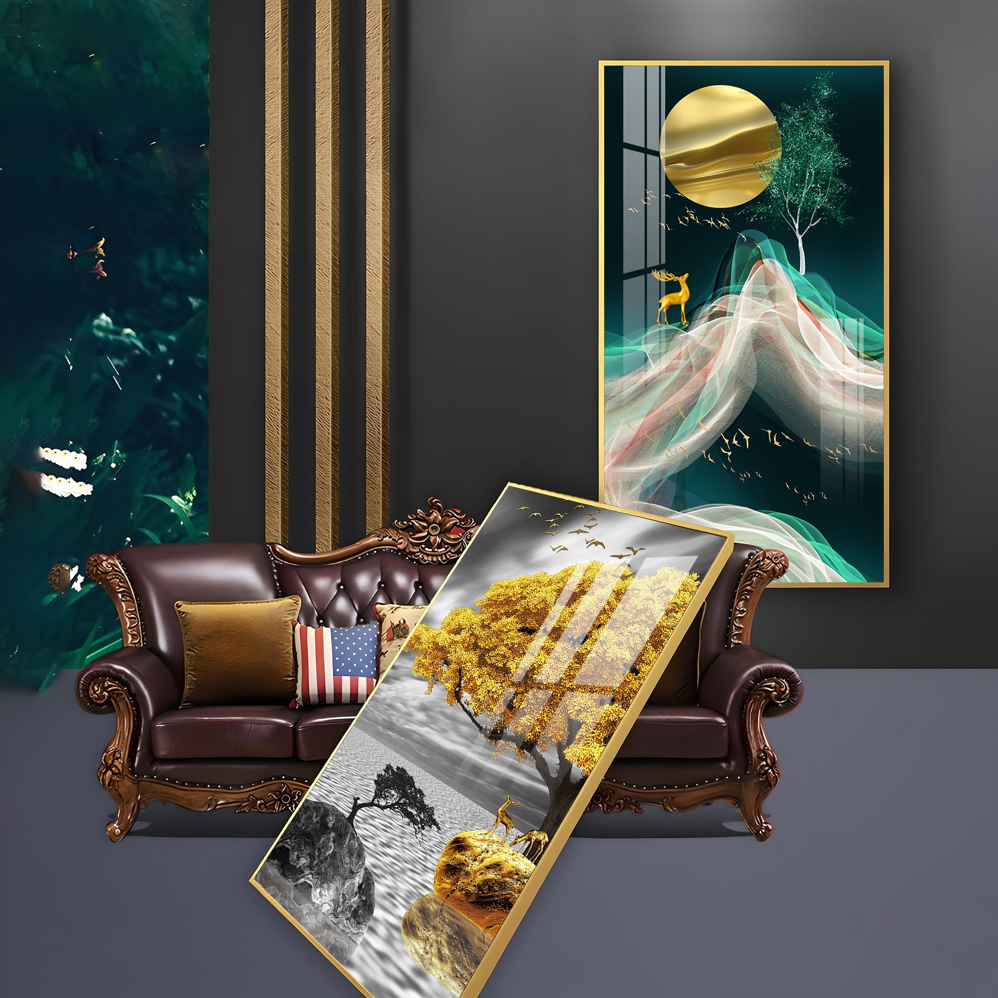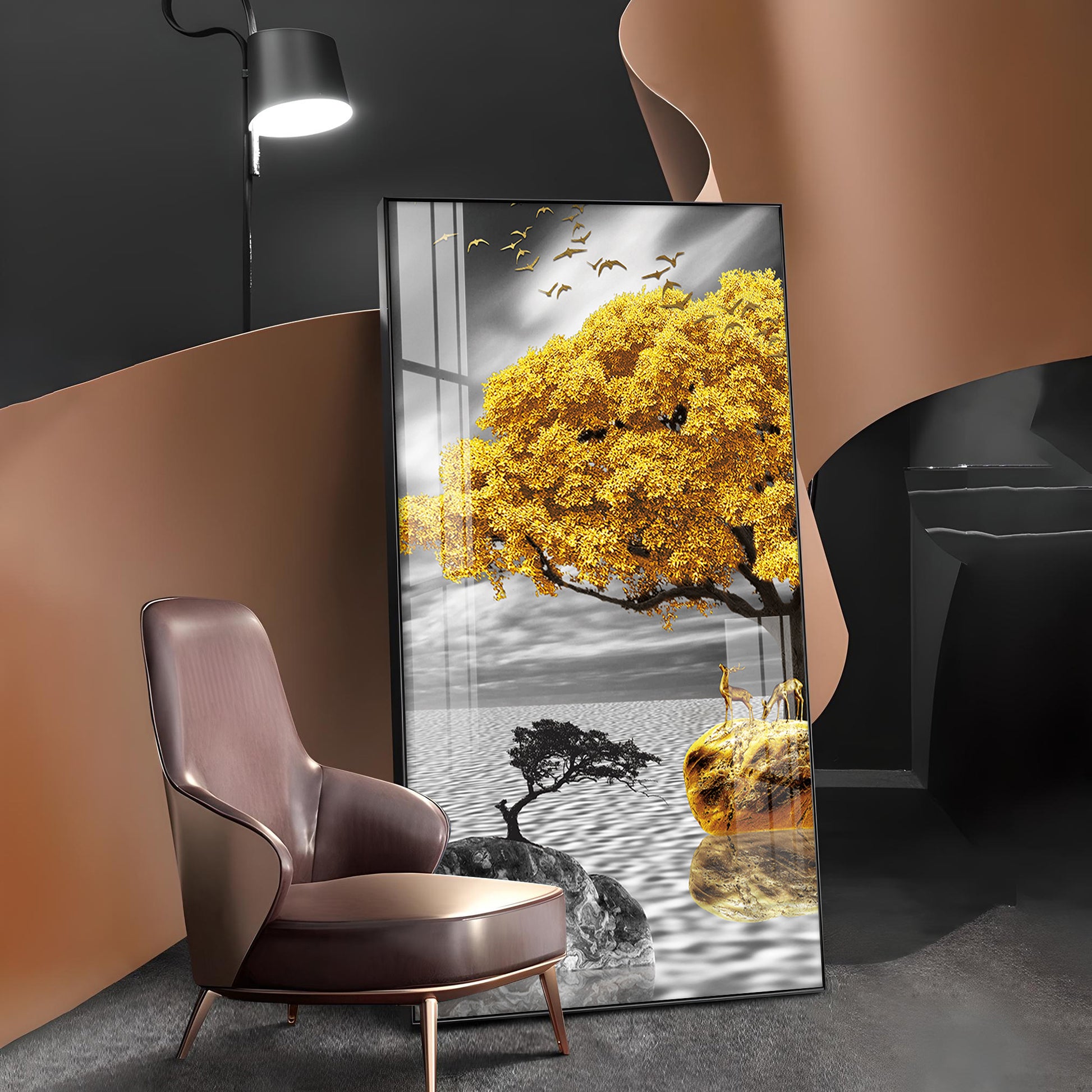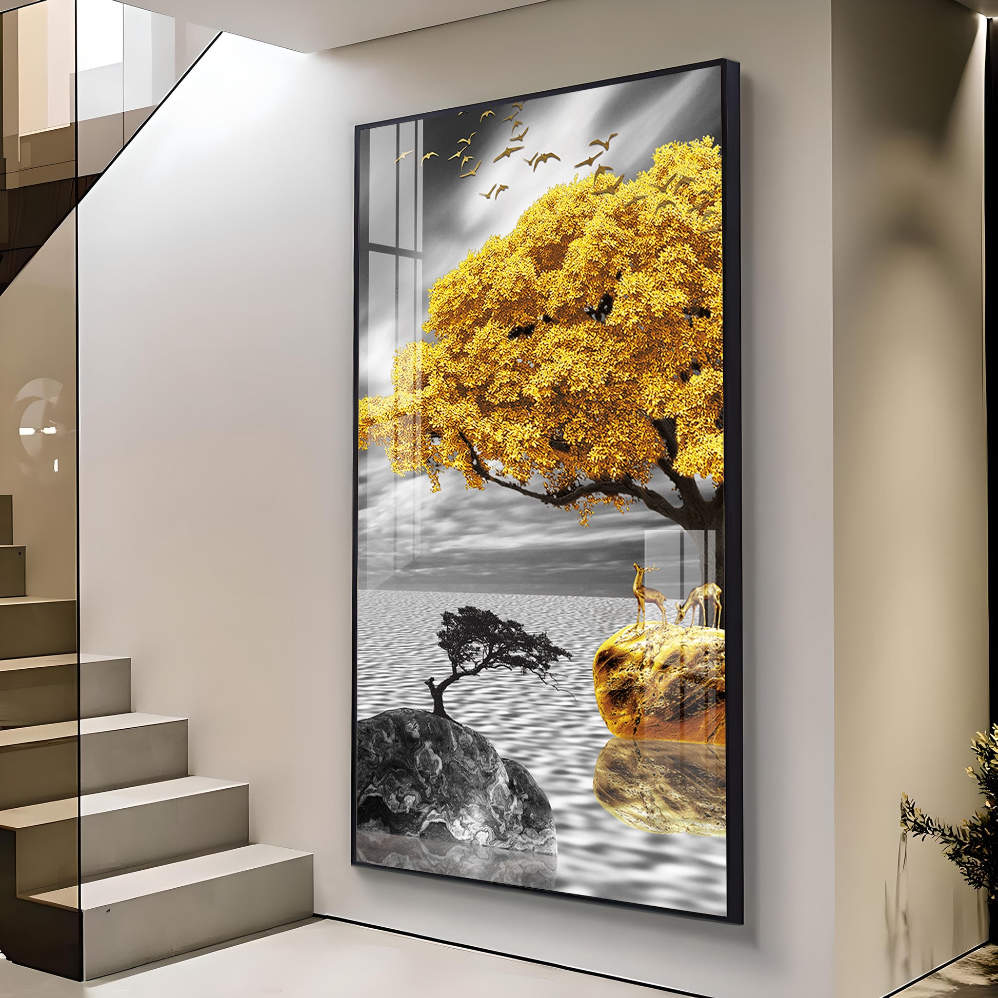 Golden Tree Oasis Glass Finish Vertical Wall Art