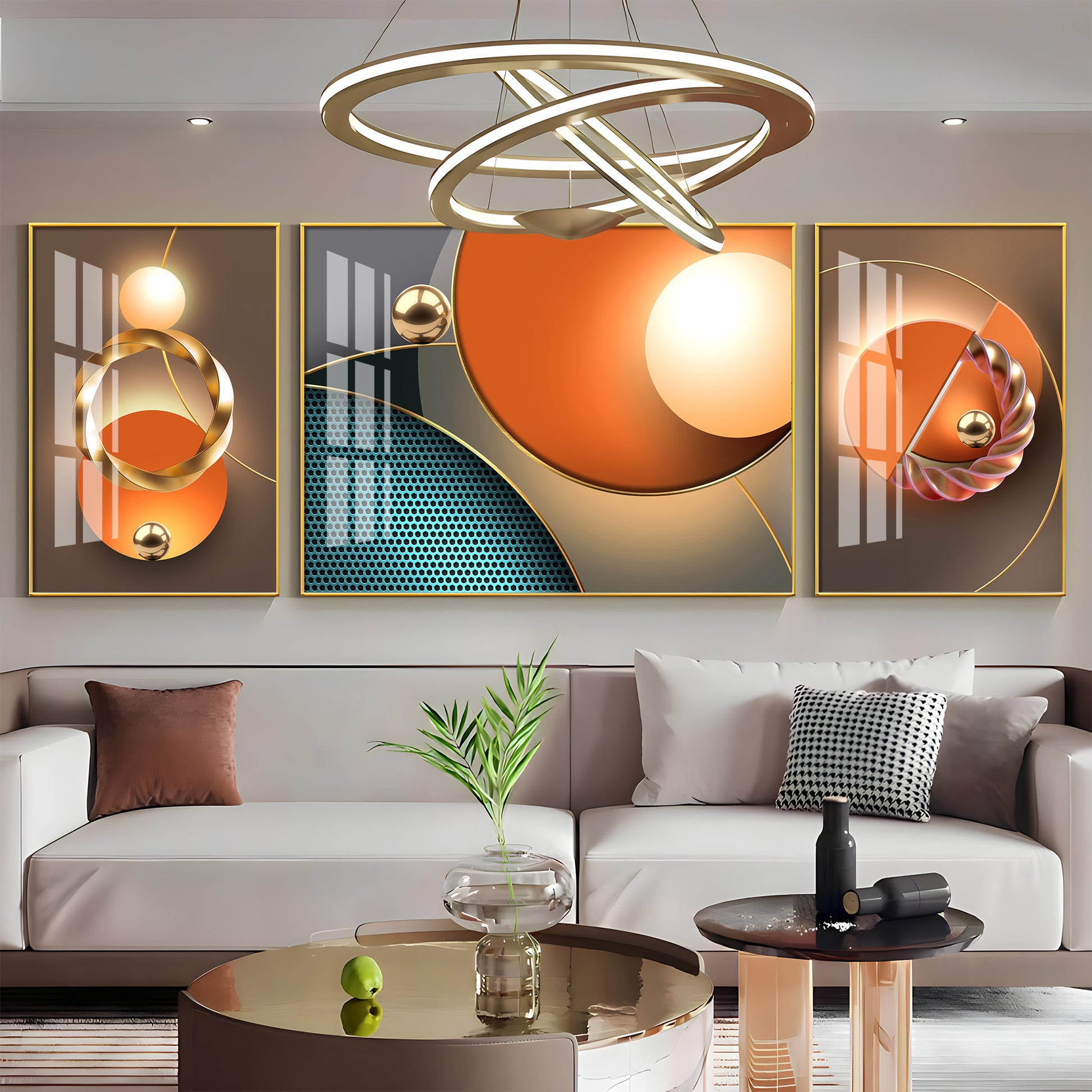 Goldern Circle Abstract Glass Finish Wall Art (Set Of 3)