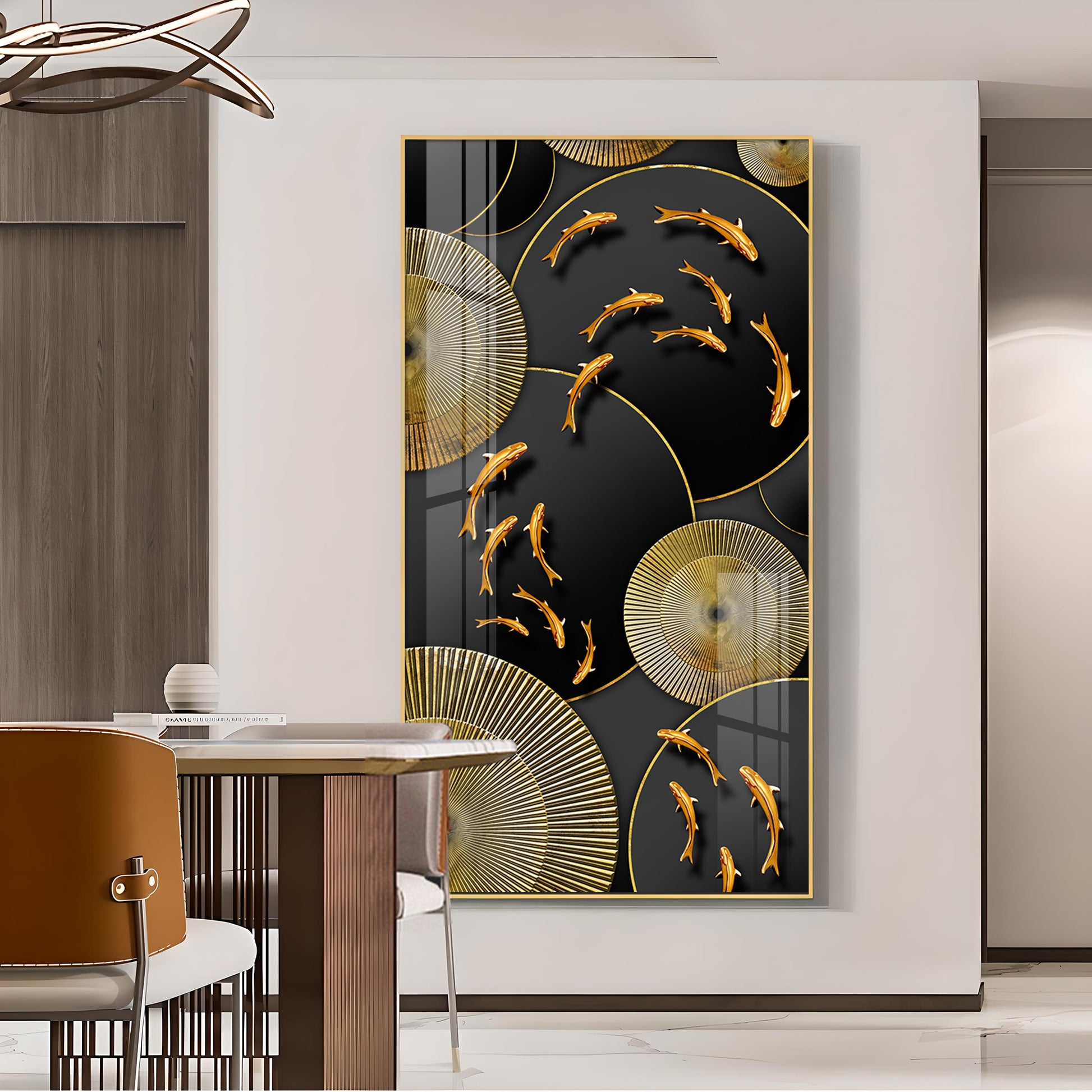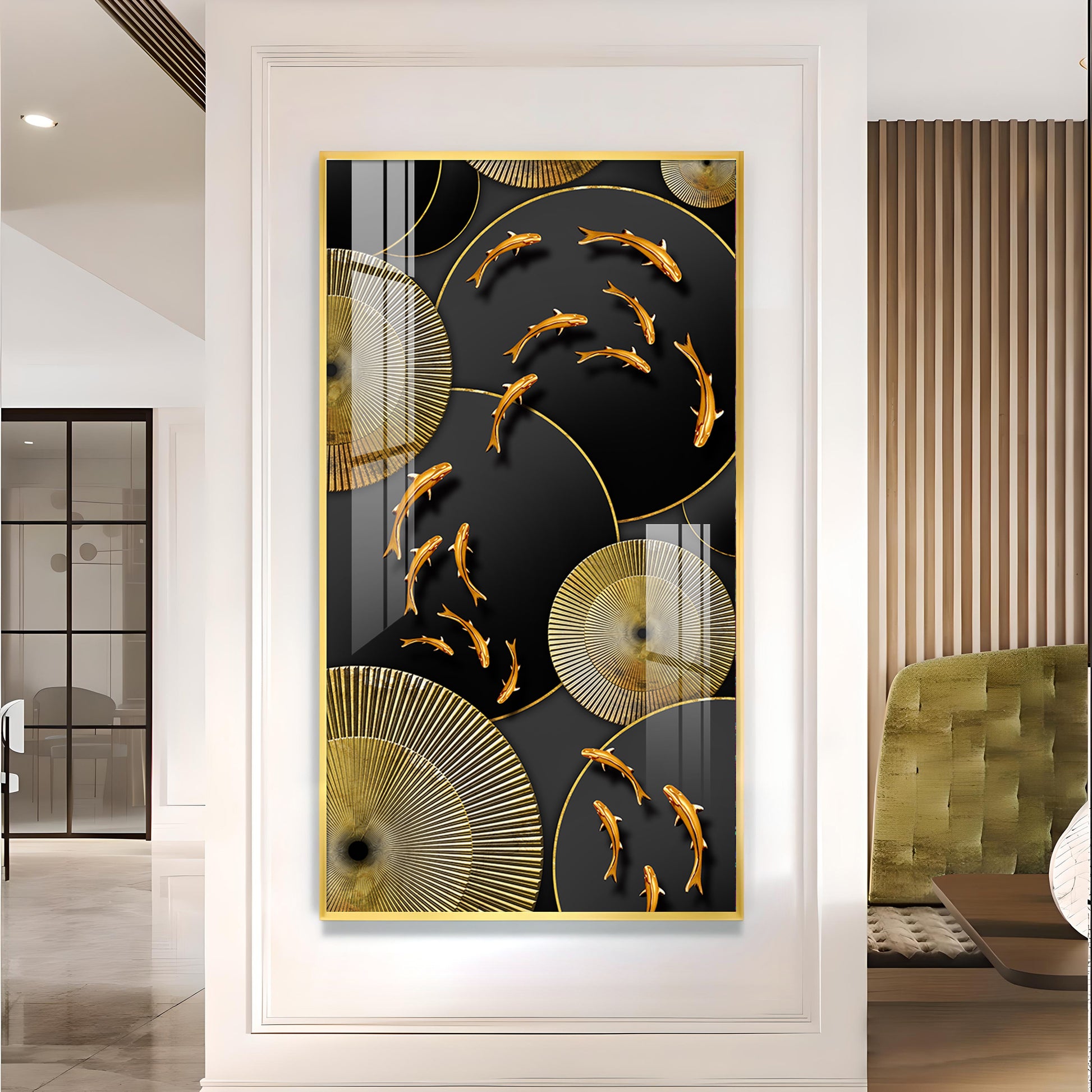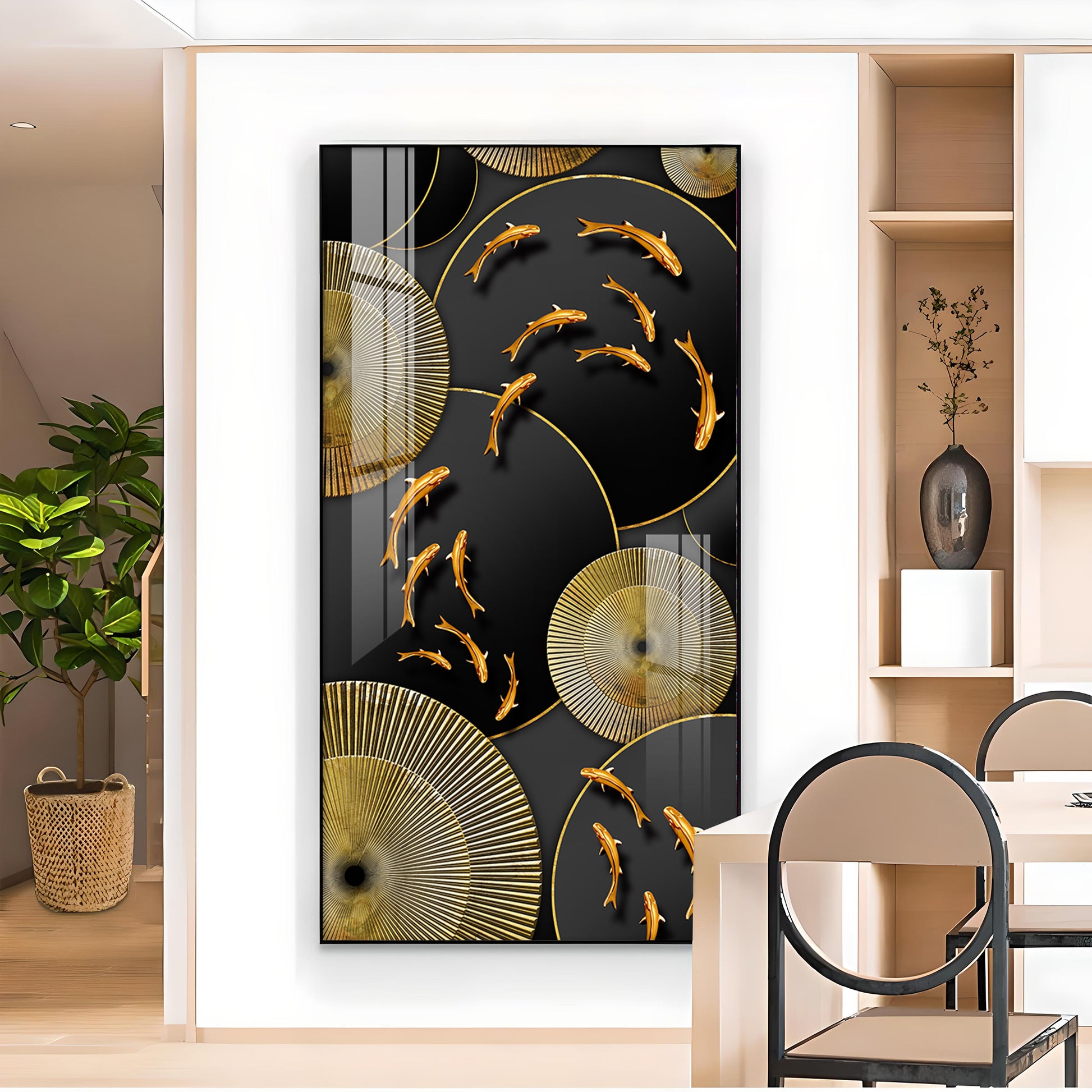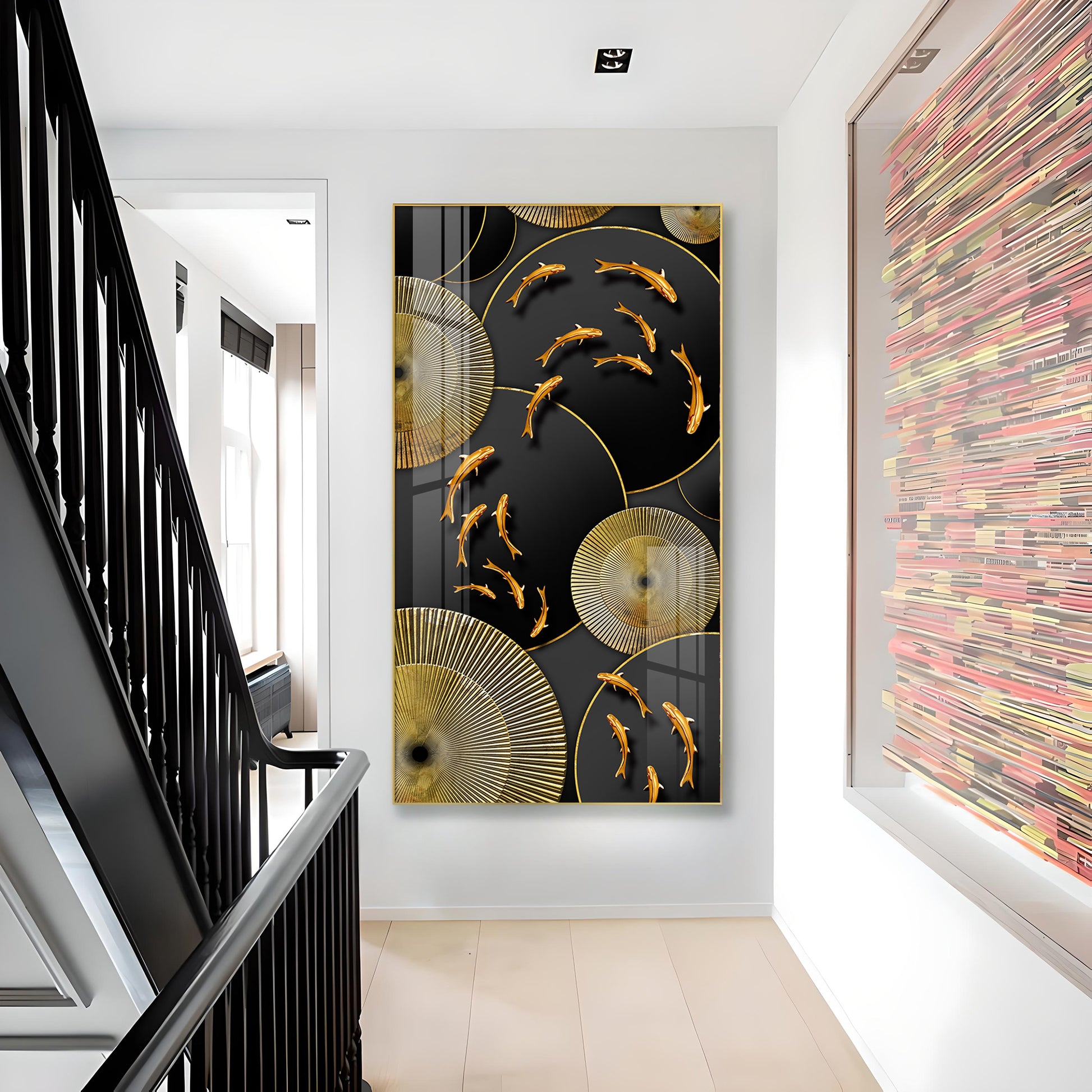 Goldfish Elegance Glass Finish Vertical Wall Art