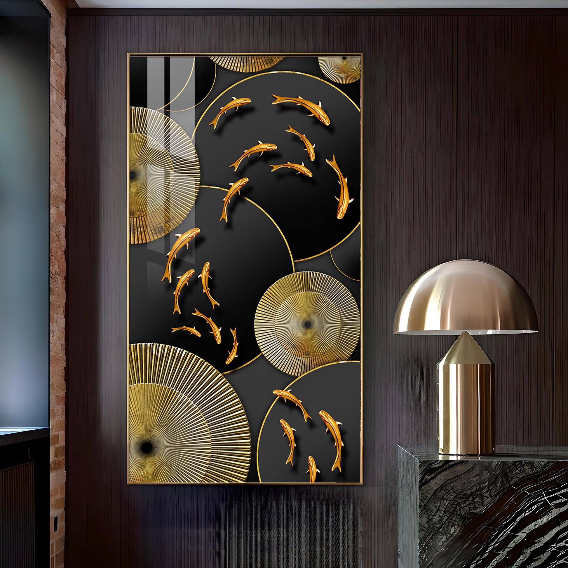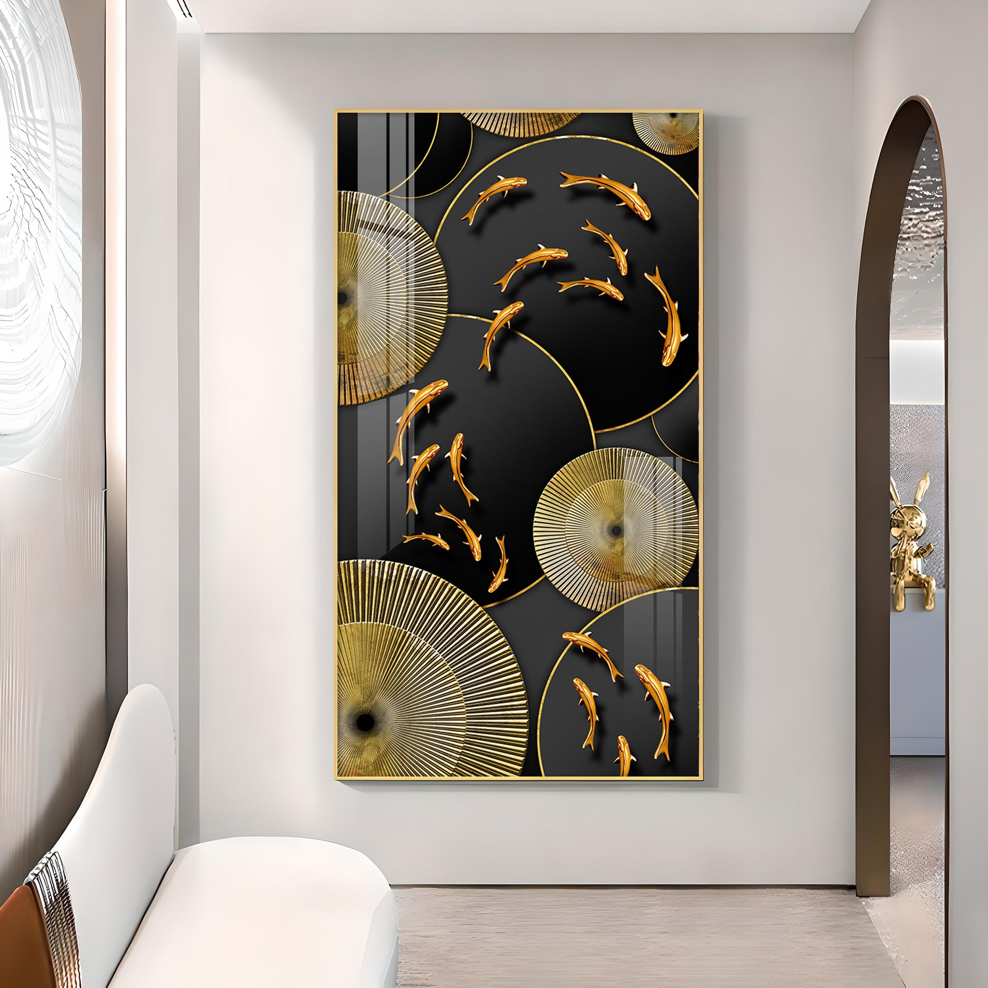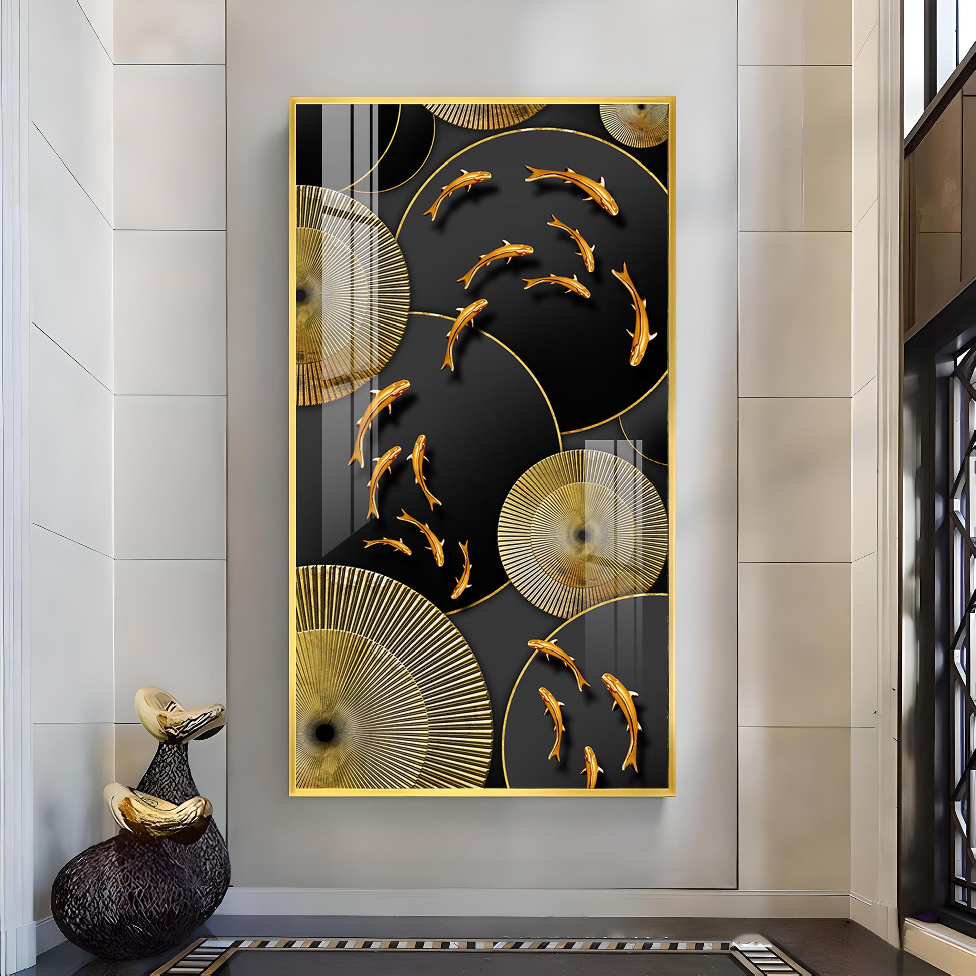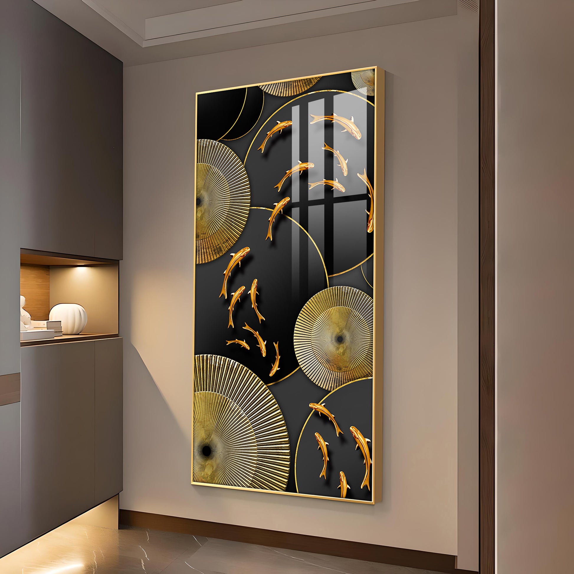 Goldfish Elegance Glass Finish Vertical Wall Art