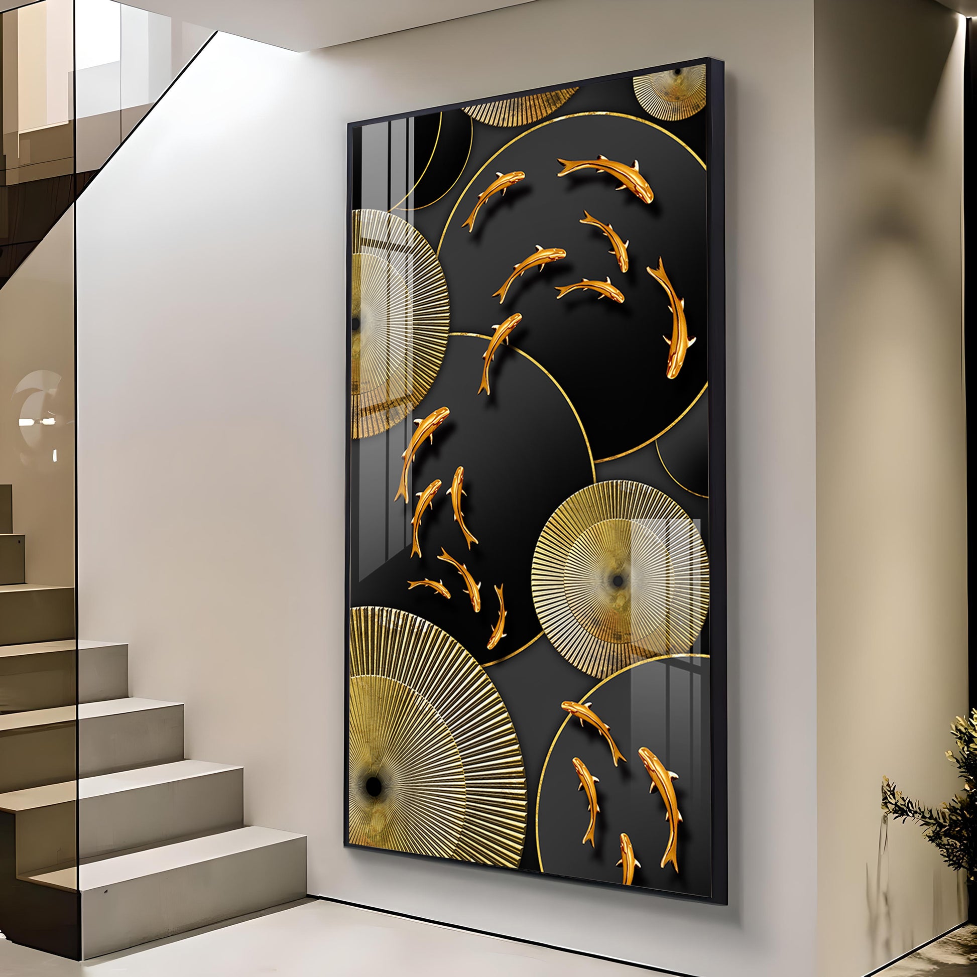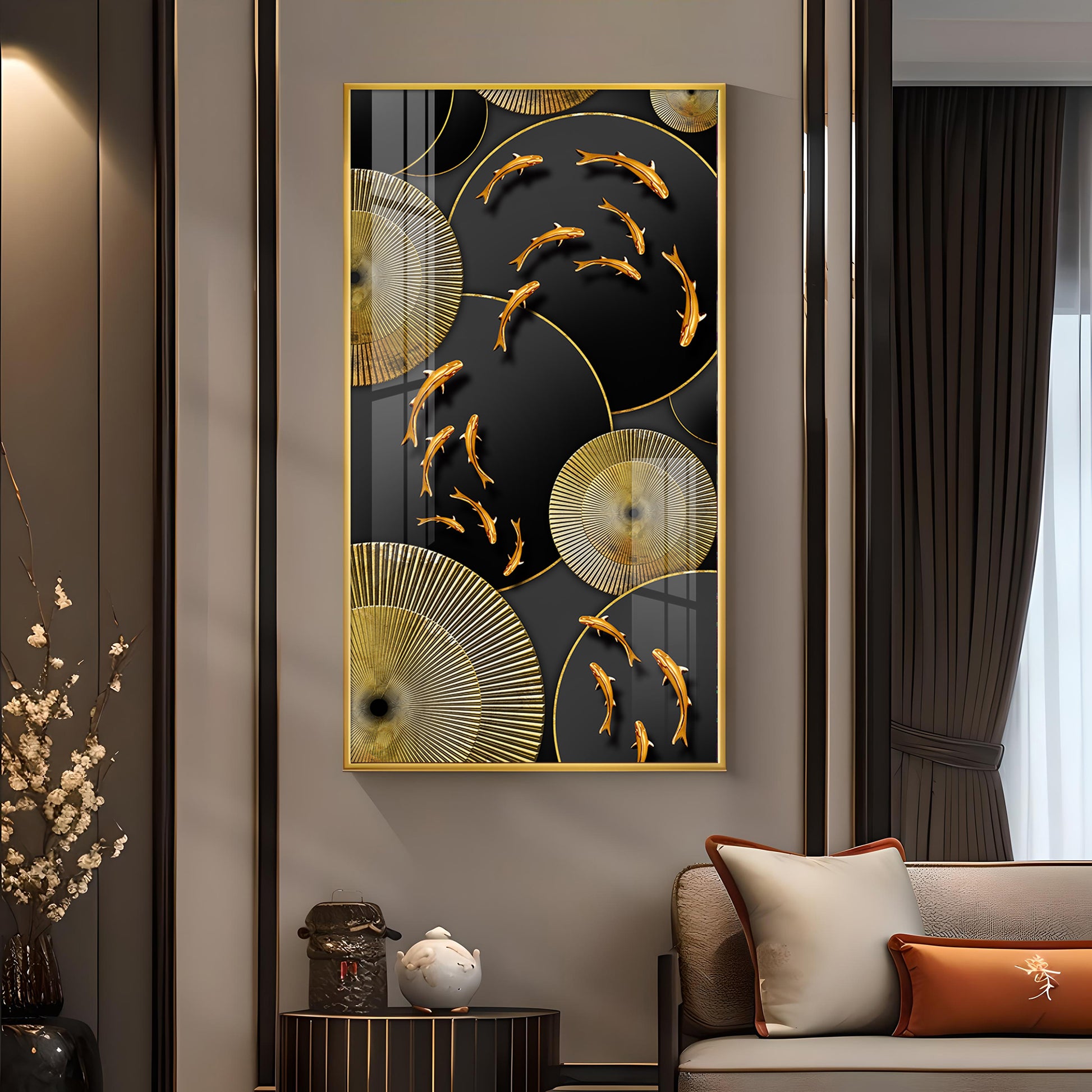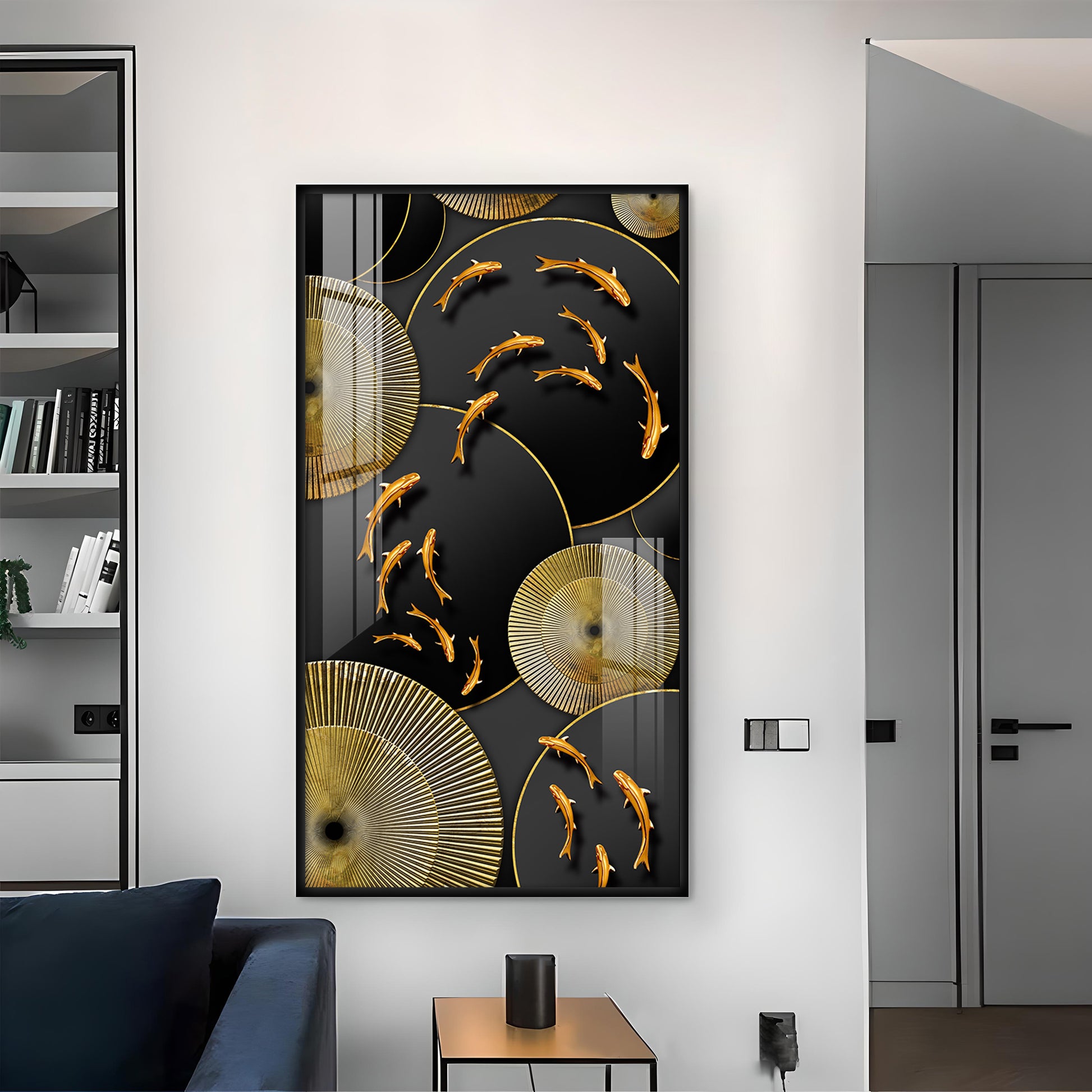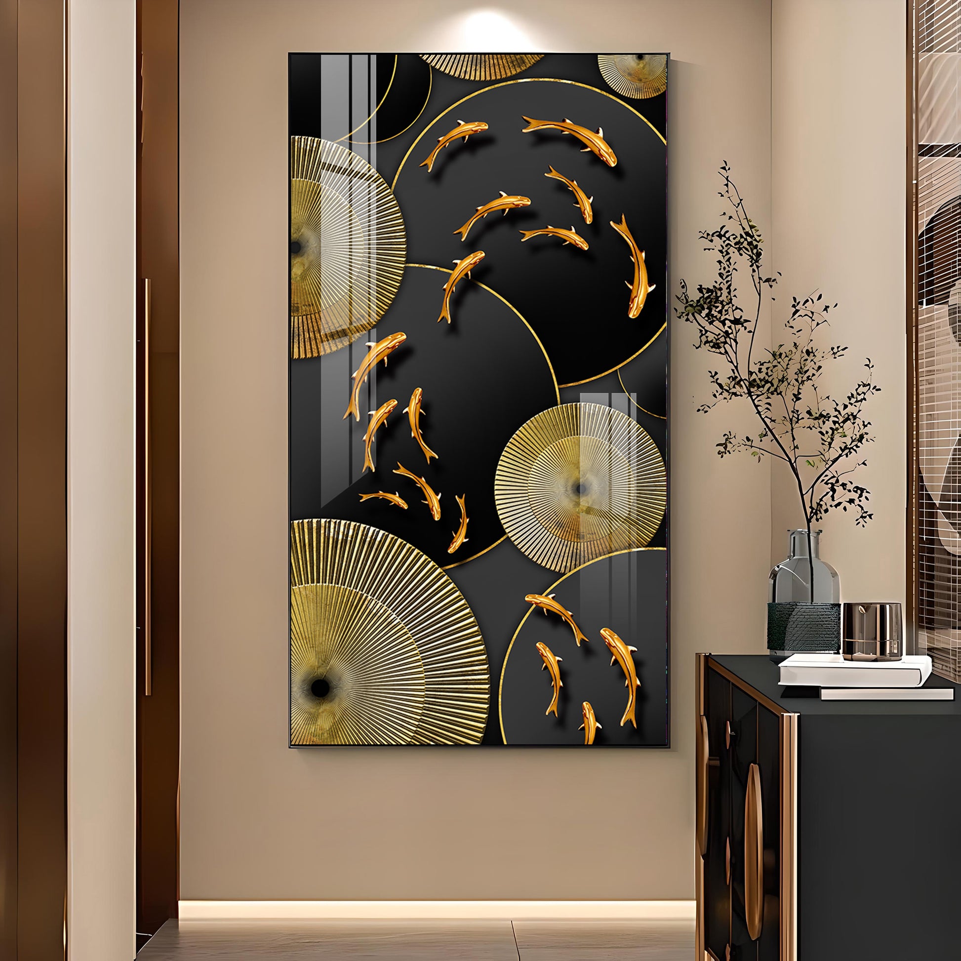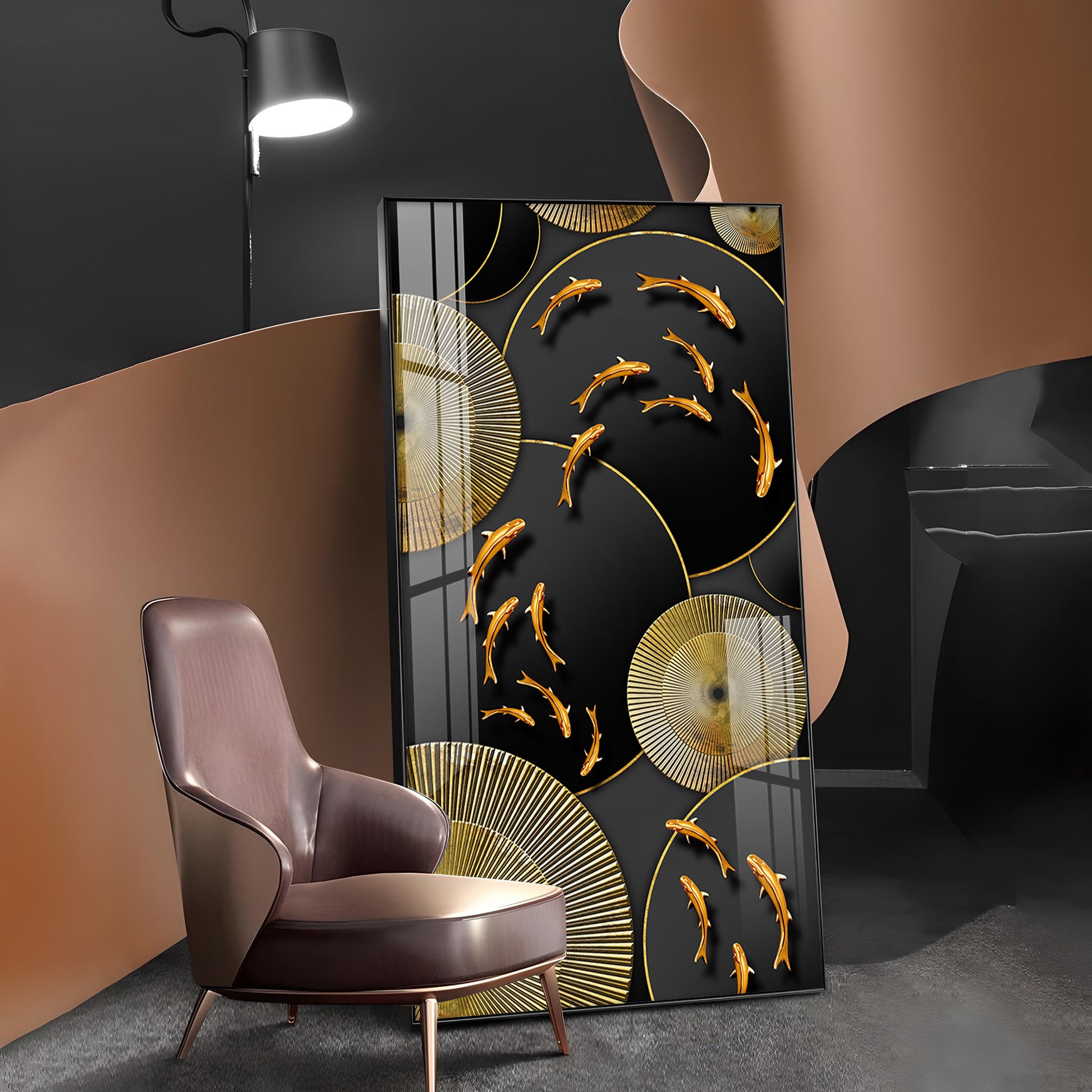 Goldfish Elegance Glass Finish Vertical Wall Art
