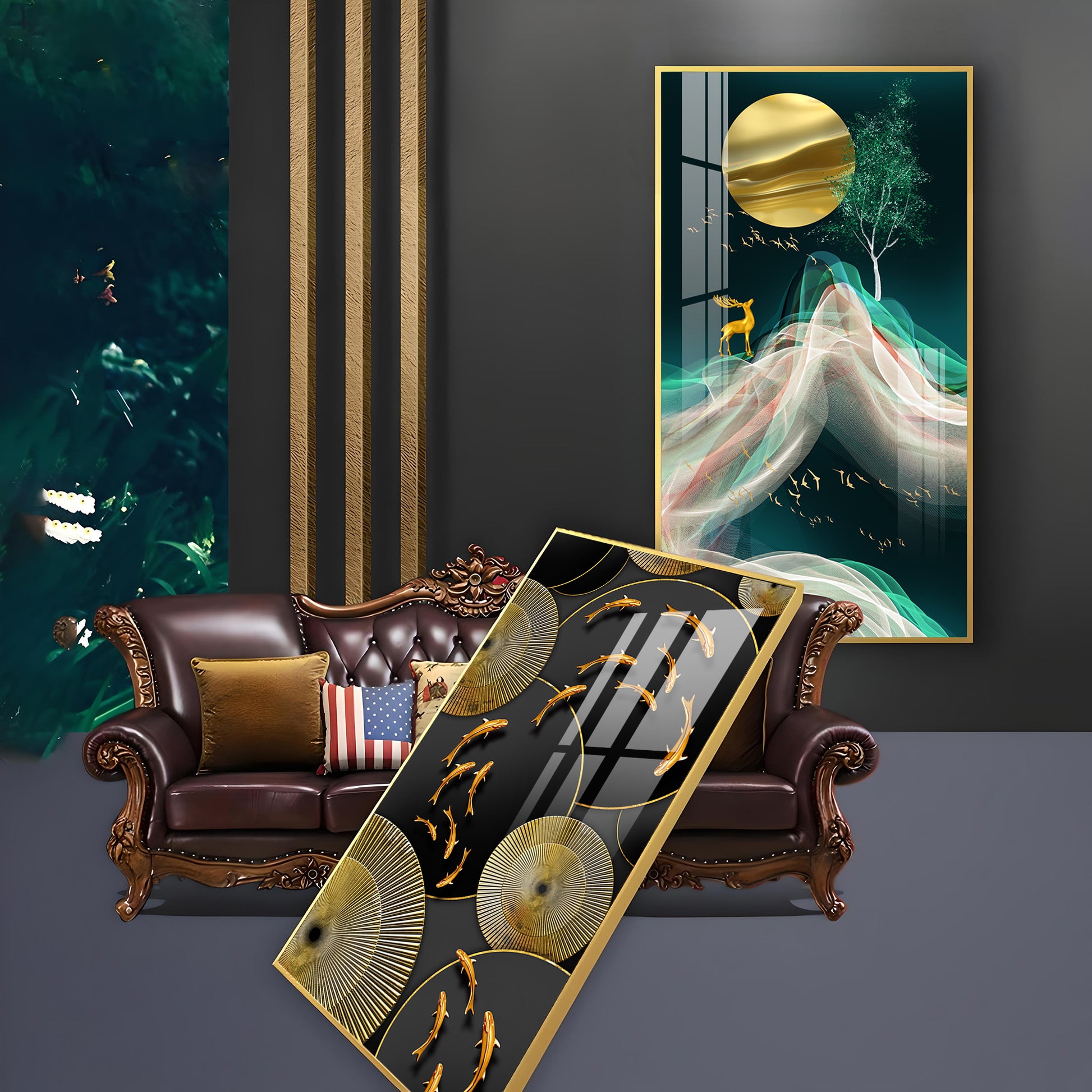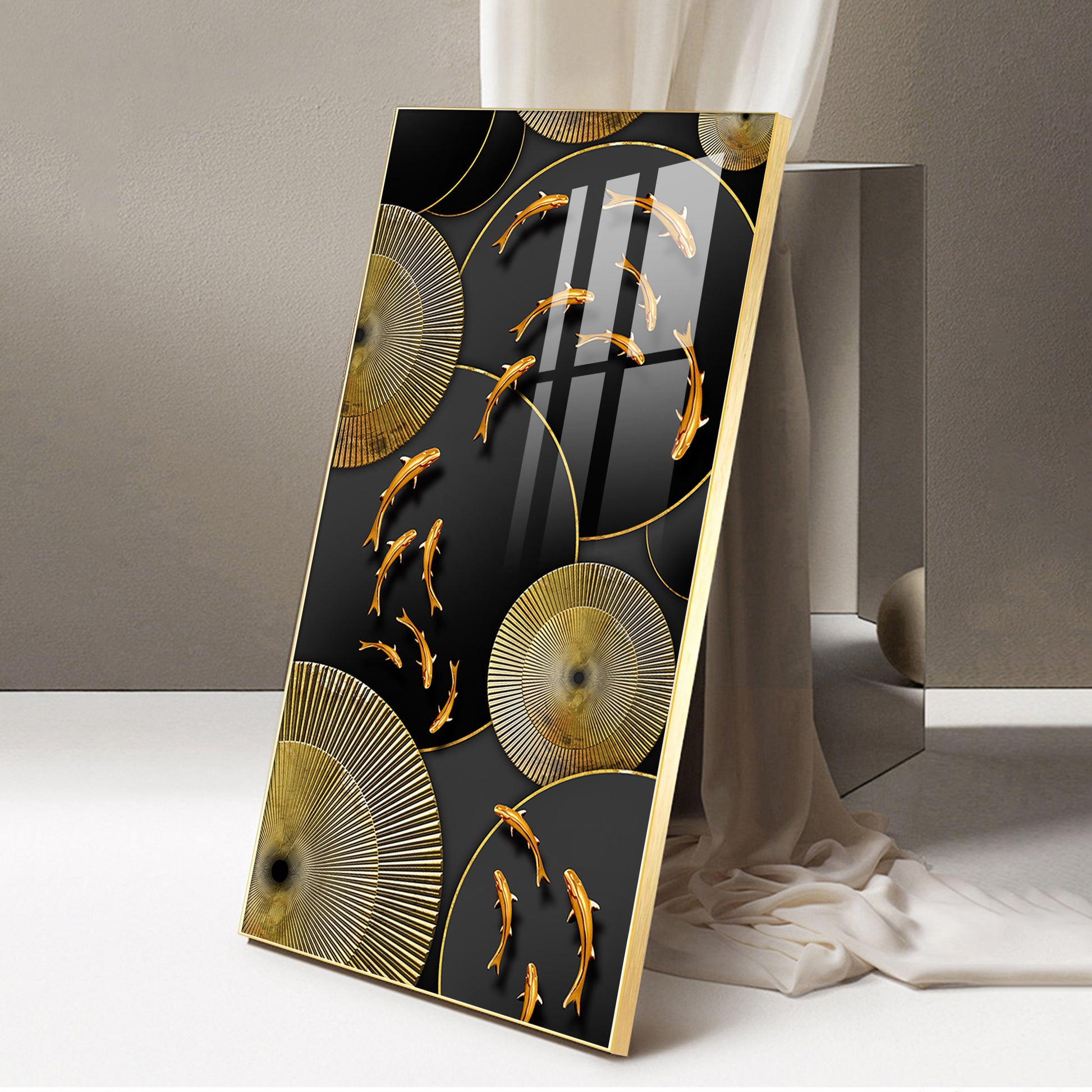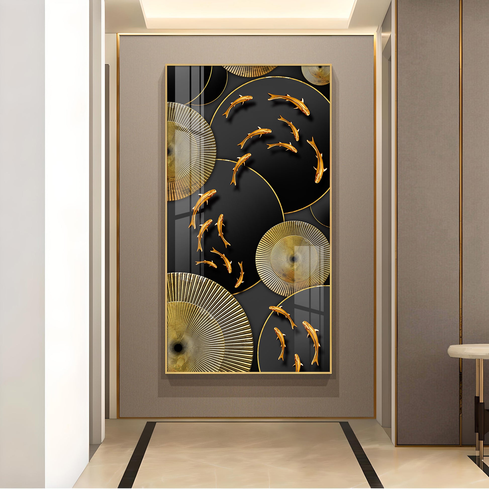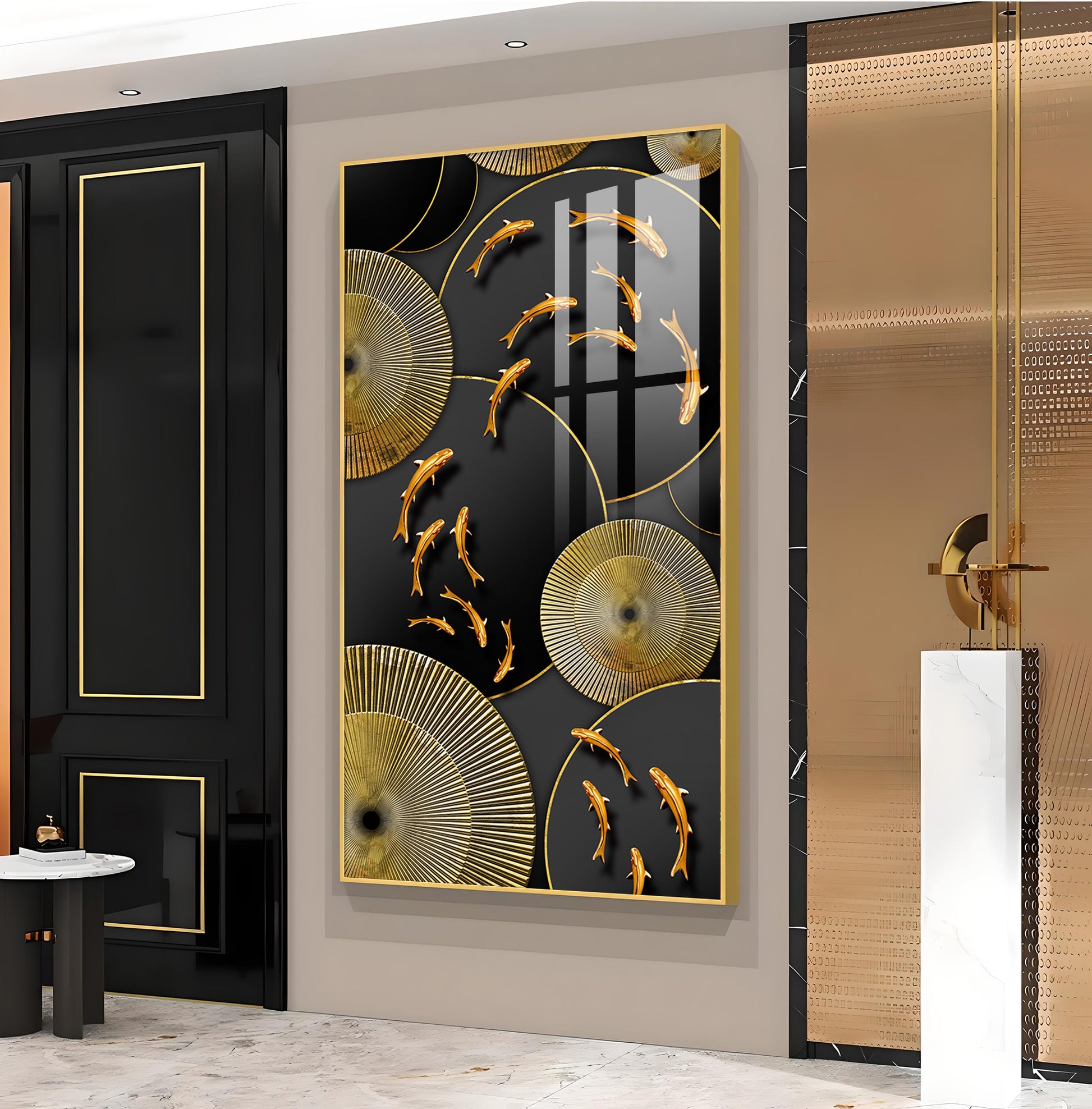 Goldfish Elegance Glass Finish Vertical Wall Art